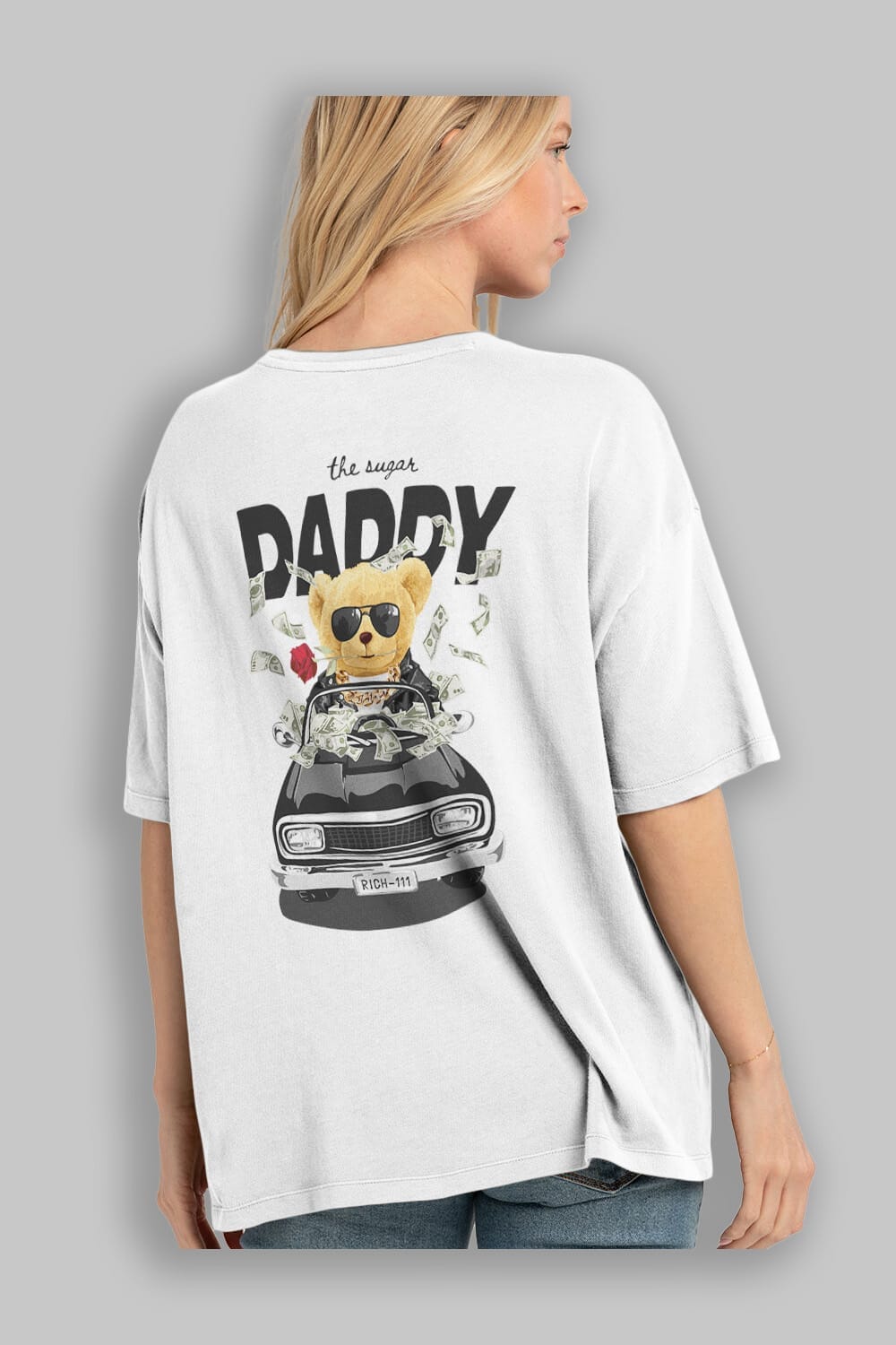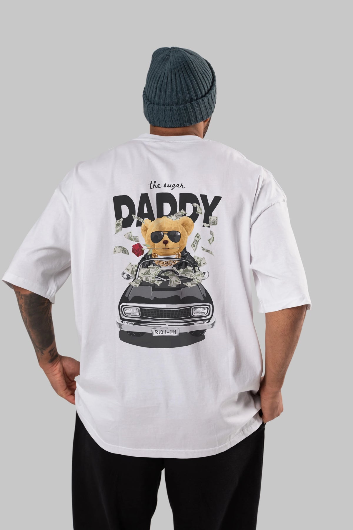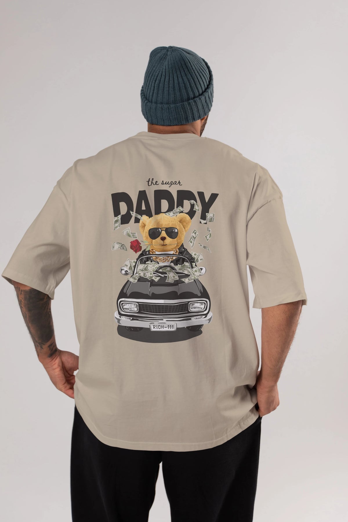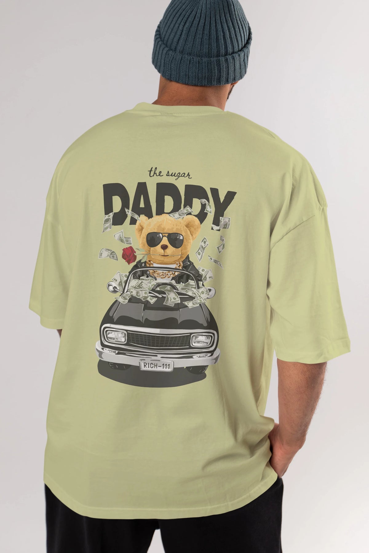 Teddy Bear Daddy Arka Baskılı Oversize t-shirt Erkek Kadın Unisex %100 Pamuk