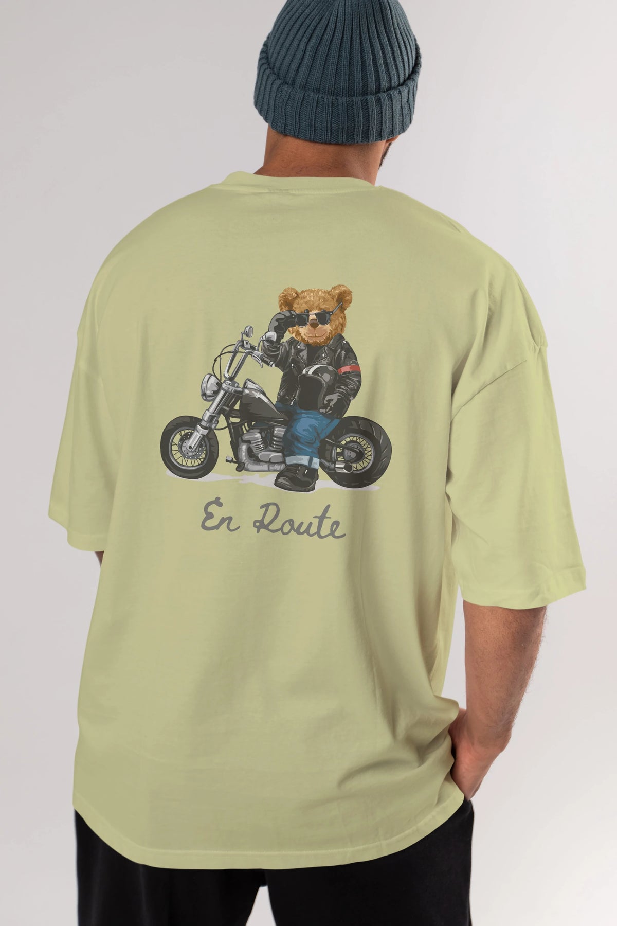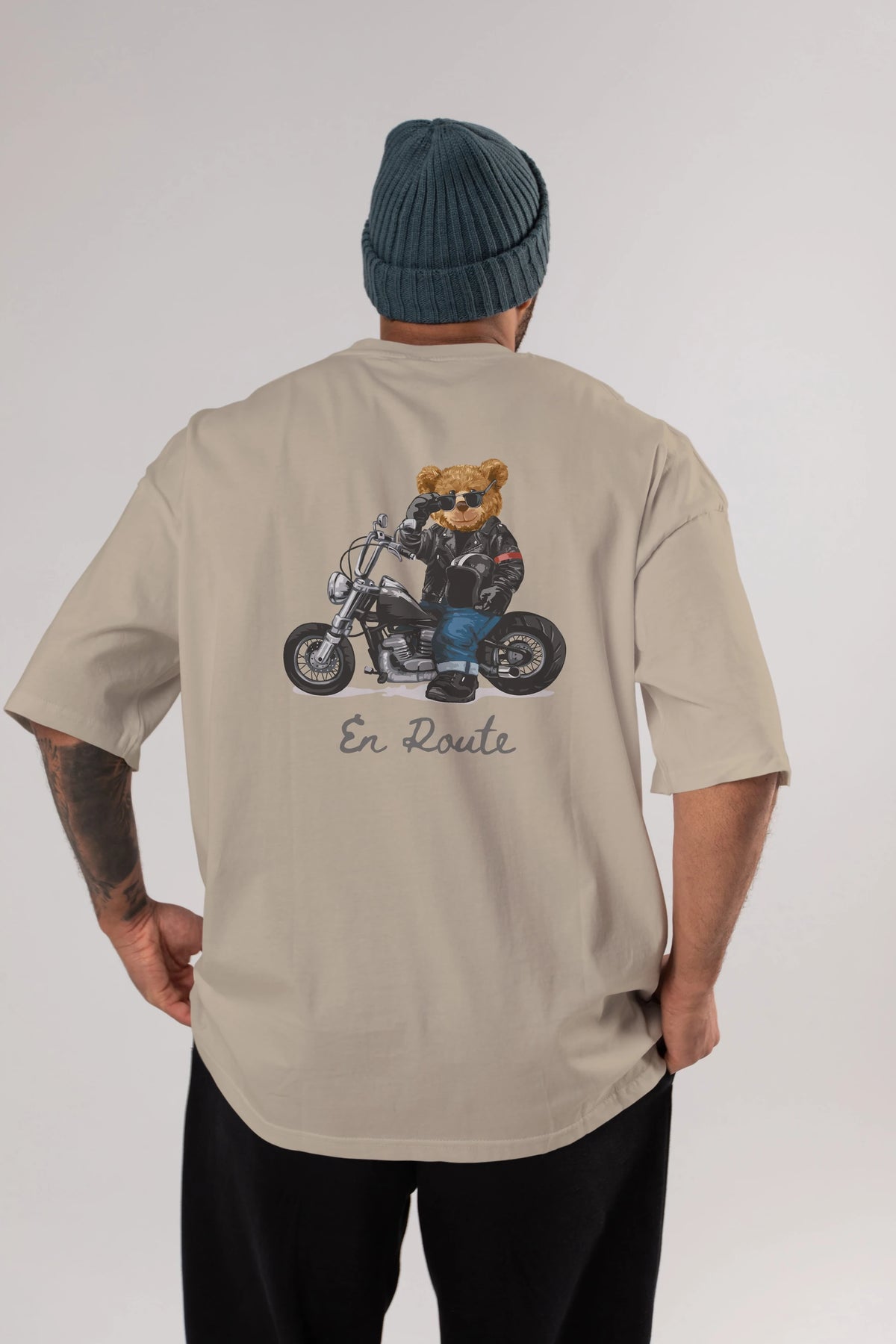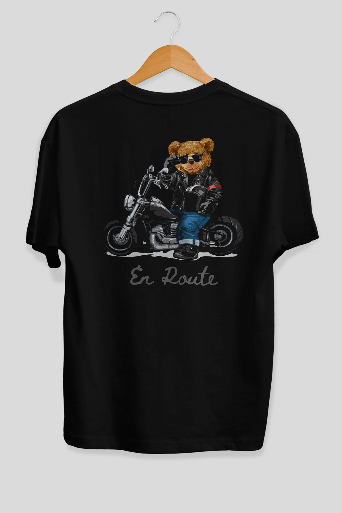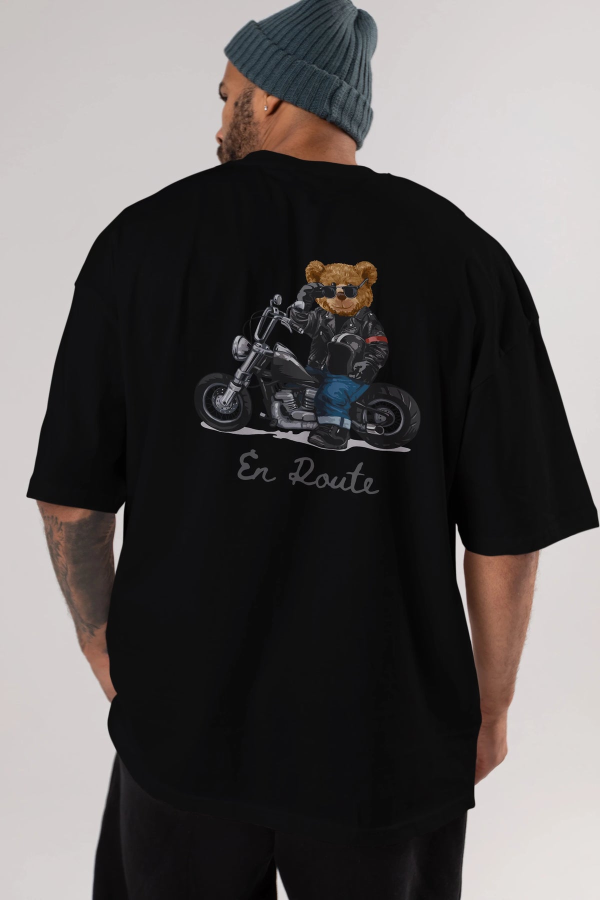 Teddy Bear En Route Arka Baskılı Oversize t-shirt Erkek Kadın Unisex %100 Pamuk