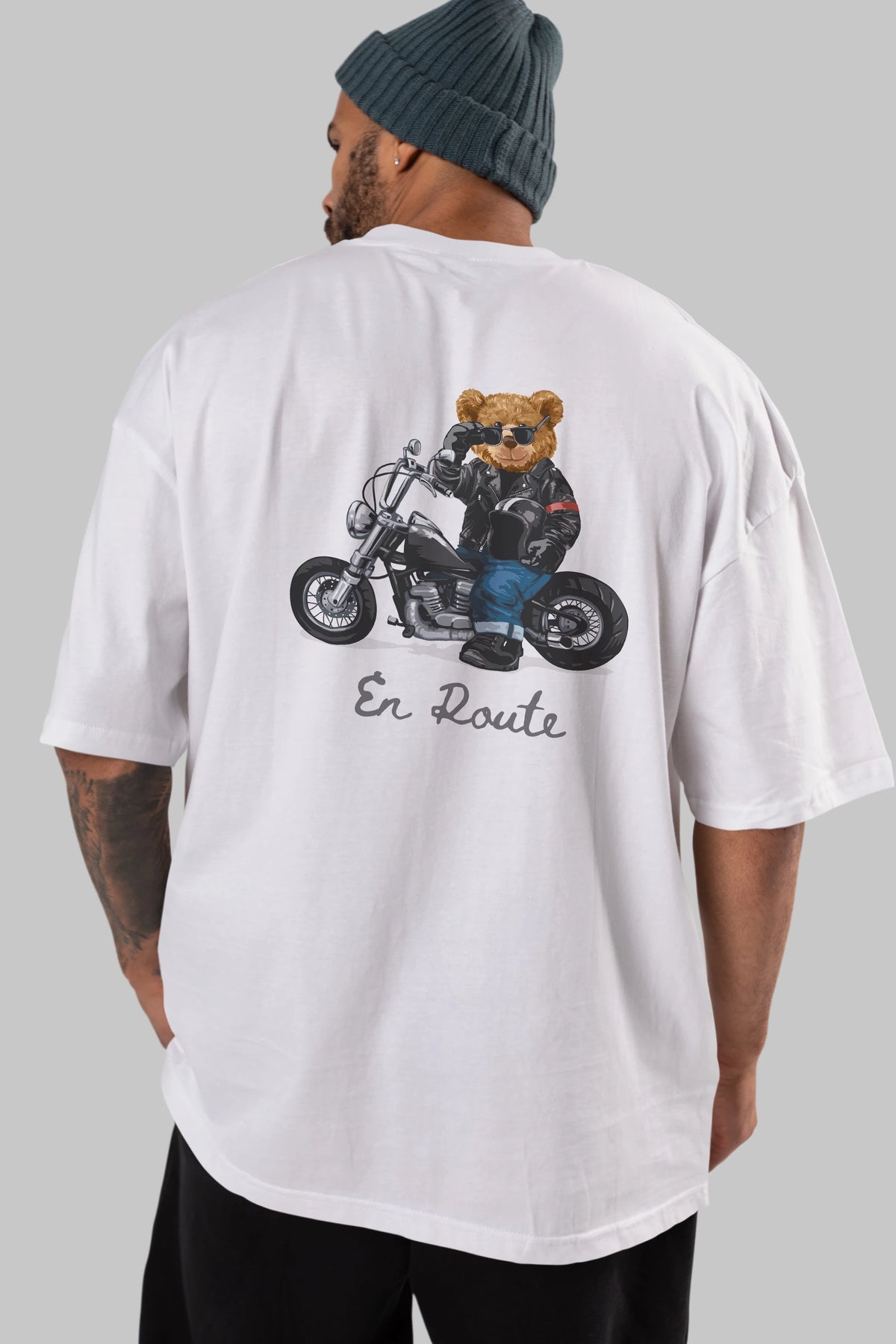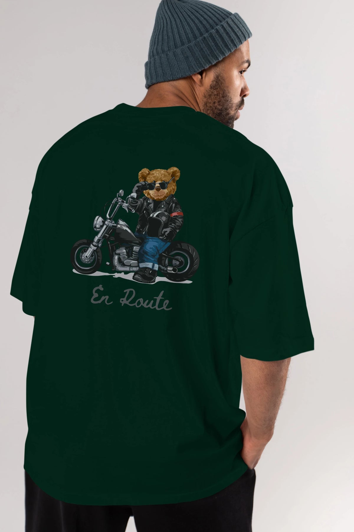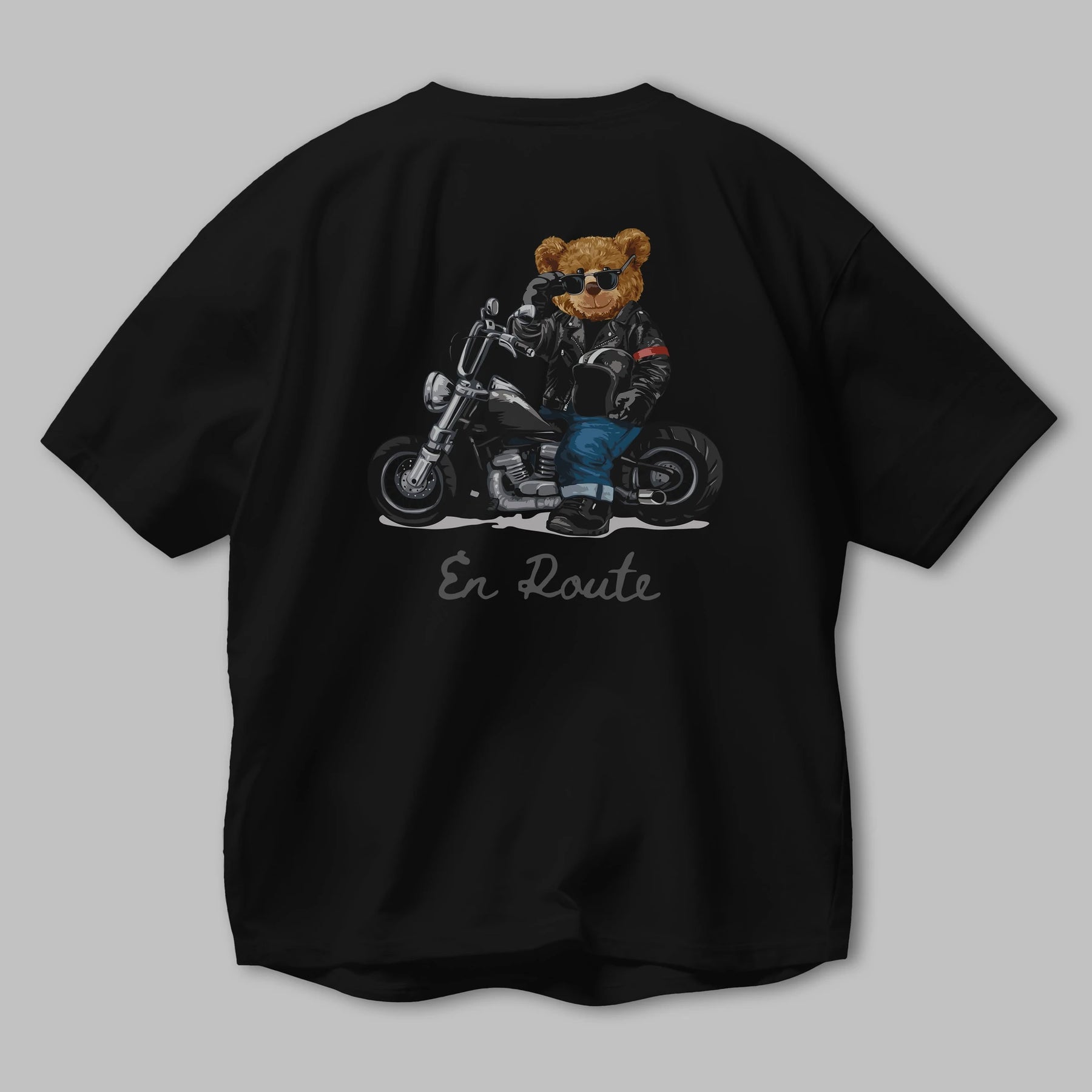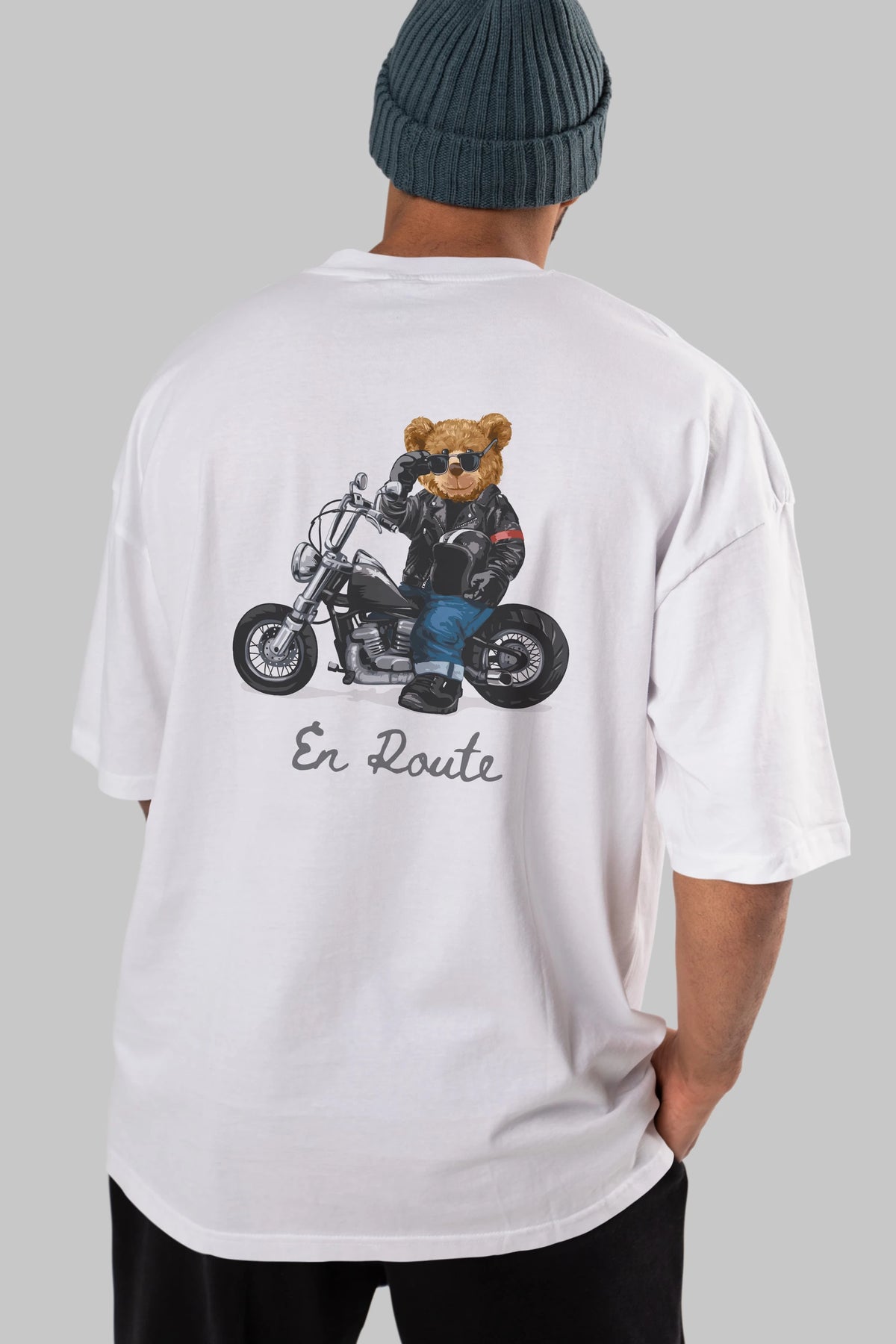 Teddy Bear En Route Arka Baskılı Oversize t-shirt Erkek Kadın Unisex %100 Pamuk