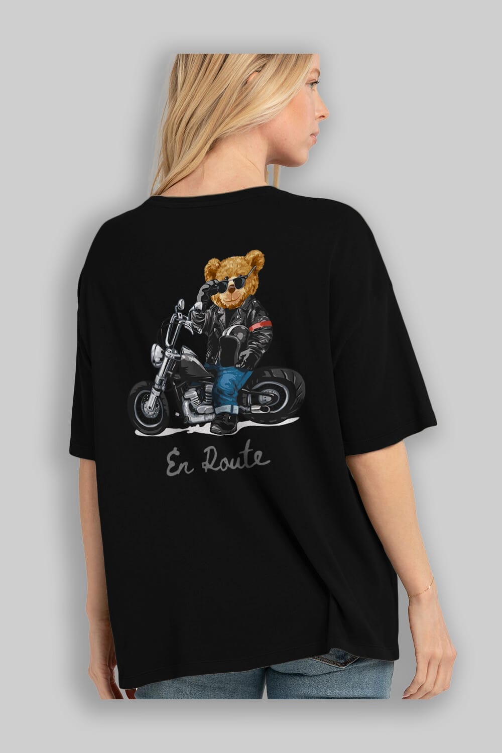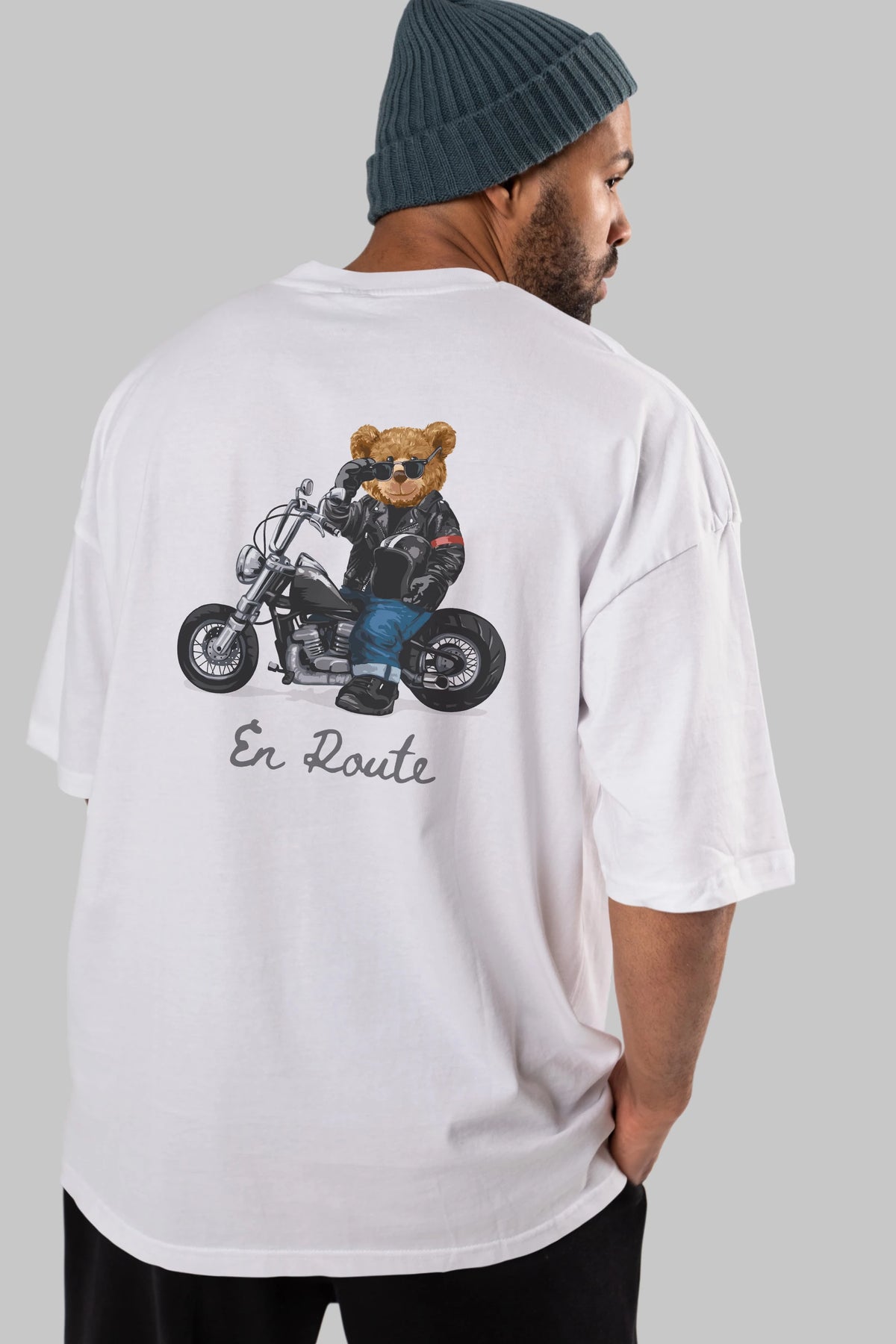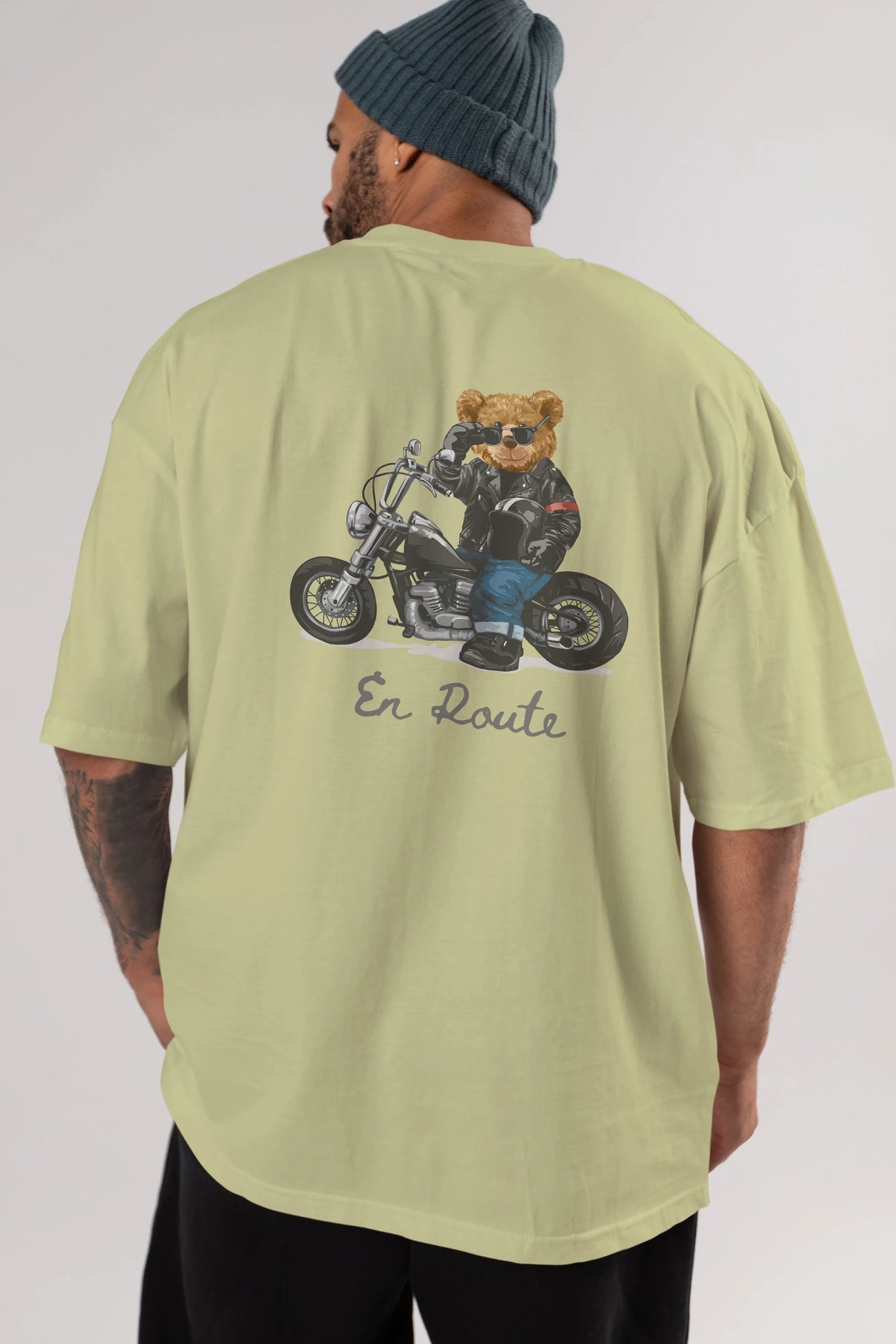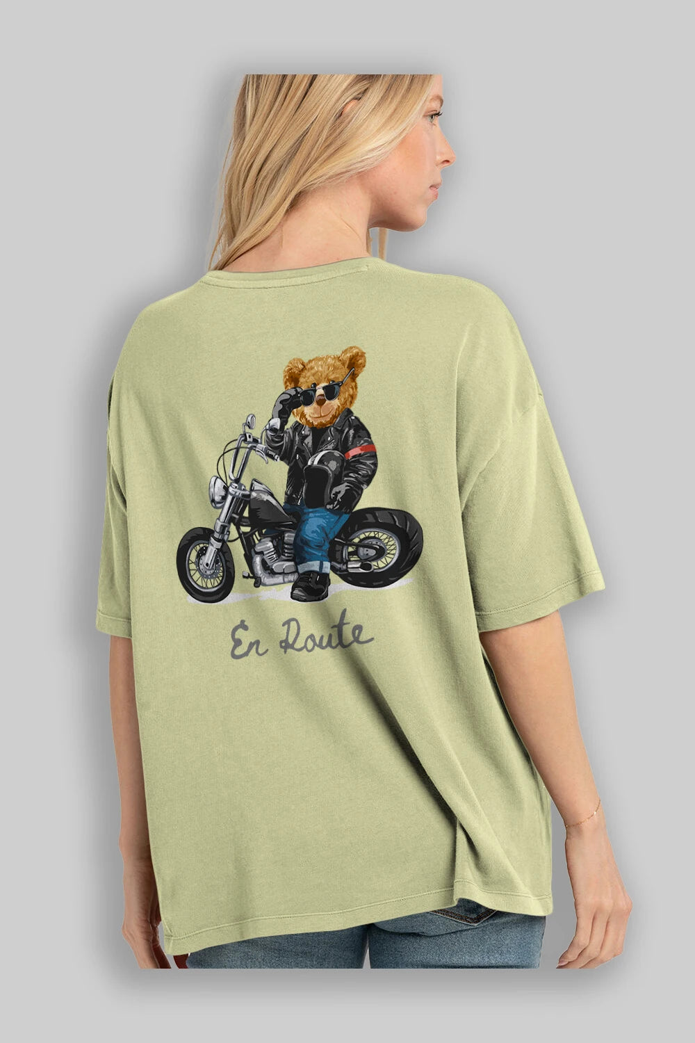 Teddy Bear En Route Arka Baskılı Oversize t-shirt Erkek Kadın Unisex %100 Pamuk