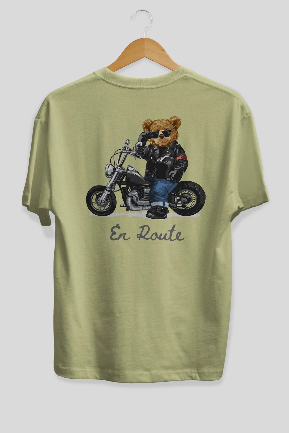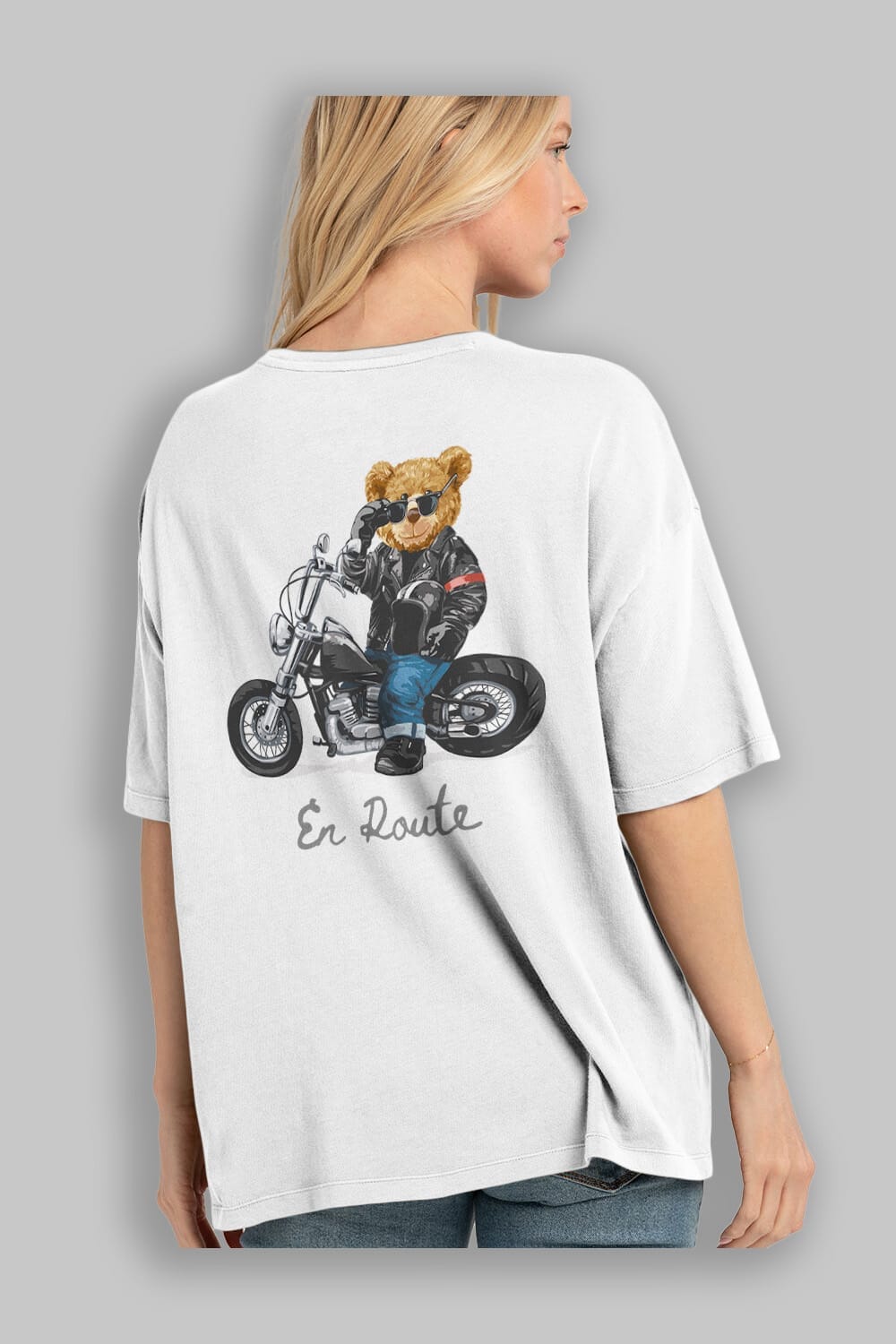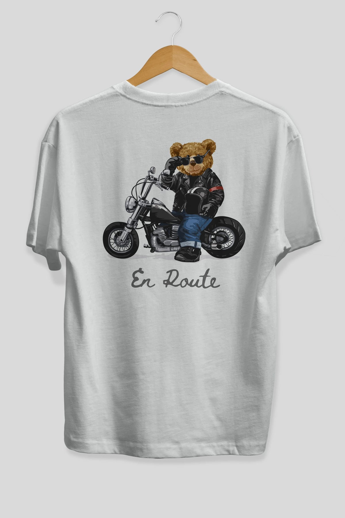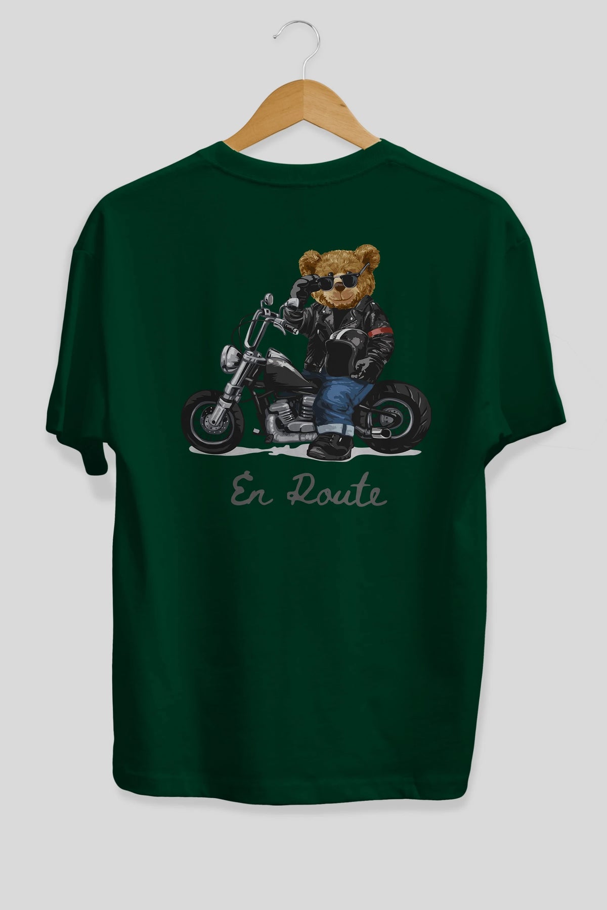 Teddy Bear En Route Arka Baskılı Oversize t-shirt Erkek Kadın Unisex %100 Pamuk