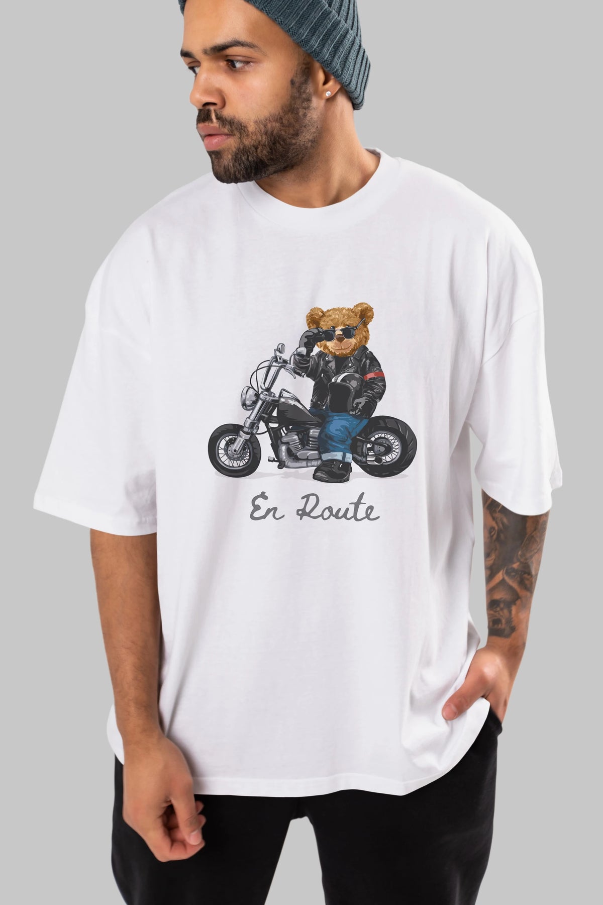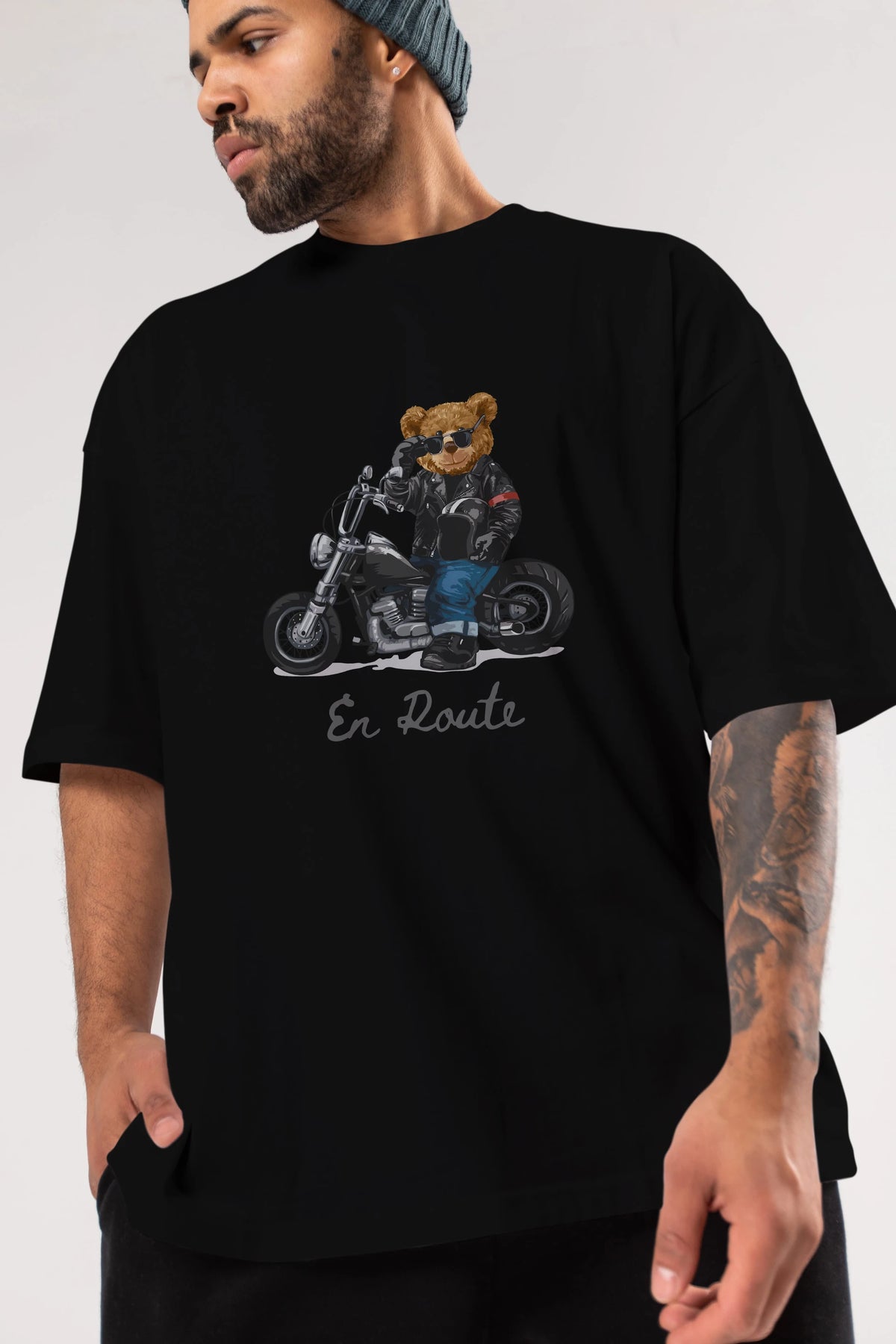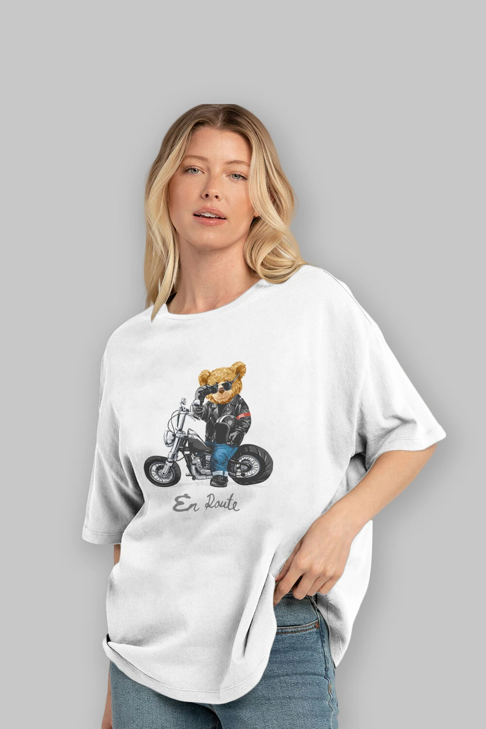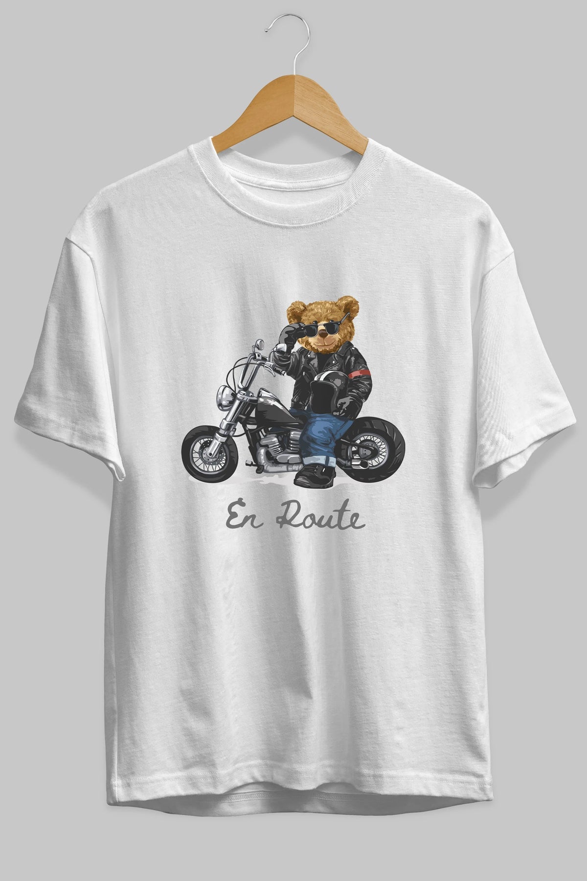 Teddy Bear En Route Ön Baskılı Oversize t-shirt Erkek Kadın Unisex %100 Pamuk