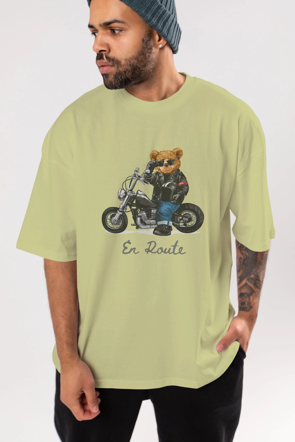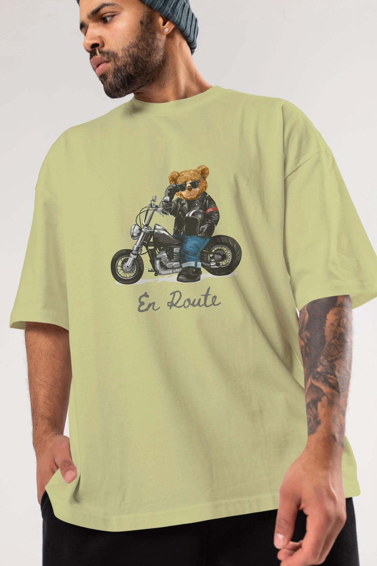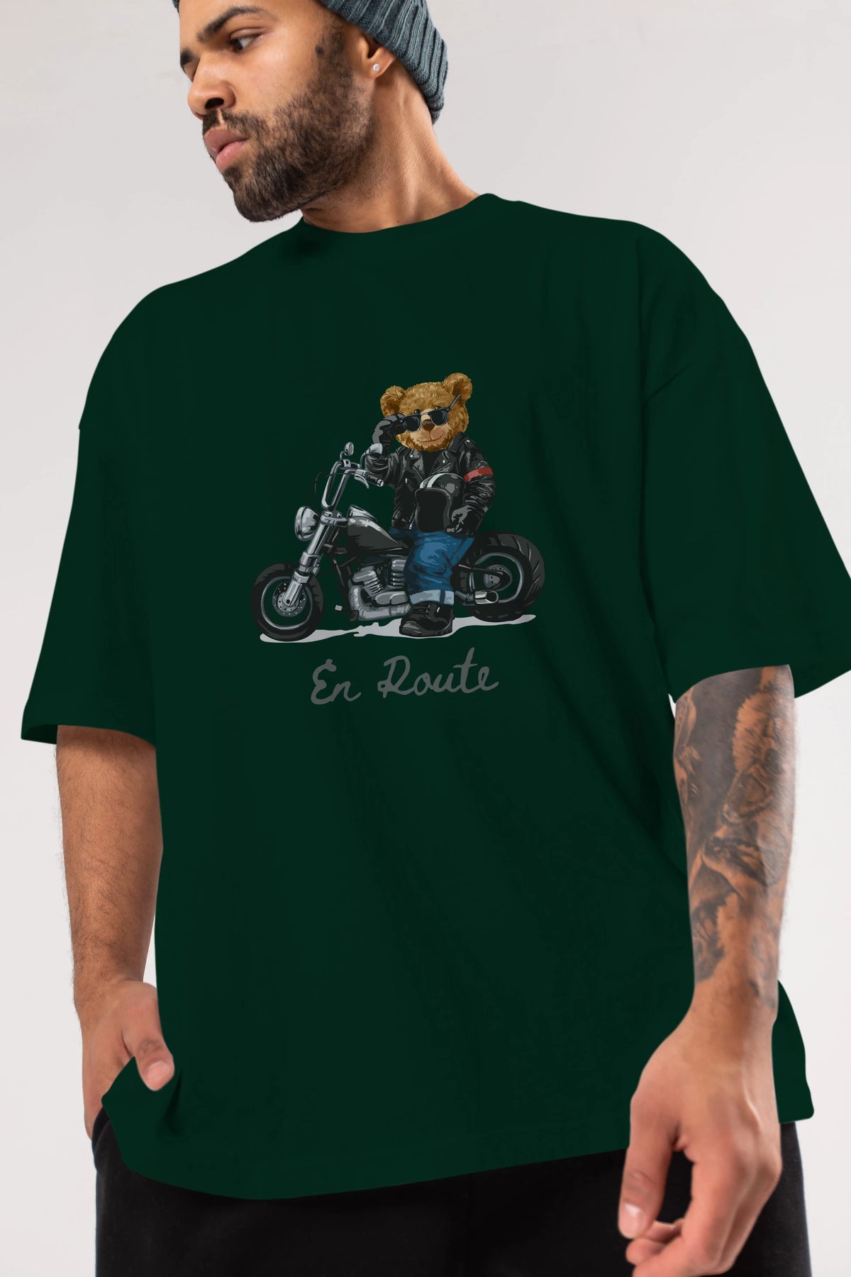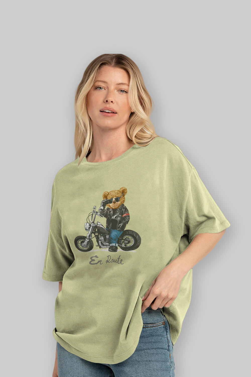 Teddy Bear En Route Ön Baskılı Oversize t-shirt Erkek Kadın Unisex %100 Pamuk