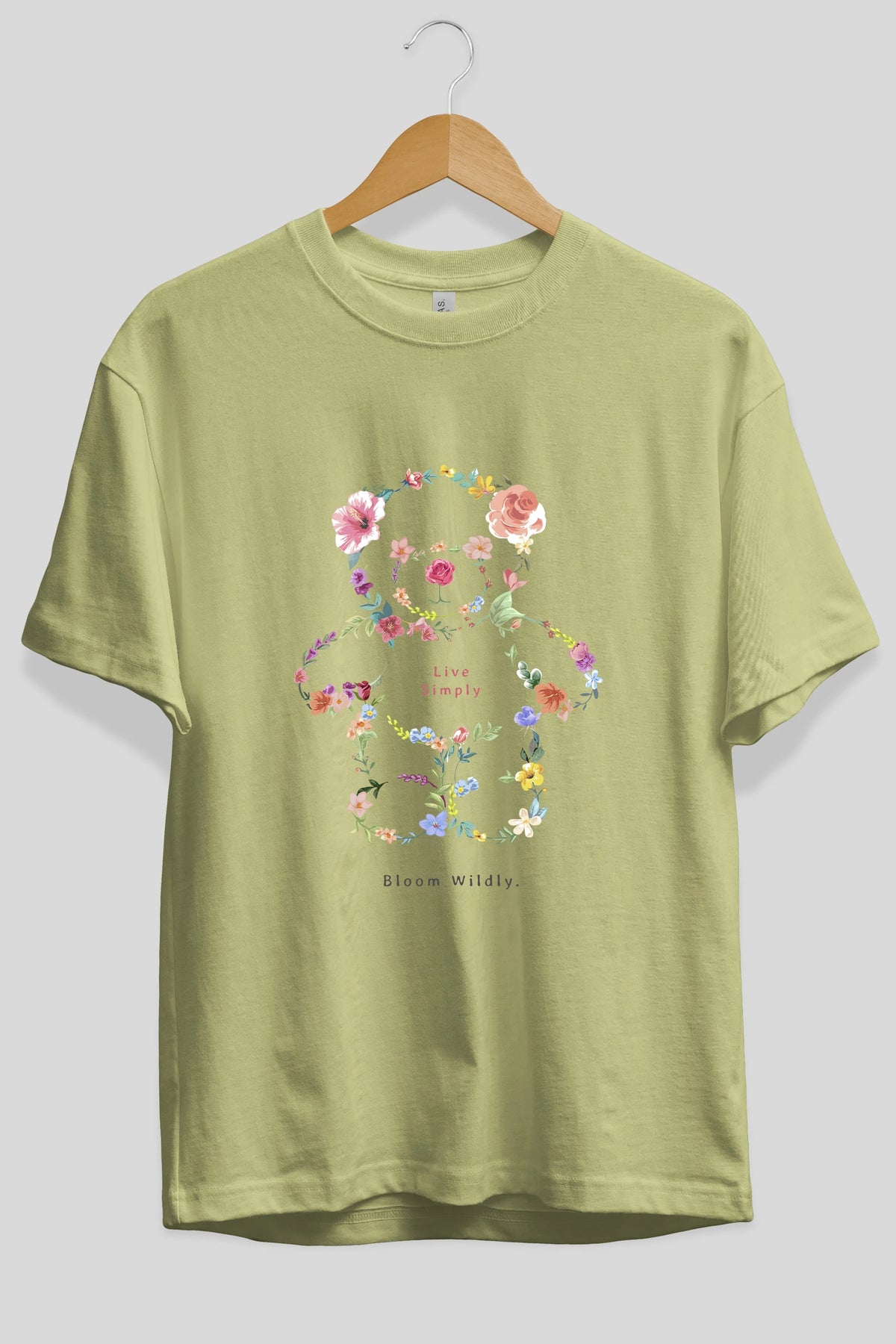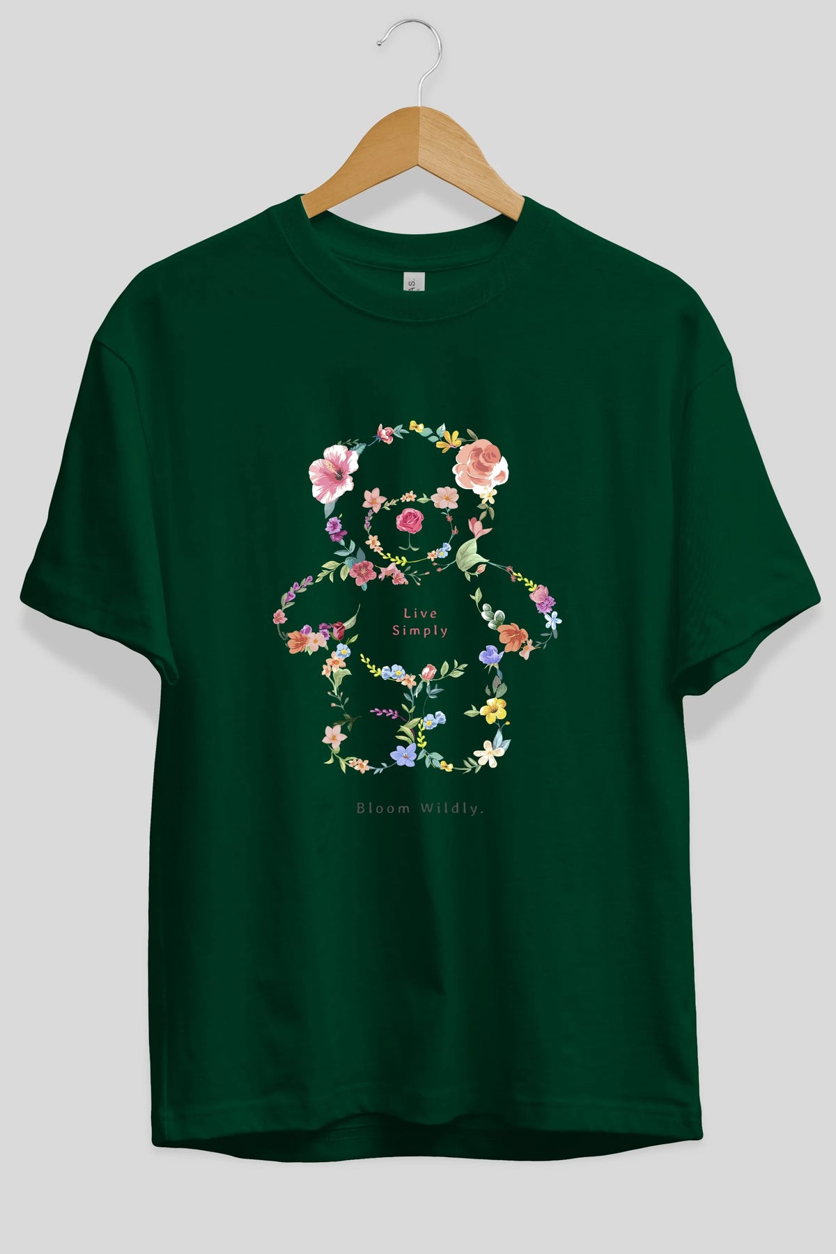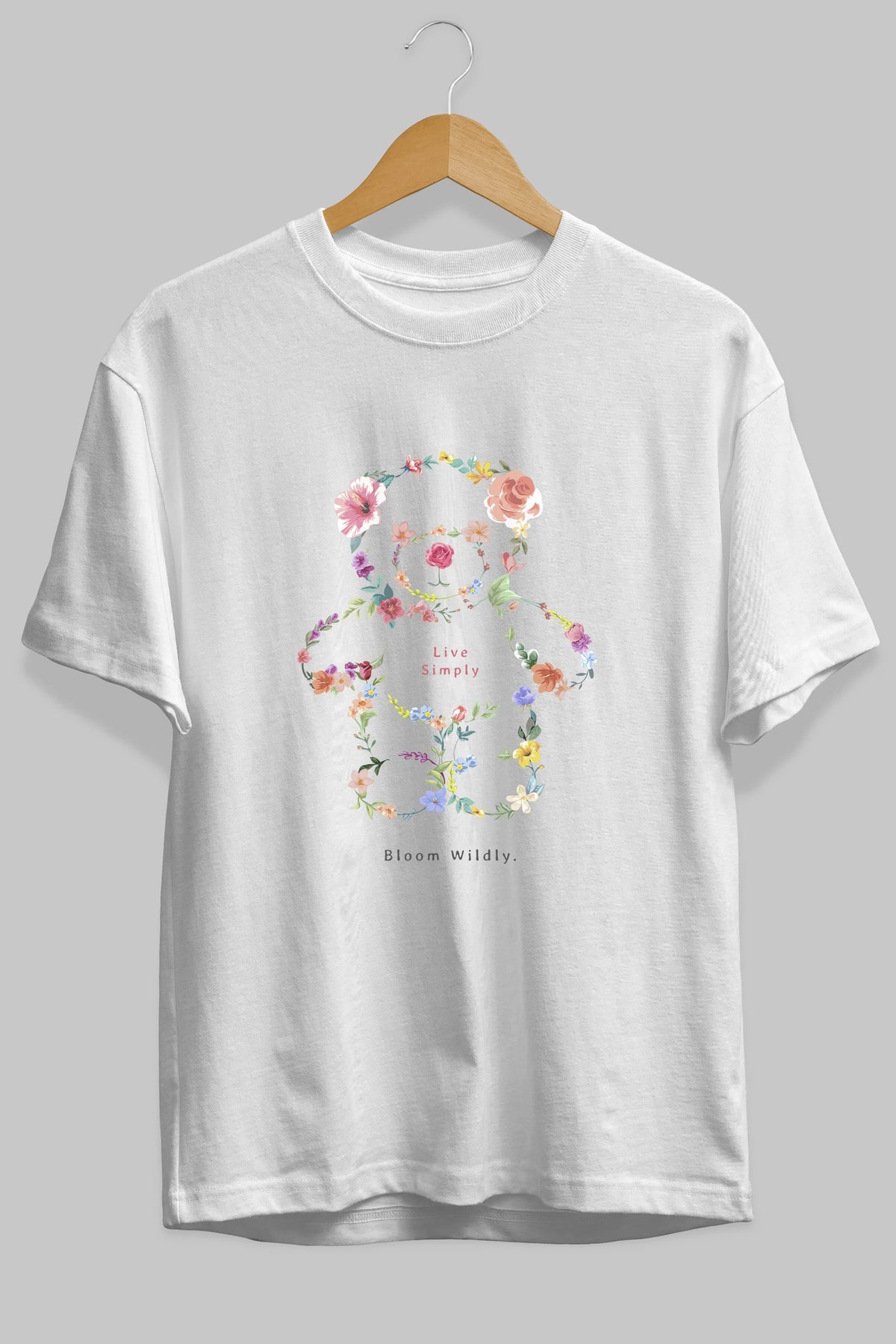 Teddy Bear Flowers Ön Baskılı Oversize t-shirt Erkek Kadın Unisex