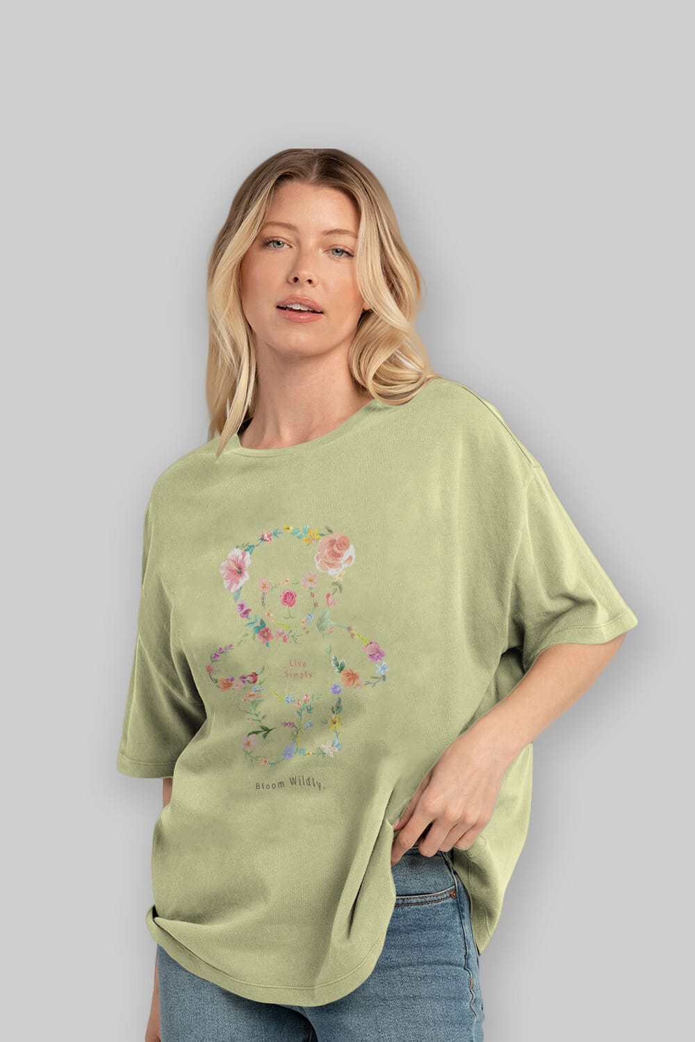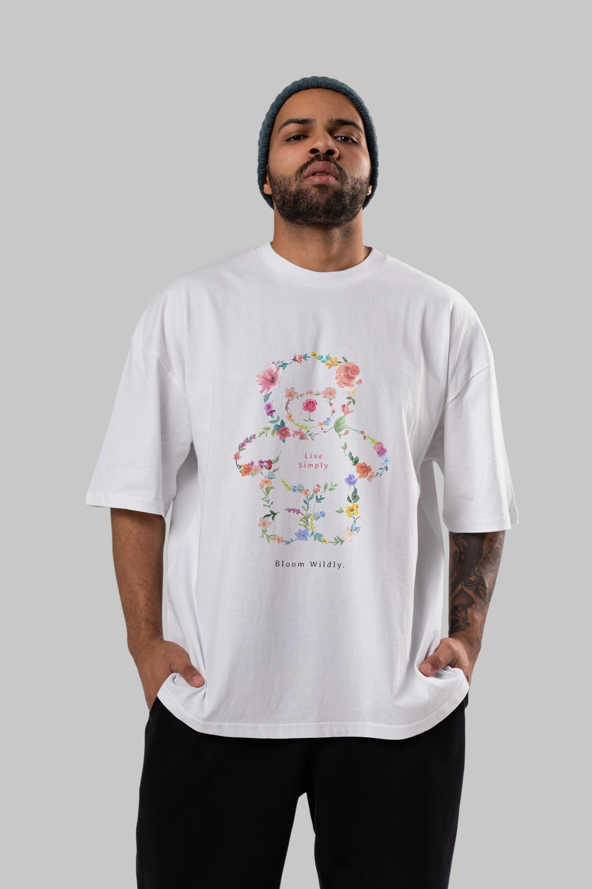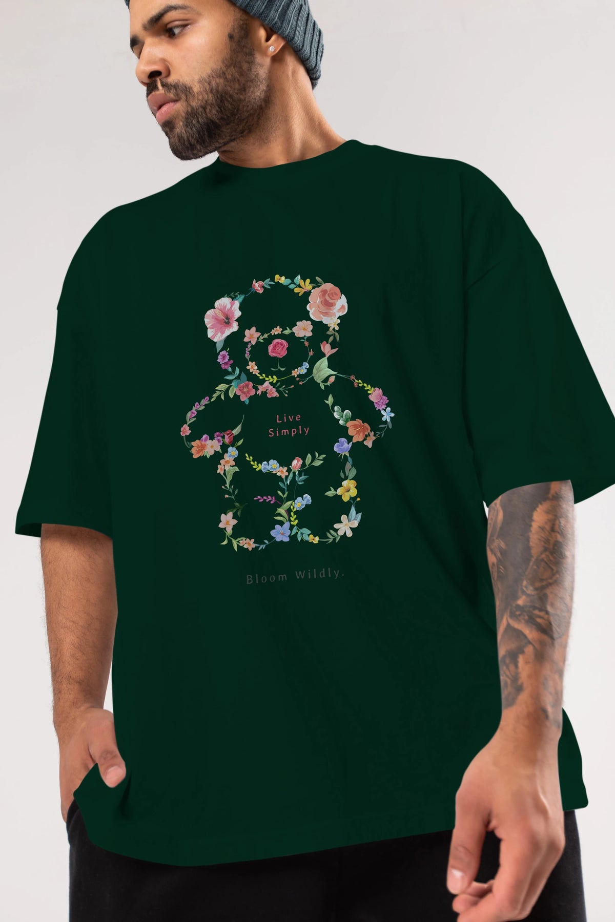 Teddy Bear Flowers Ön Baskılı Oversize t-shirt Erkek Kadın Unisex