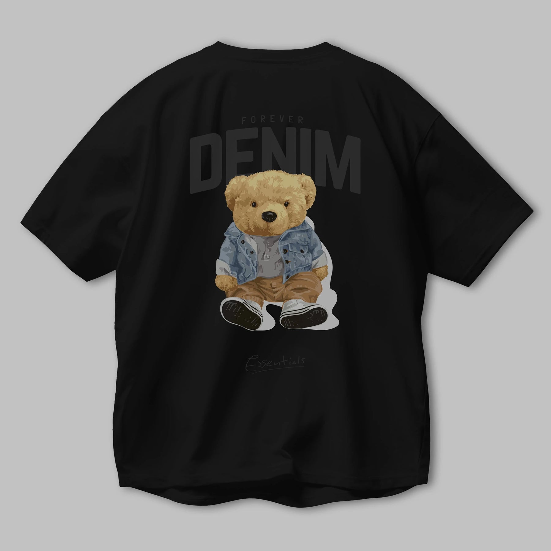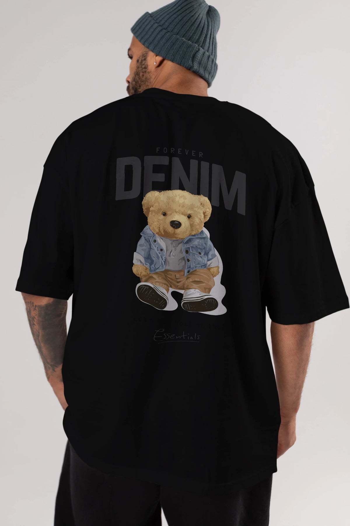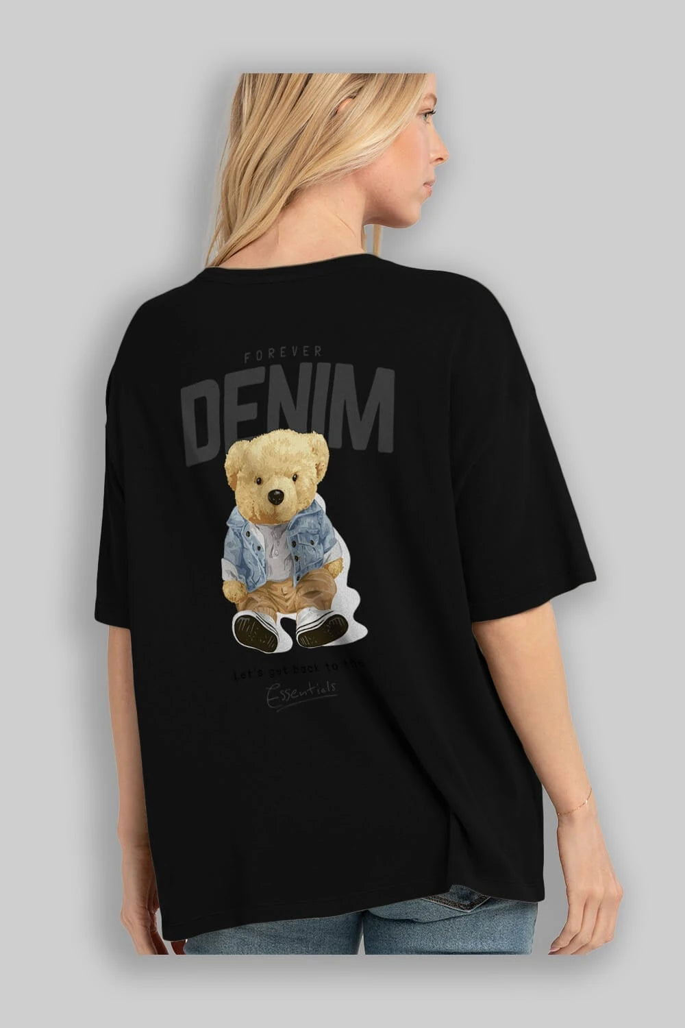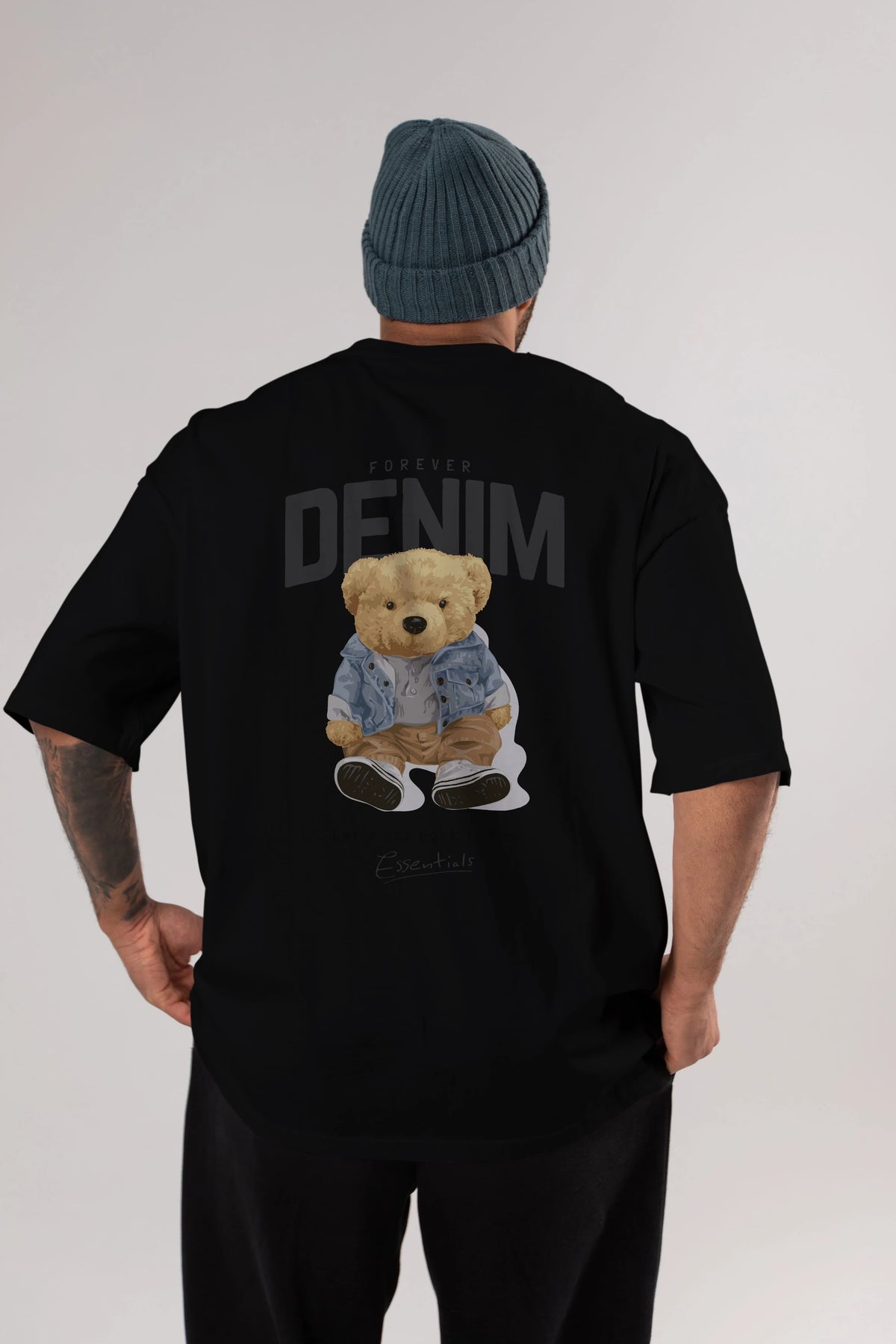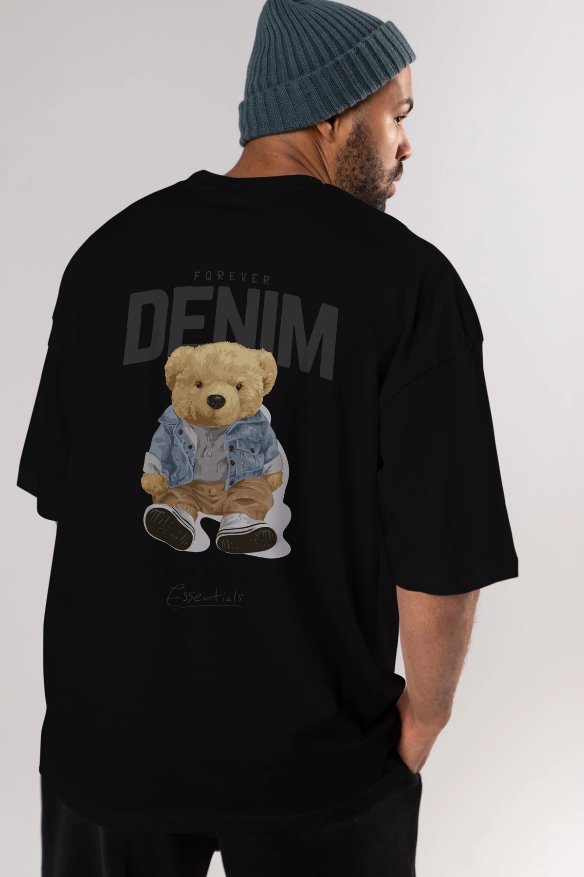 Teddy Bear Forever Denim Arka Baskılı Oversize t-shirt Erkek Kadın Unisex %100 Pamuk