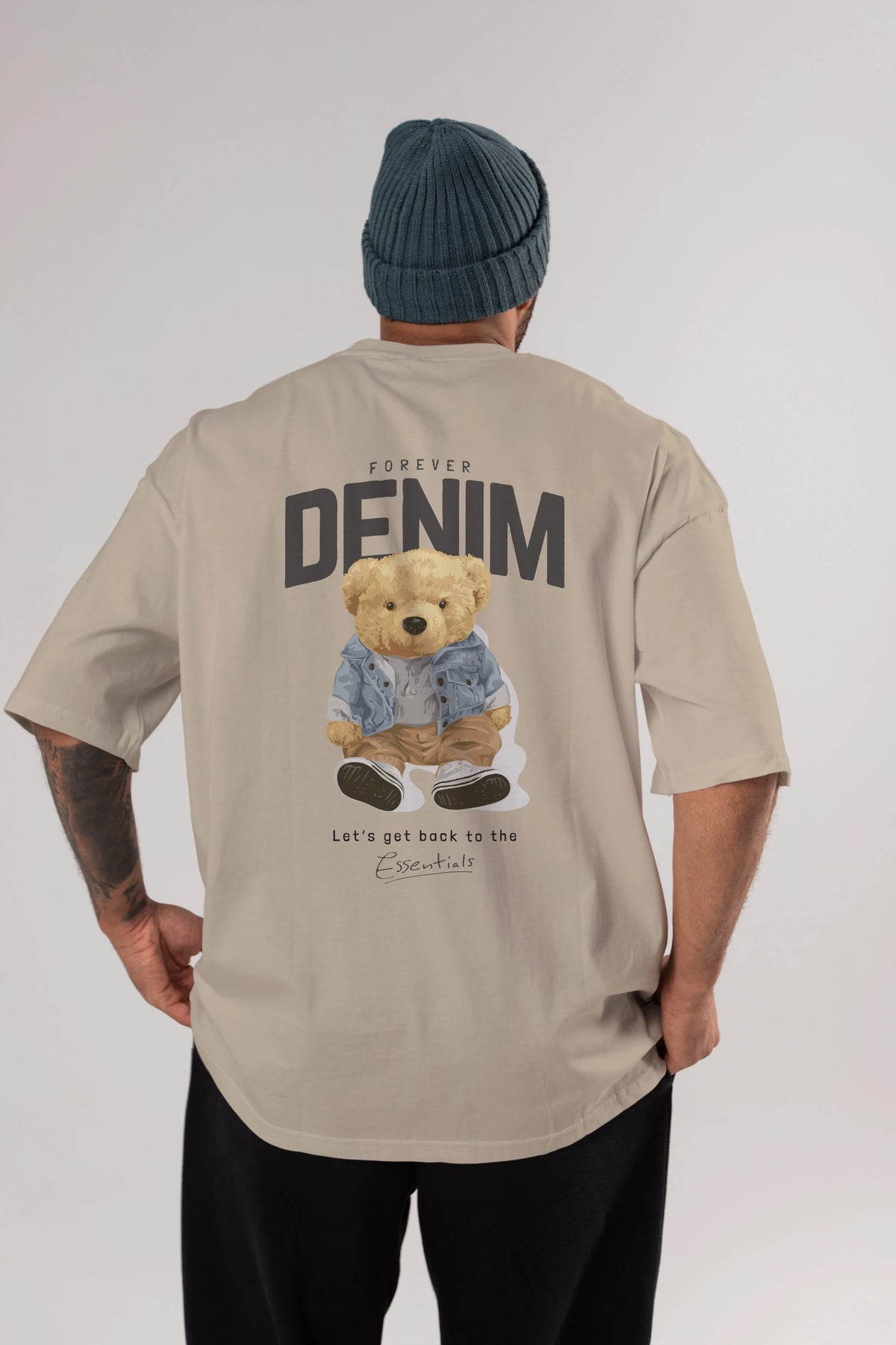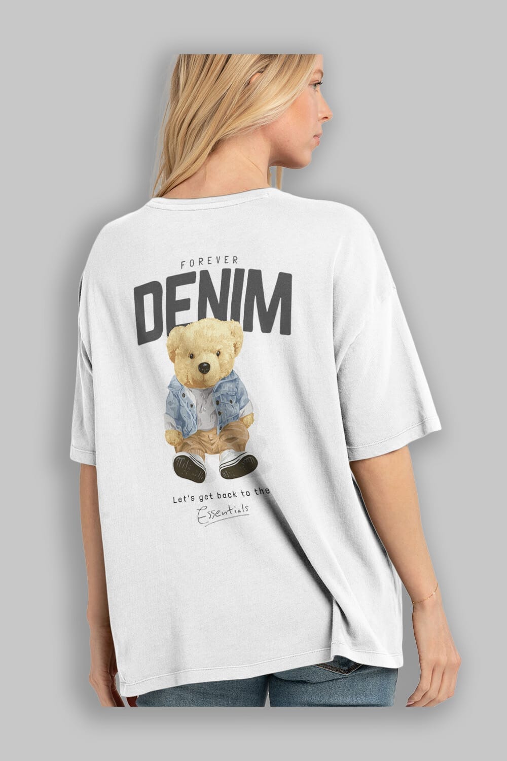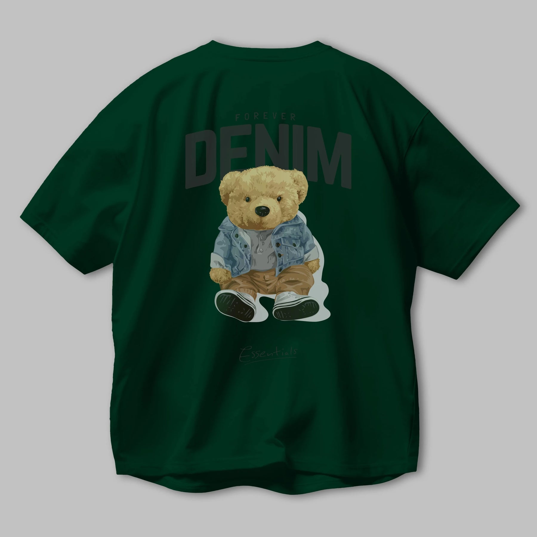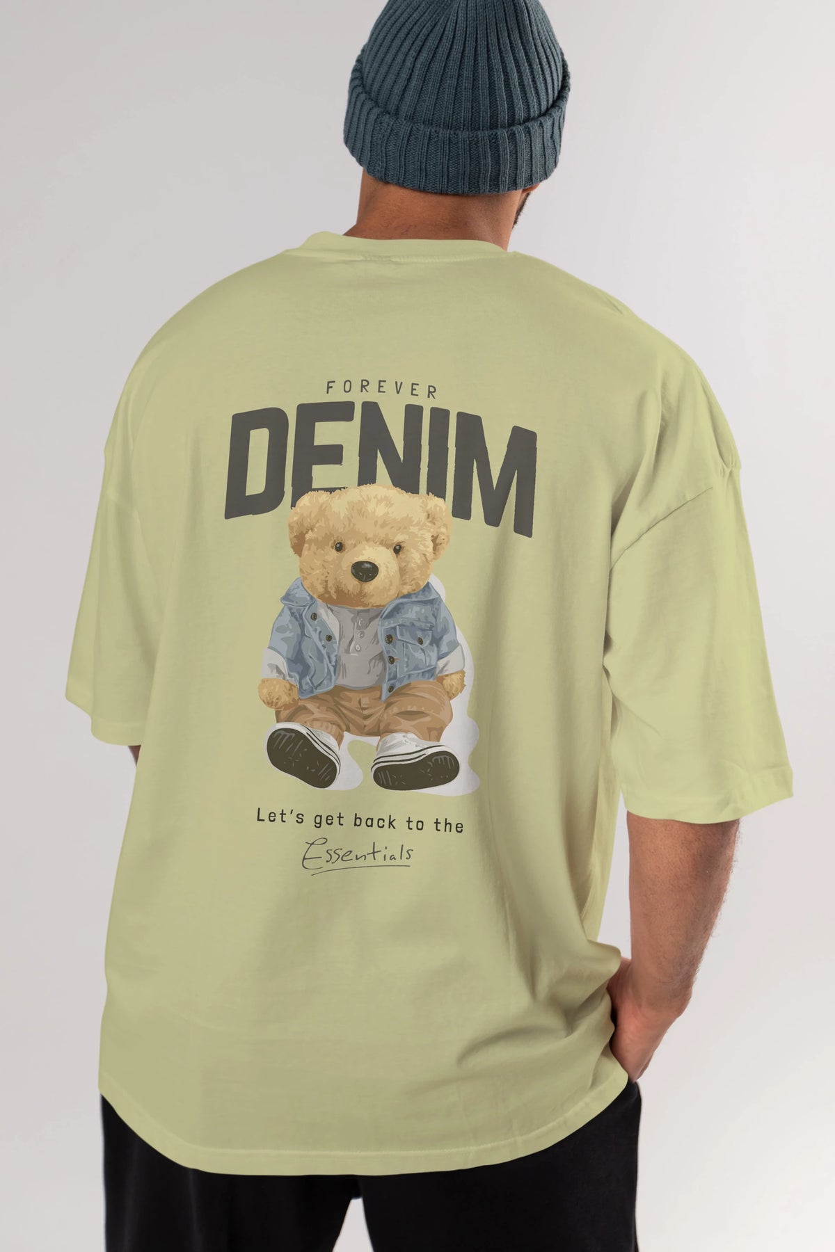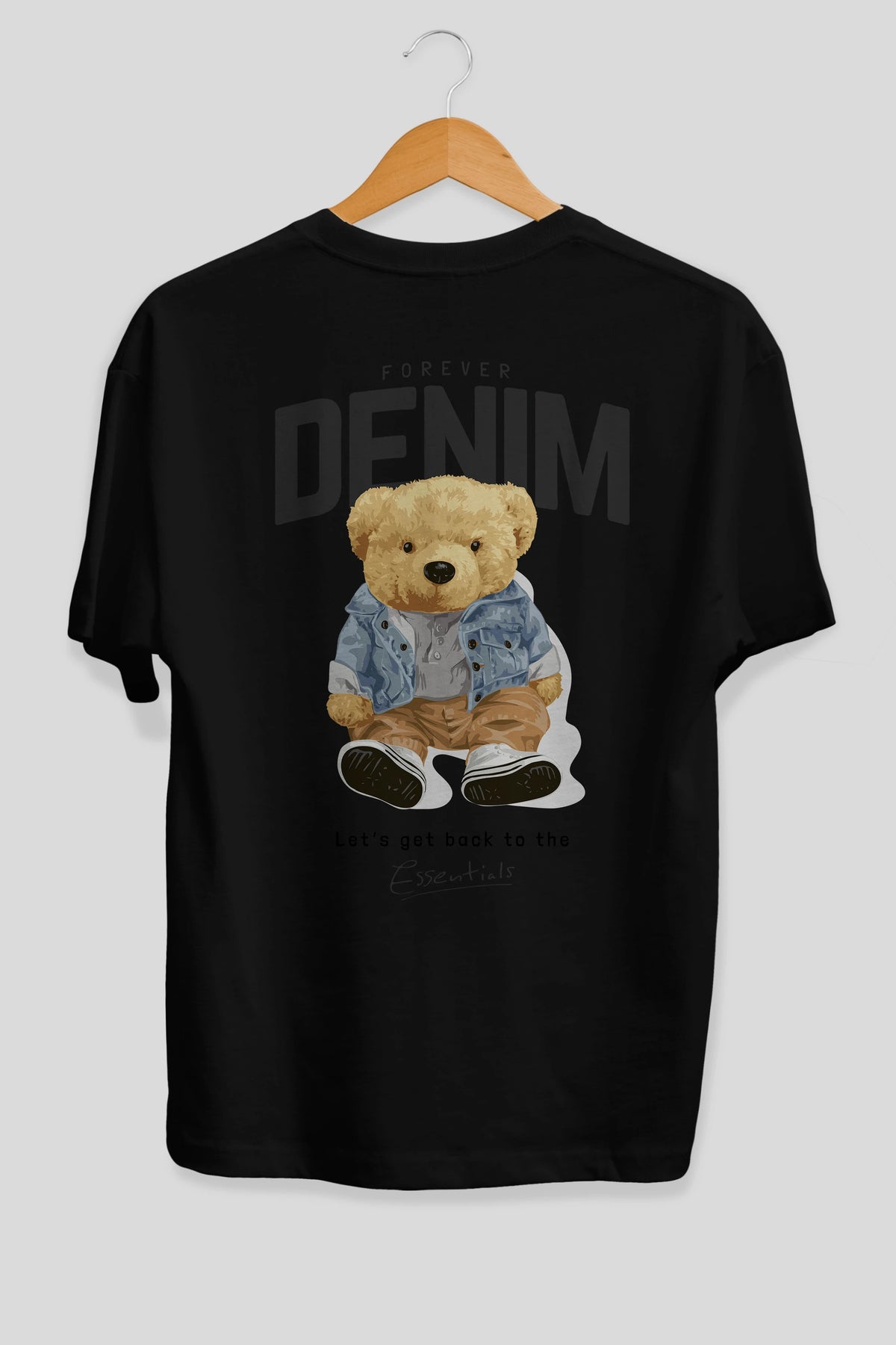Teddy Bear Forever Denim Arka Baskılı Oversize t-shirt Erkek Kadın Unisex %100 Pamuk