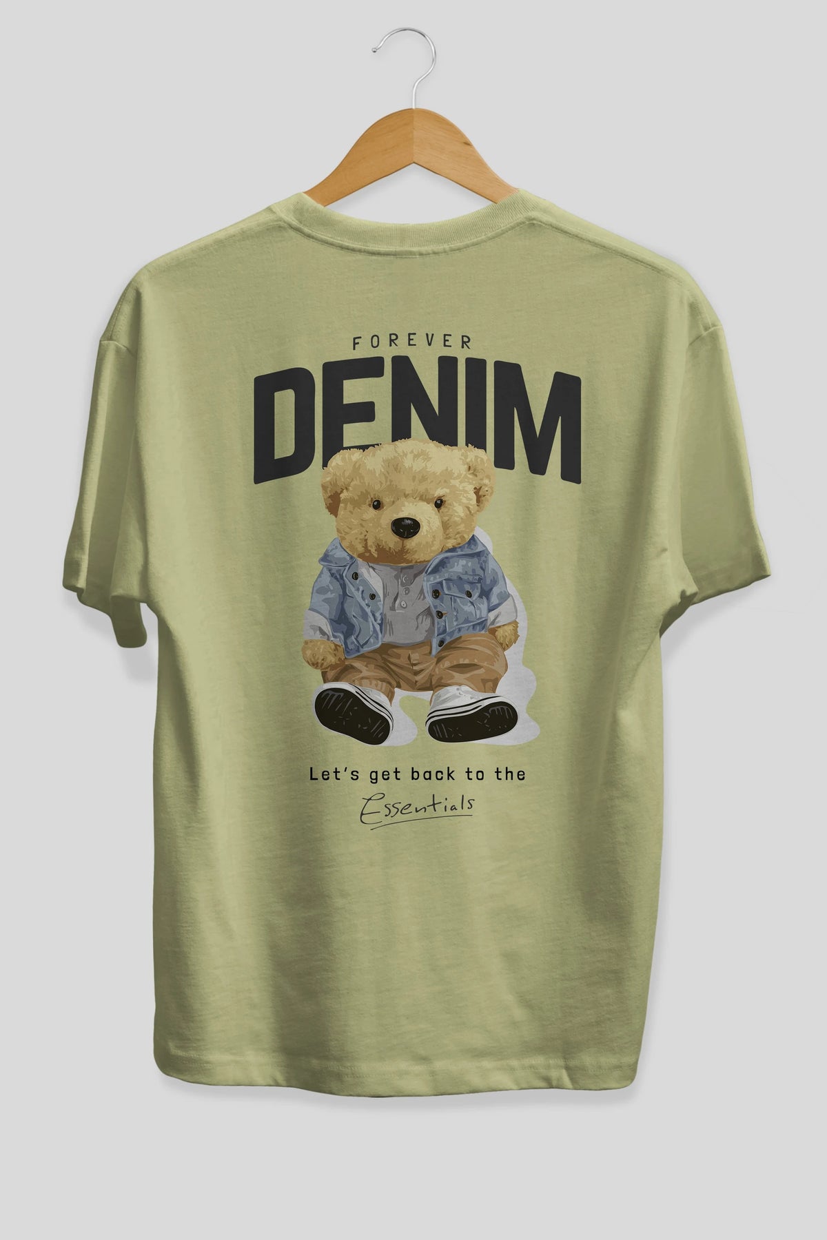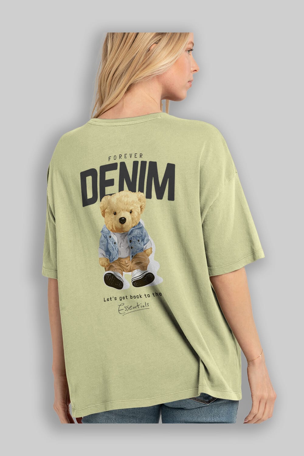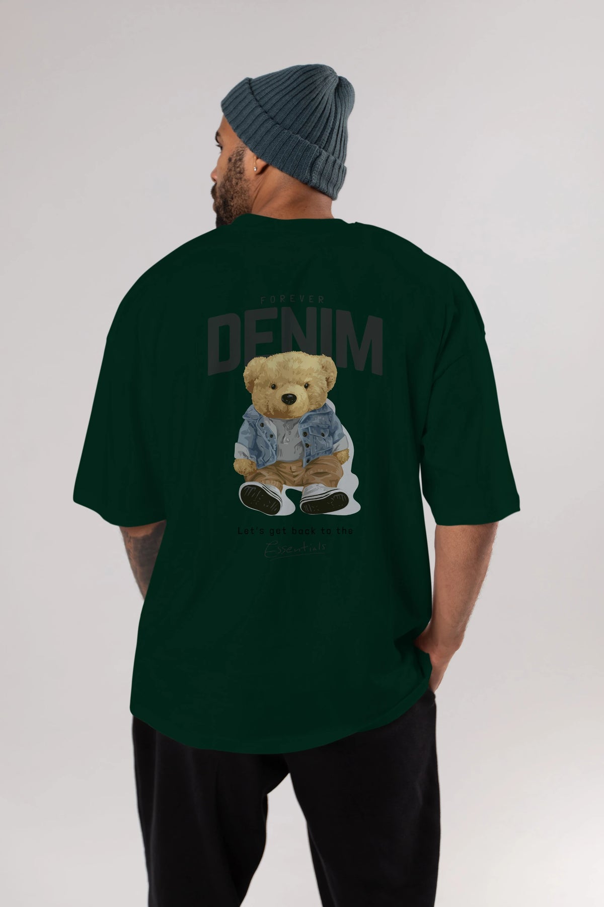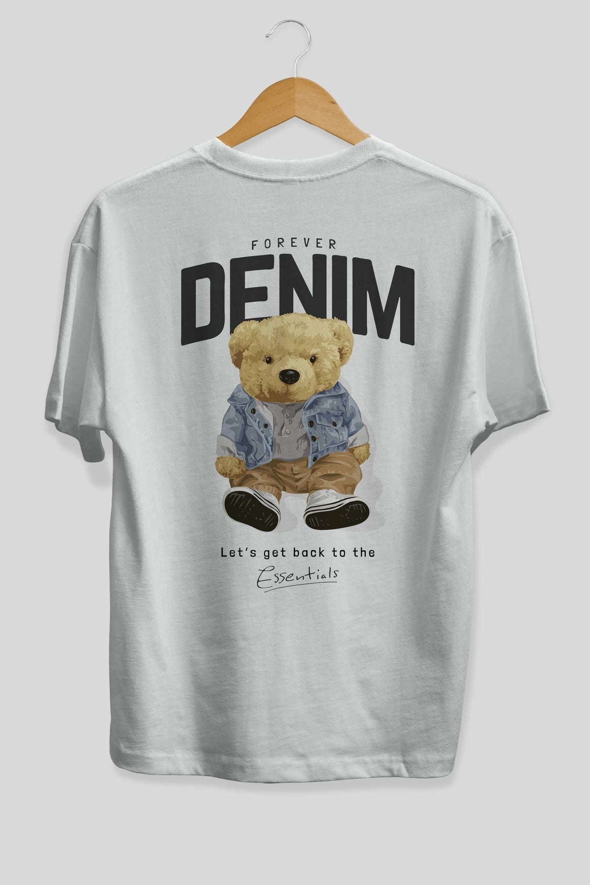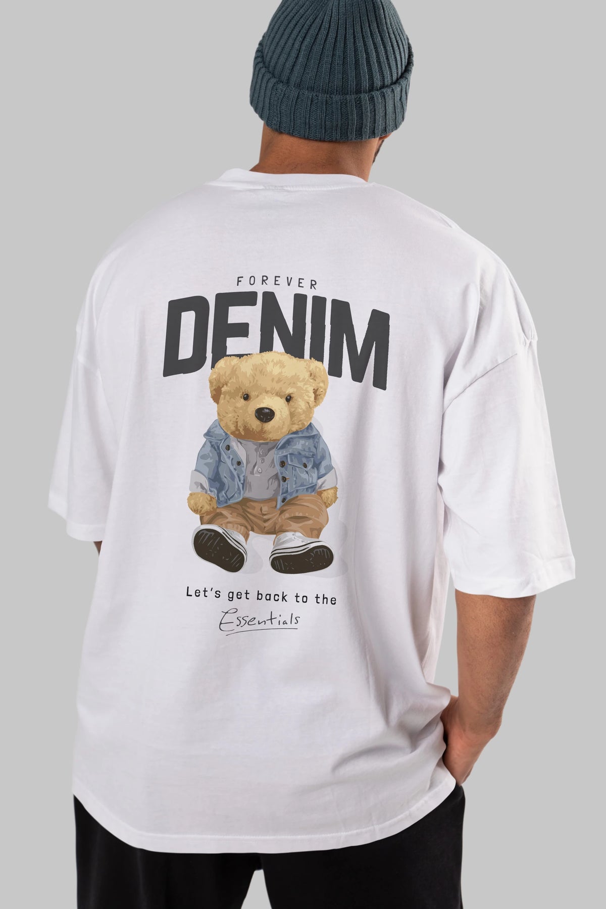 Teddy Bear Forever Denim Arka Baskılı Oversize t-shirt Erkek Kadın Unisex %100 Pamuk
