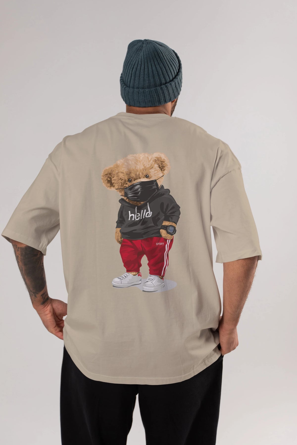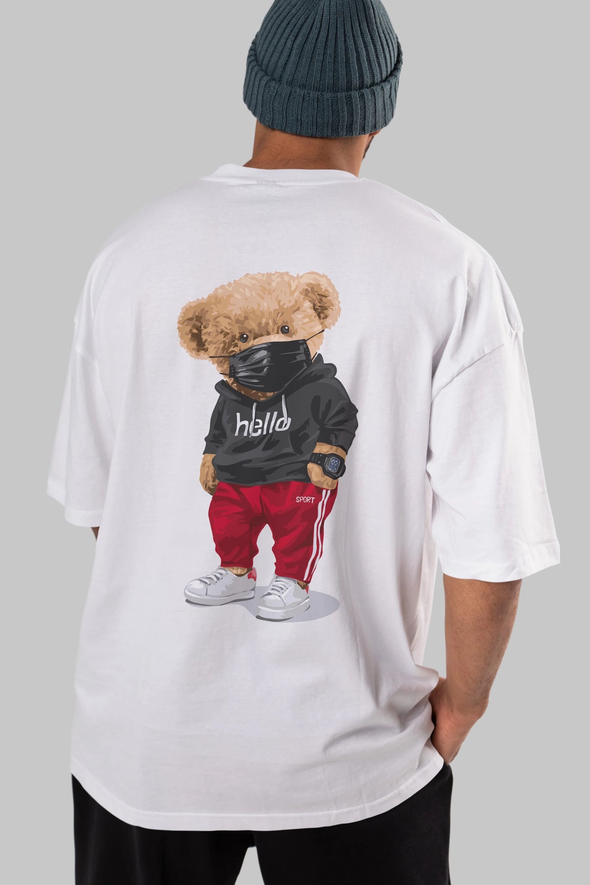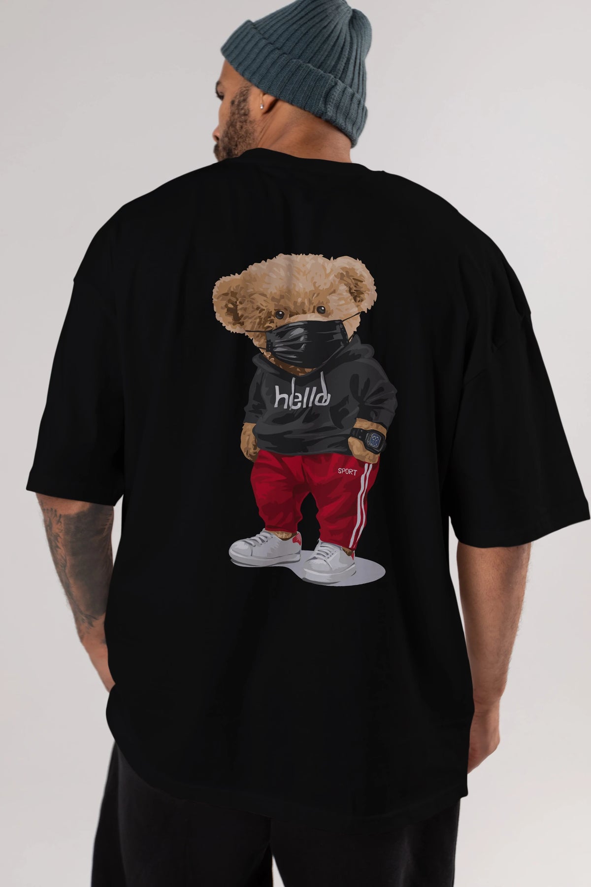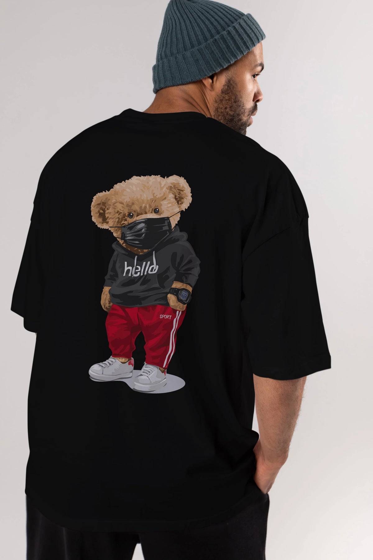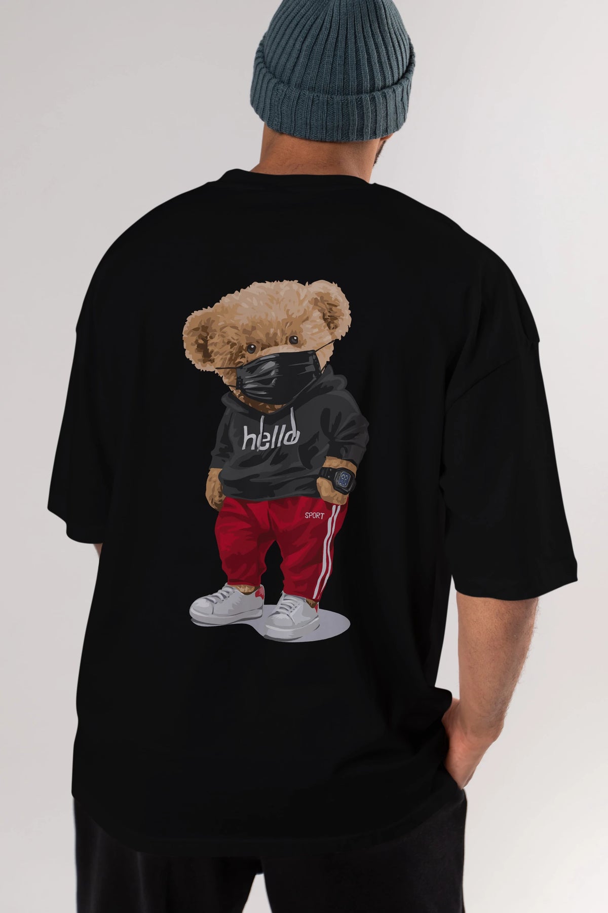 Teddy Bear Hello Sport Arka Baskılı Oversize t-shirt Erkek Kadın Unisex %100 Pamuk