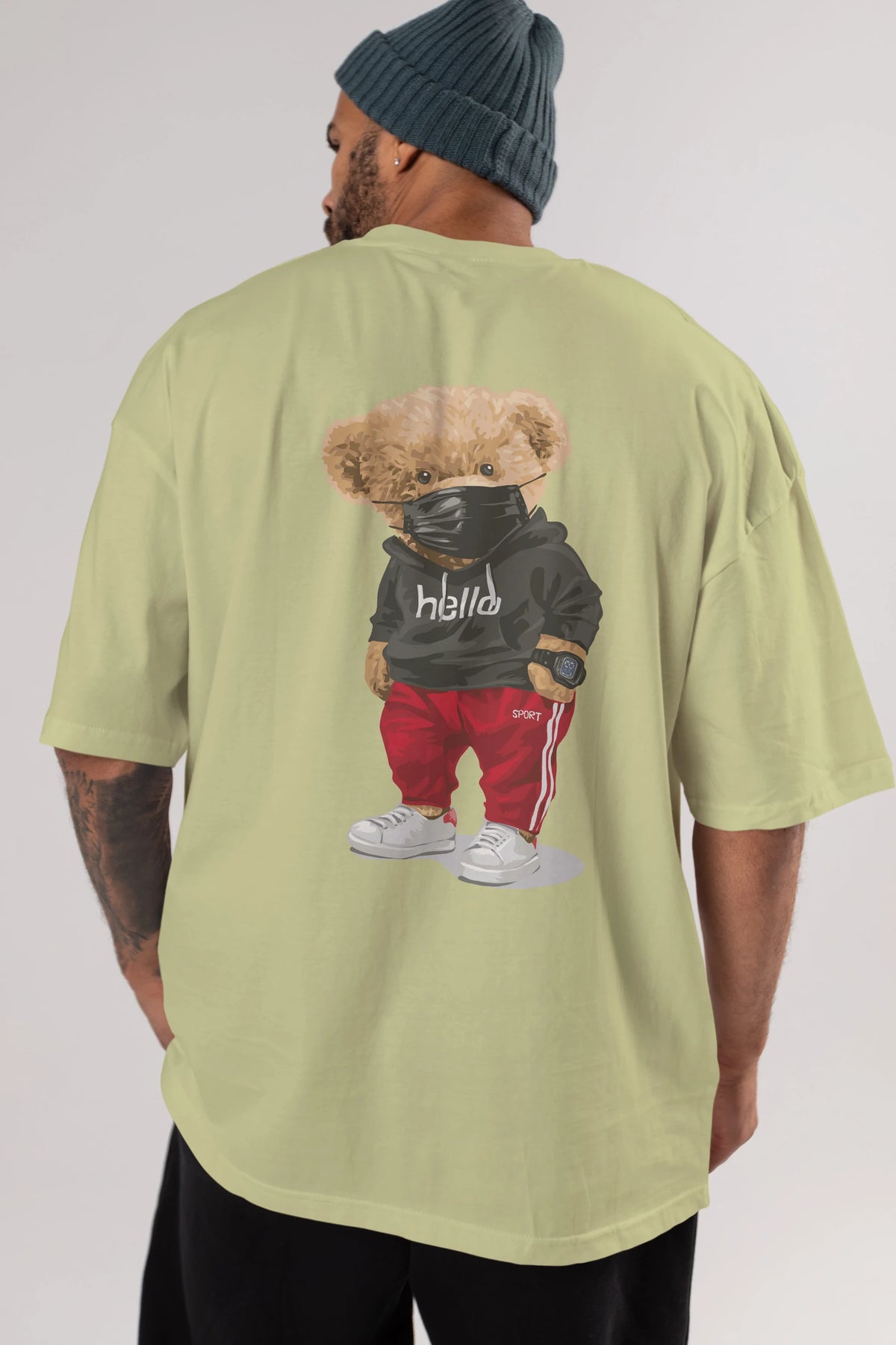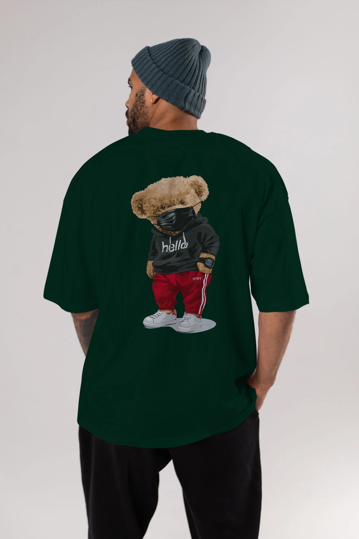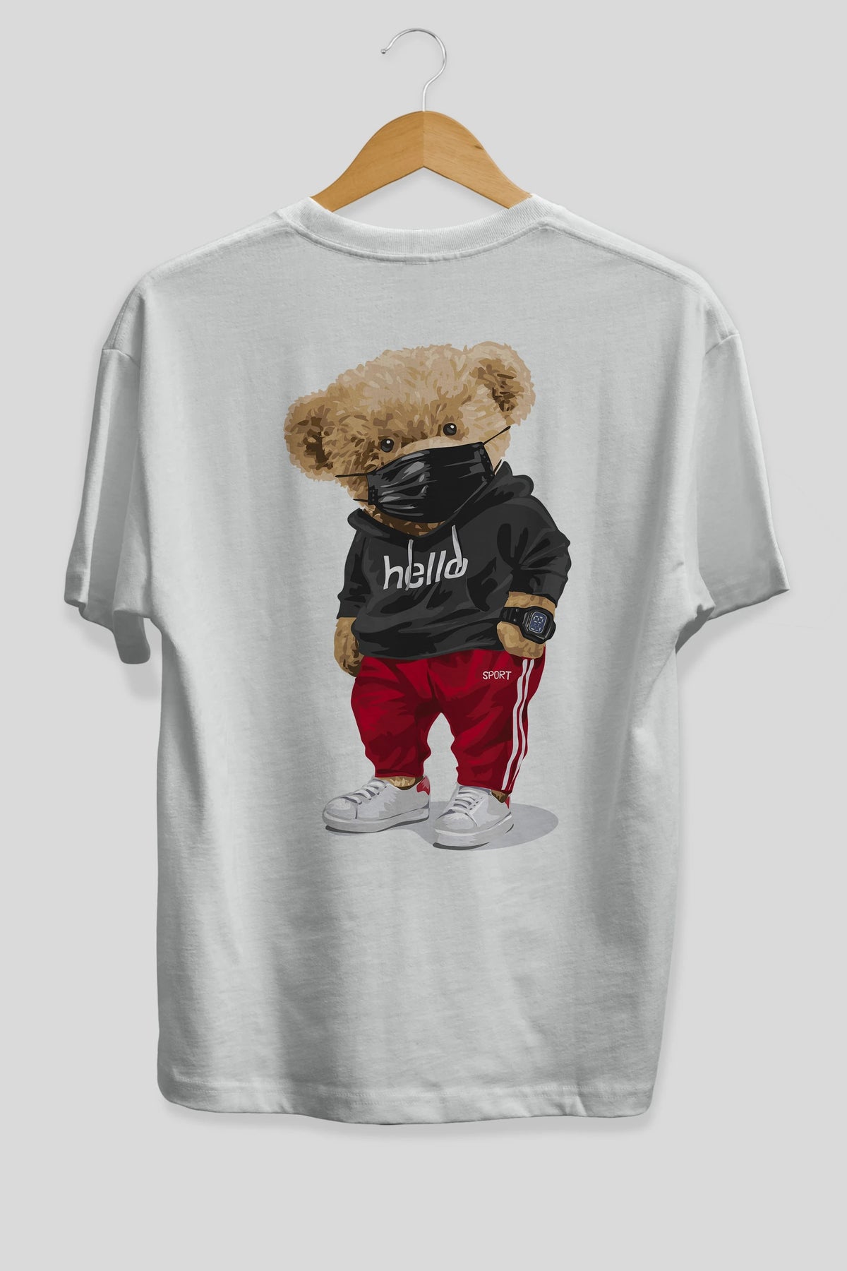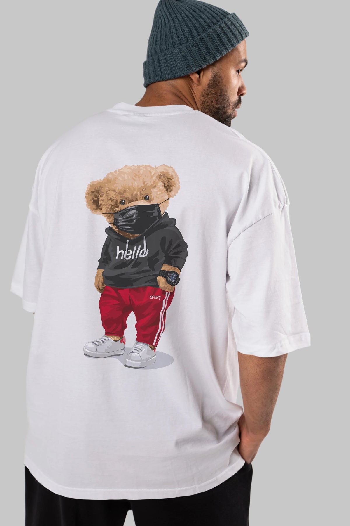 Teddy Bear Hello Sport Arka Baskılı Oversize t-shirt Erkek Kadın Unisex %100 Pamuk