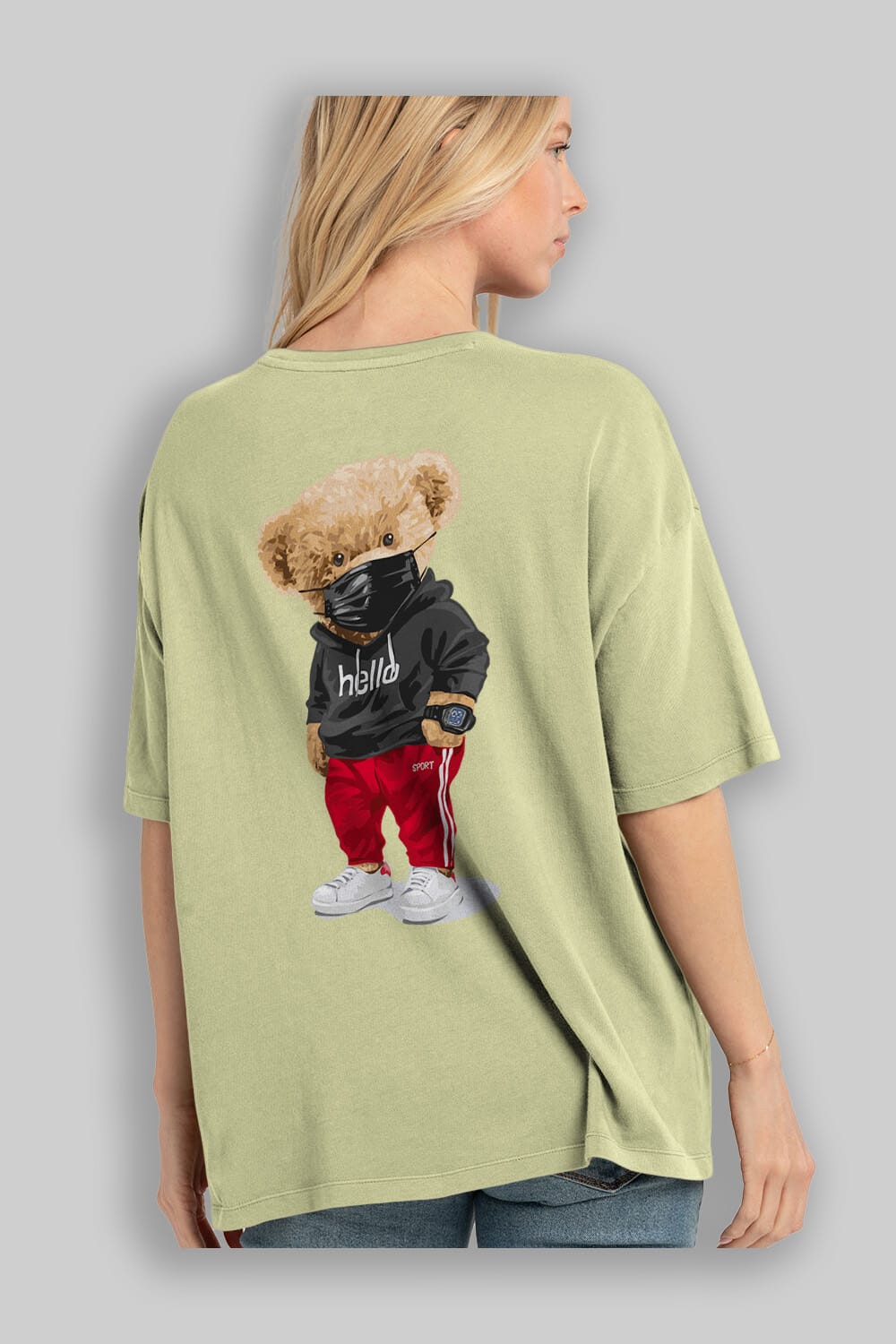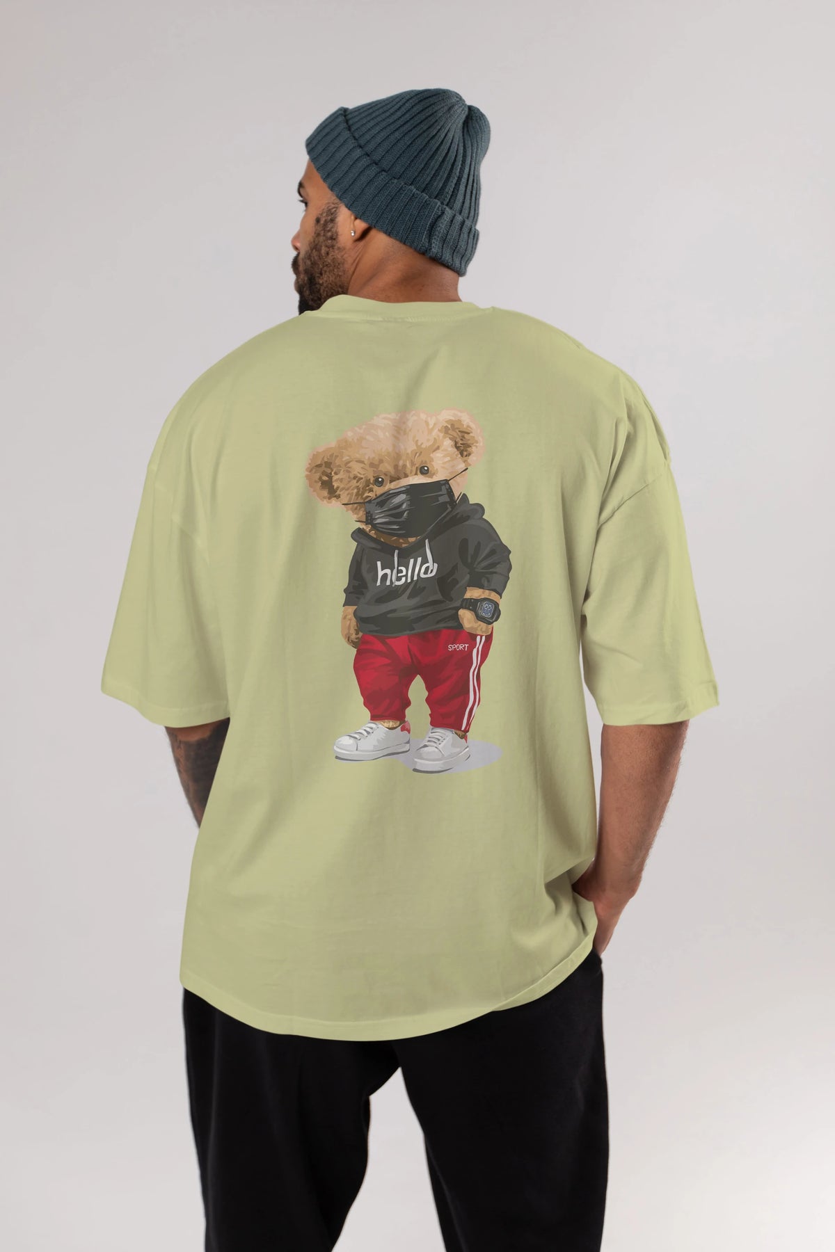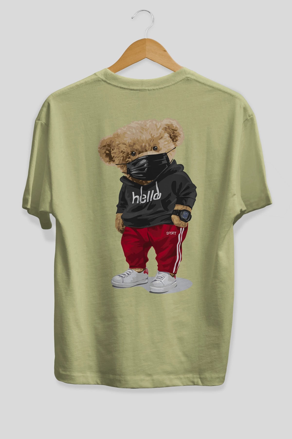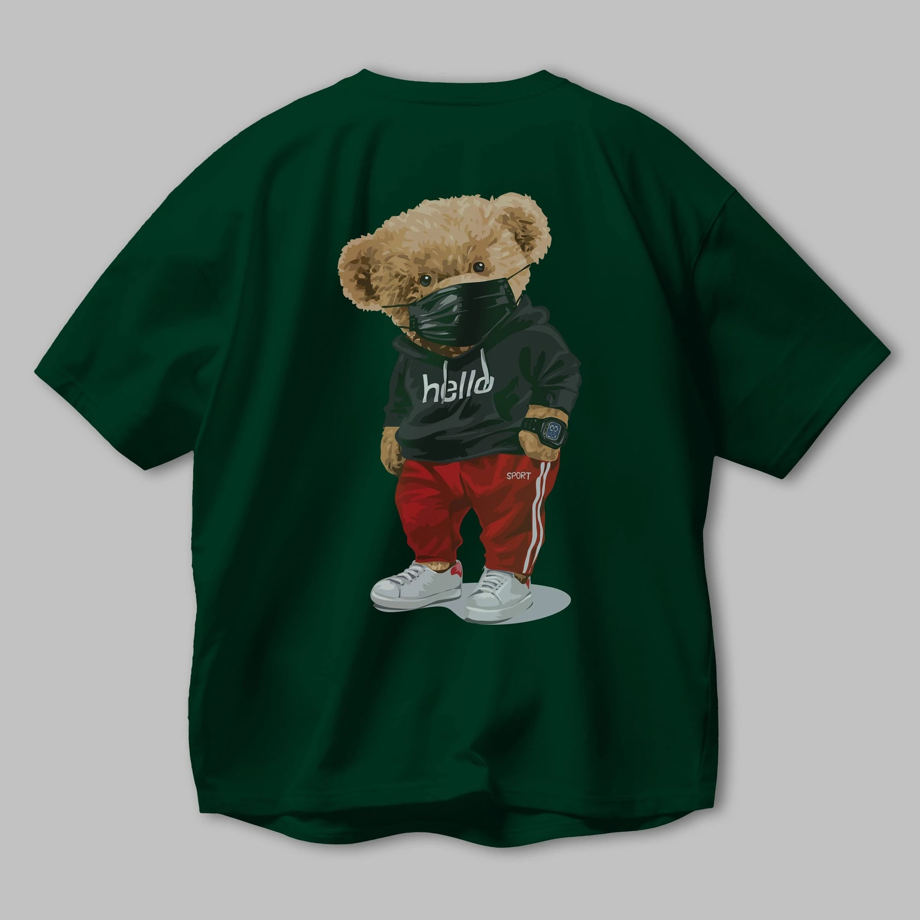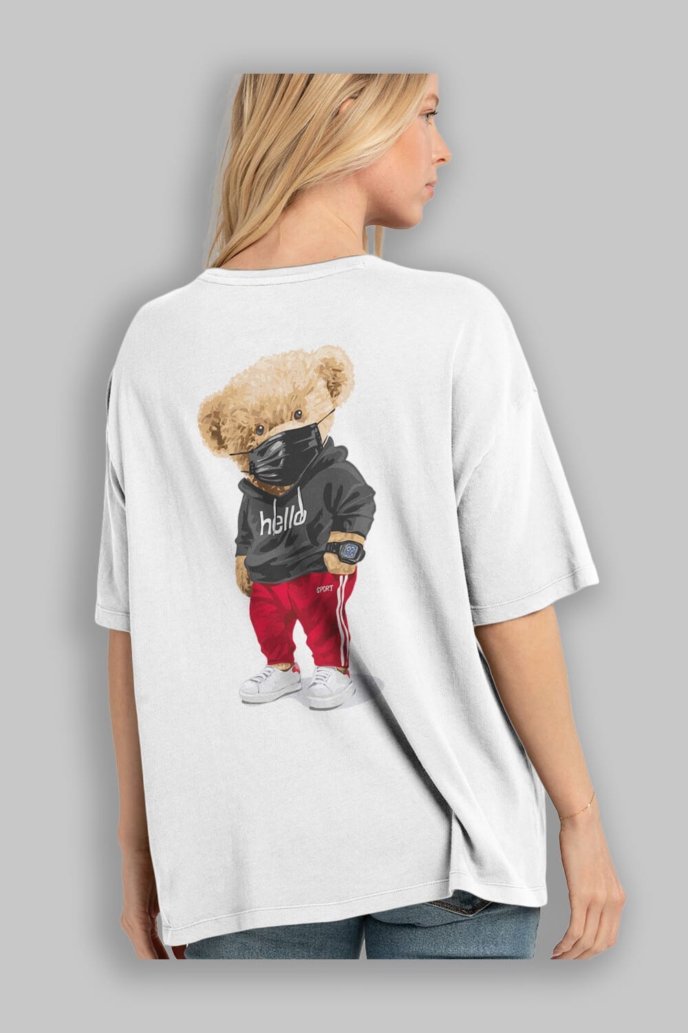 Teddy Bear Hello Sport Arka Baskılı Oversize t-shirt Erkek Kadın Unisex %100 Pamuk