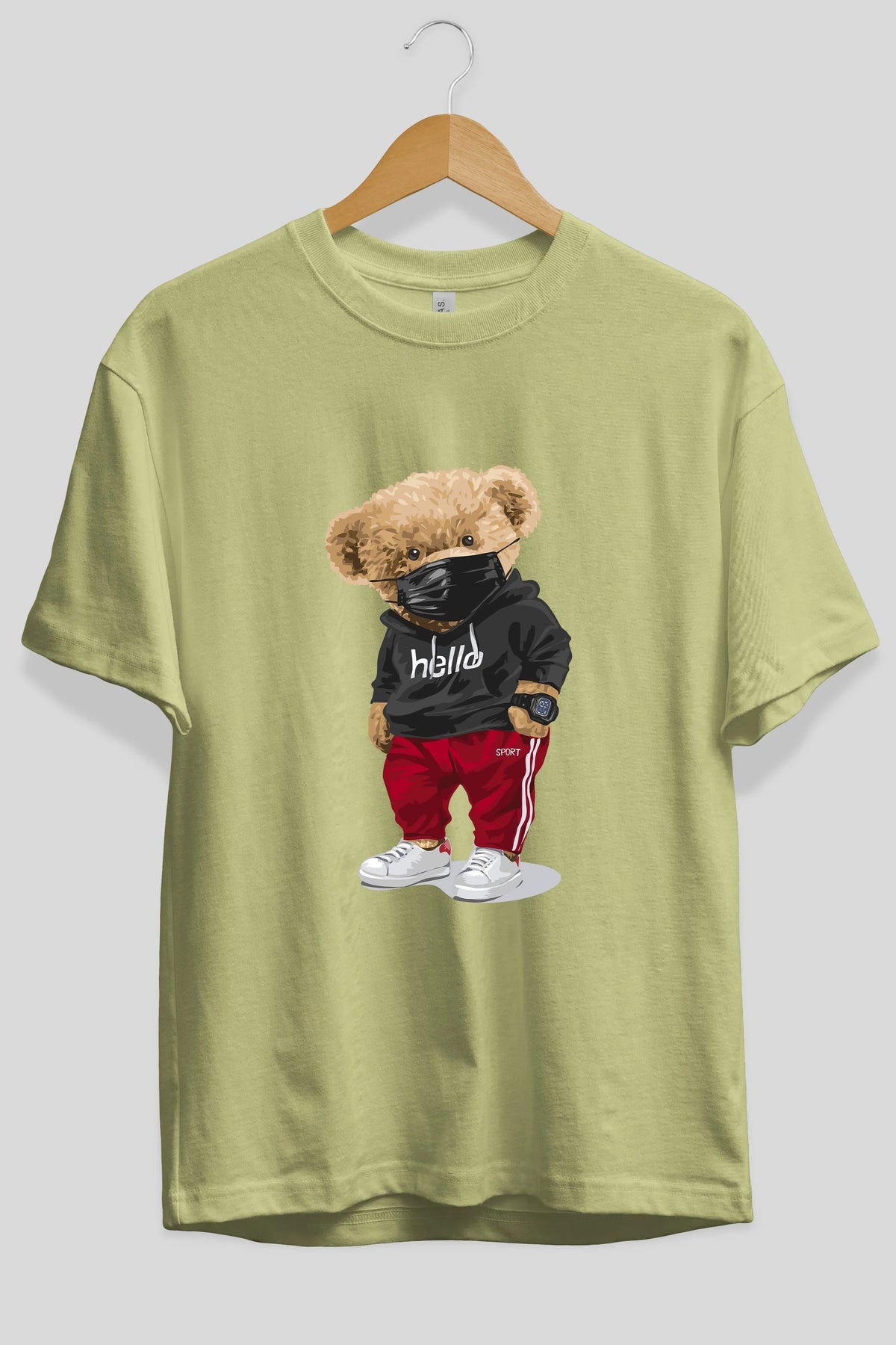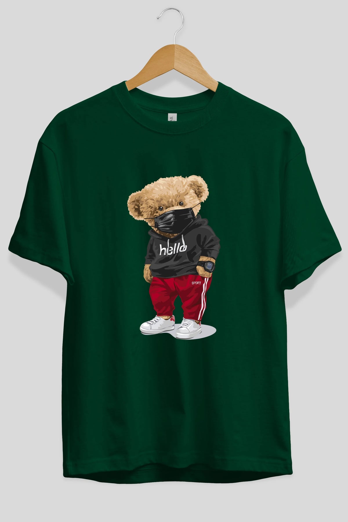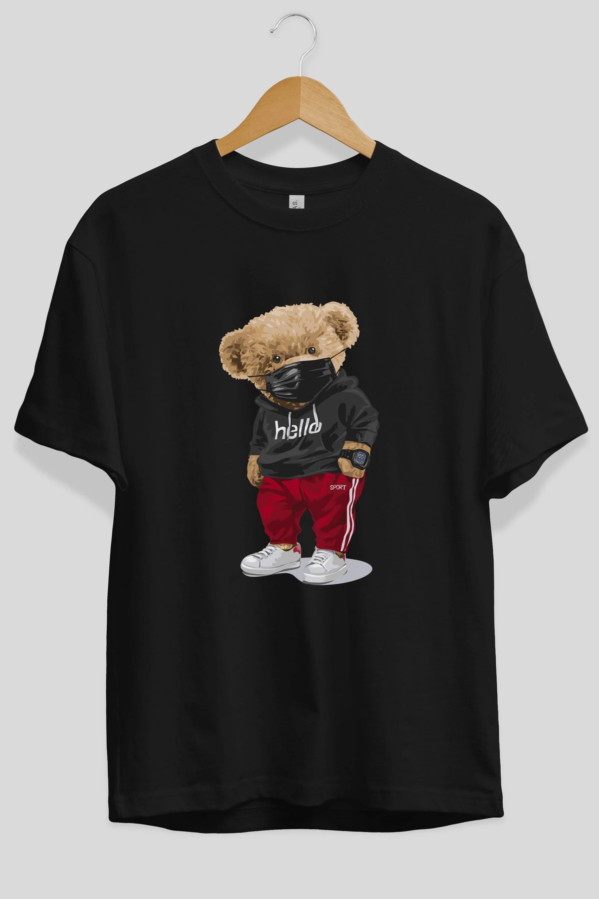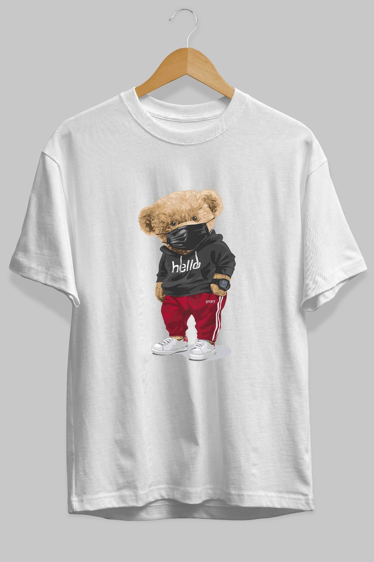 Teddy Bear Hello Sport Ön Baskılı Oversize t-shirt Erkek Kadın Unisex %100 Pamuk