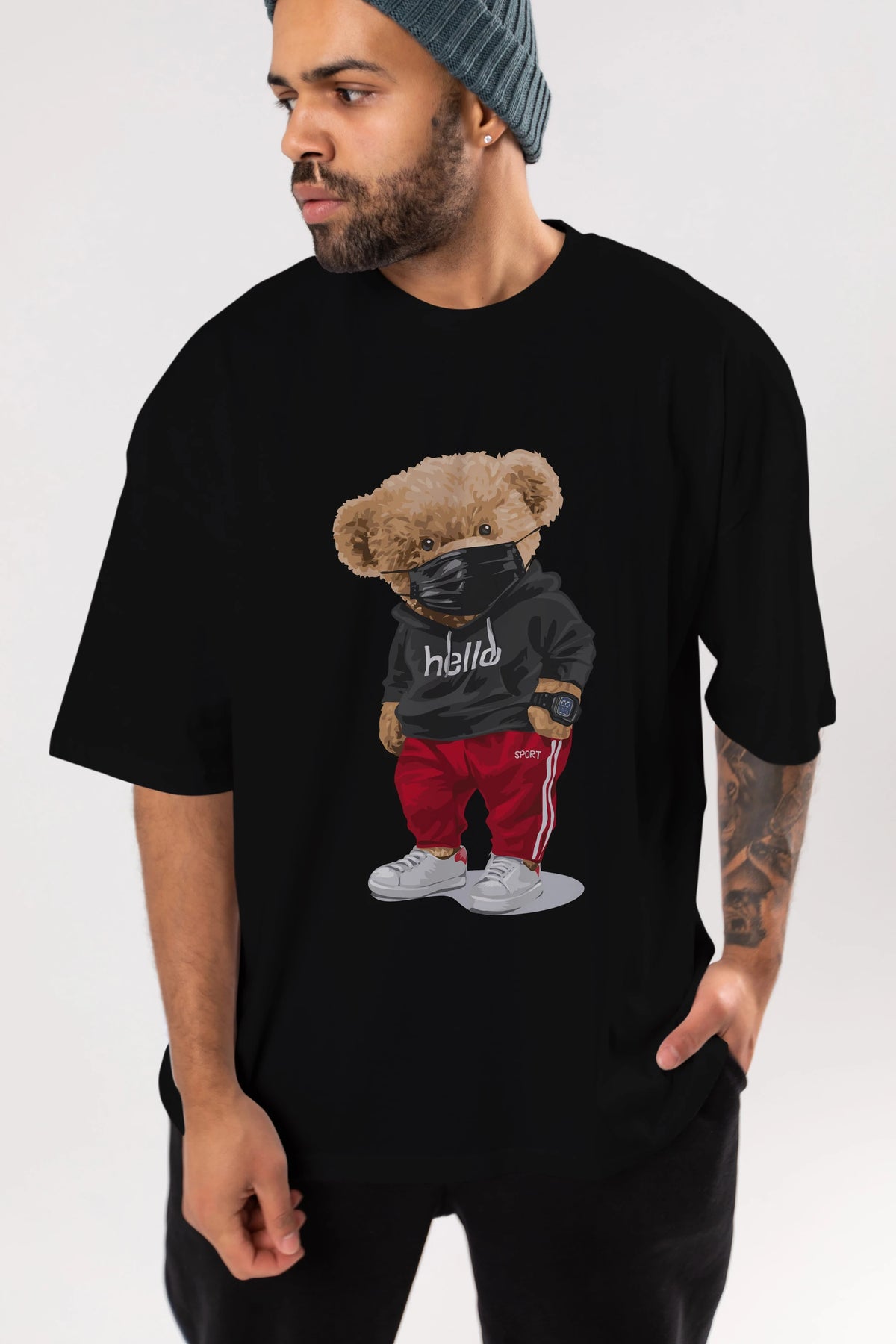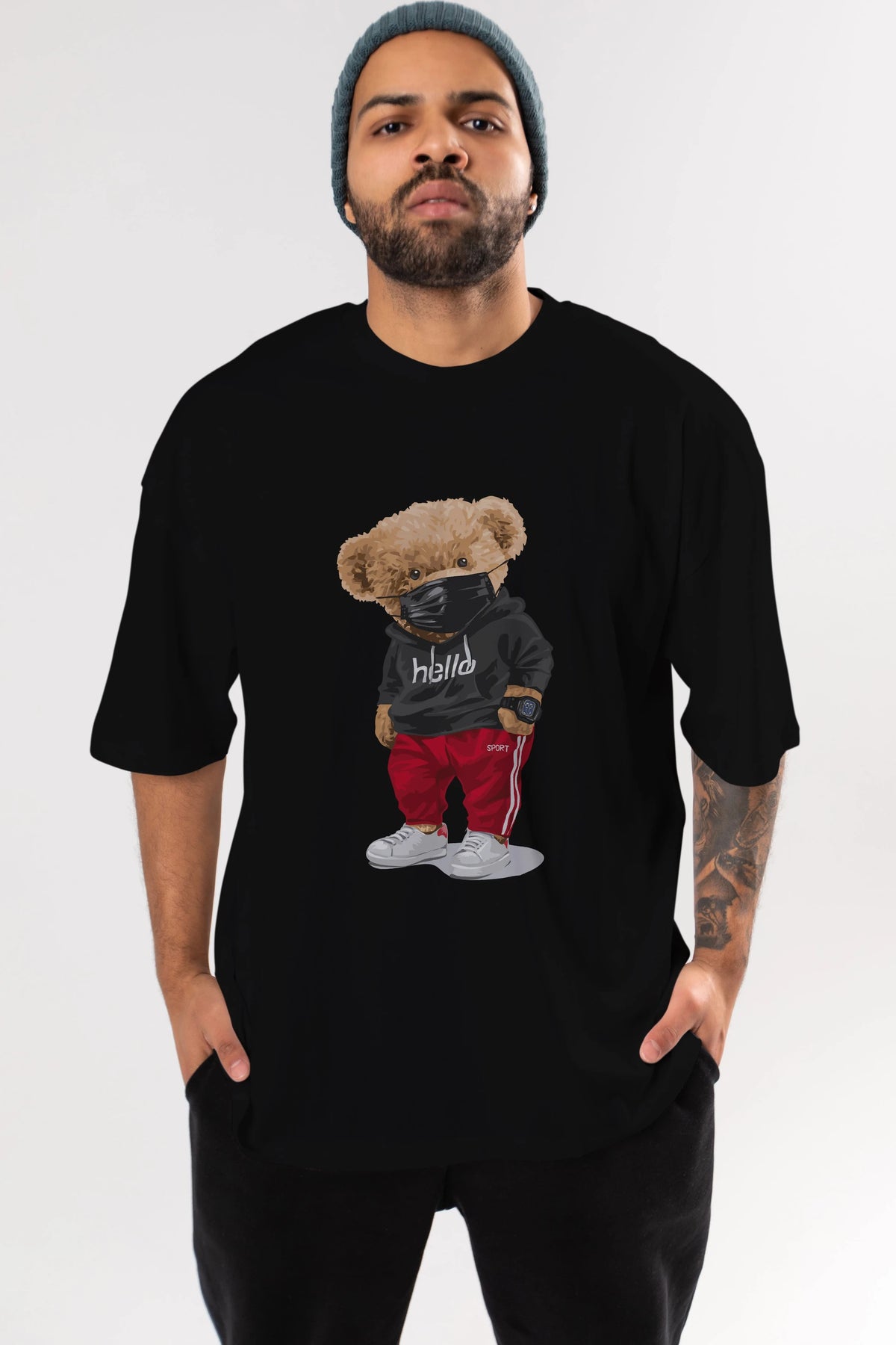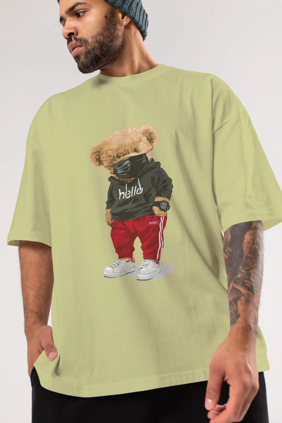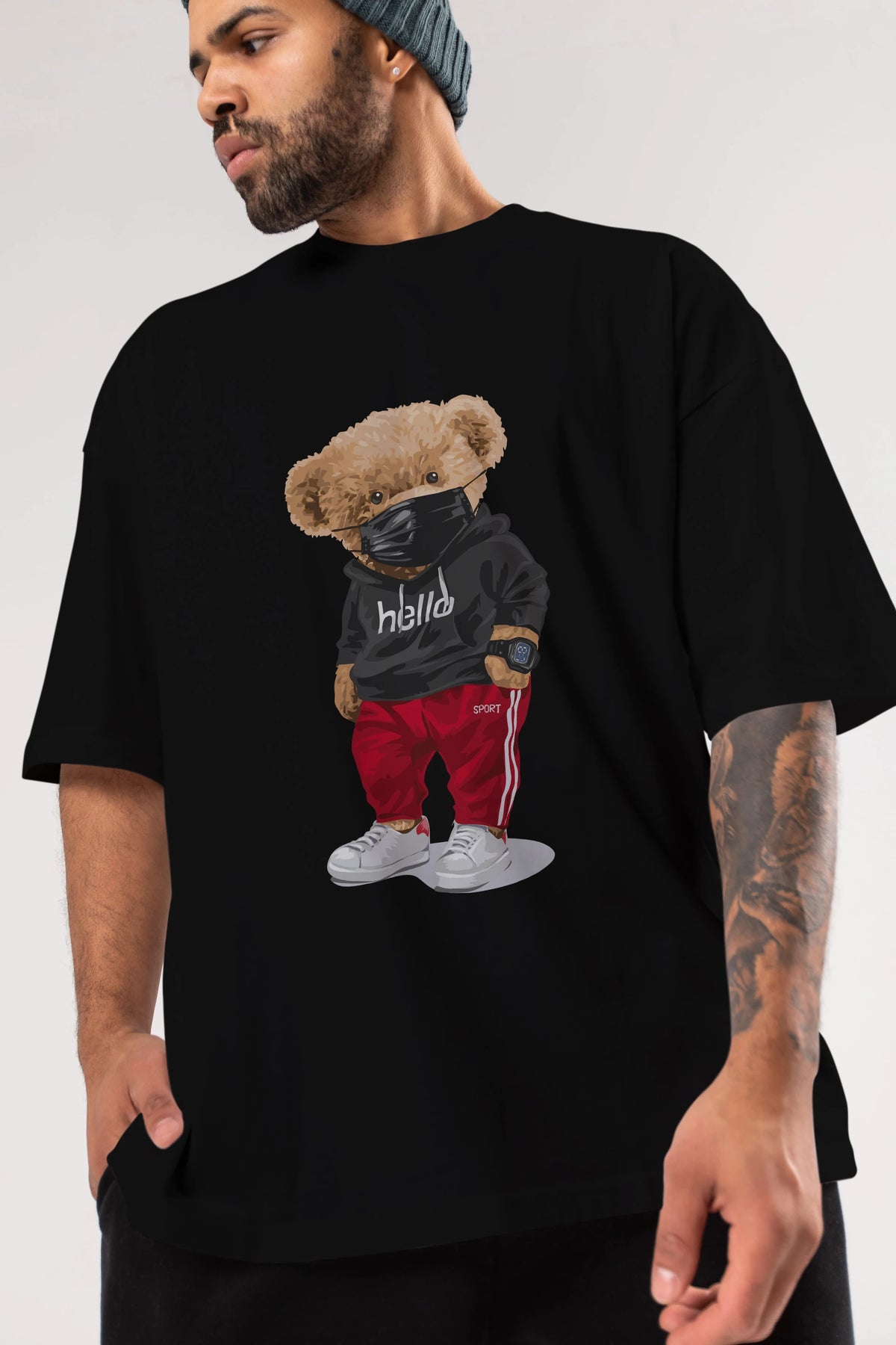 Teddy Bear Hello Sport Ön Baskılı Oversize t-shirt Erkek Kadın Unisex %100 Pamuk