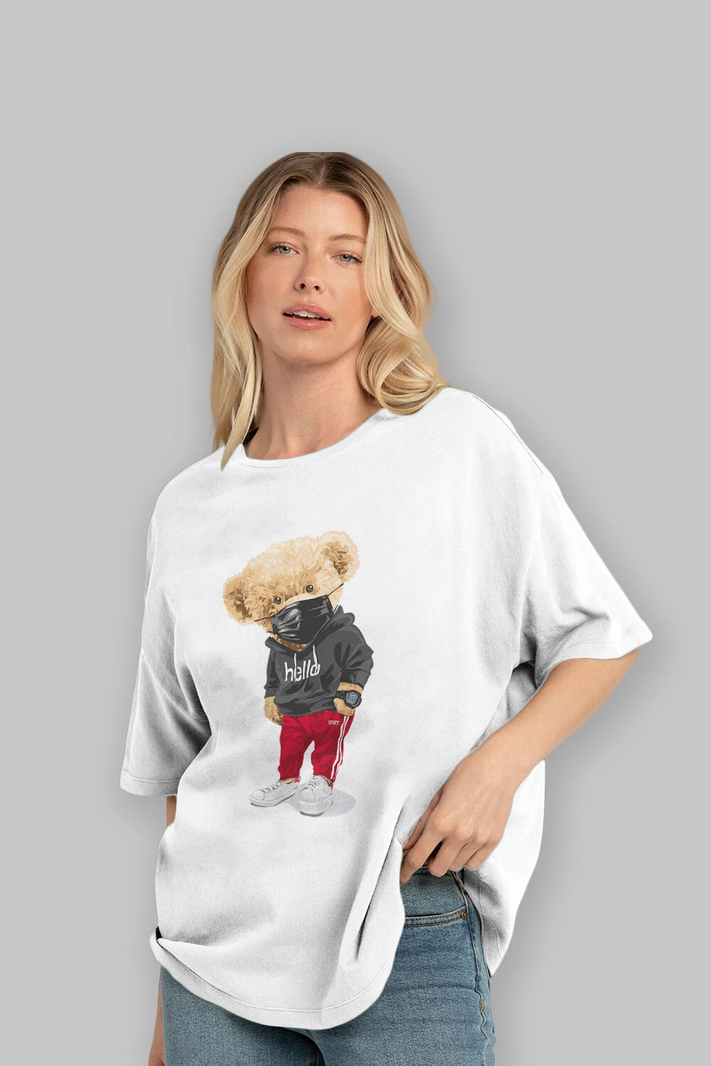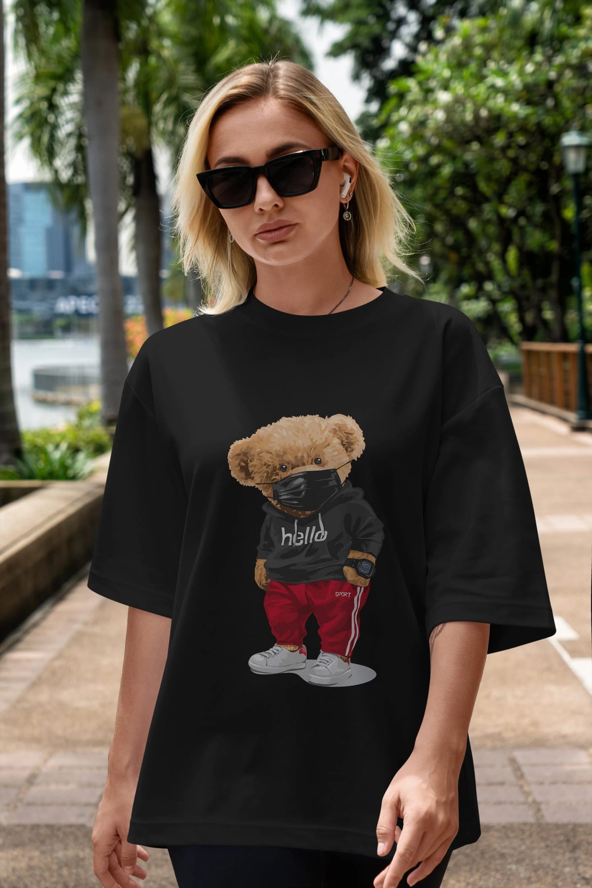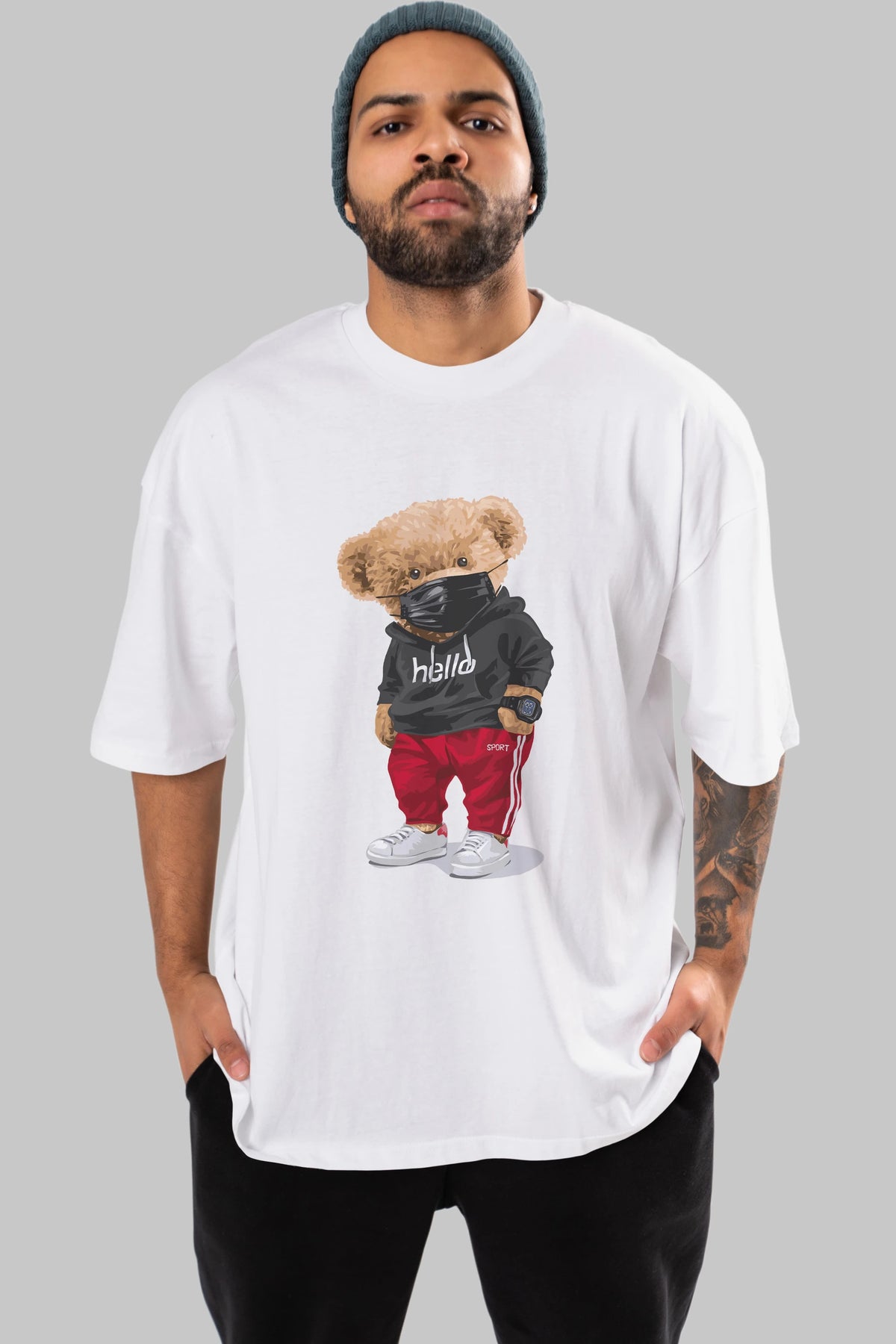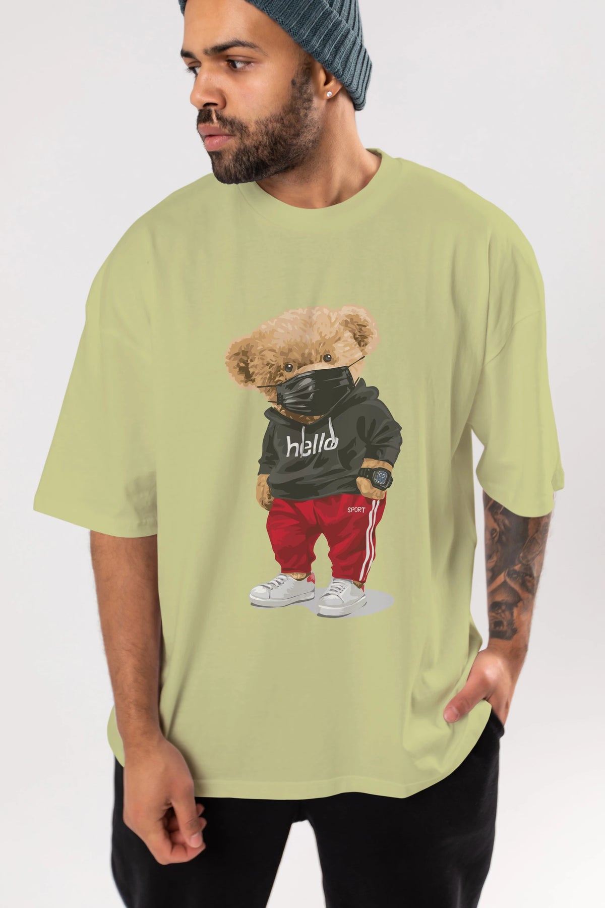 Teddy Bear Hello Sport Ön Baskılı Oversize t-shirt Erkek Kadın Unisex %100 Pamuk