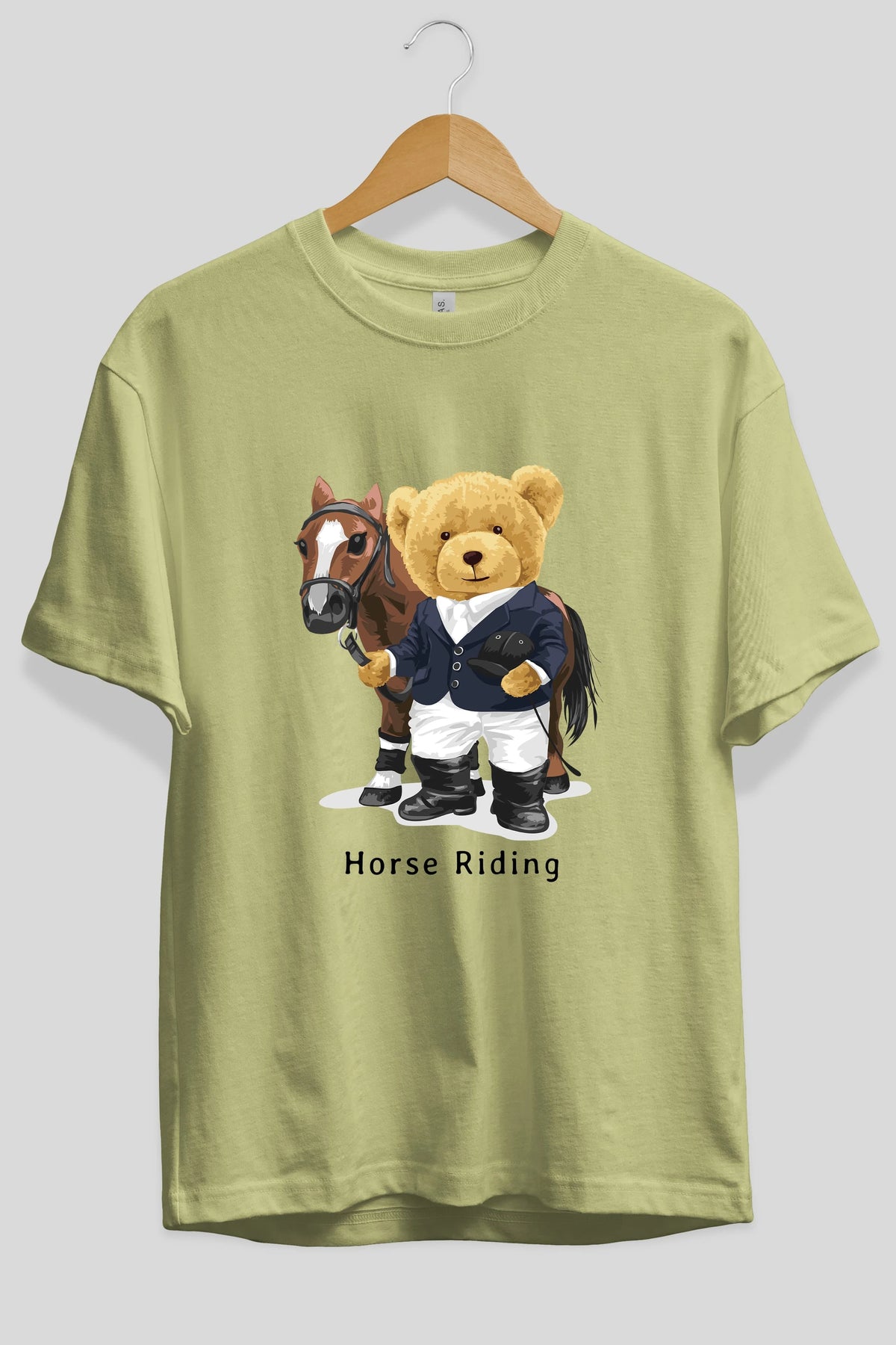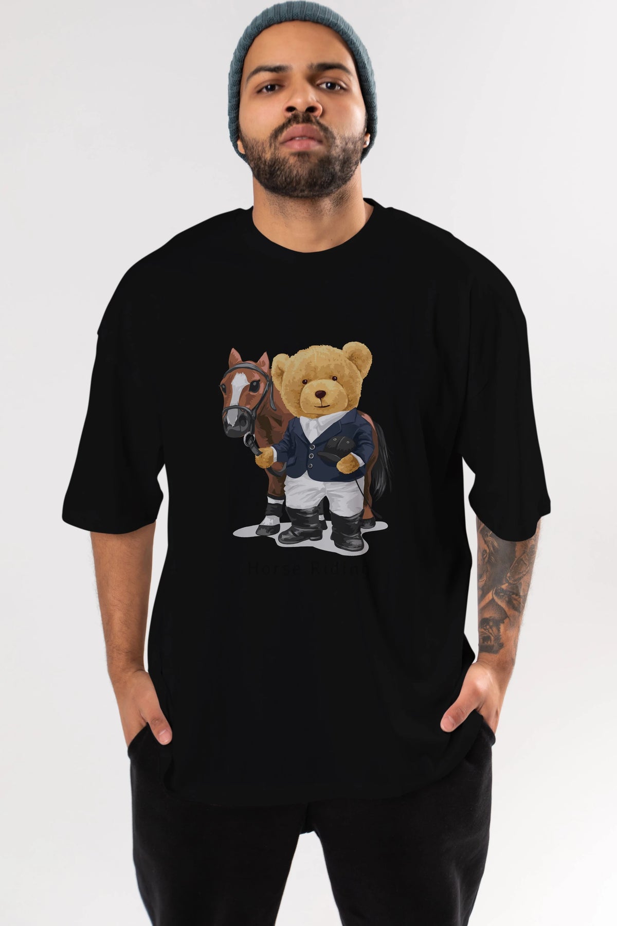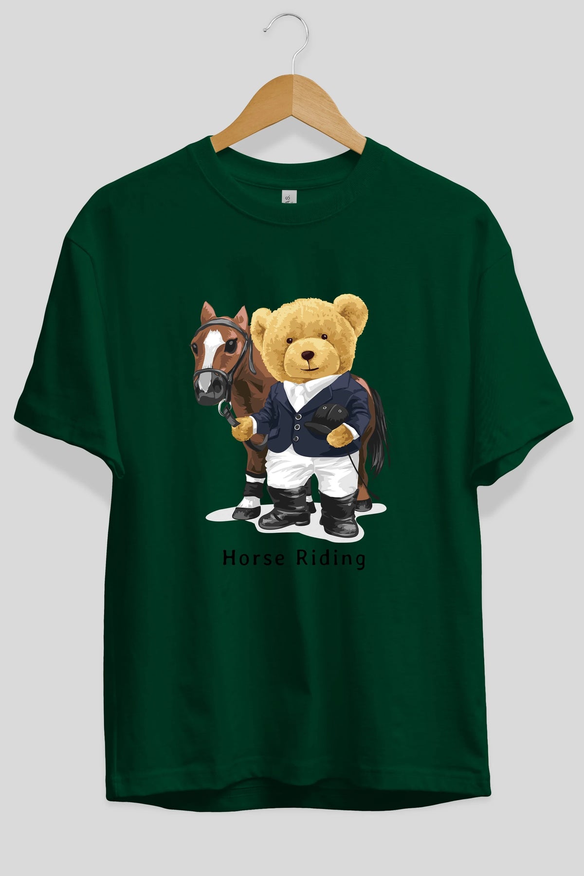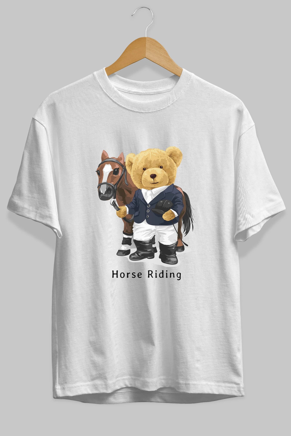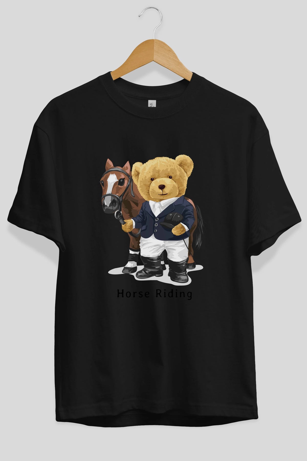 Teddy Bear Horse Riding Ön Baskılı Oversize t-shirt Erkek Kadın Unisex %100 Pamuk