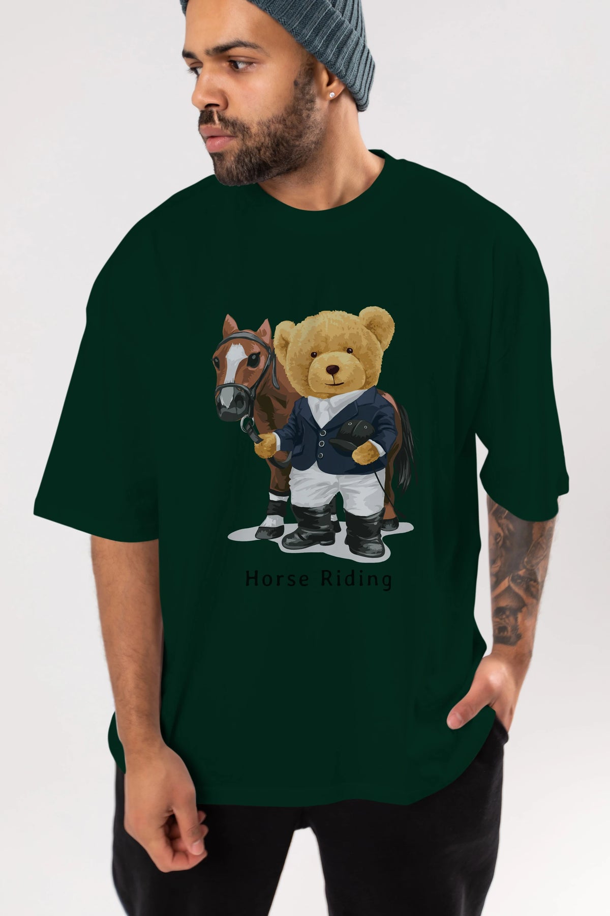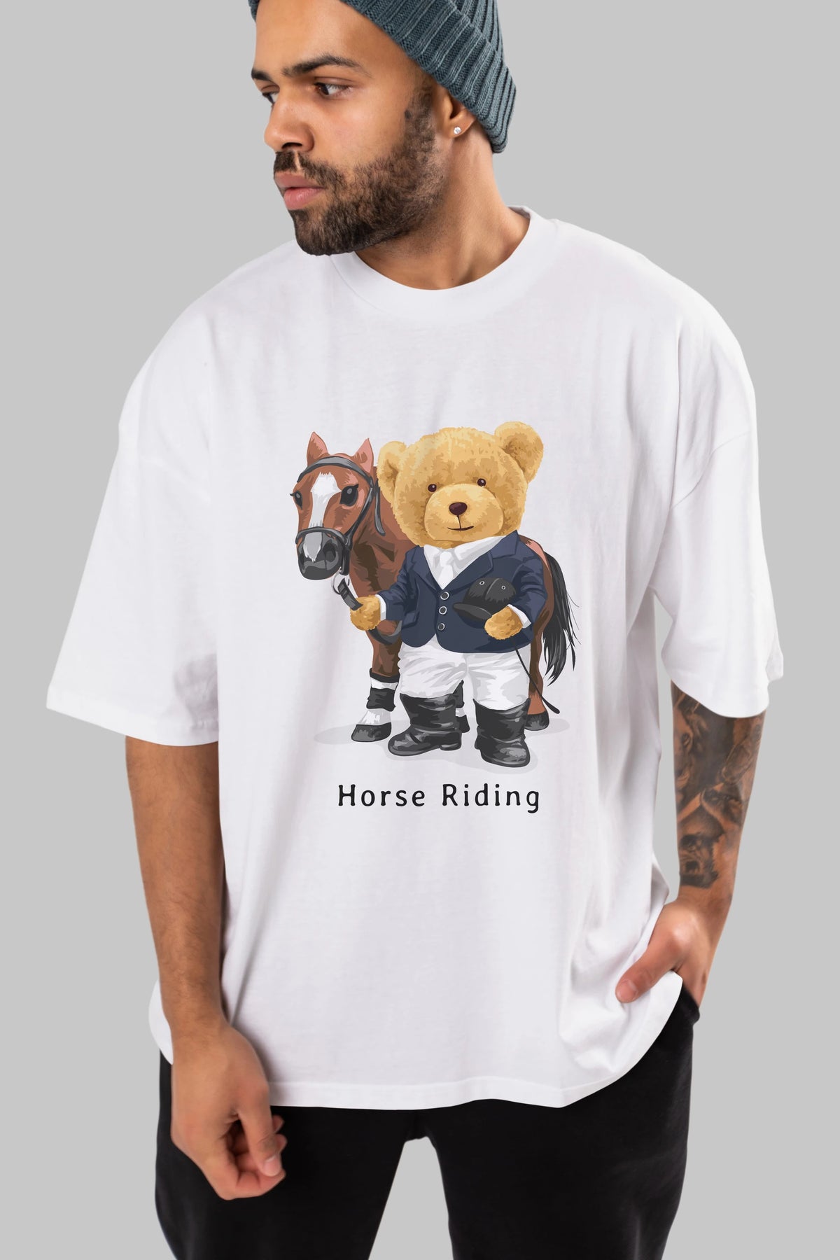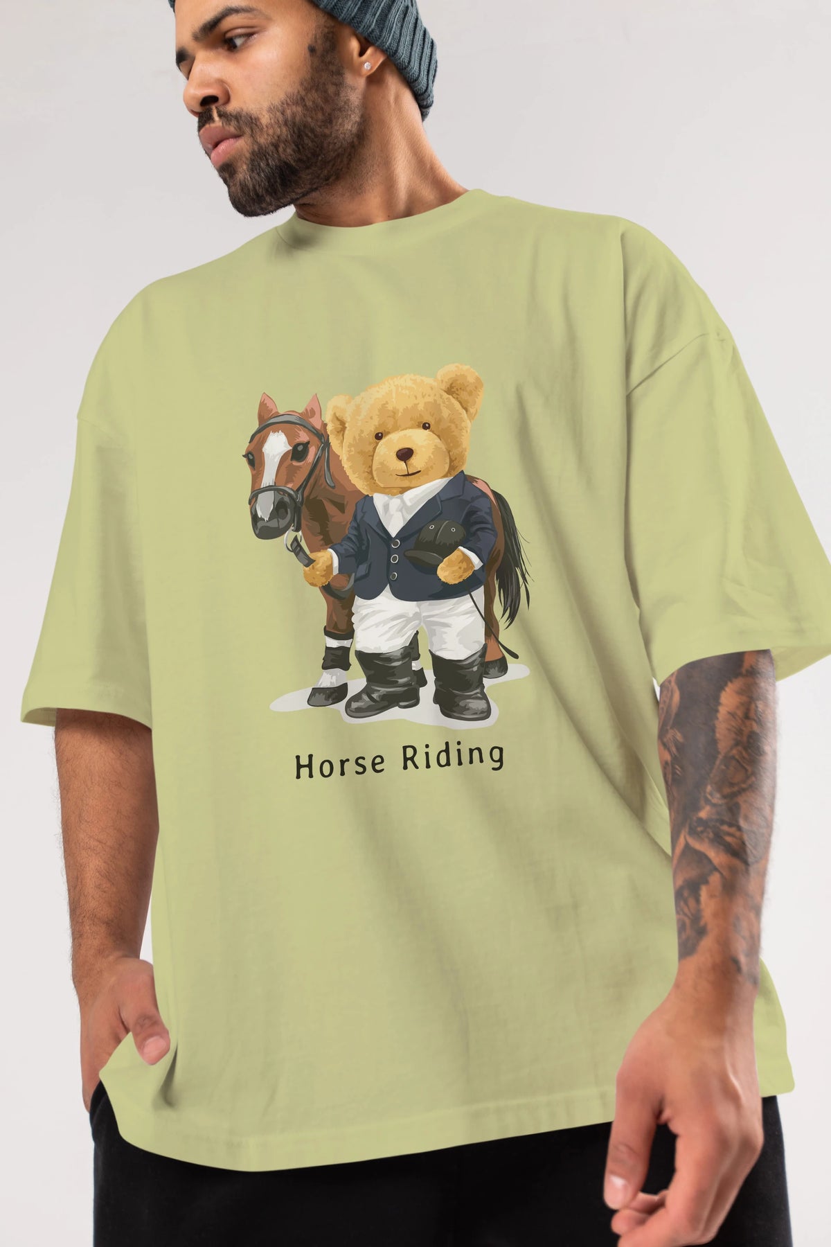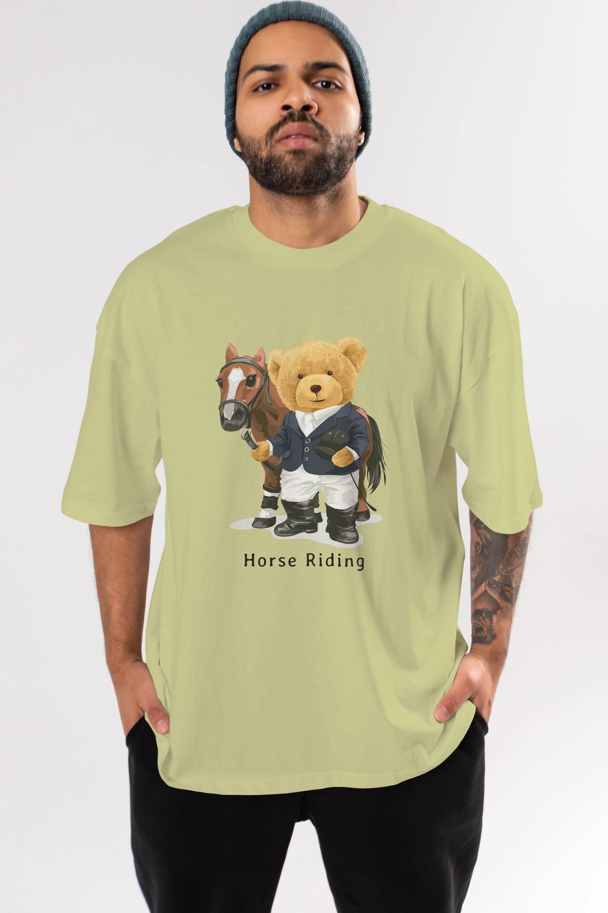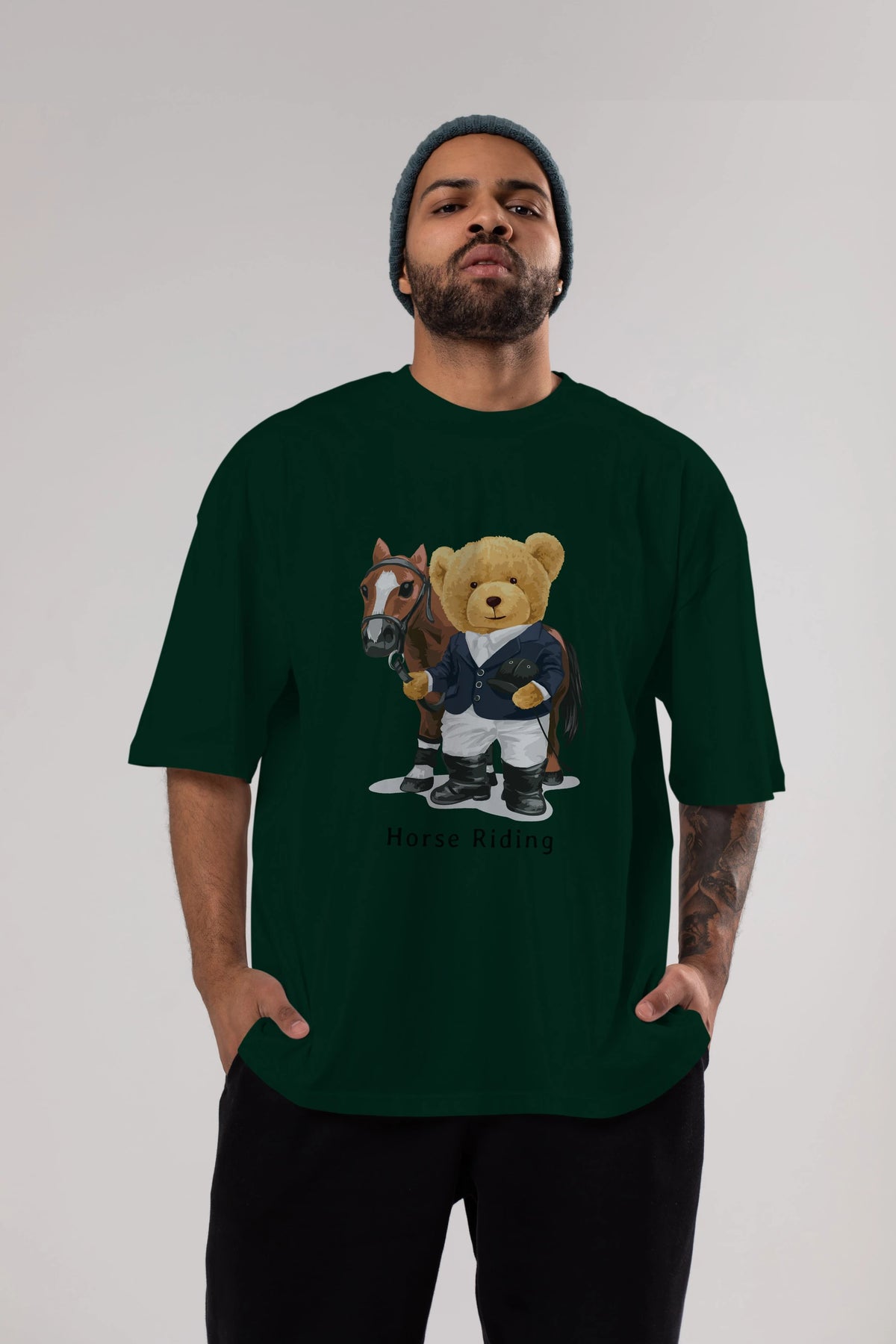 Teddy Bear Horse Riding Ön Baskılı Oversize t-shirt Erkek Kadın Unisex %100 Pamuk