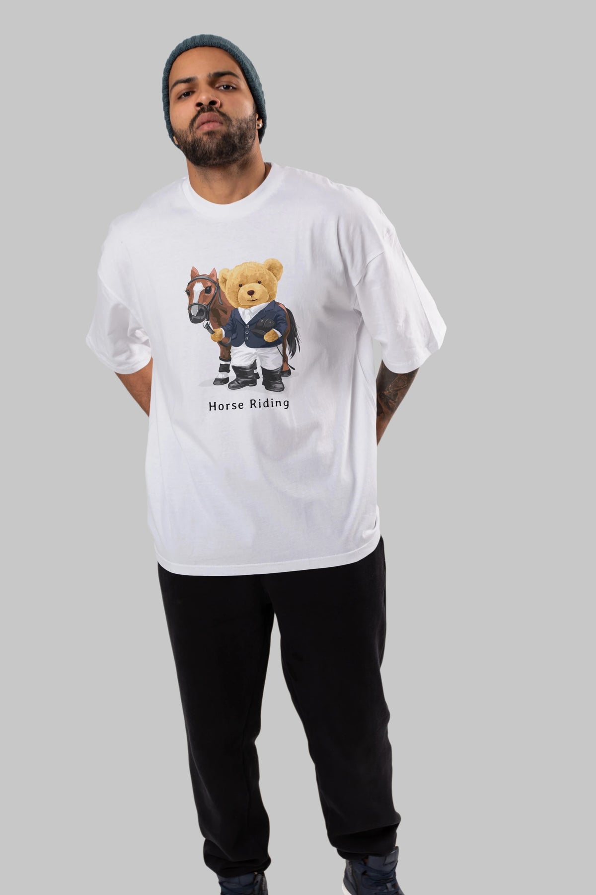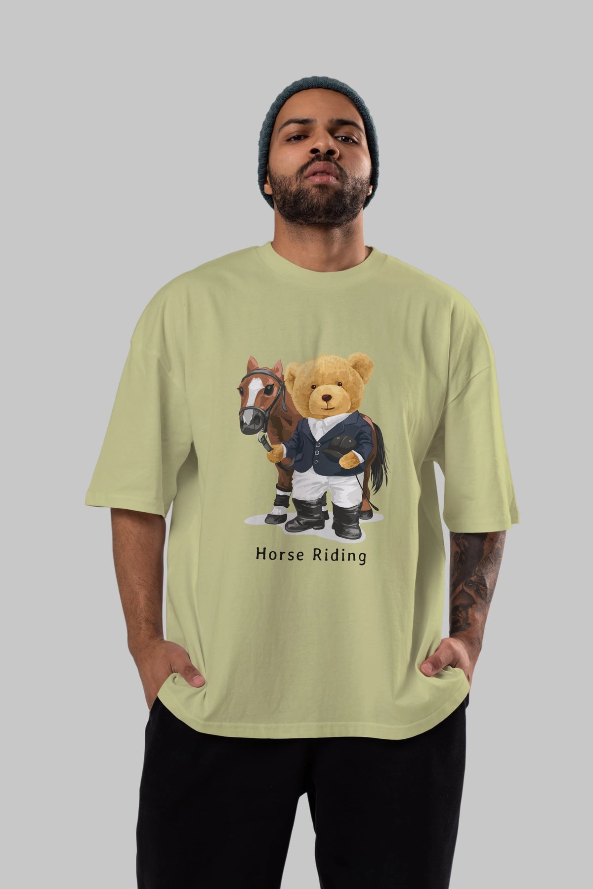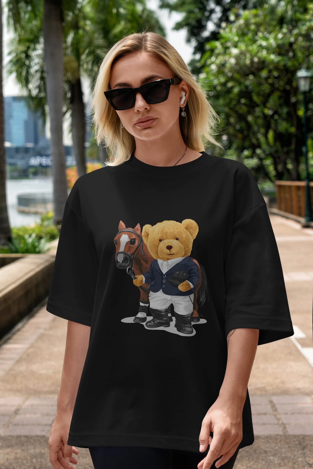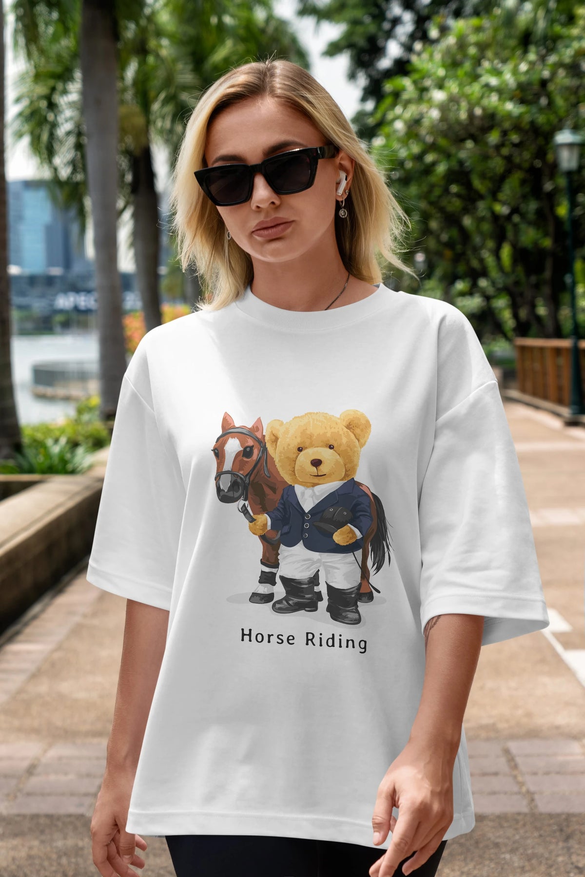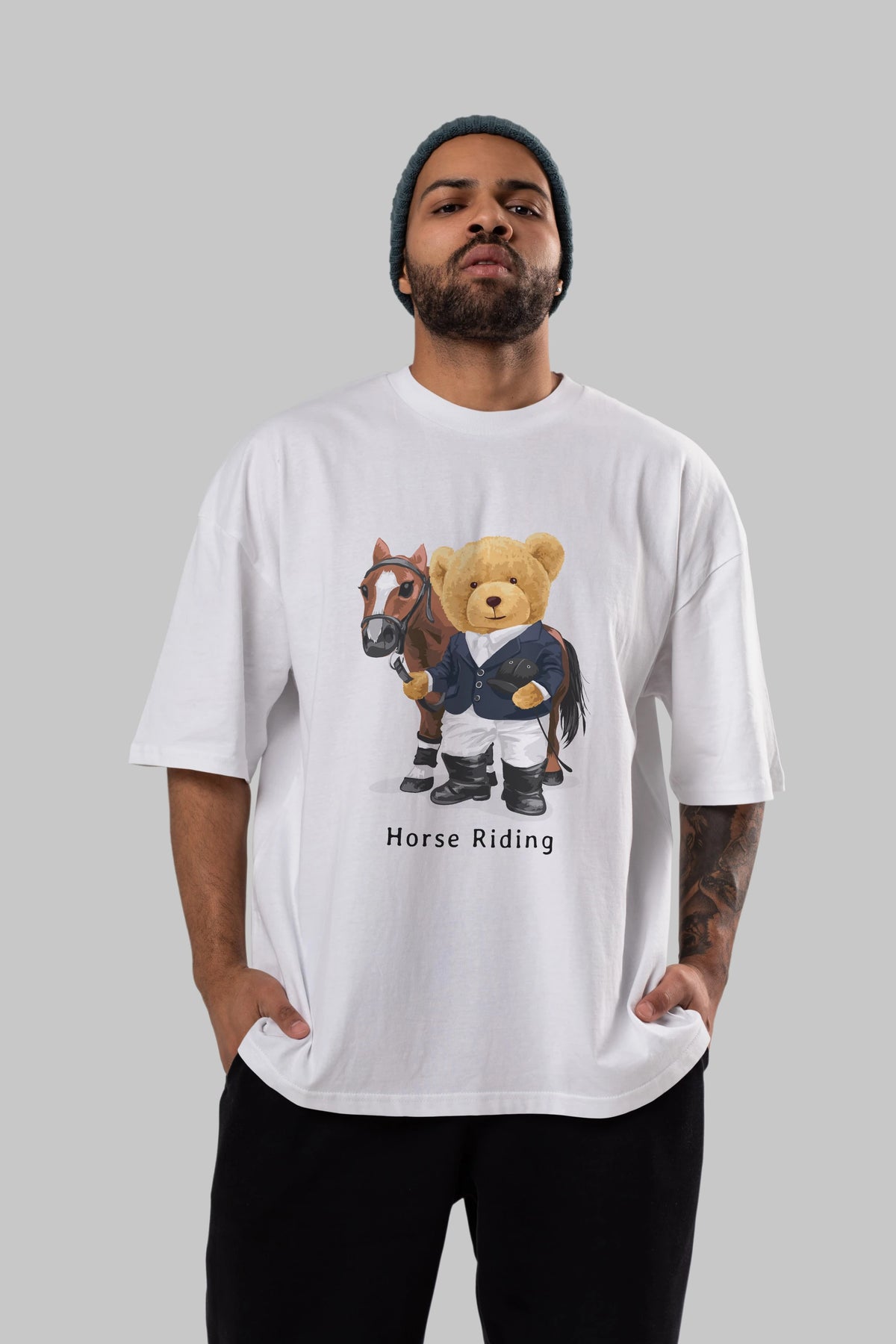 Teddy Bear Horse Riding Ön Baskılı Oversize t-shirt Erkek Kadın Unisex %100 Pamuk