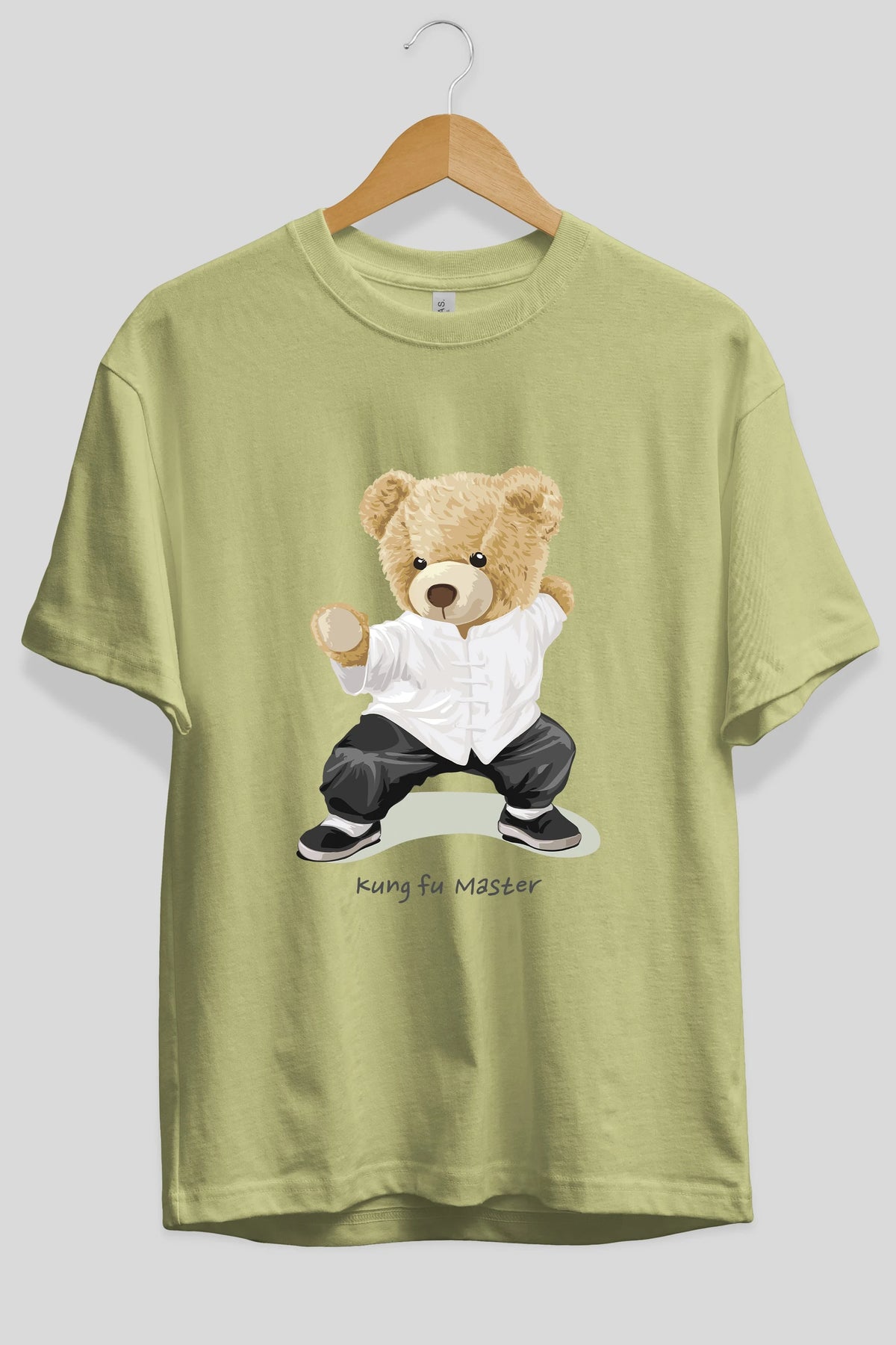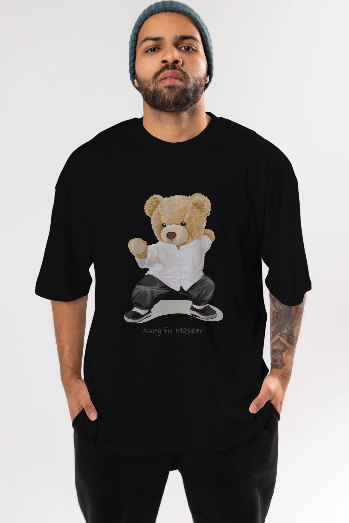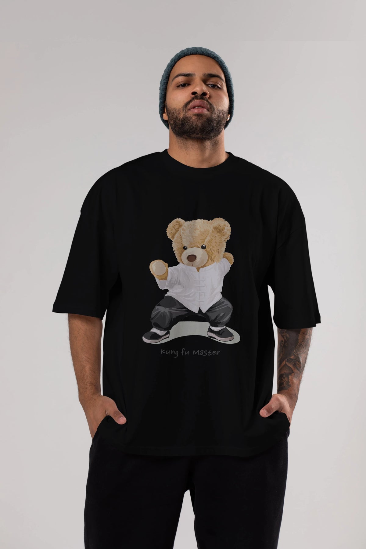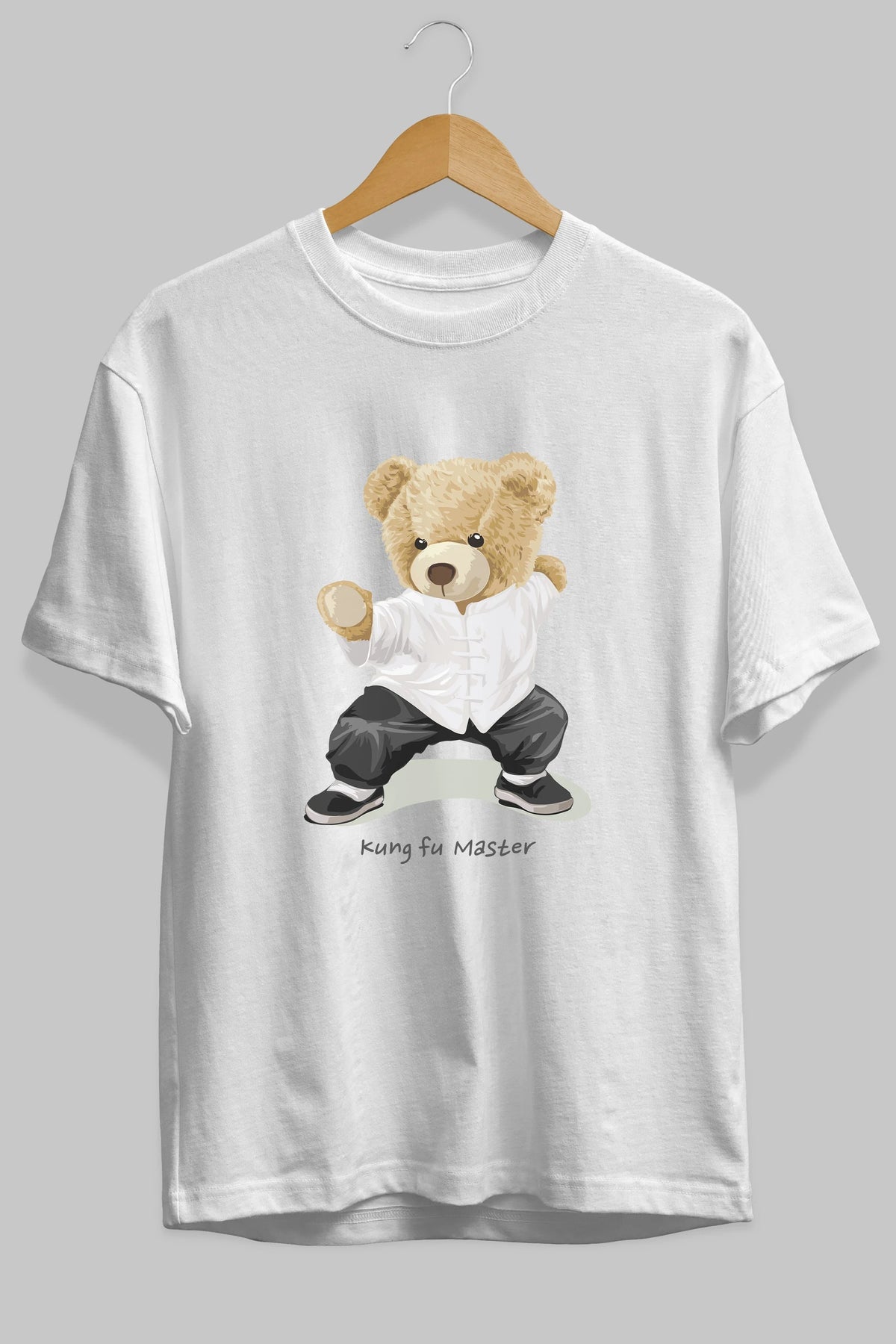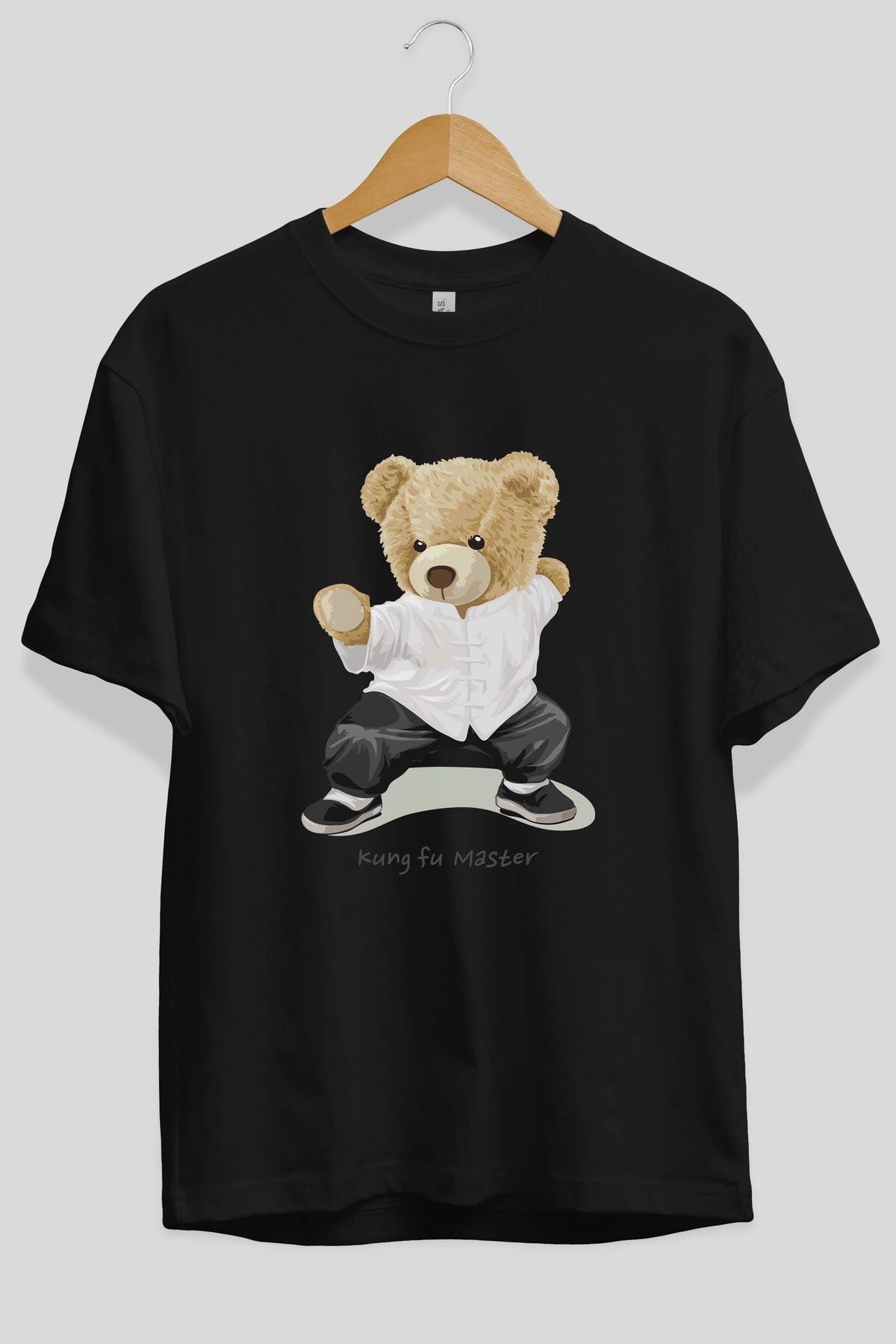 Teddy Bear Kung Fu Master Ön Baskılı Oversize t-shirt Erkek Kadın Unisex %100 Pamuk