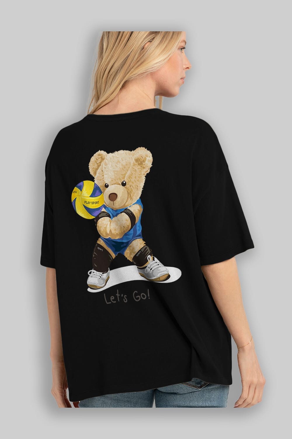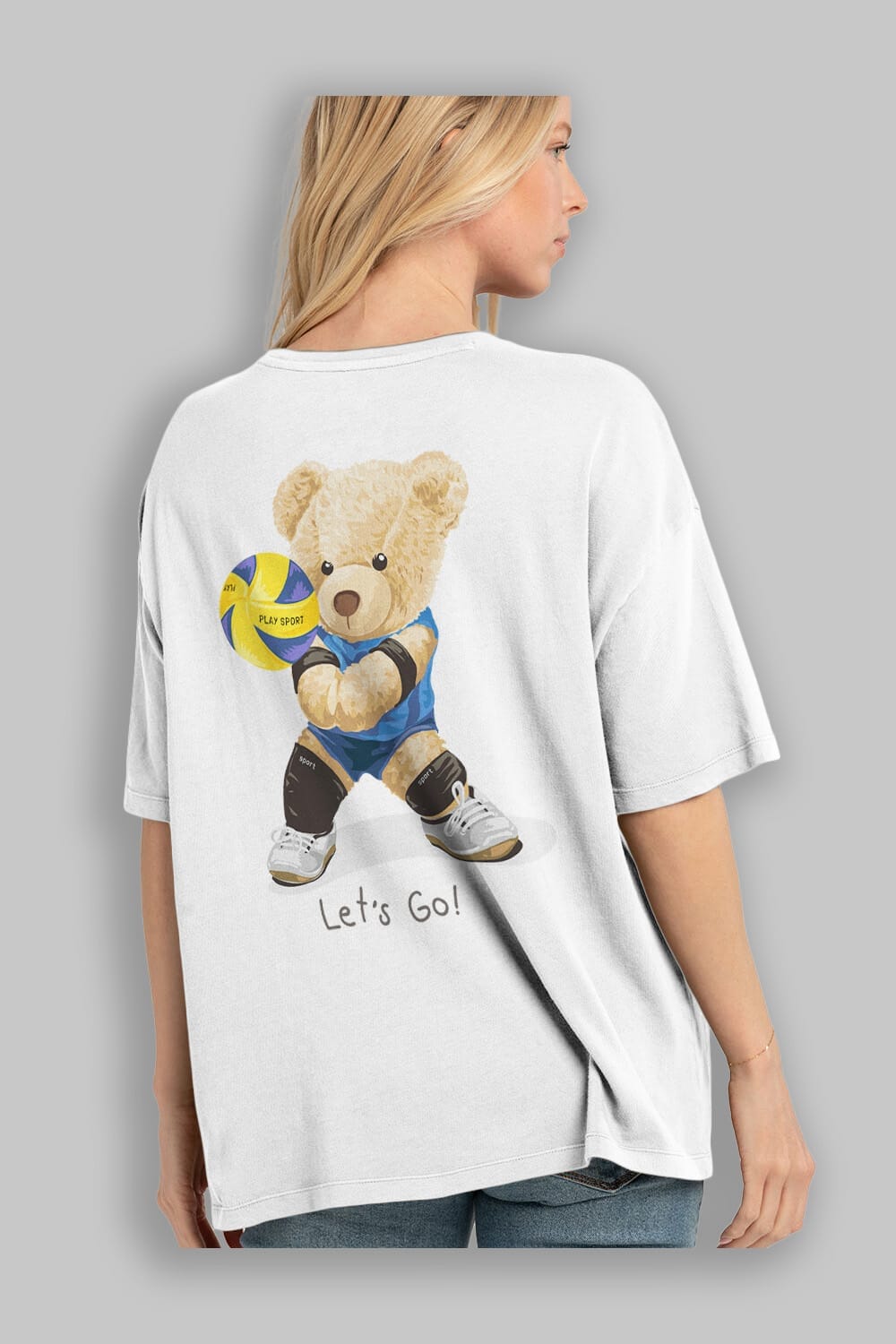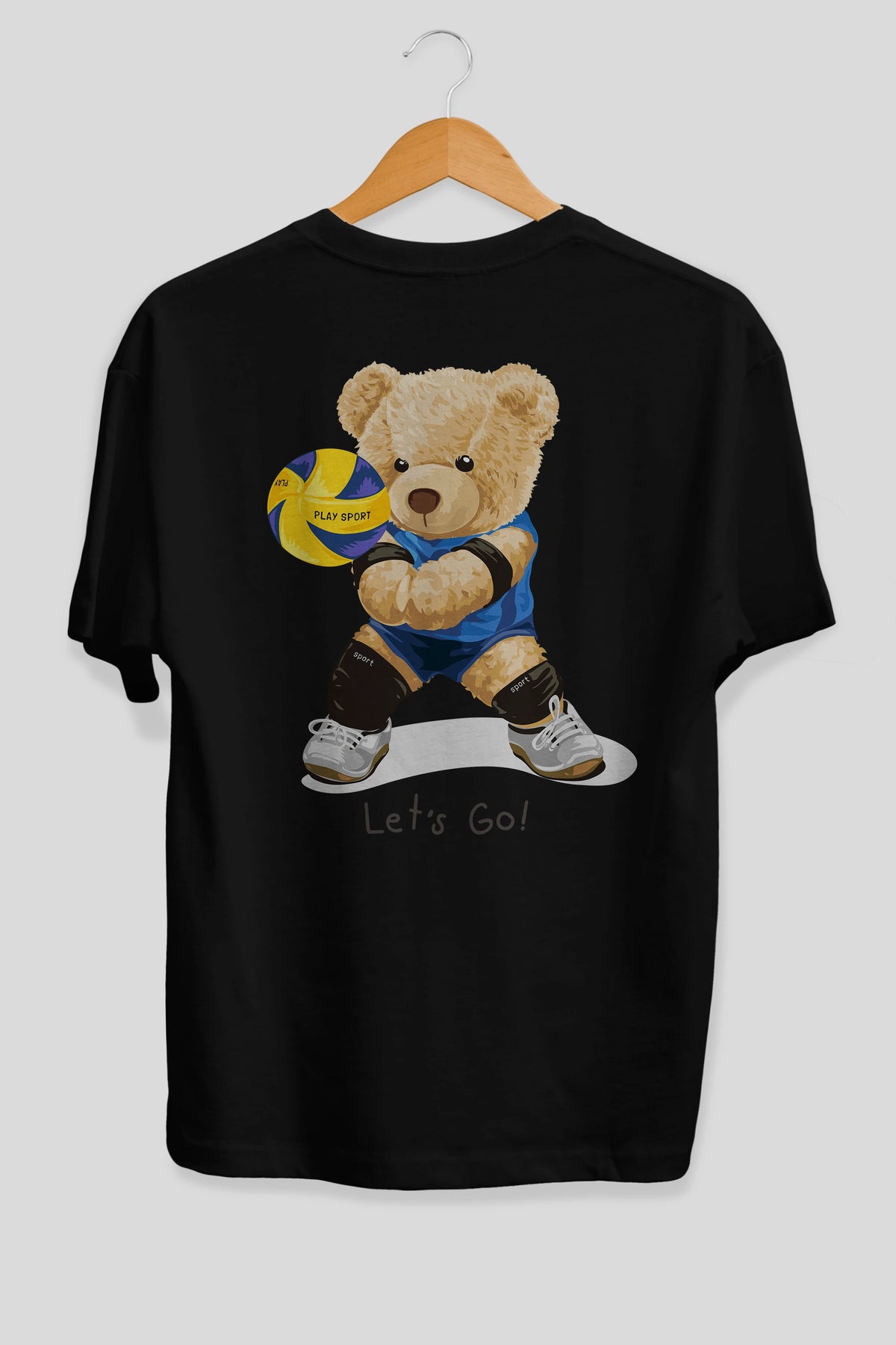 Teddy Bear Lets Go Arka Baskılı Oversize t-shirt Erkek Kadın Unisex %100 Pamuk