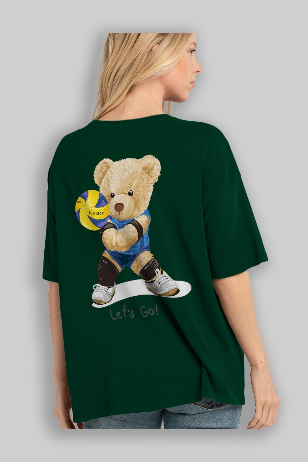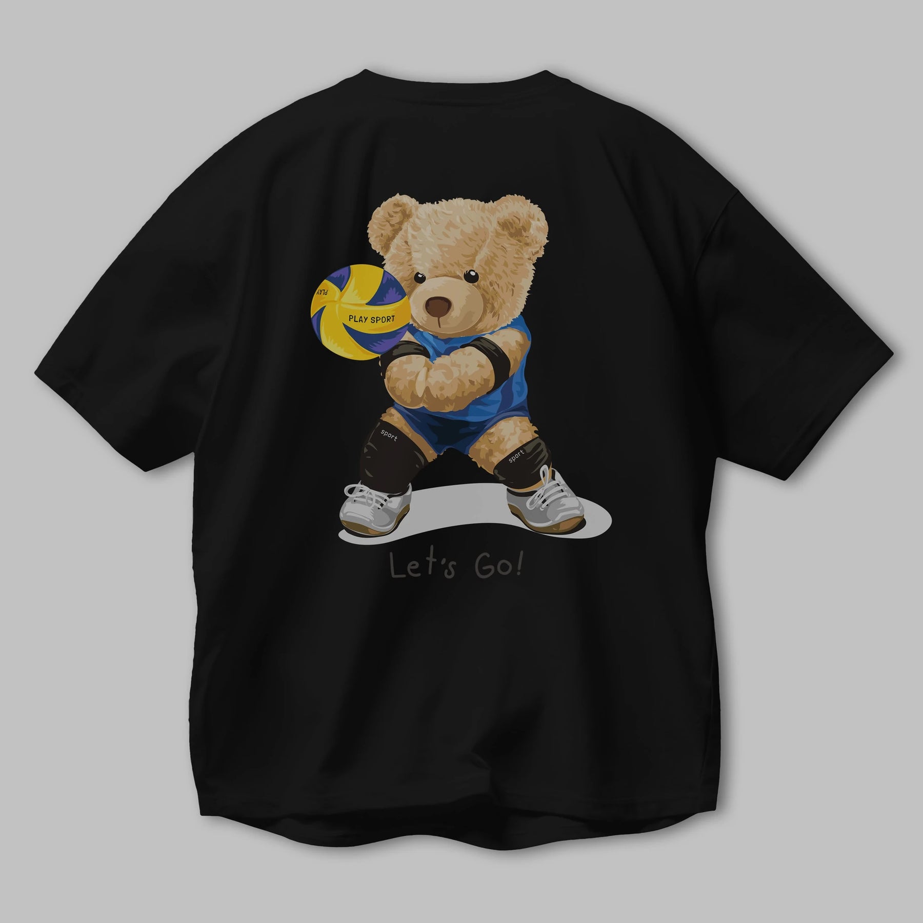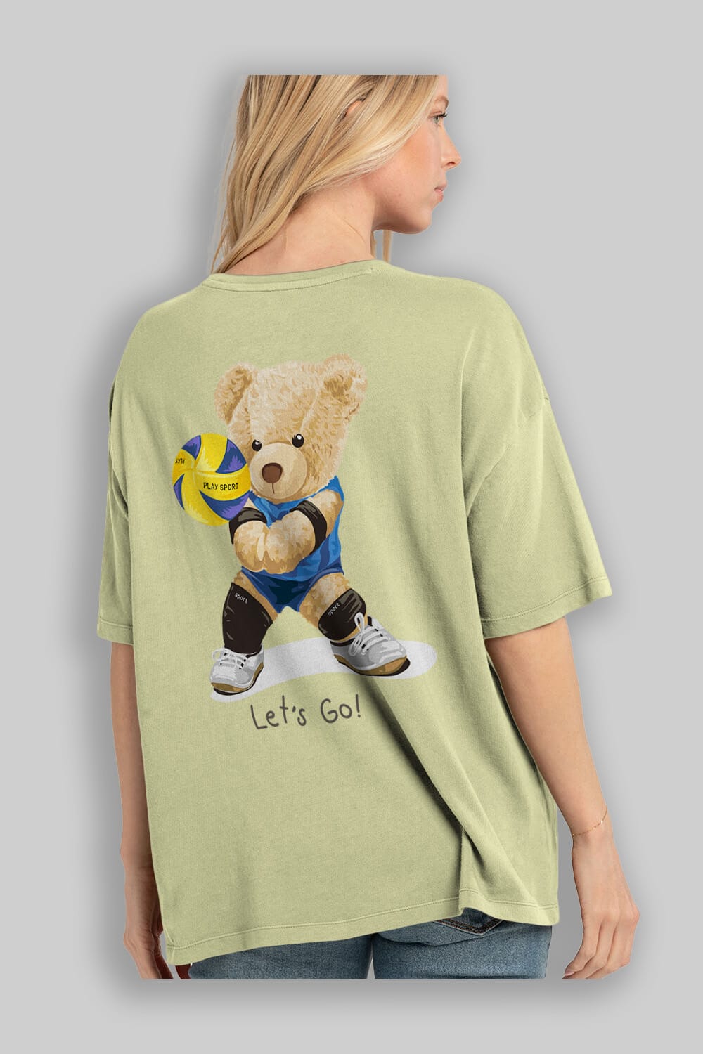Teddy Bear Lets Go Arka Baskılı Oversize t-shirt Erkek Kadın Unisex %100 Pamuk