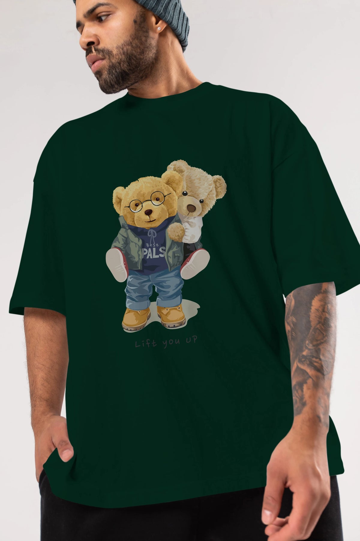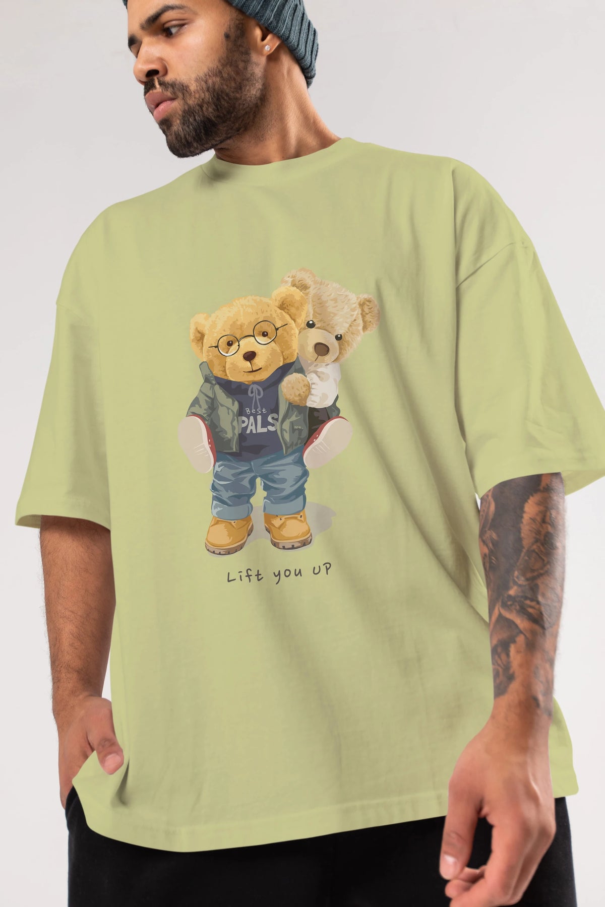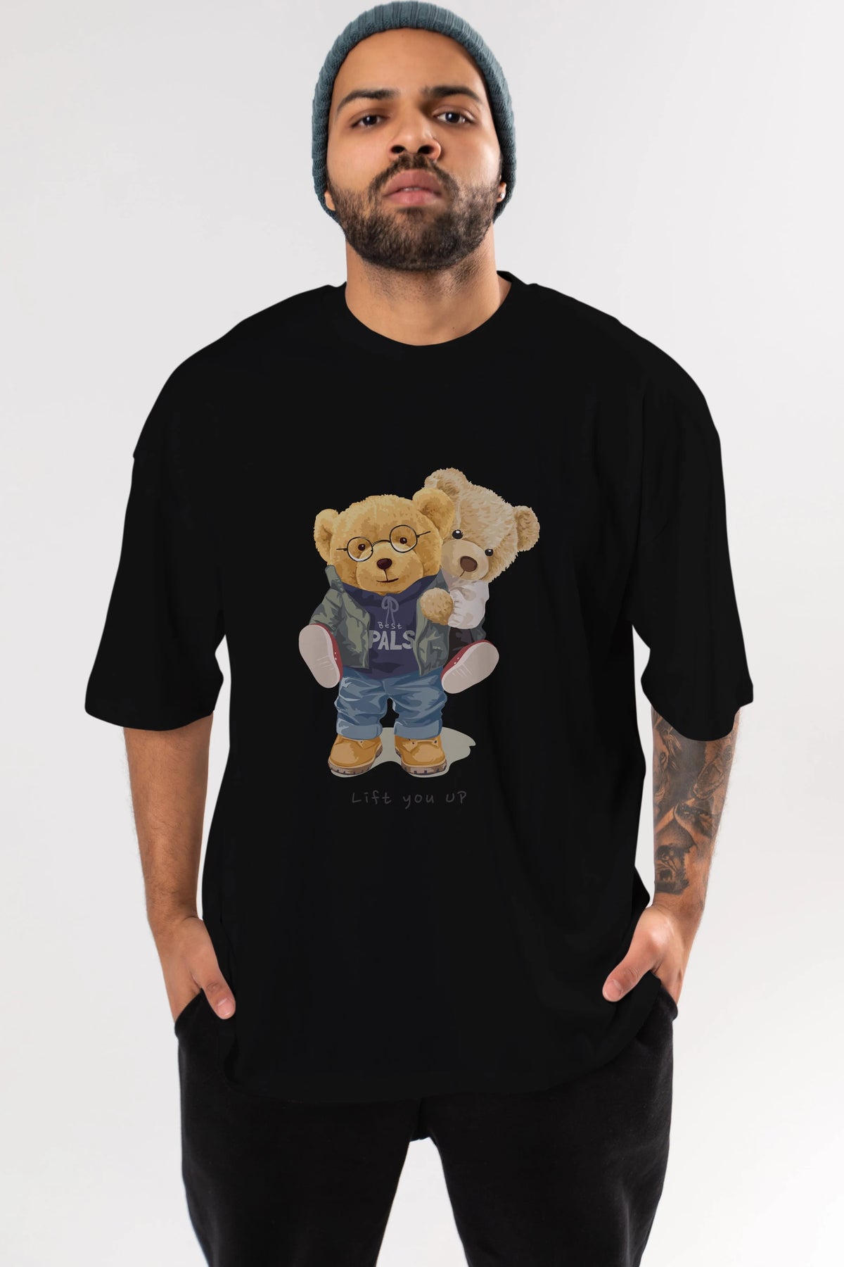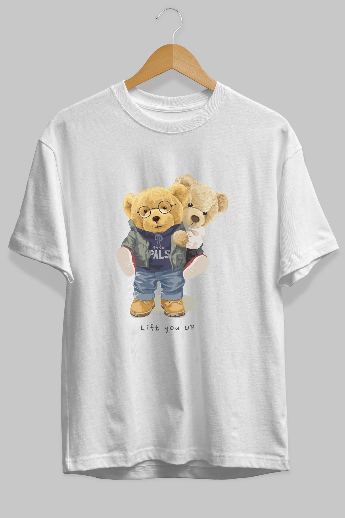 Teddy Bear Lift You Up Ön Baskılı Oversize t-shirt Erkek Kadın Unisex %100 Pamuk