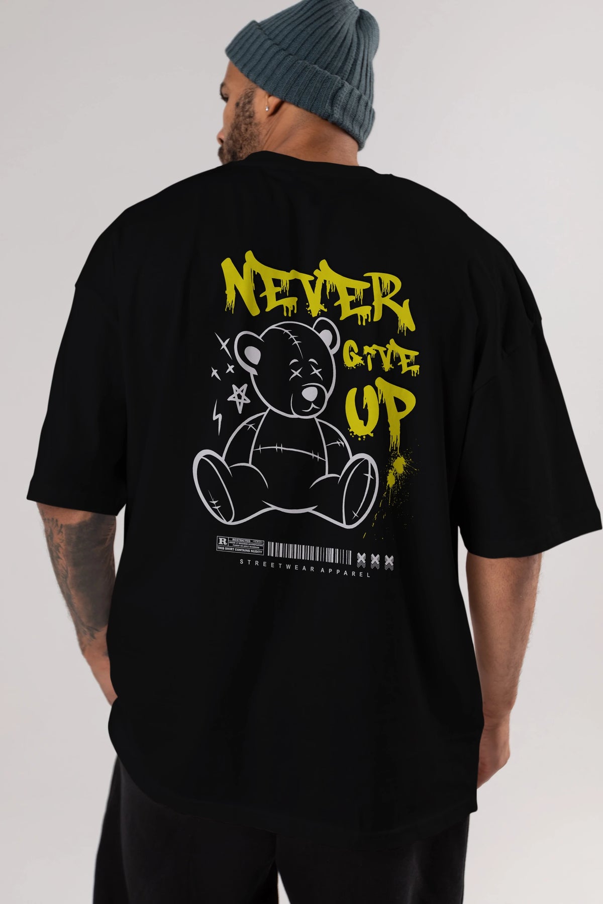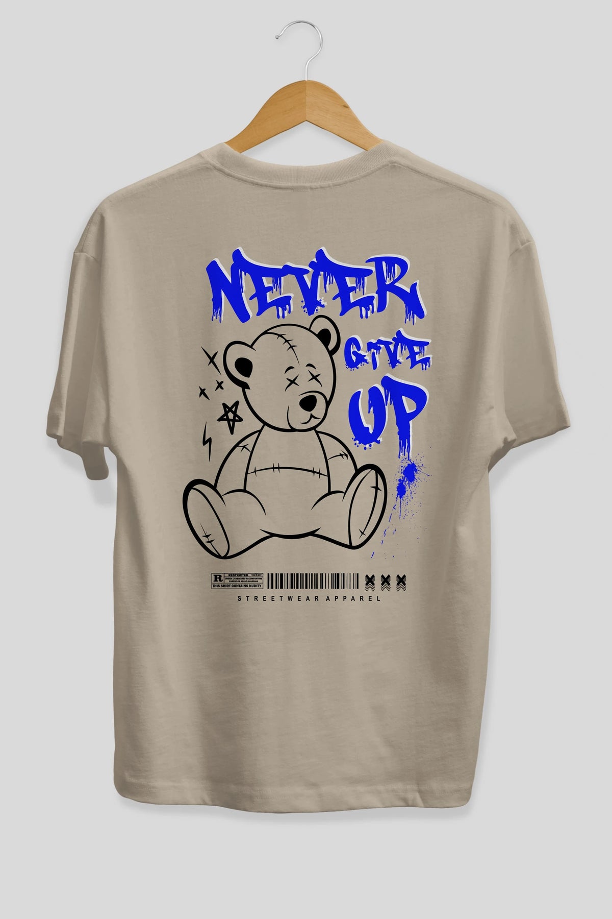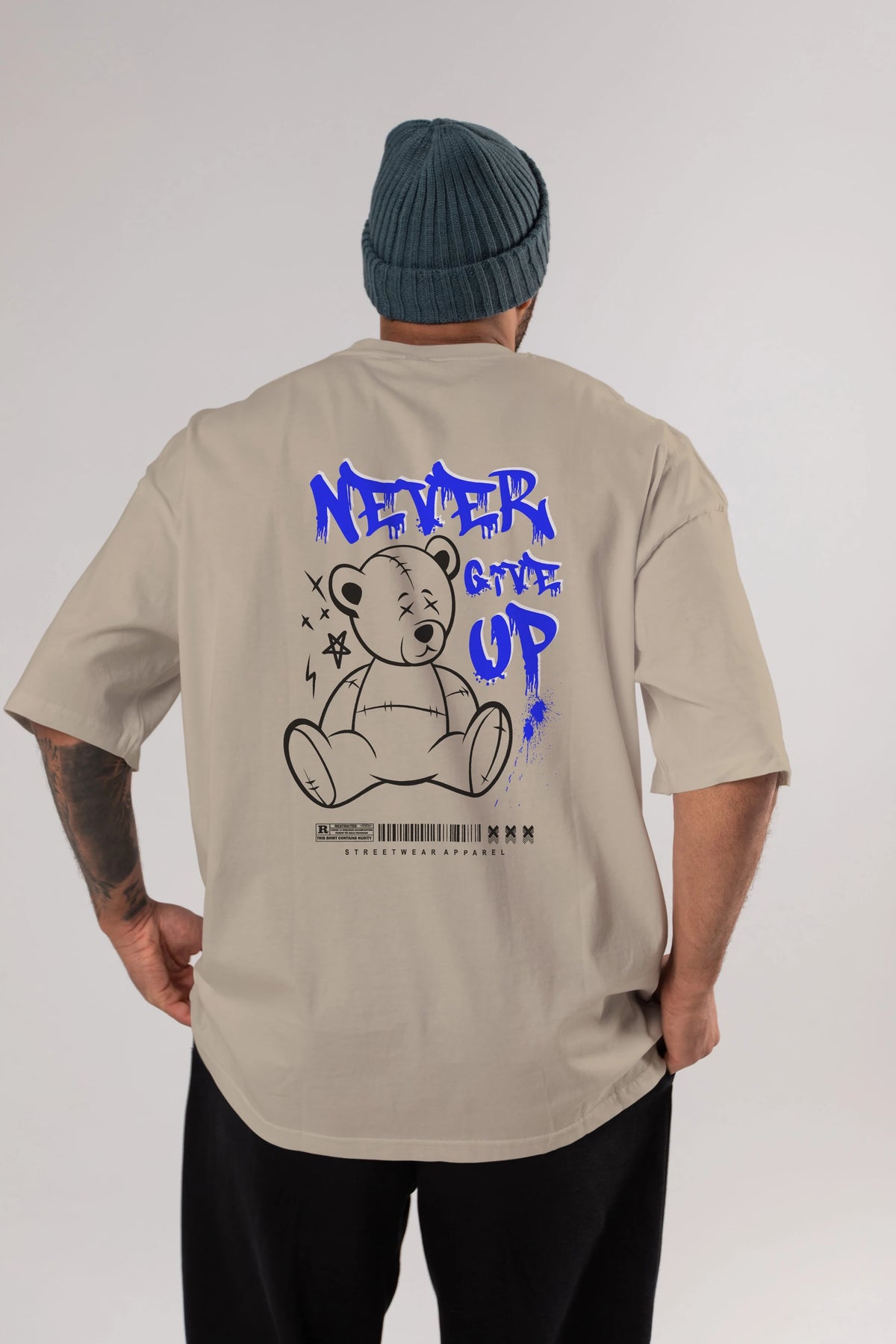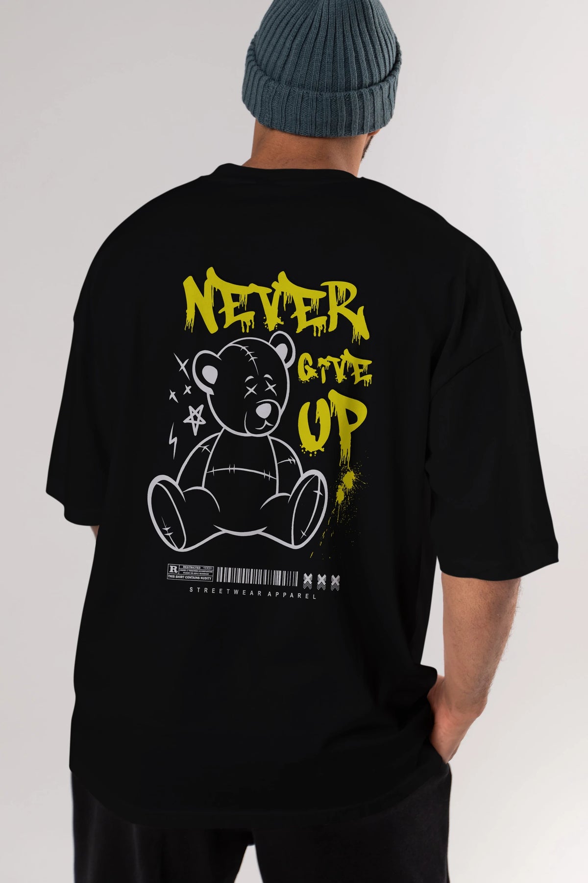 Teddy Bear Never Give Up Arka Baskılı Oversize t-shirt Erkek Kadın Unisex