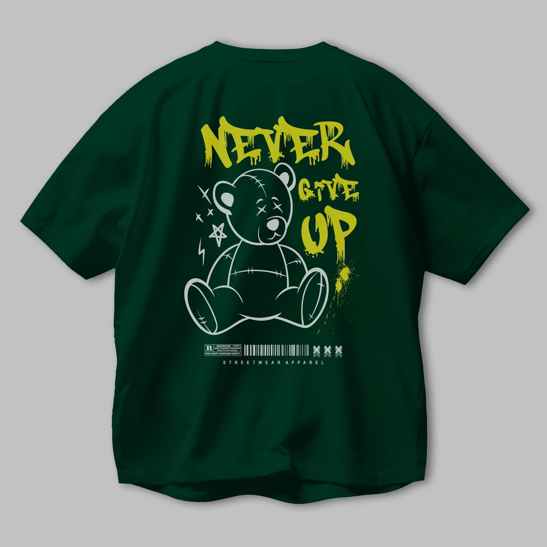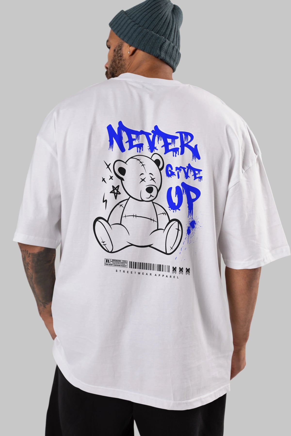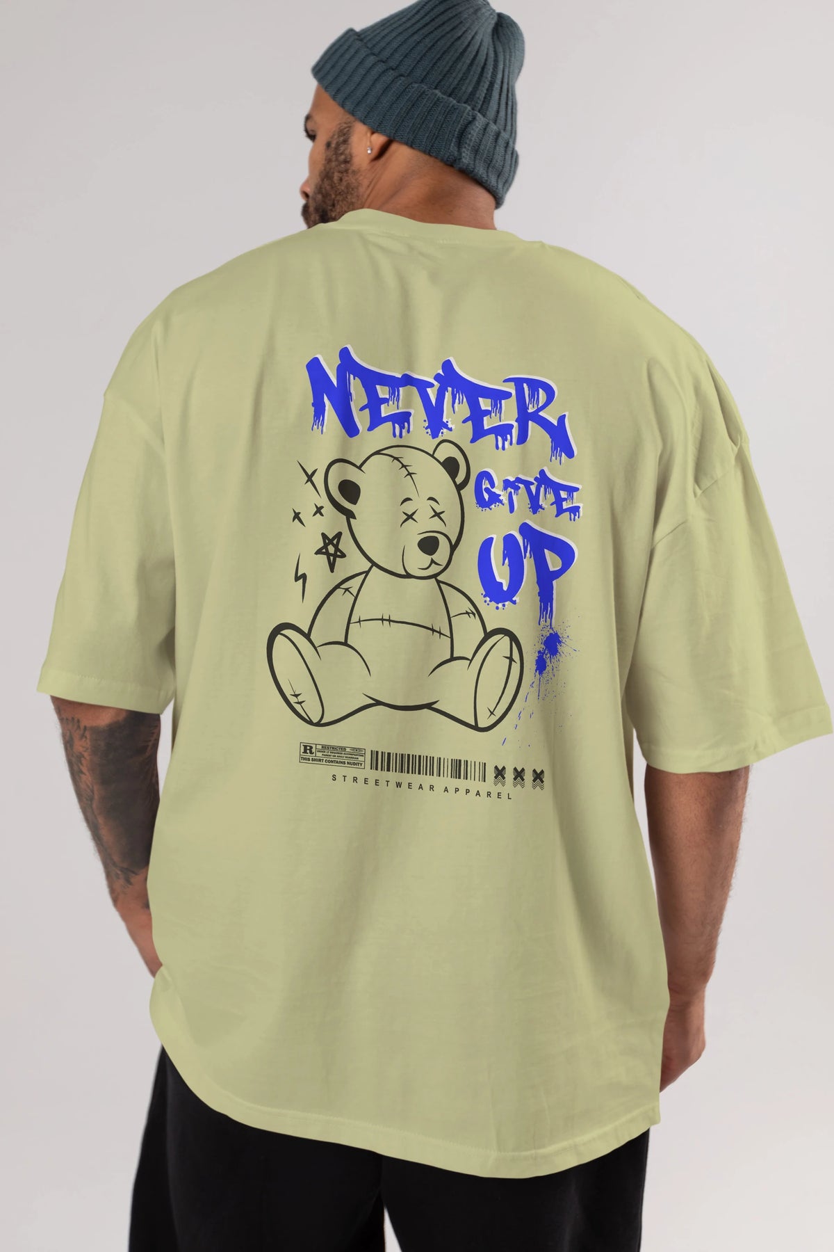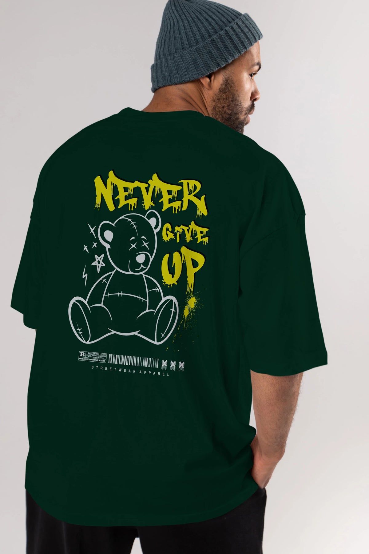 Teddy Bear Never Give Up Arka Baskılı Oversize t-shirt Erkek Kadın Unisex