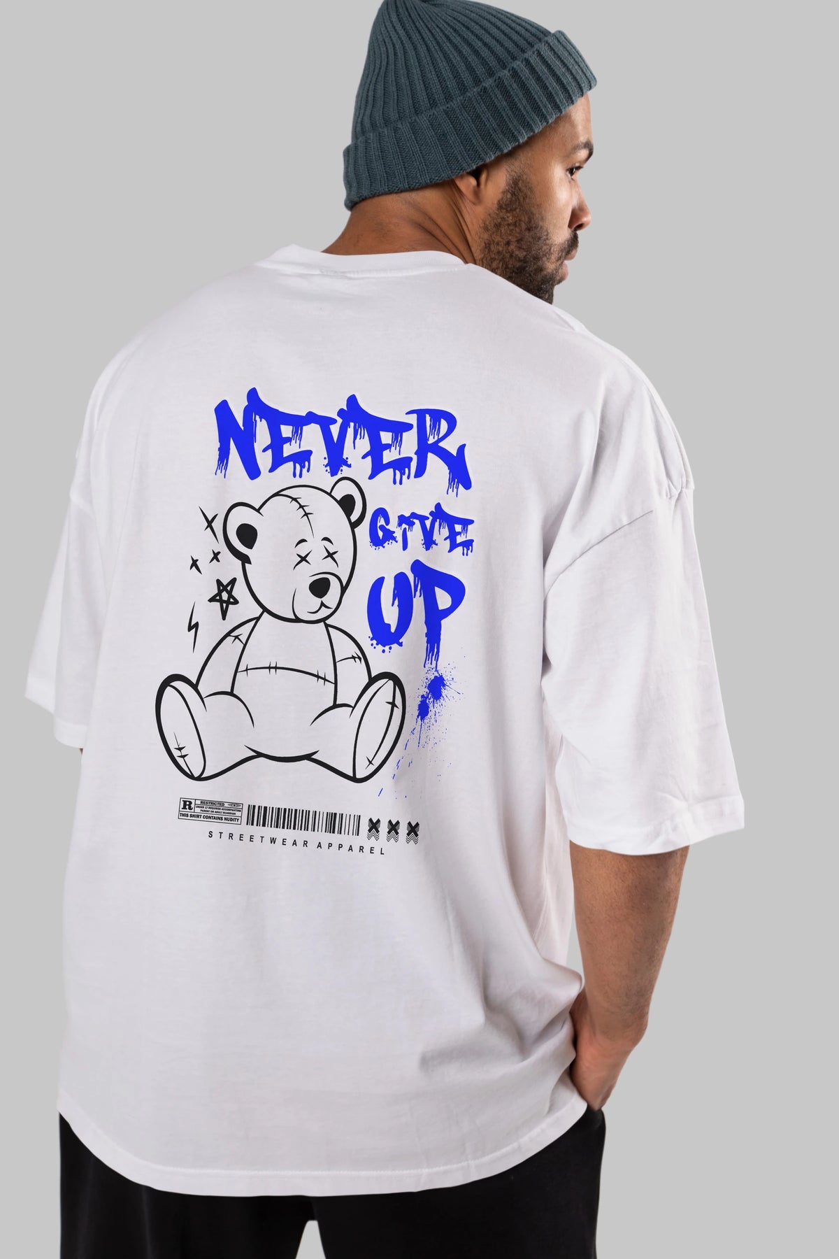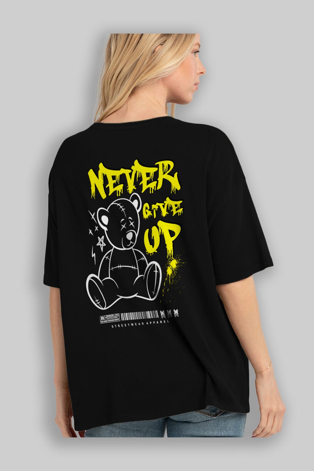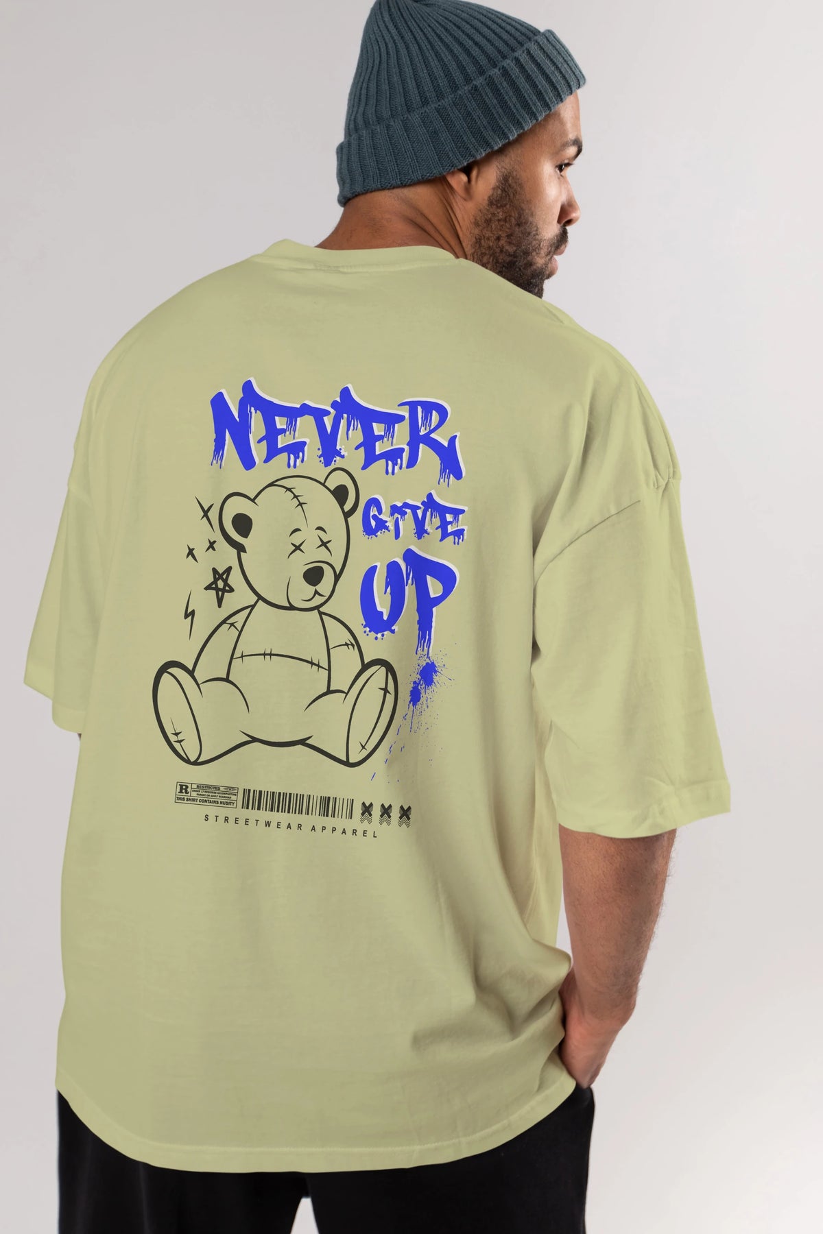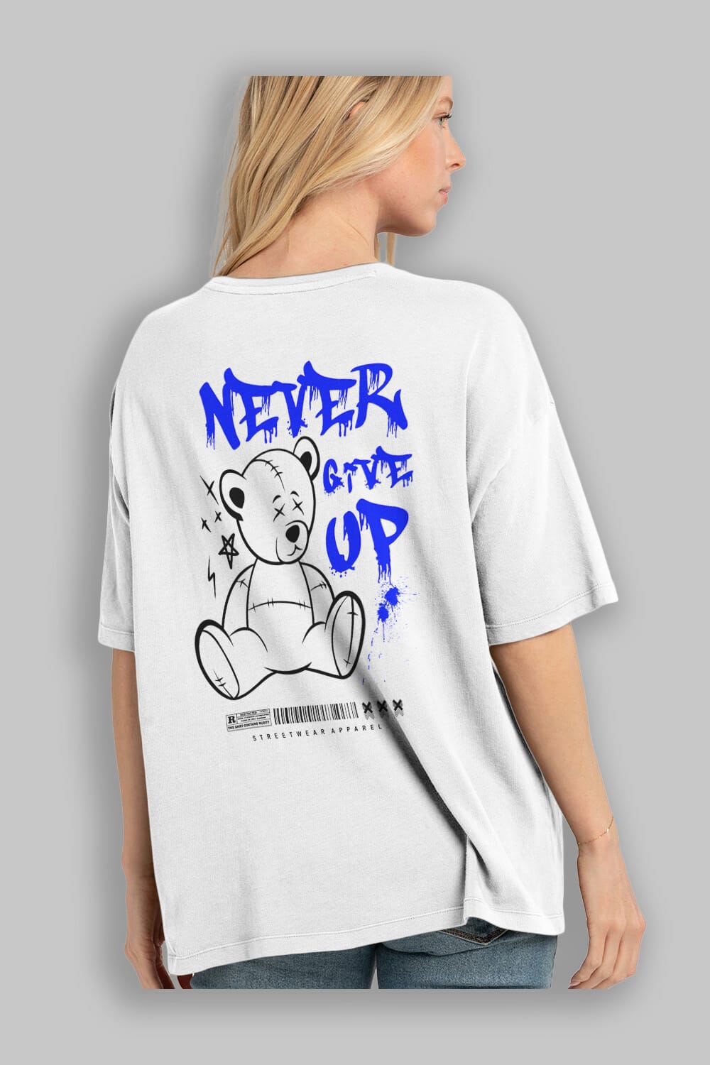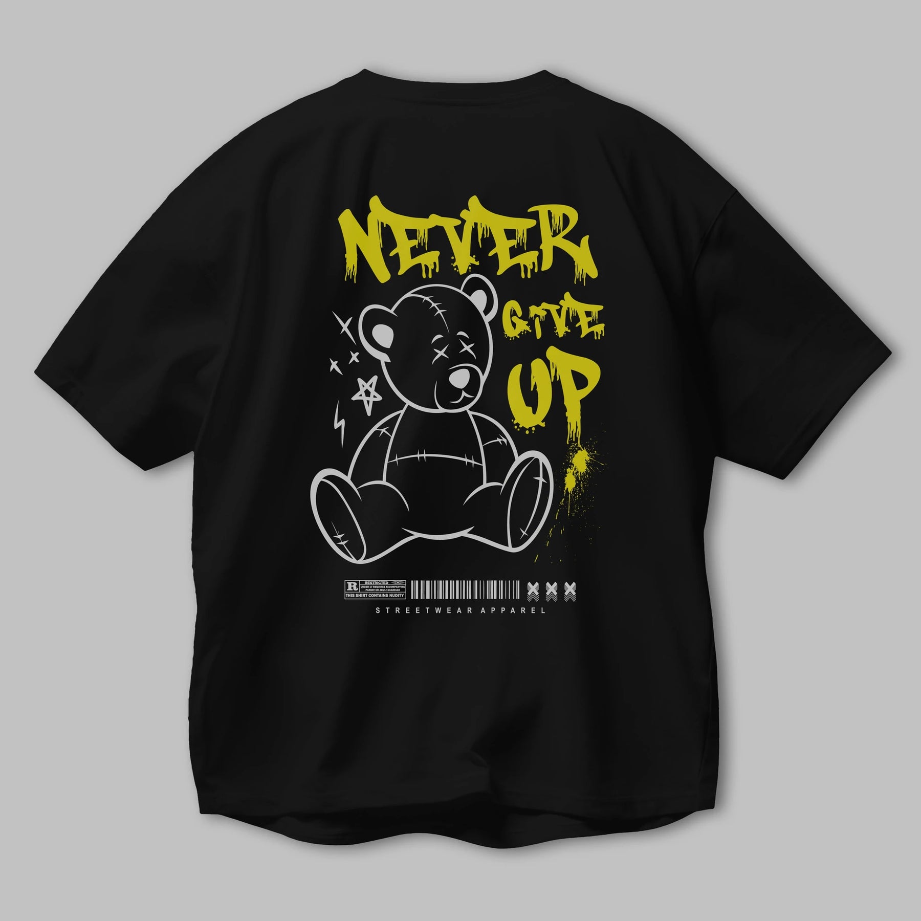 Teddy Bear Never Give Up Arka Baskılı Oversize t-shirt Erkek Kadın Unisex