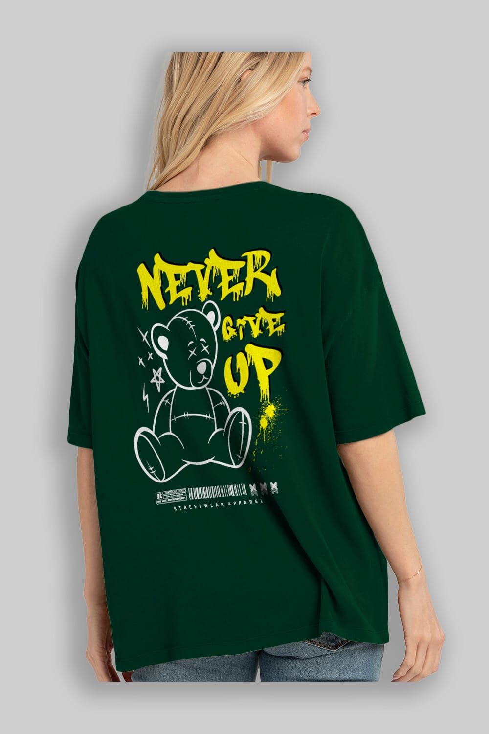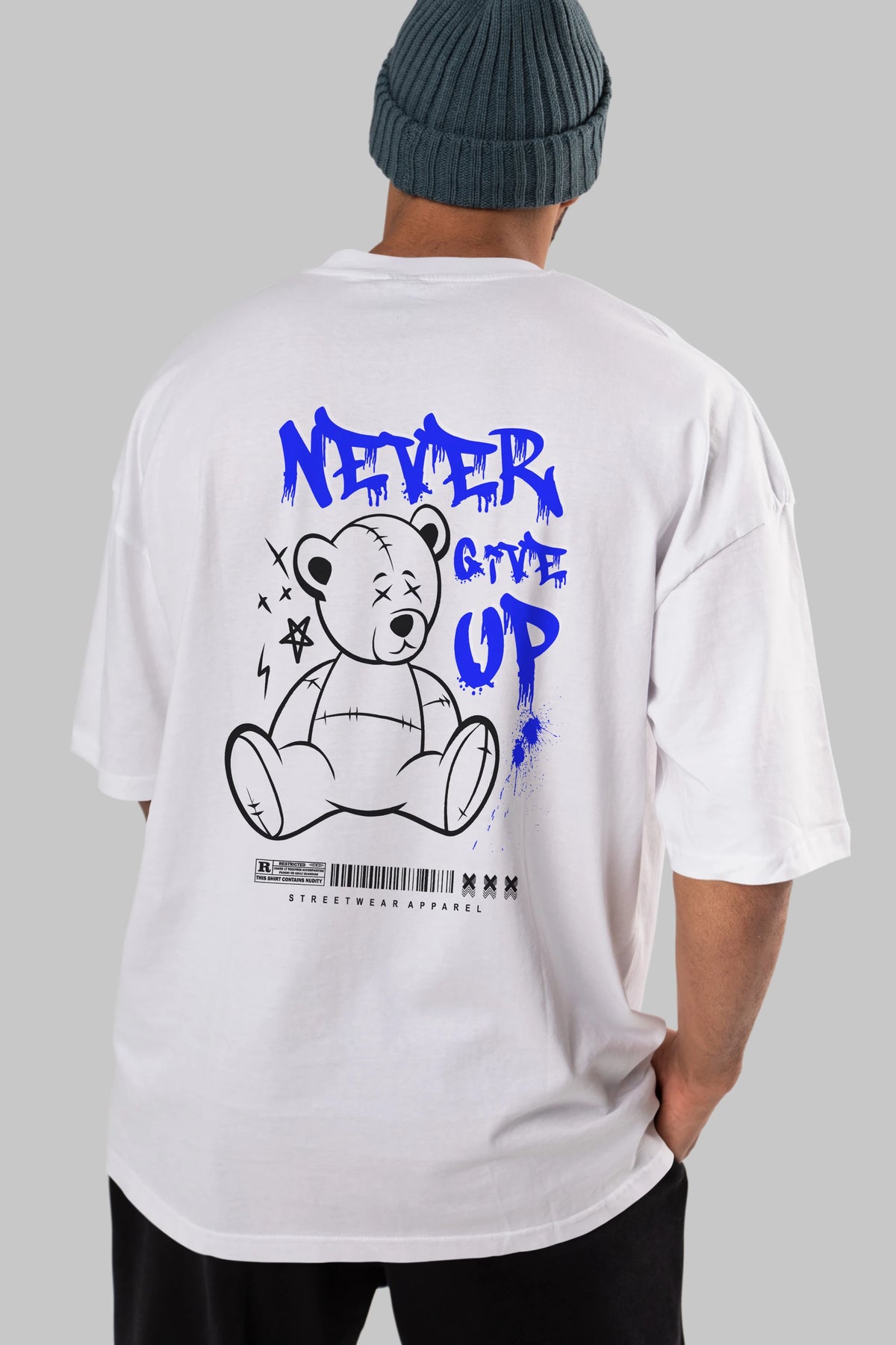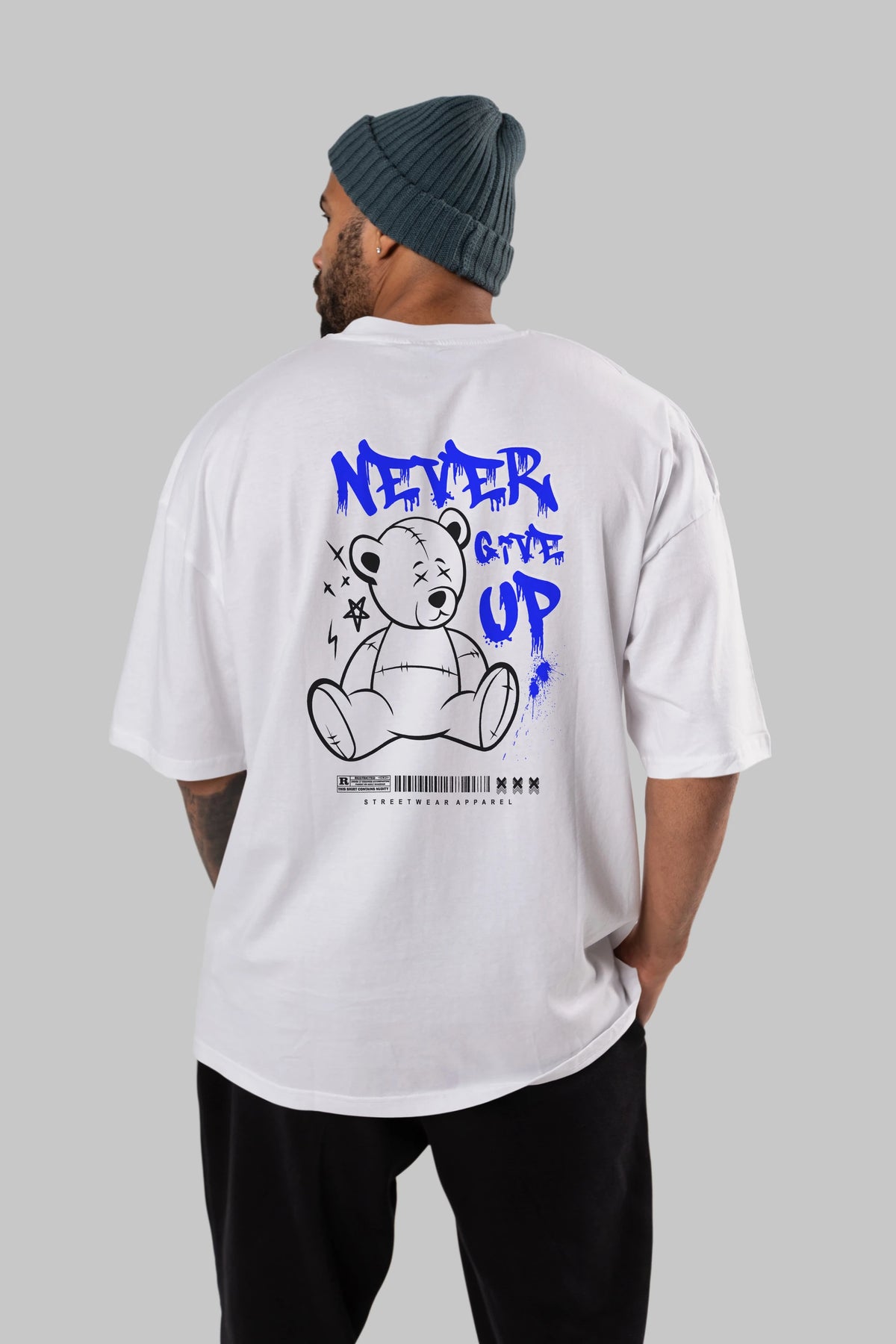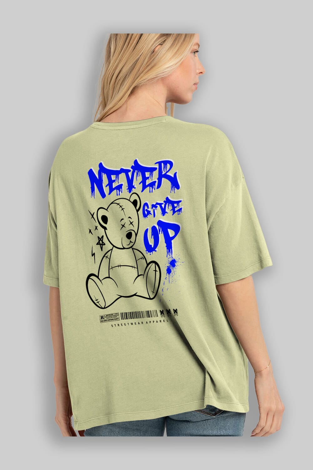 Teddy Bear Never Give Up Arka Baskılı Oversize t-shirt Erkek Kadın Unisex