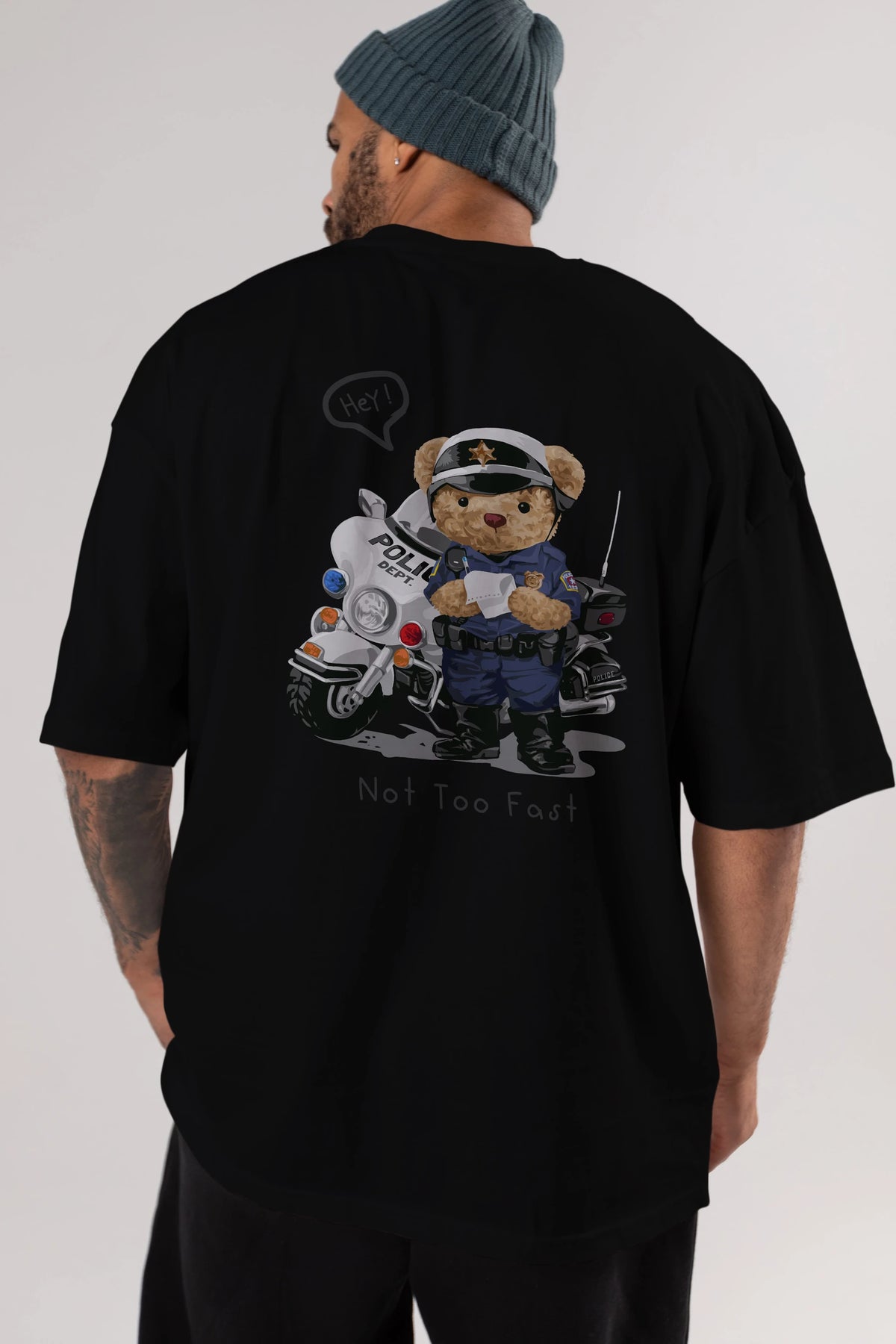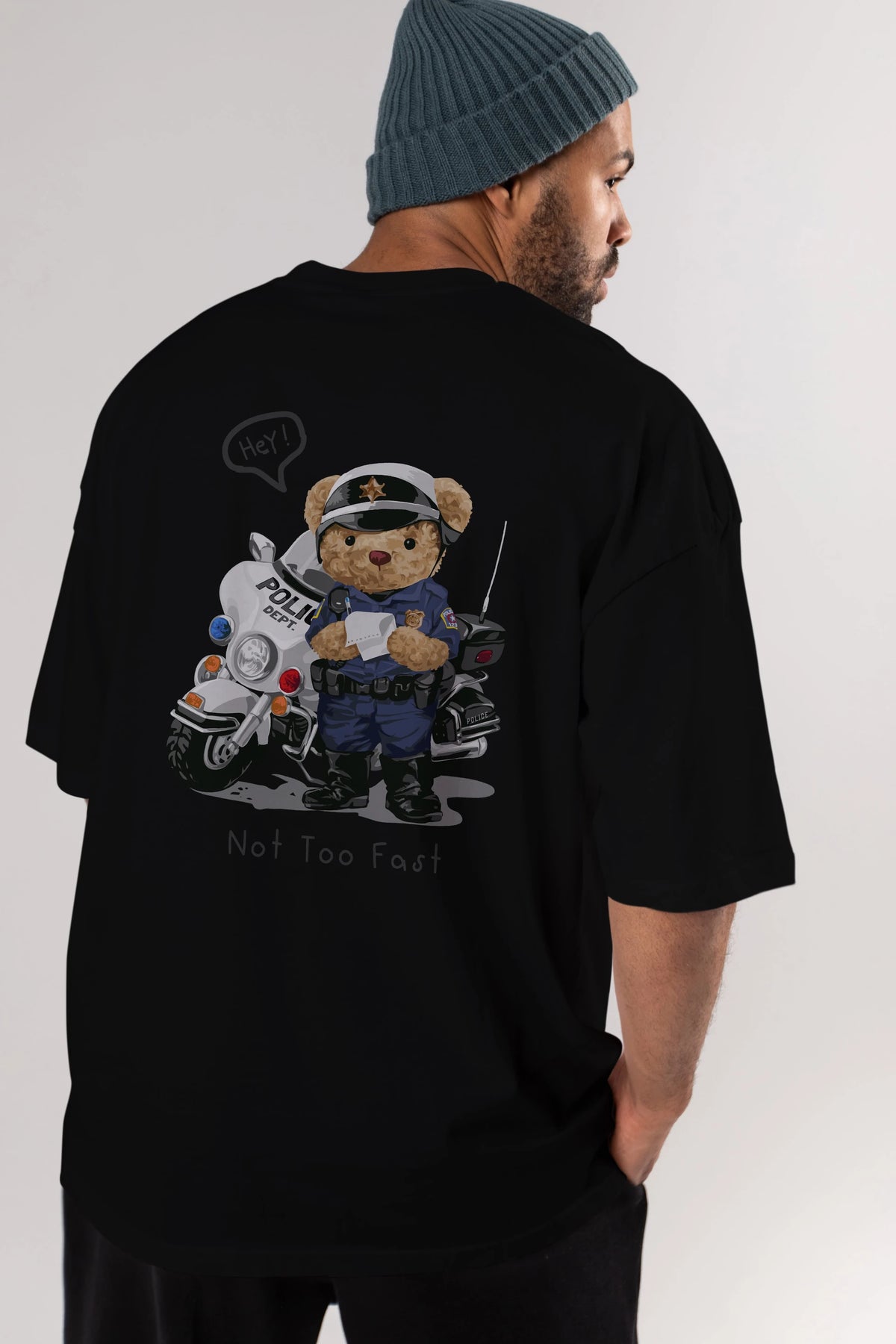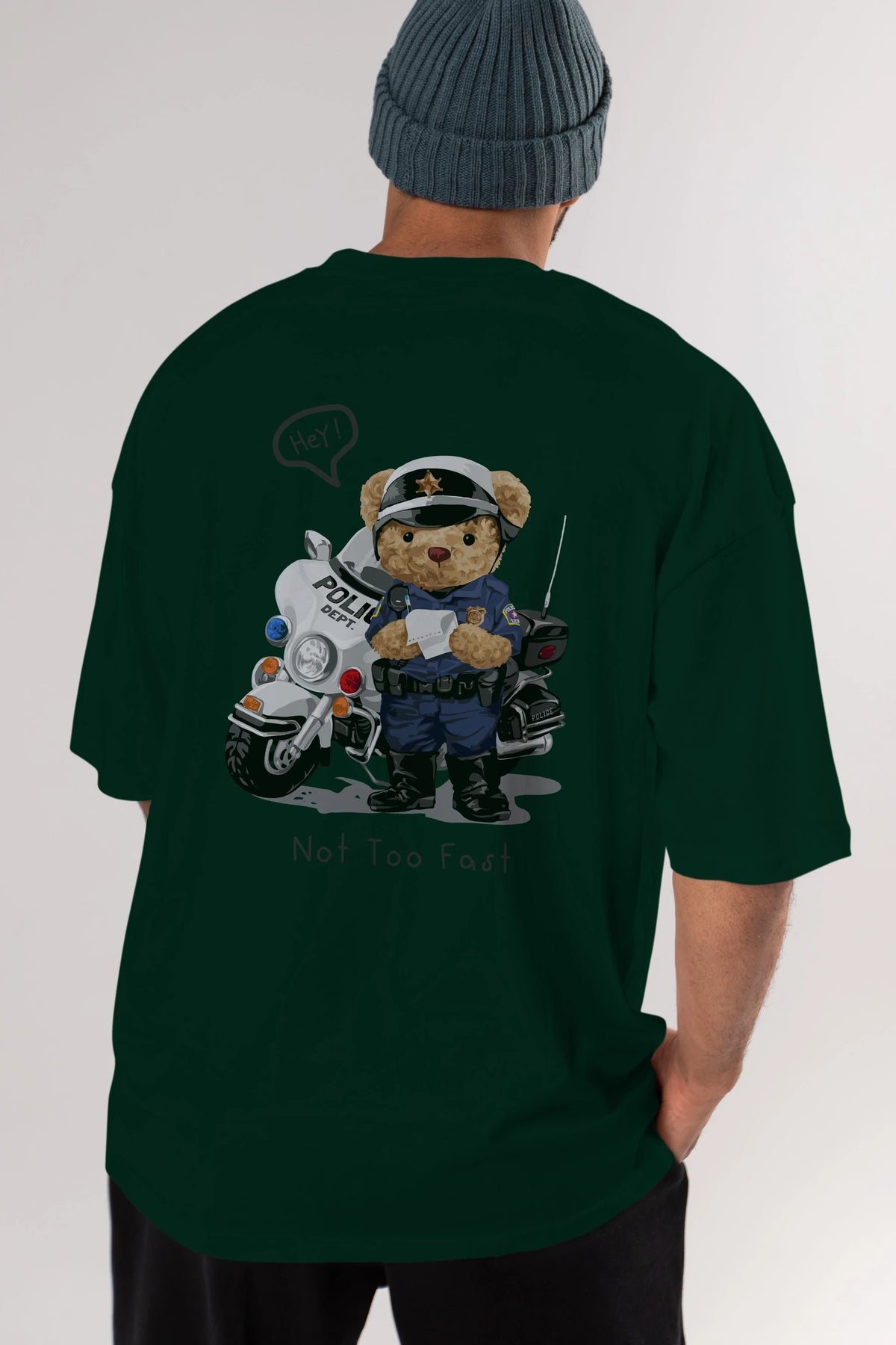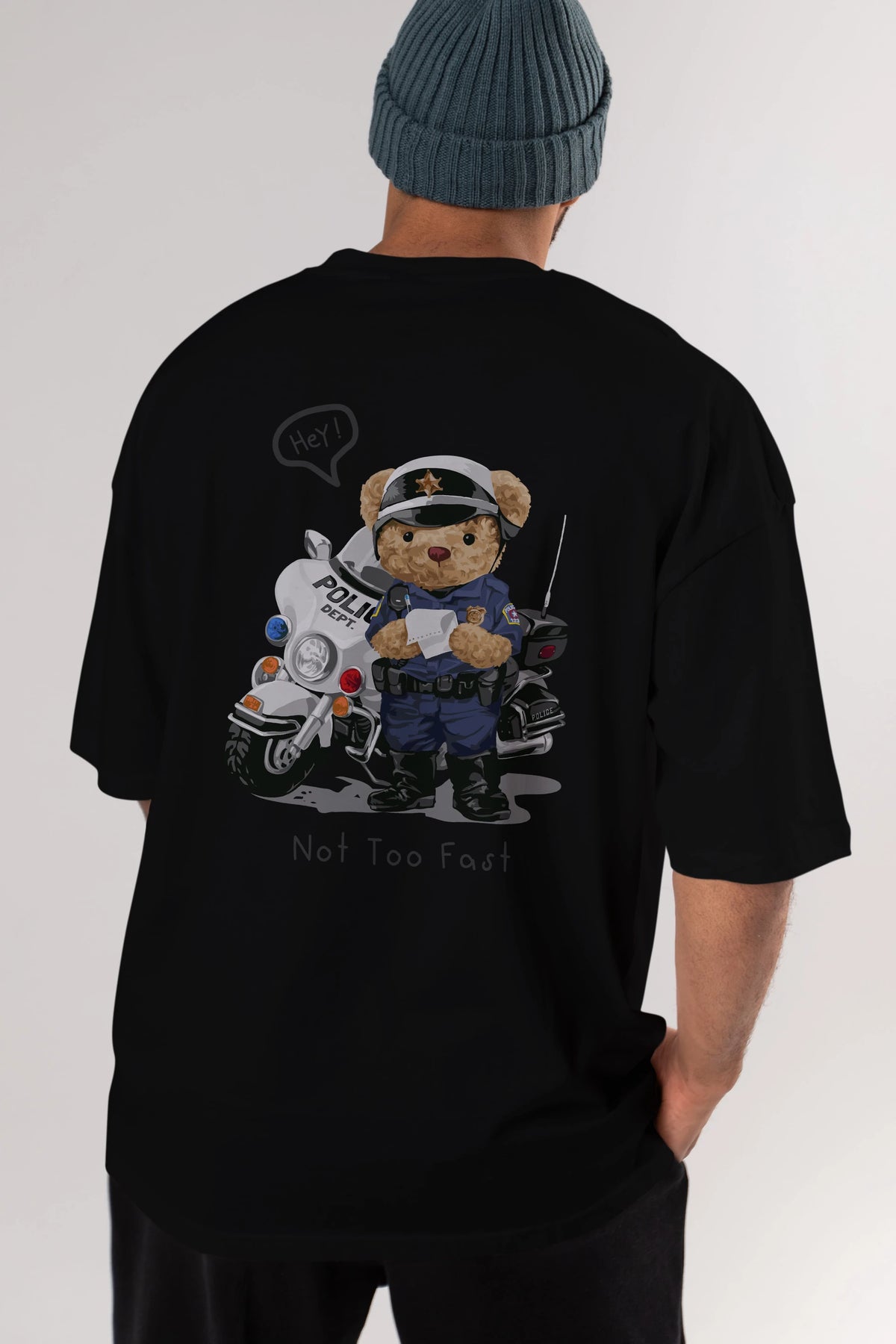 Teddy Bear Not Too Fast Arka Baskılı Oversize t-shirt Erkek Kadın Unisex %100 Pamuk