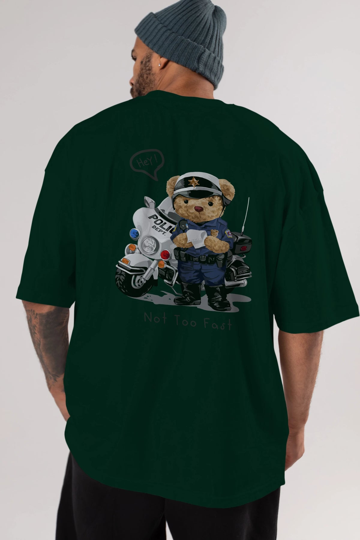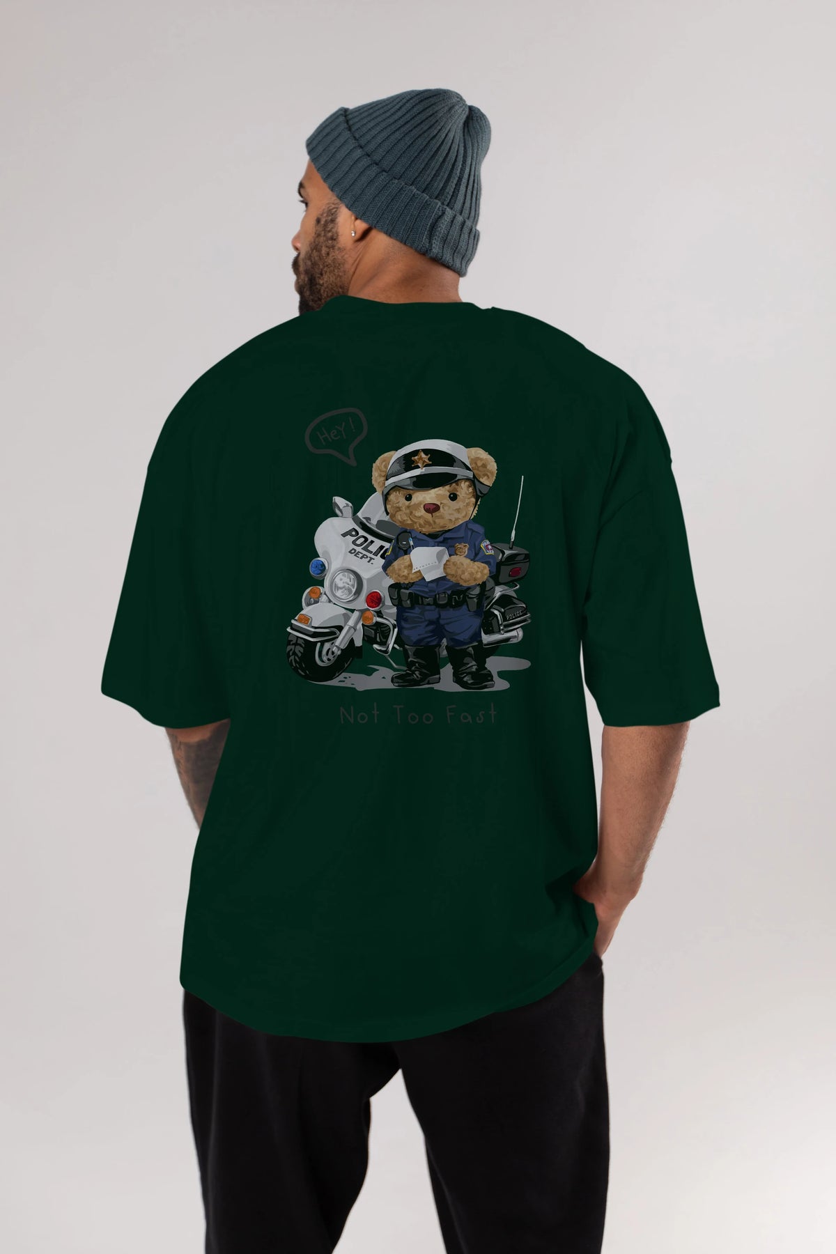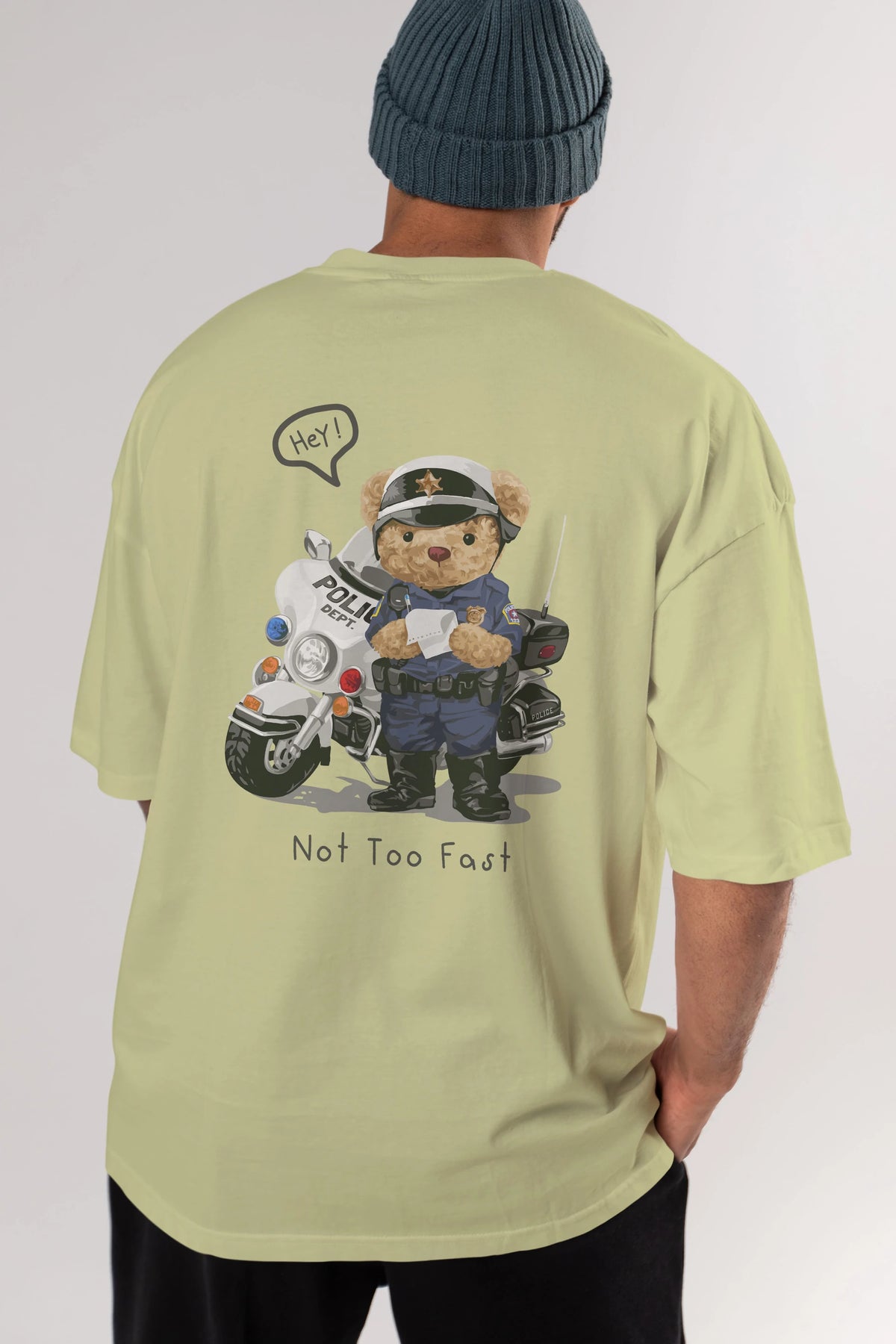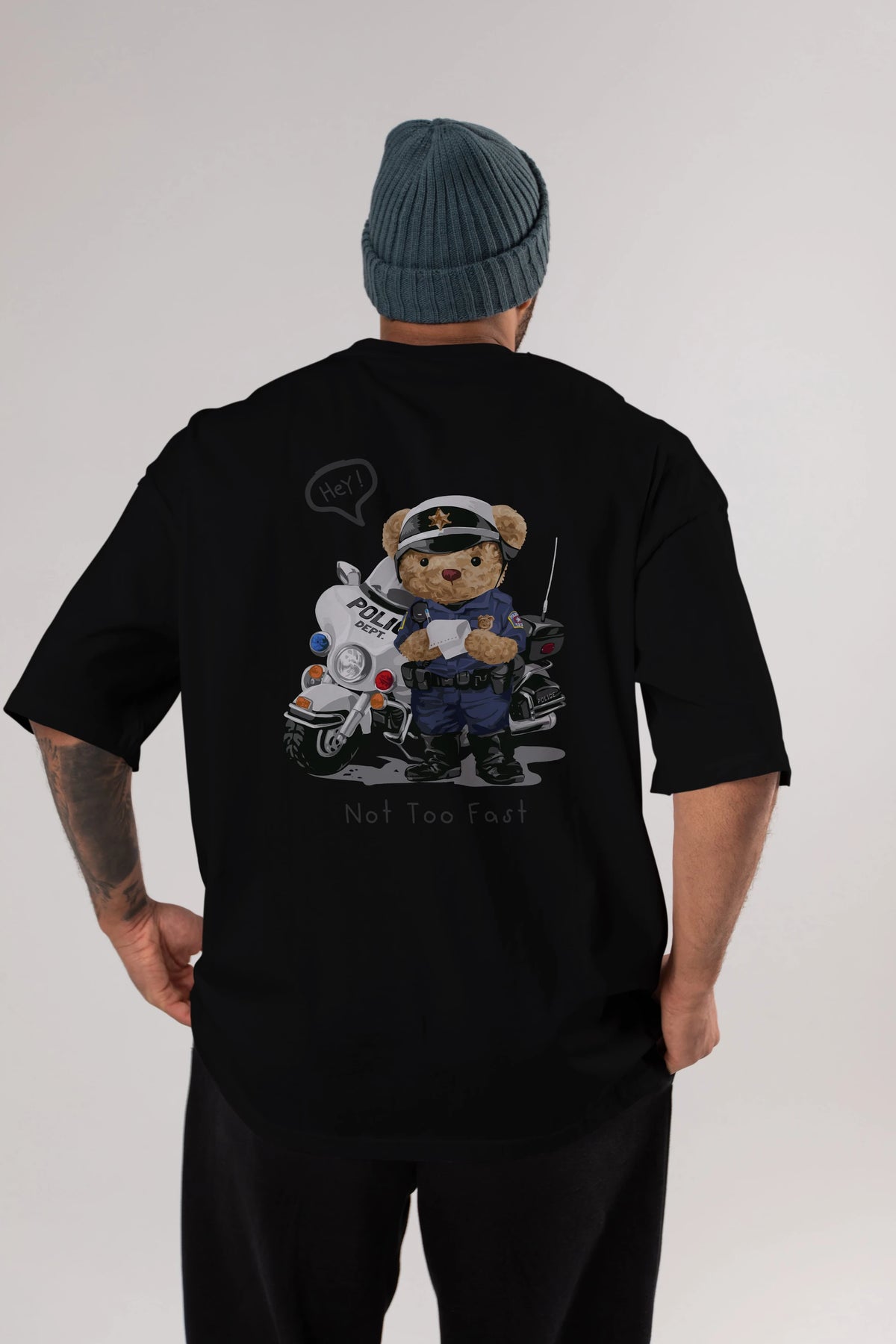 Teddy Bear Not Too Fast Arka Baskılı Oversize t-shirt Erkek Kadın Unisex %100 Pamuk