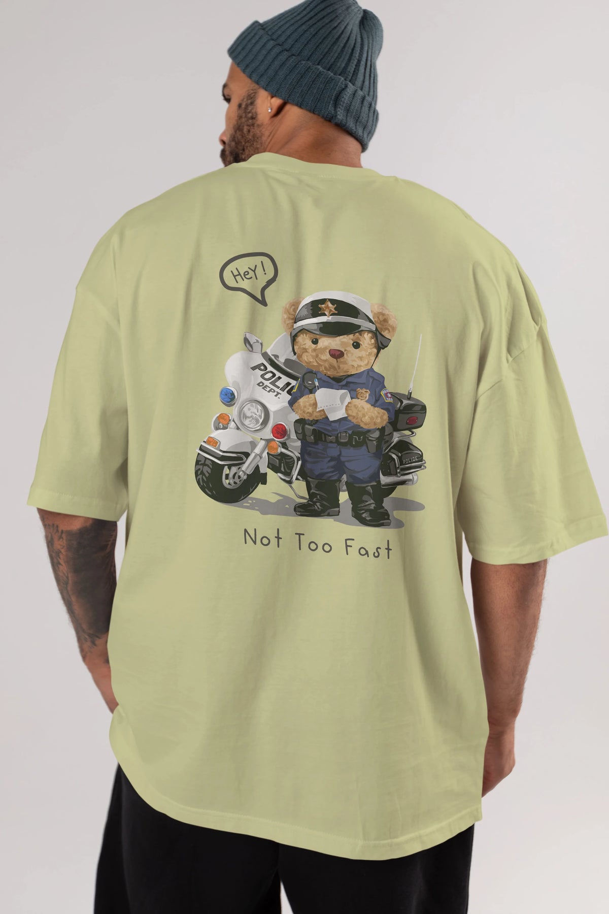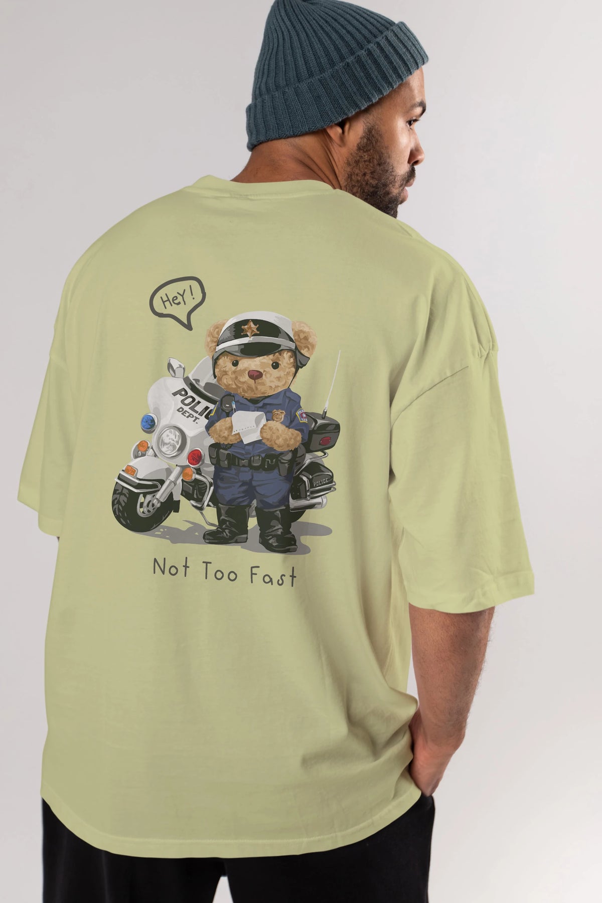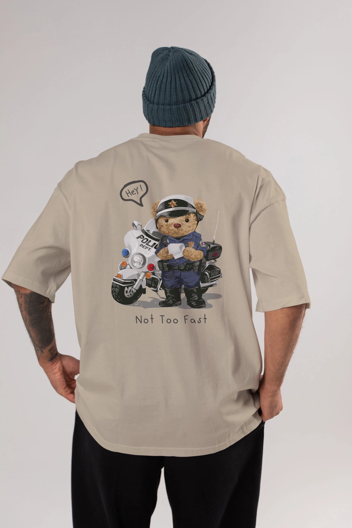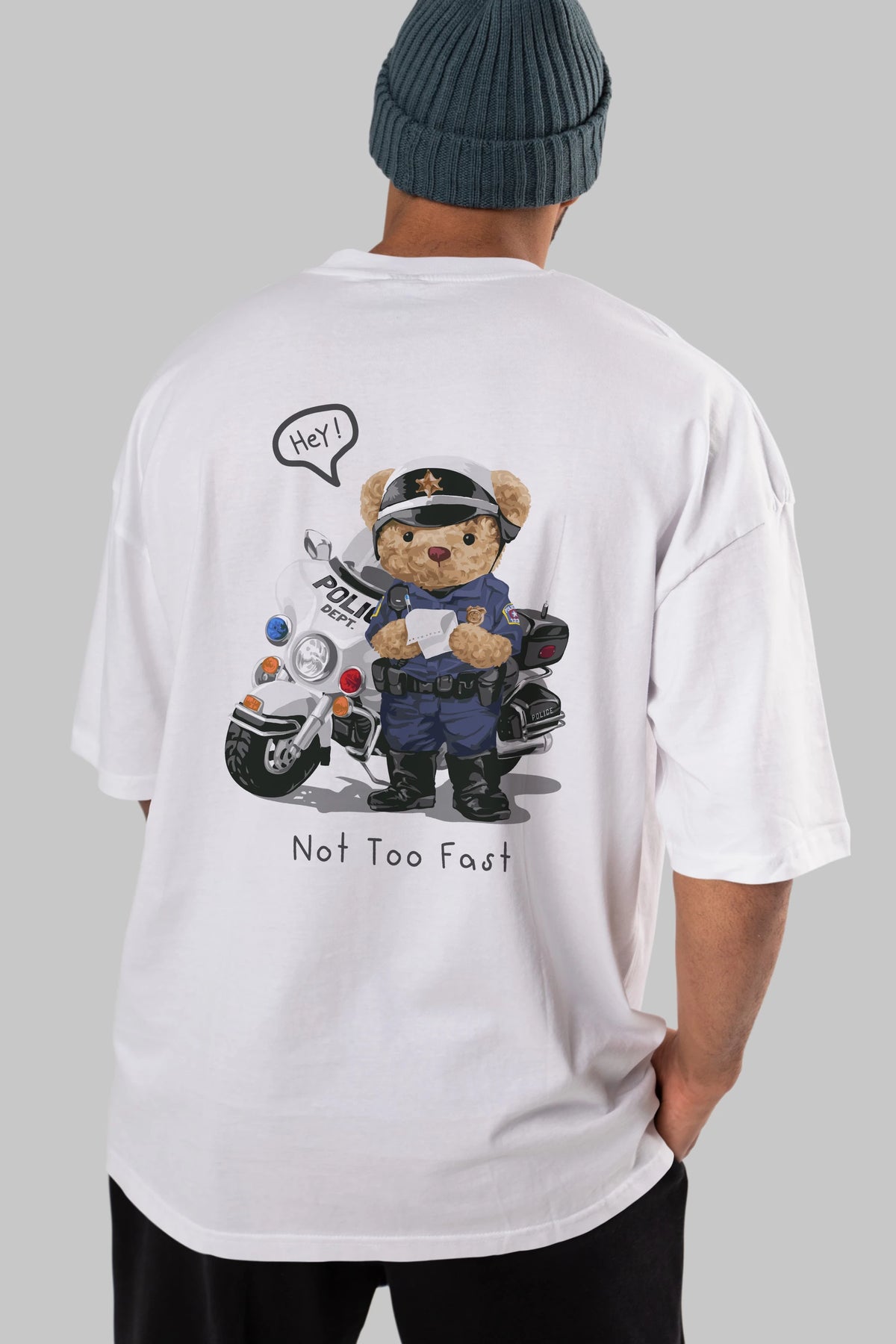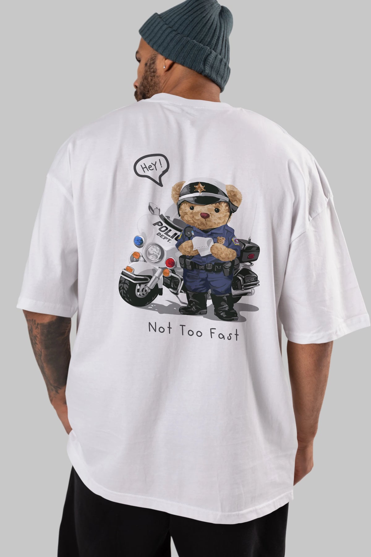 Teddy Bear Not Too Fast Arka Baskılı Oversize t-shirt Erkek Kadın Unisex %100 Pamuk