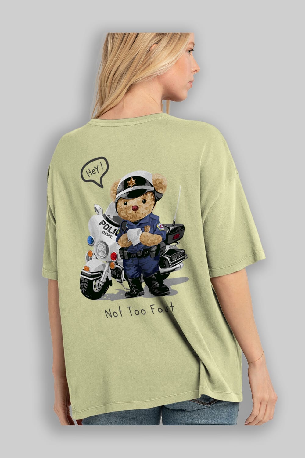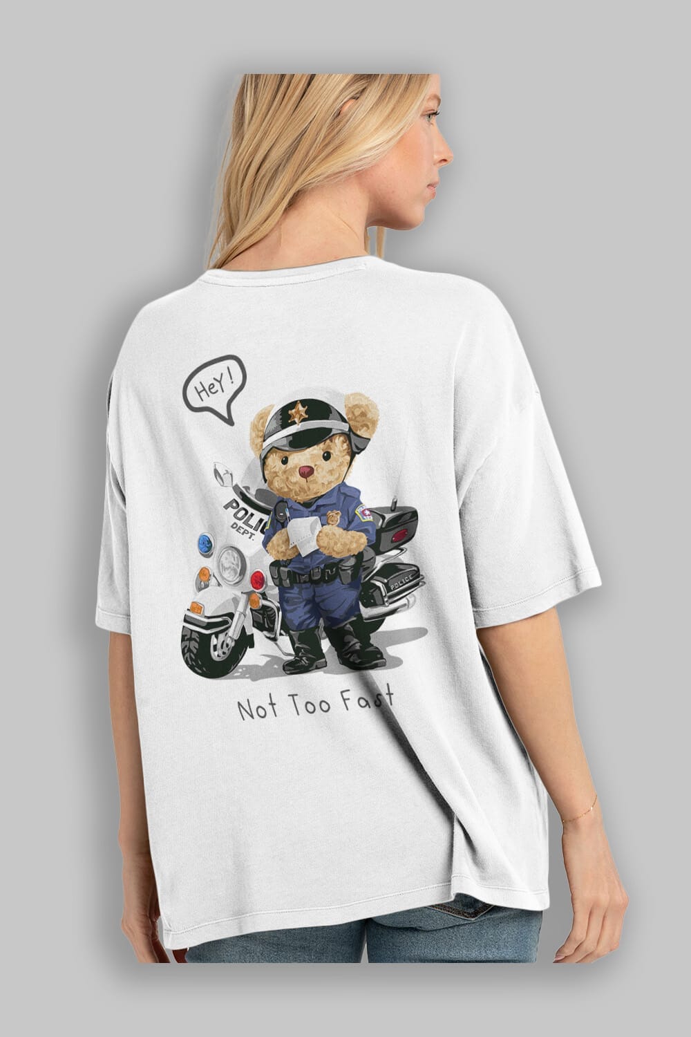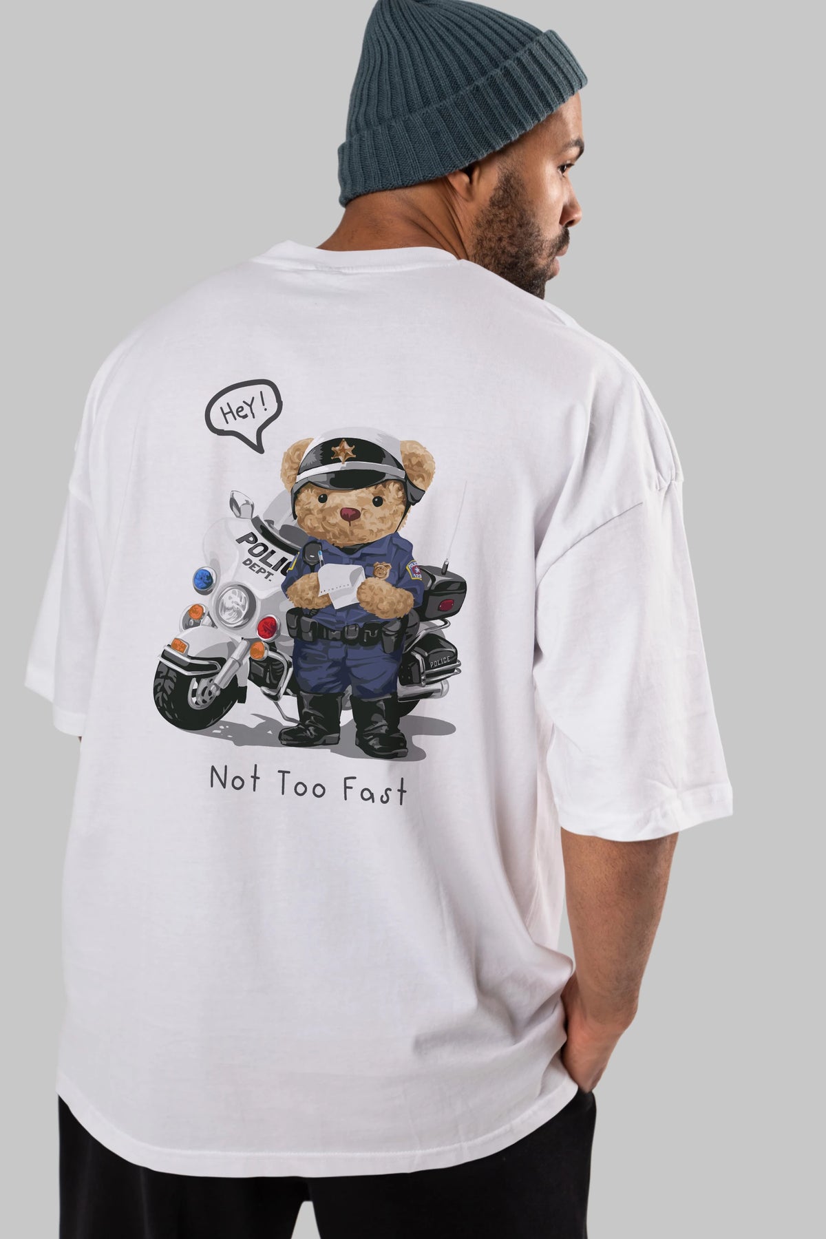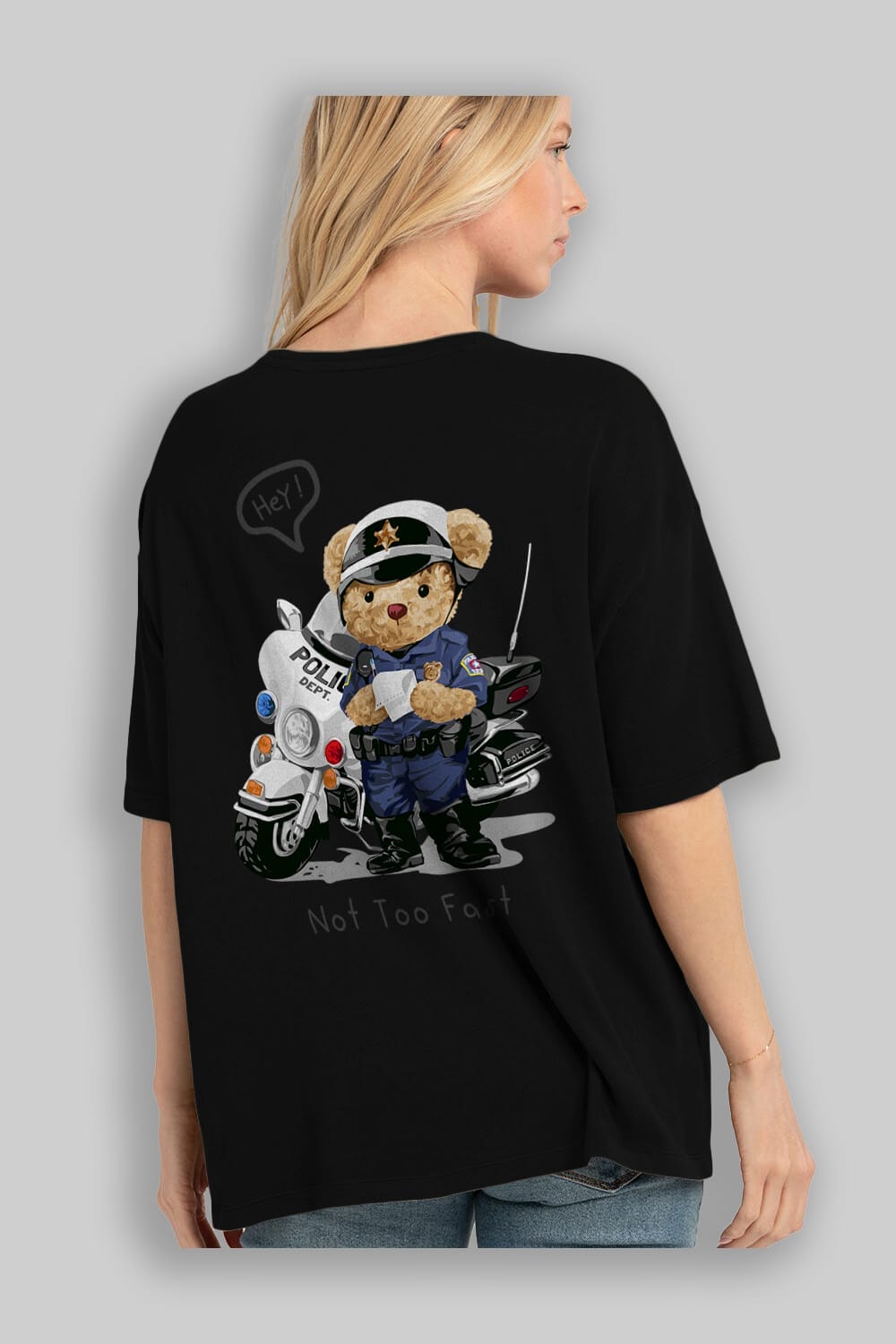 Teddy Bear Not Too Fast Arka Baskılı Oversize t-shirt Erkek Kadın Unisex %100 Pamuk