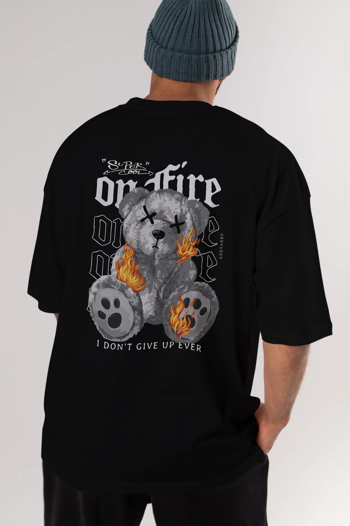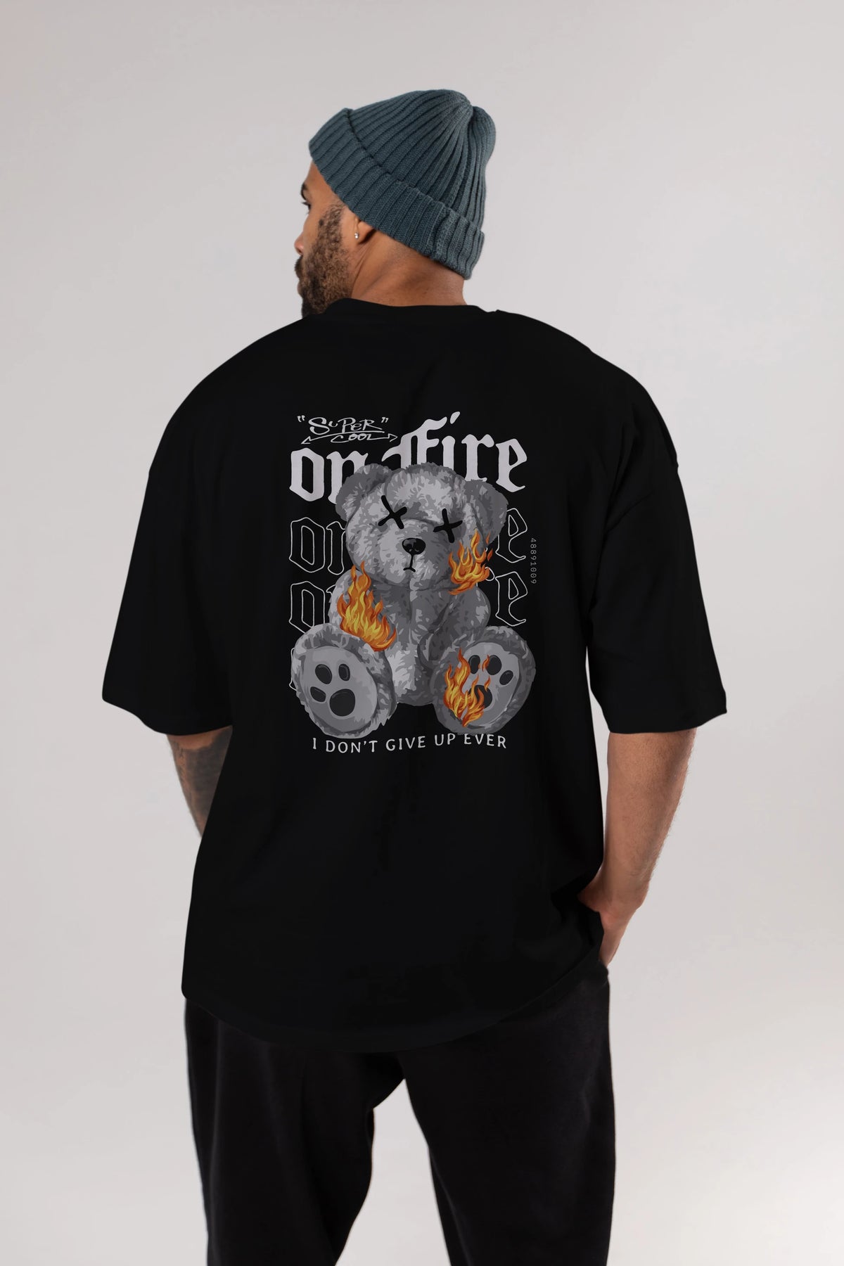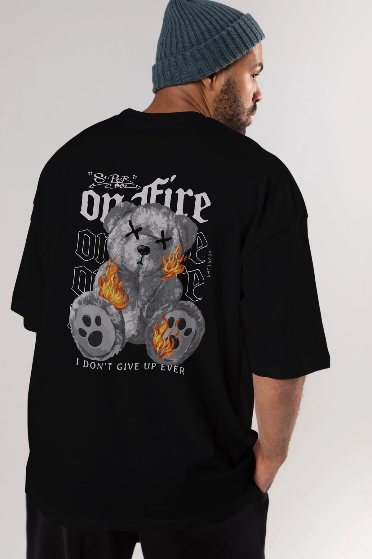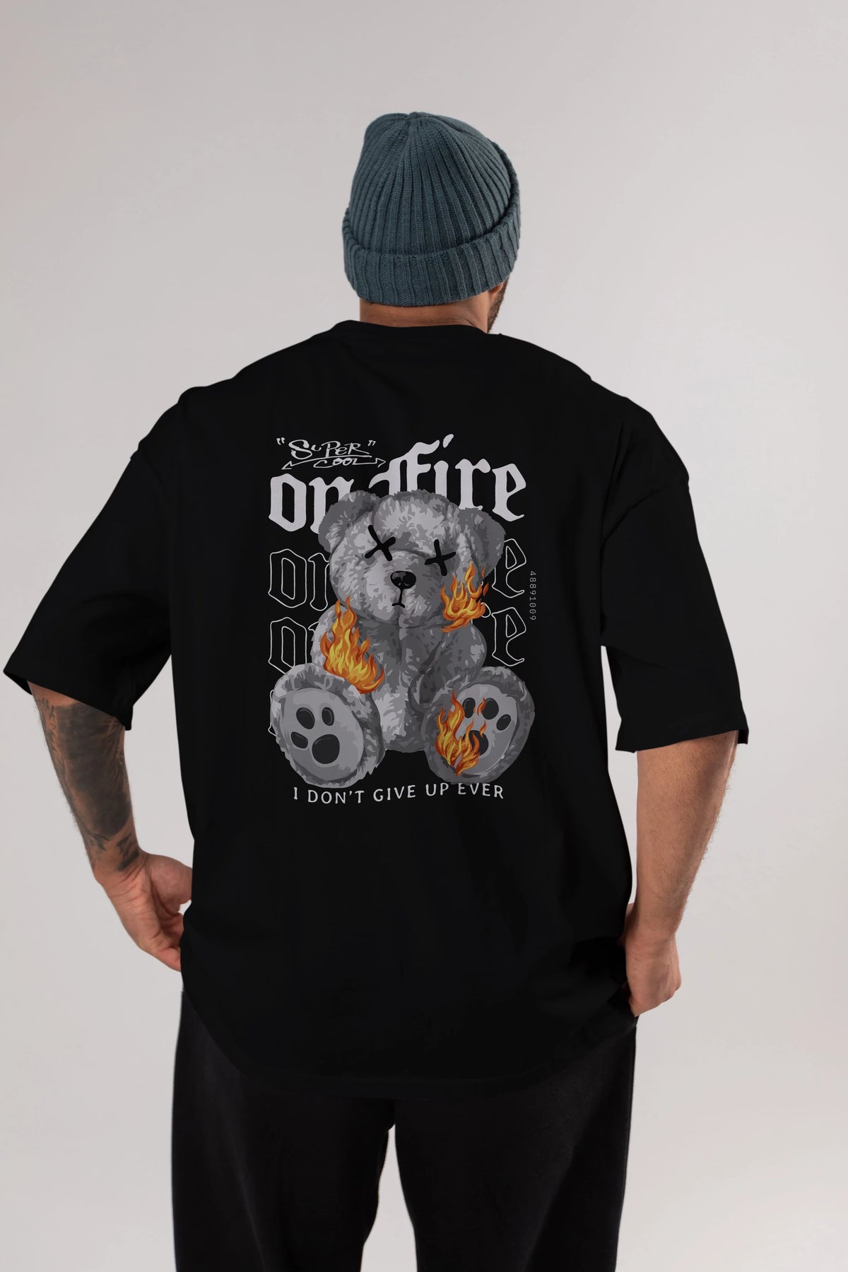 Teddy Bear On Fire Arka Baskılı Oversize t-shirt Erkek Kadın Unisex