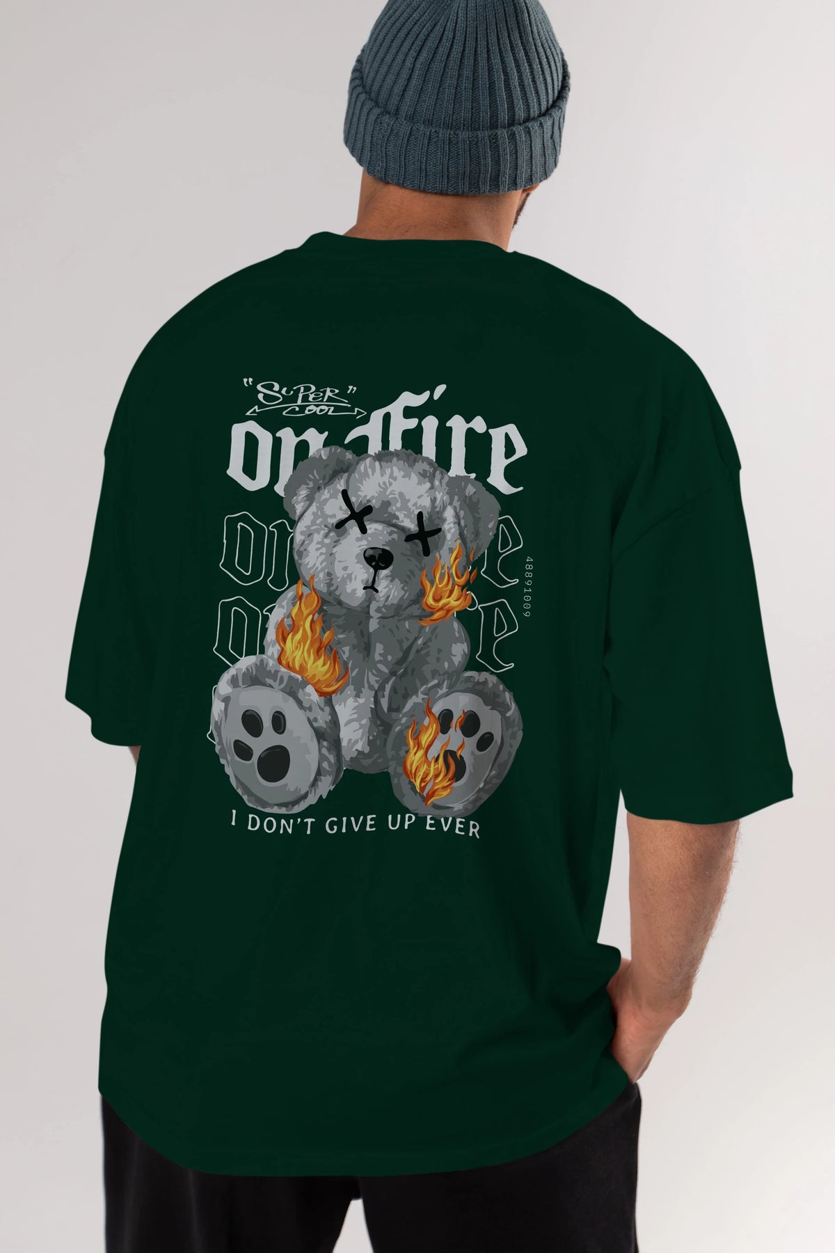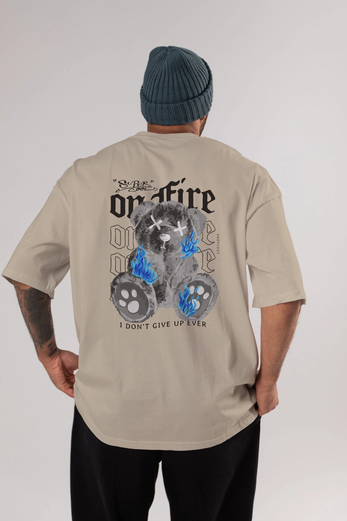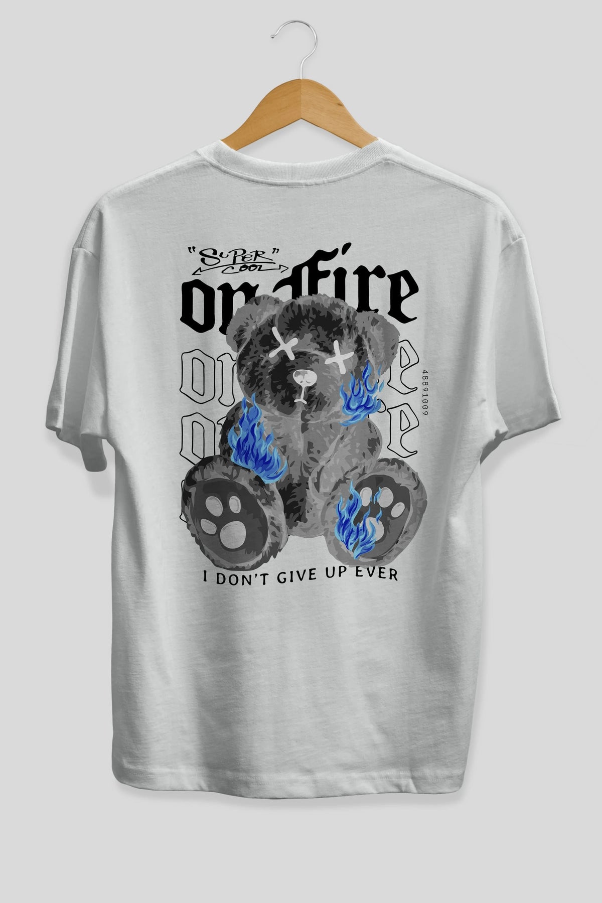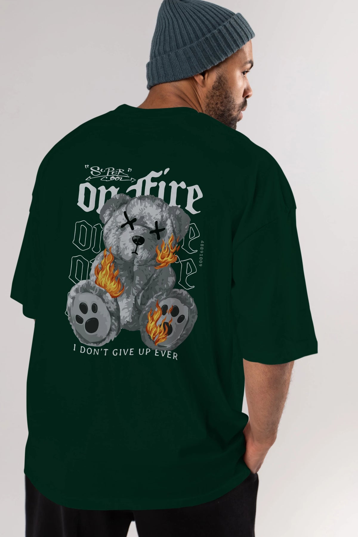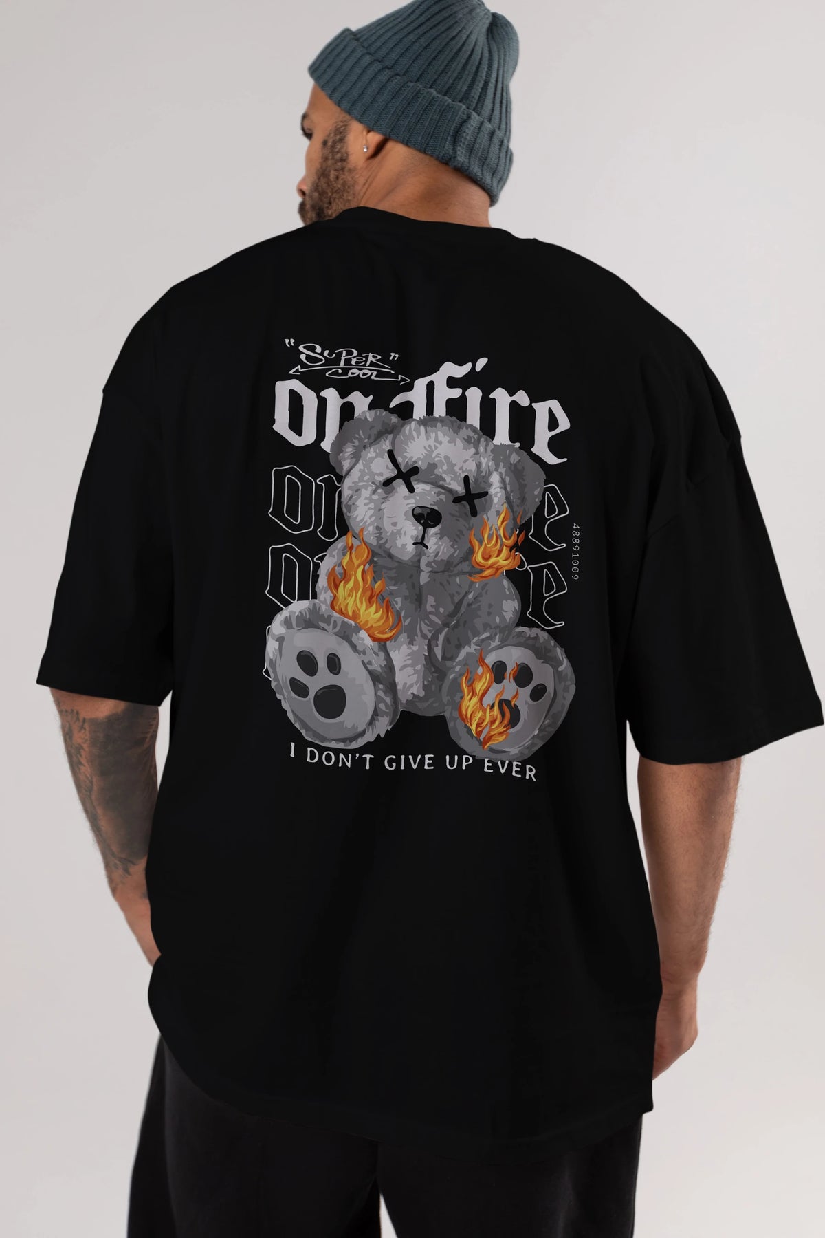 Teddy Bear On Fire Arka Baskılı Oversize t-shirt Erkek Kadın Unisex