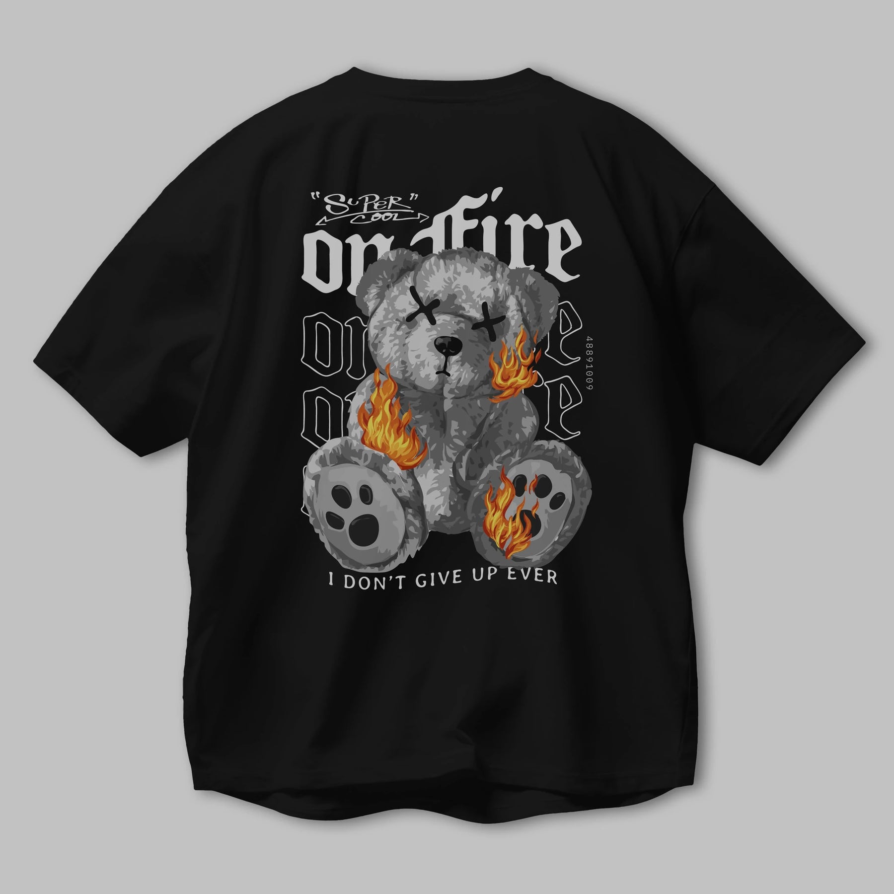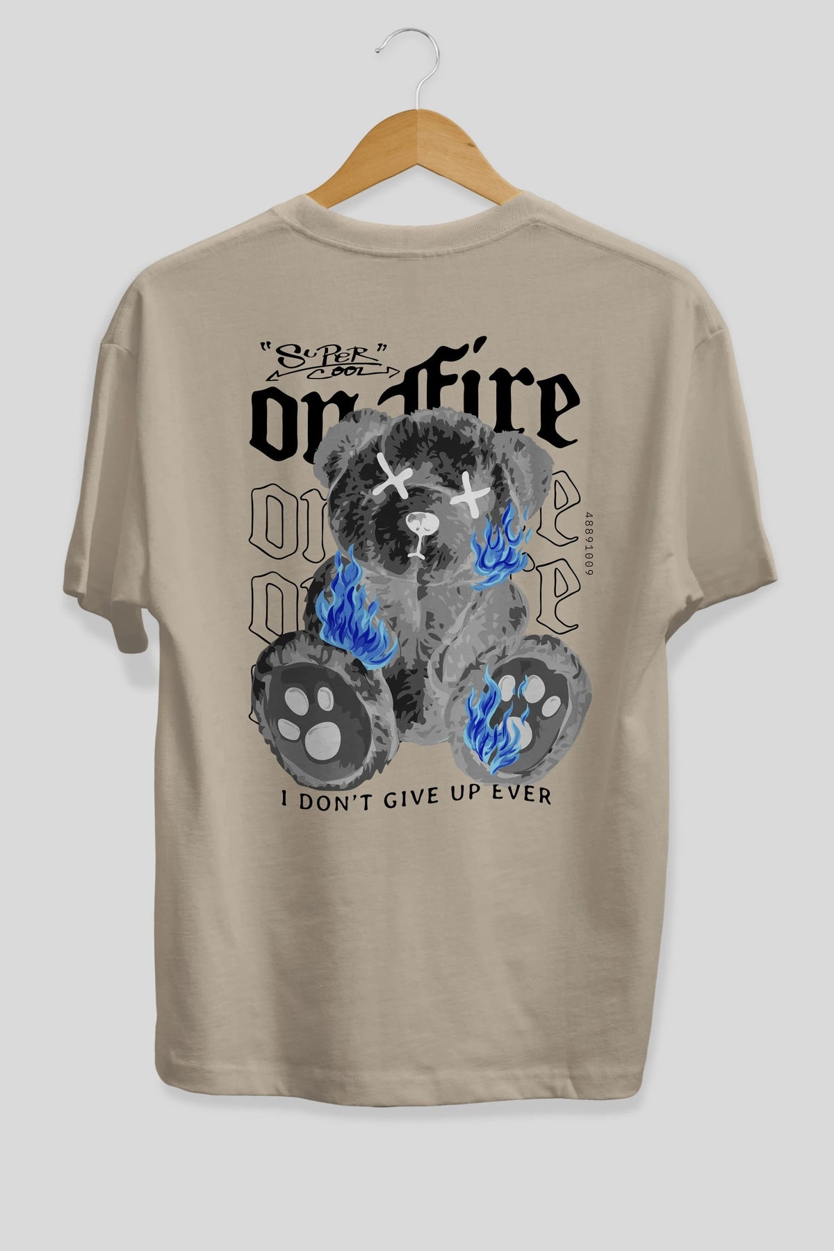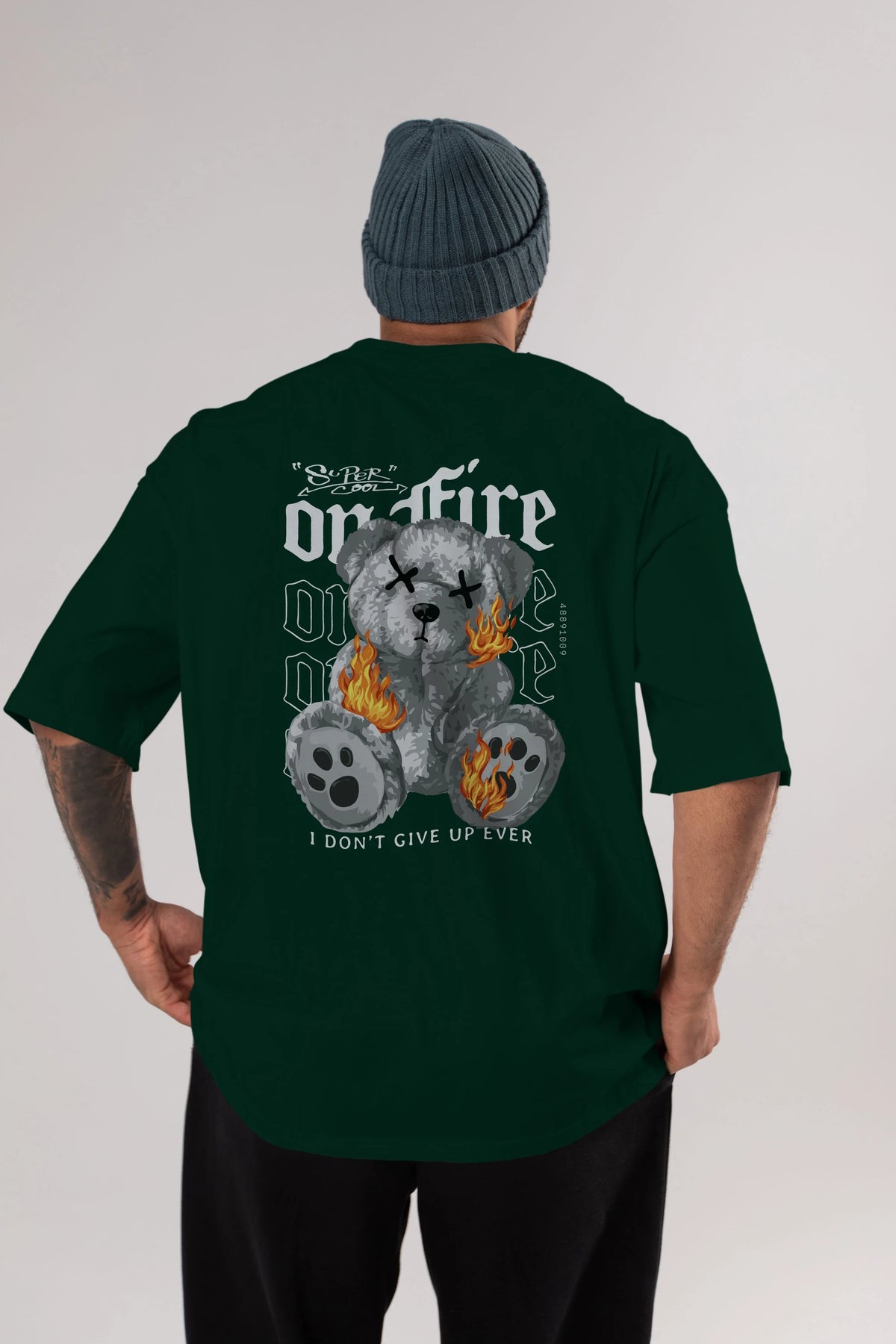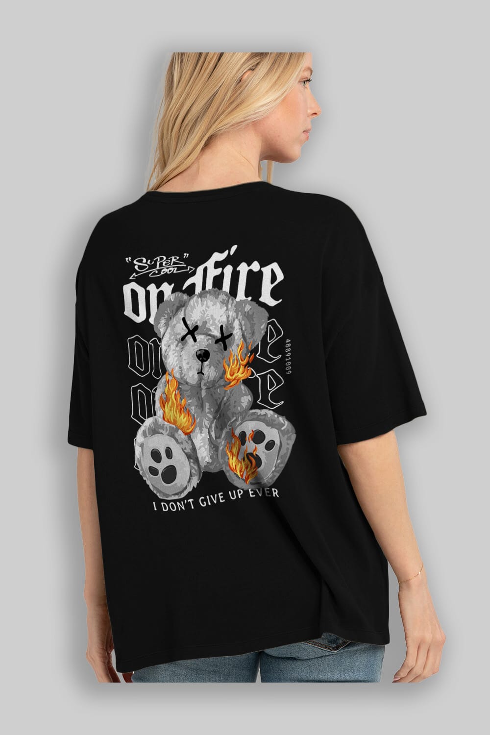 Teddy Bear On Fire Arka Baskılı Oversize t-shirt Erkek Kadın Unisex
