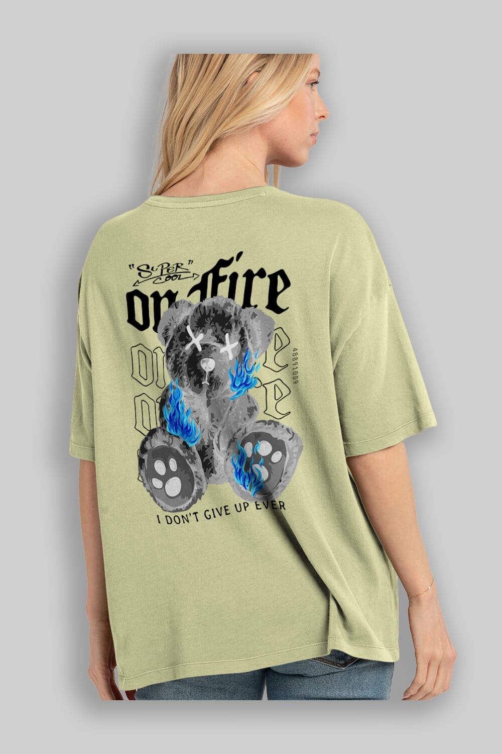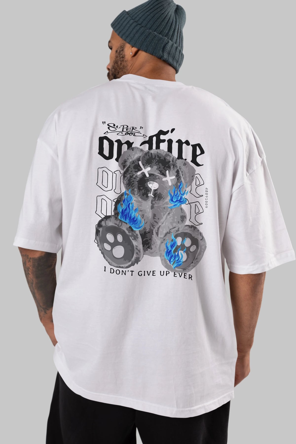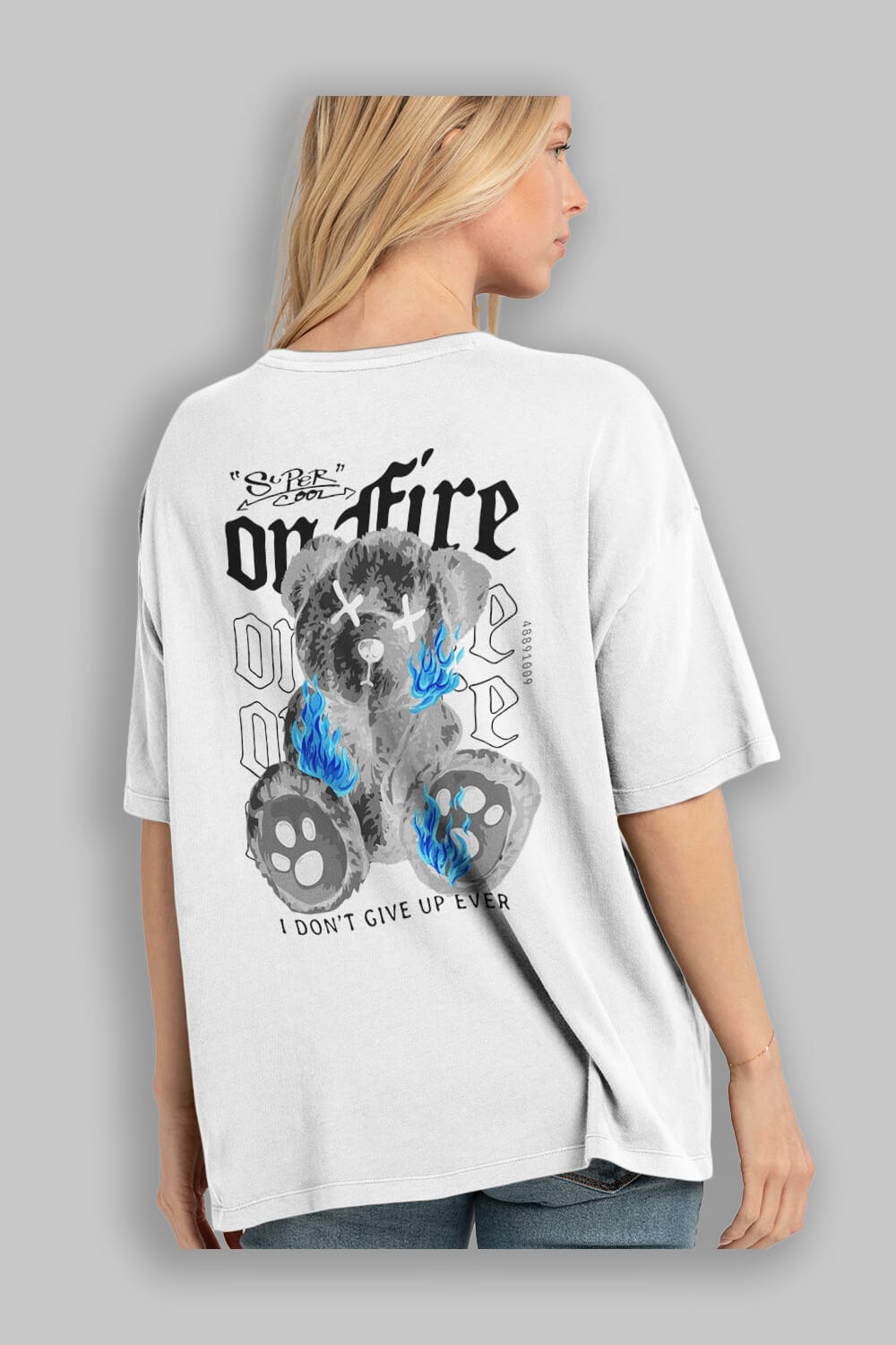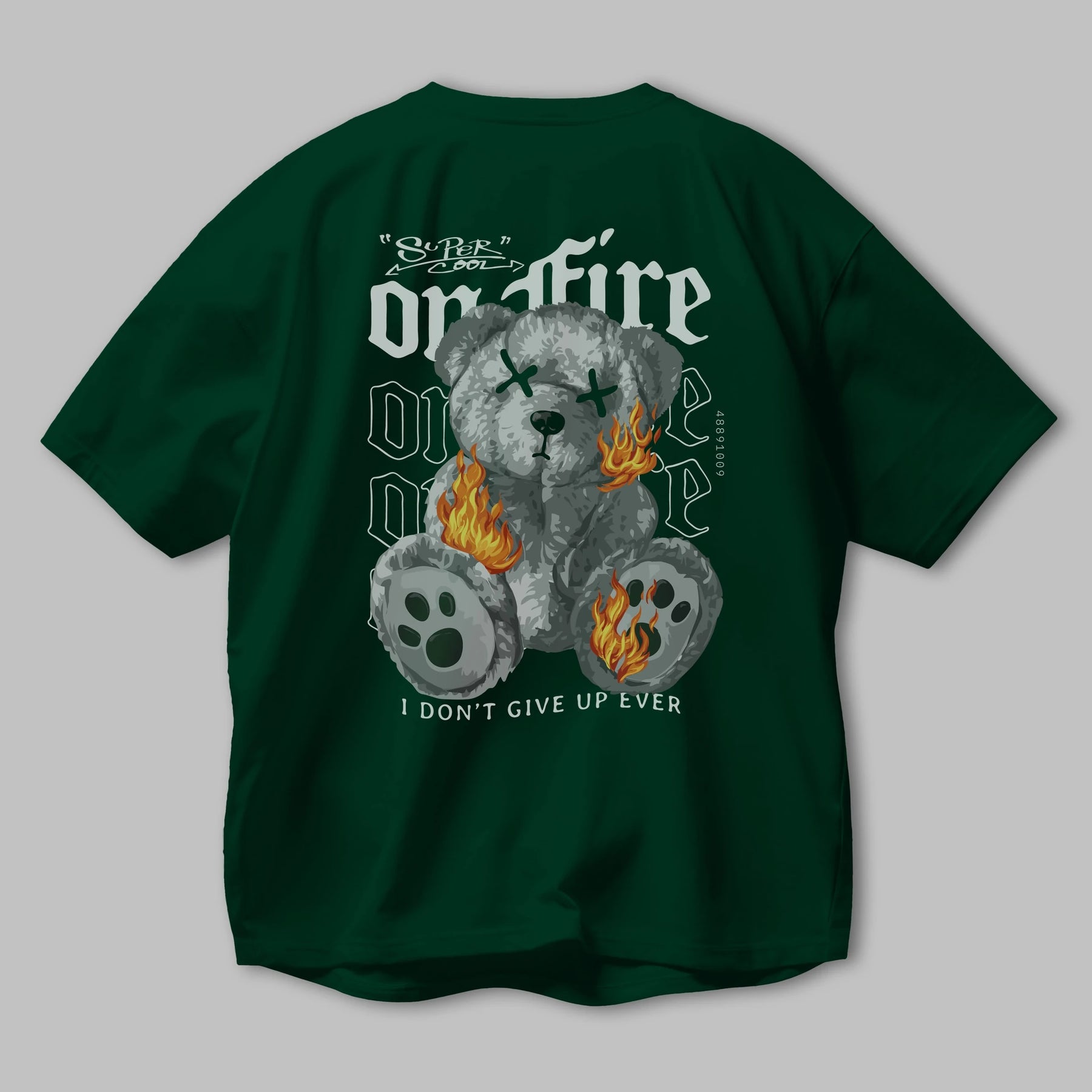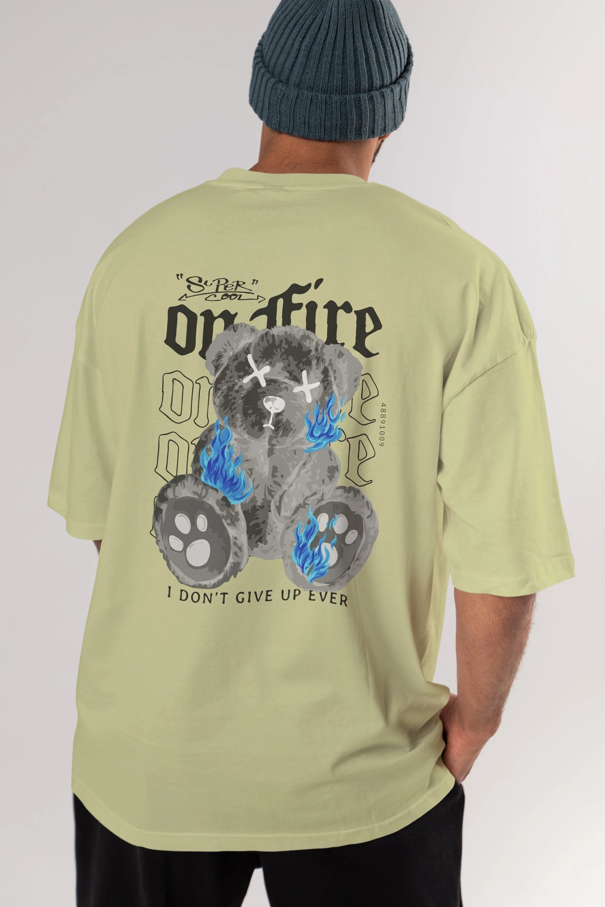 Teddy Bear On Fire Arka Baskılı Oversize t-shirt Erkek Kadın Unisex