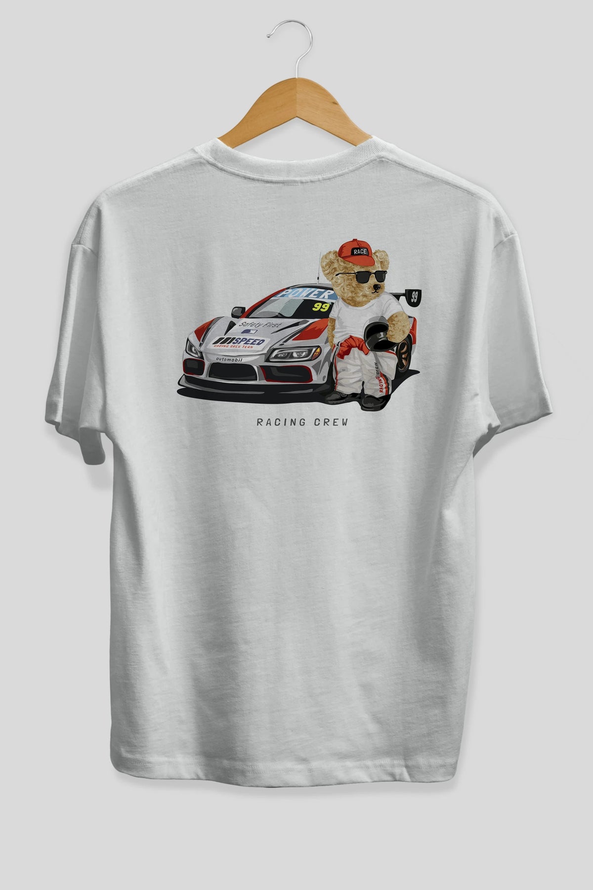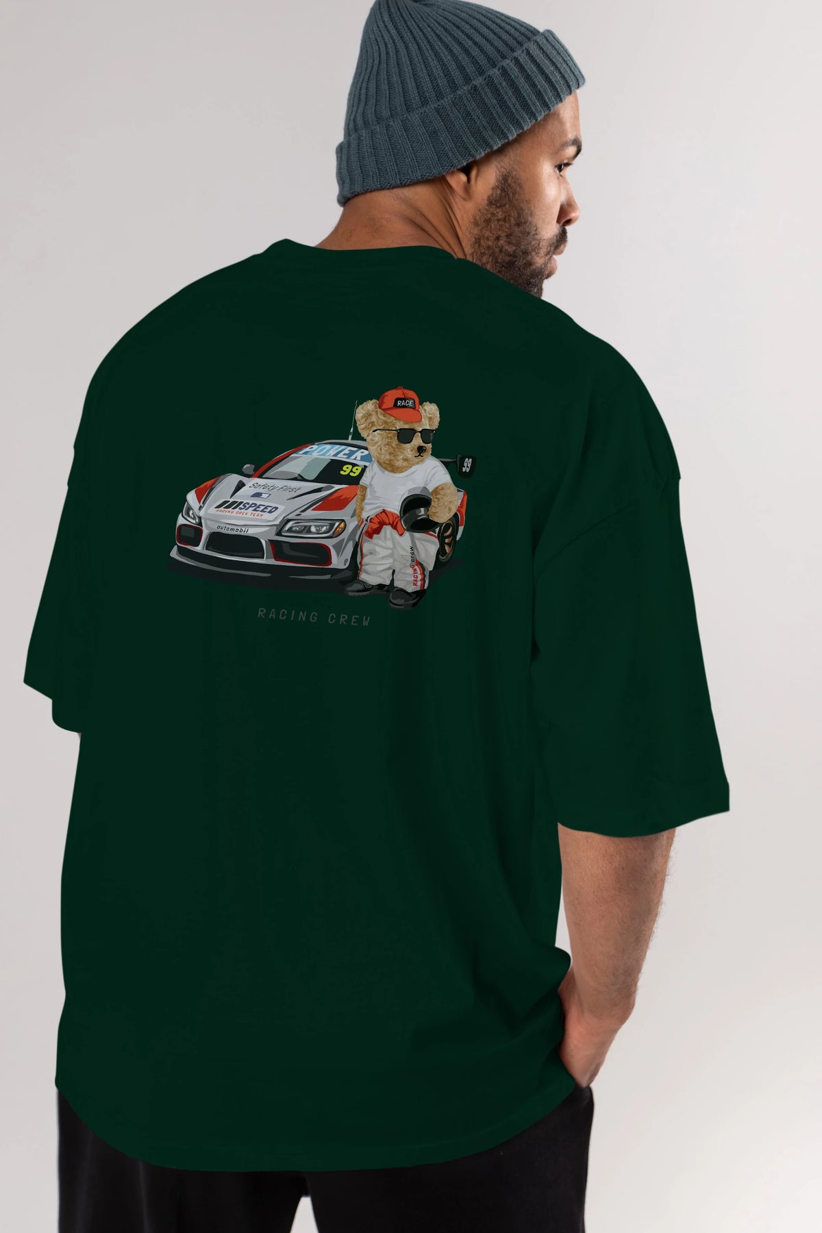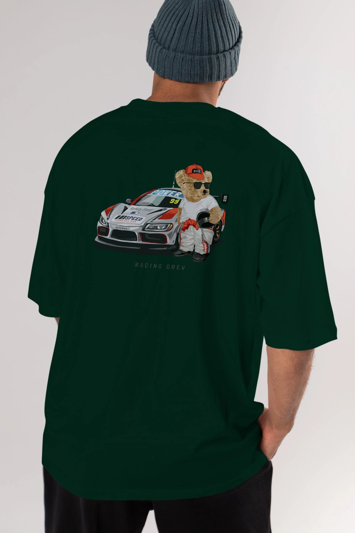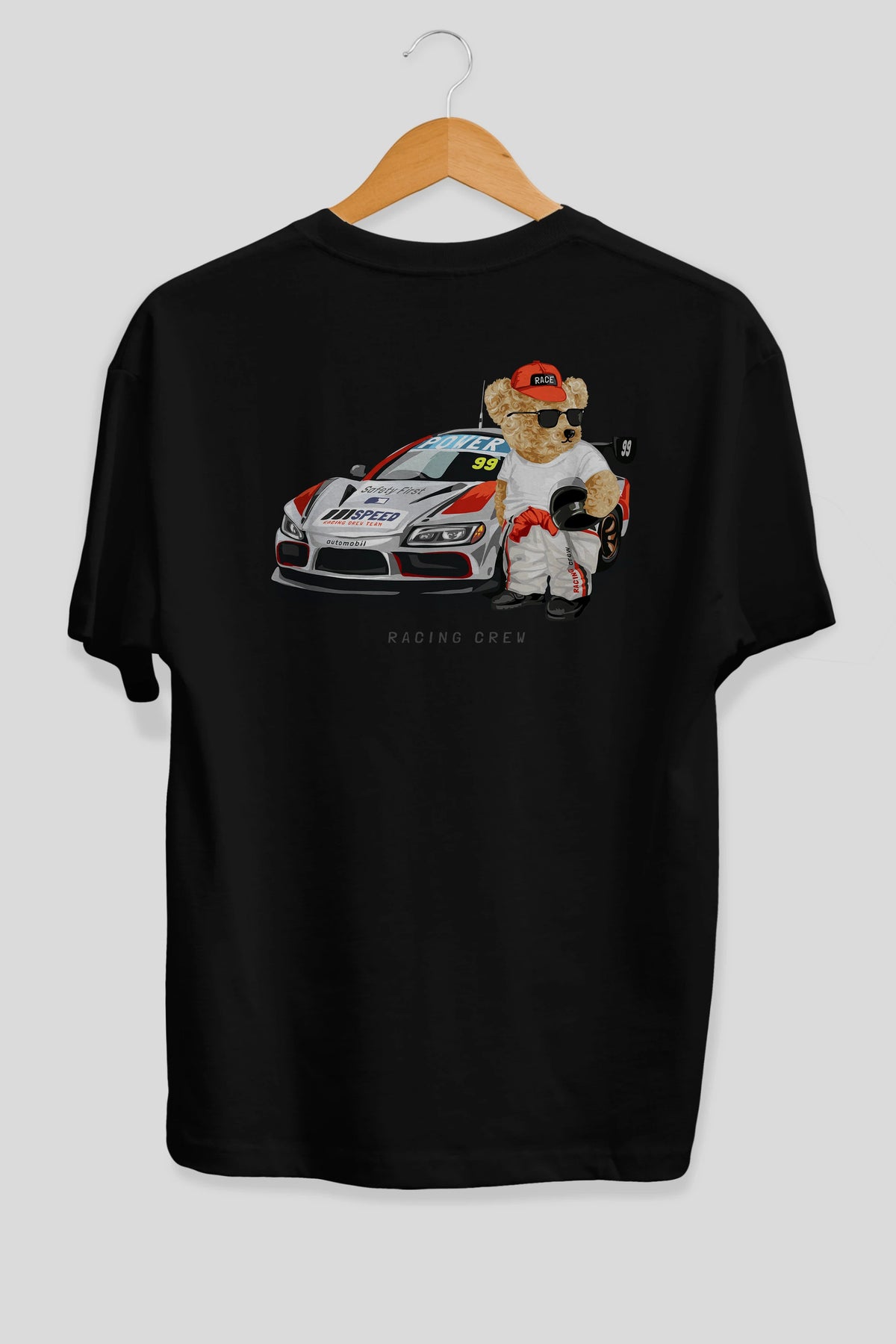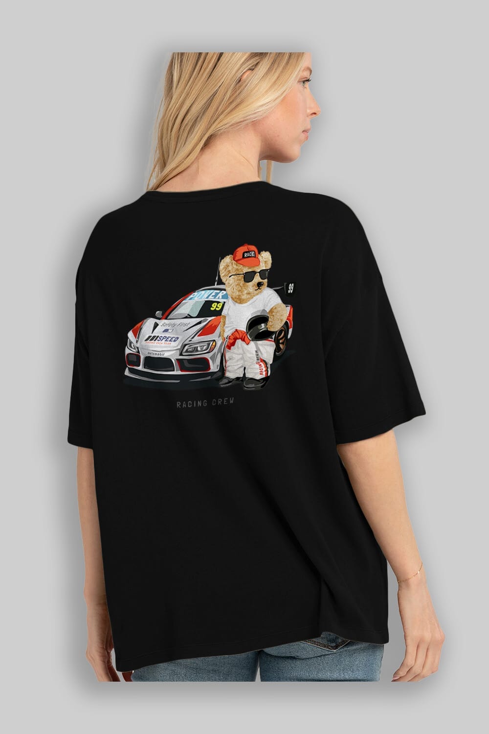 Teddy Bear Racing Crew Arka Baskılı Oversize t-shirt Erkek Kadın Unisex %100 Pamuk