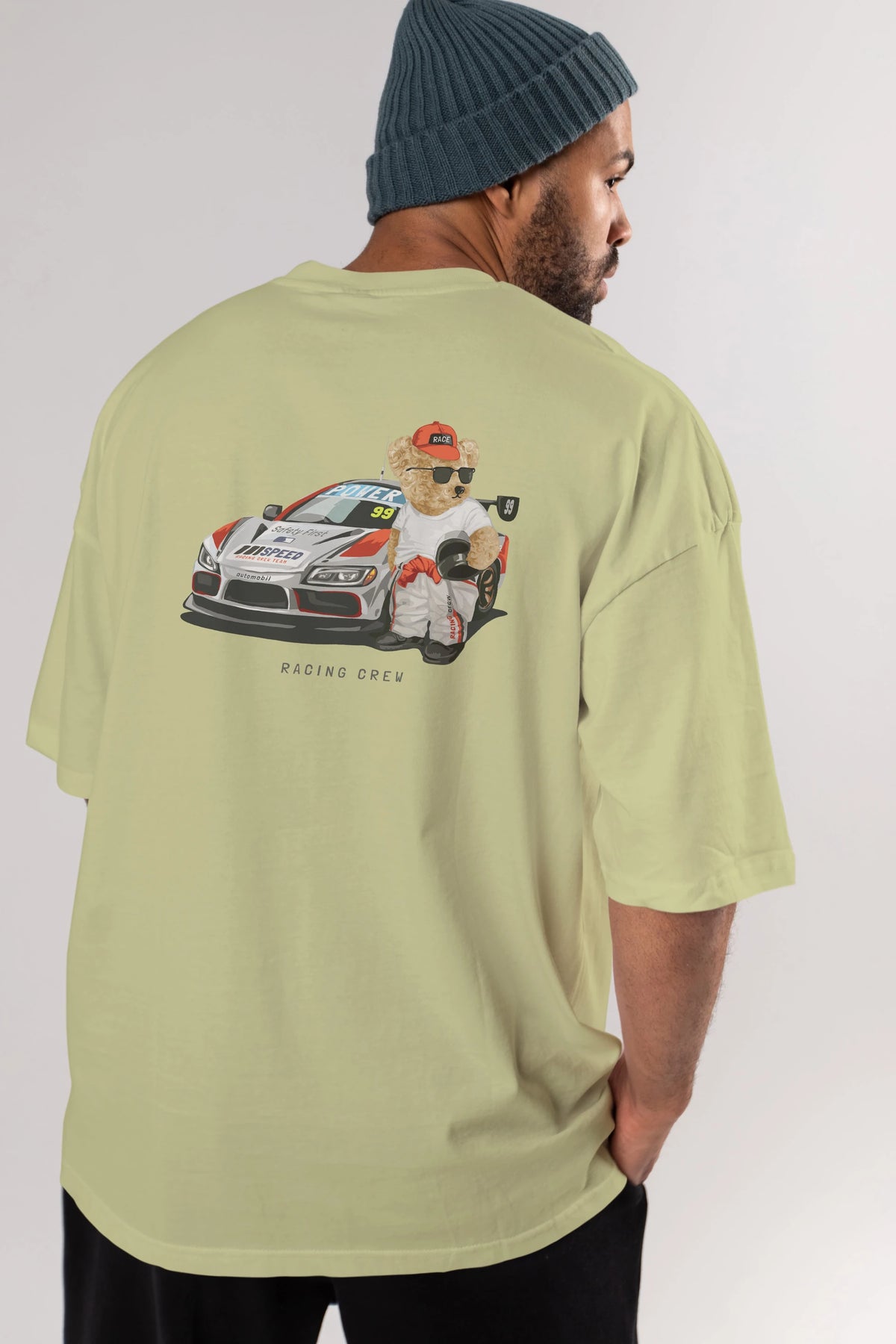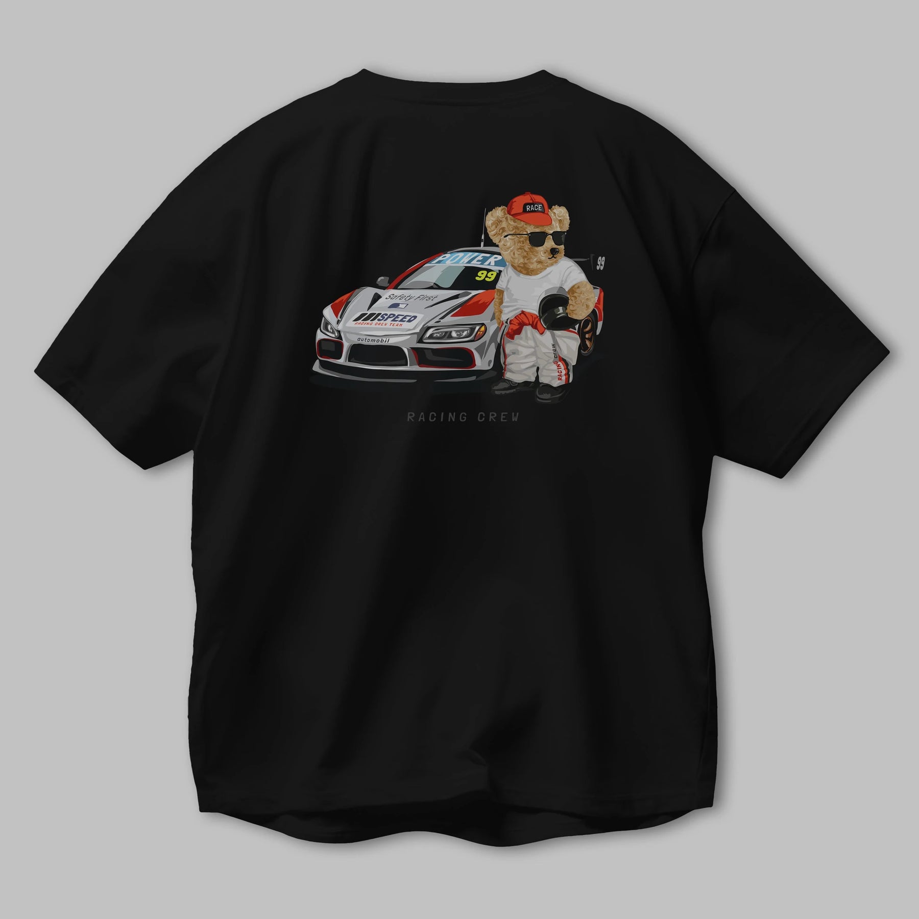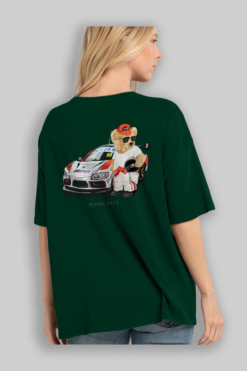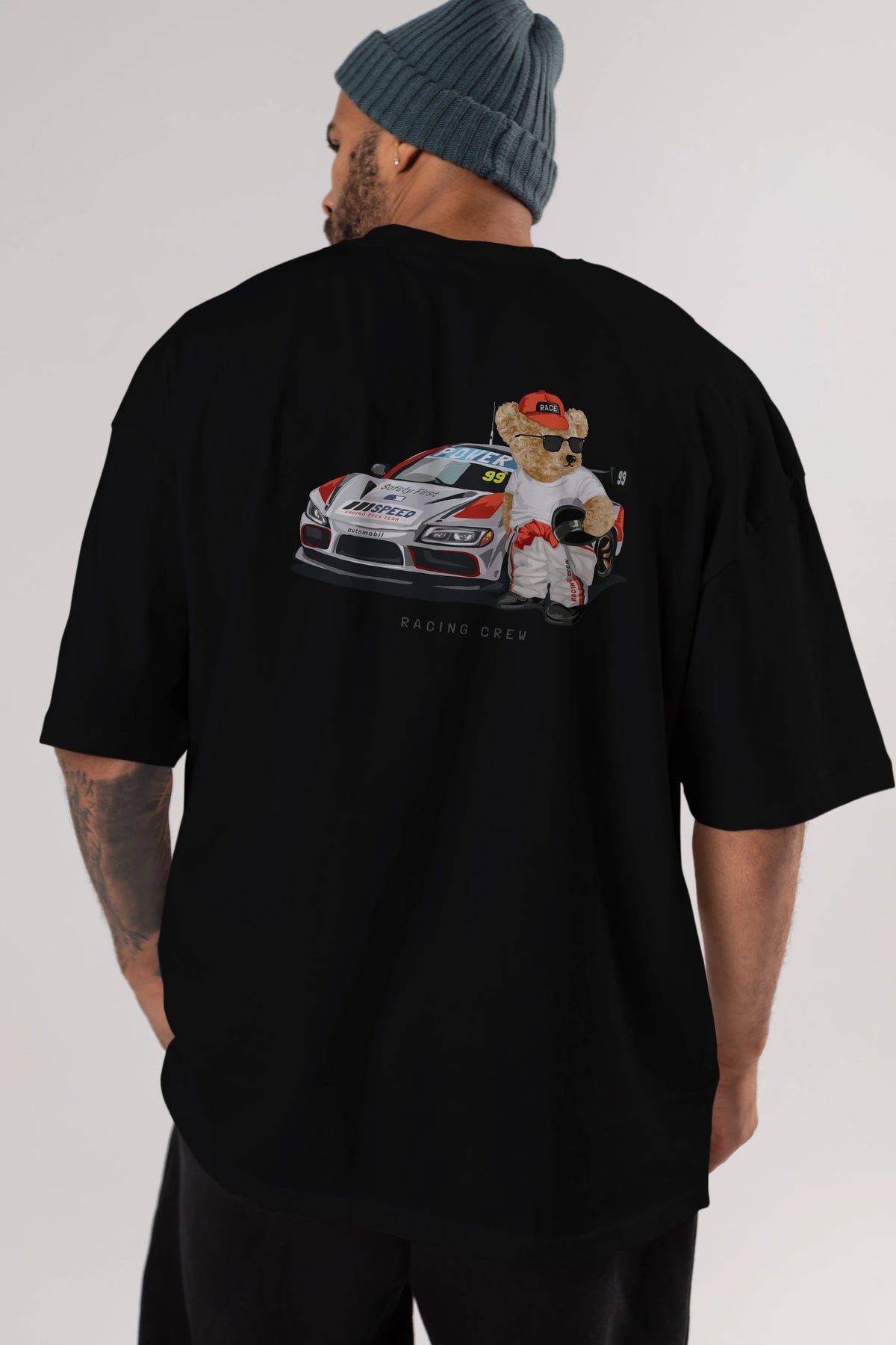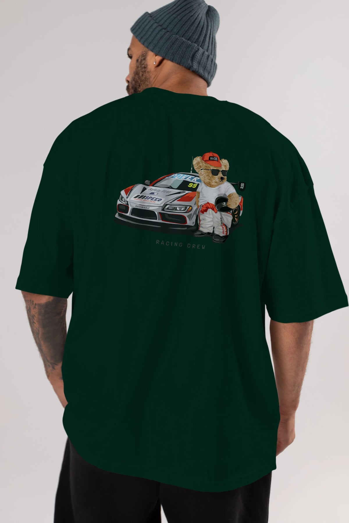 Teddy Bear Racing Crew Arka Baskılı Oversize t-shirt Erkek Kadın Unisex %100 Pamuk
