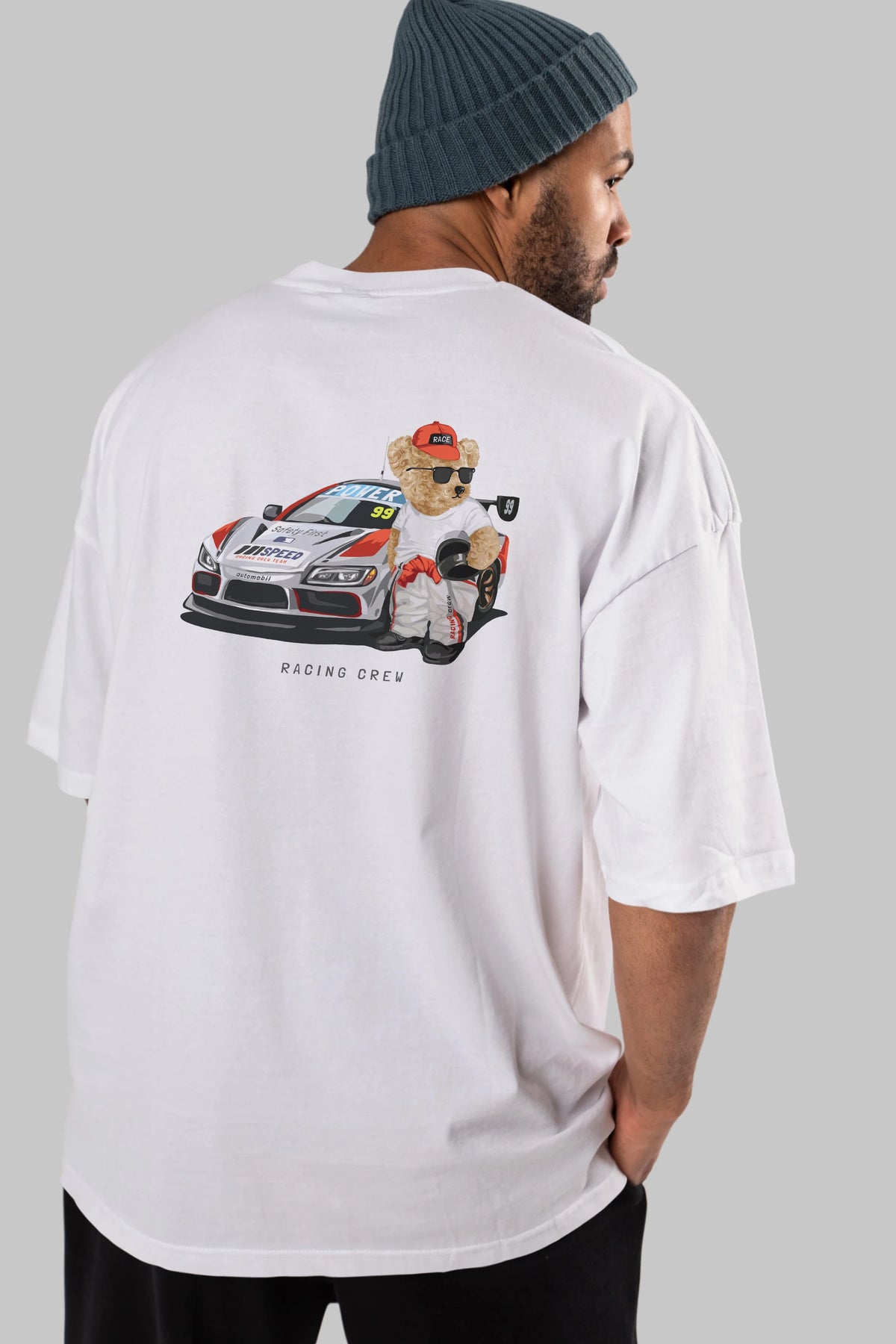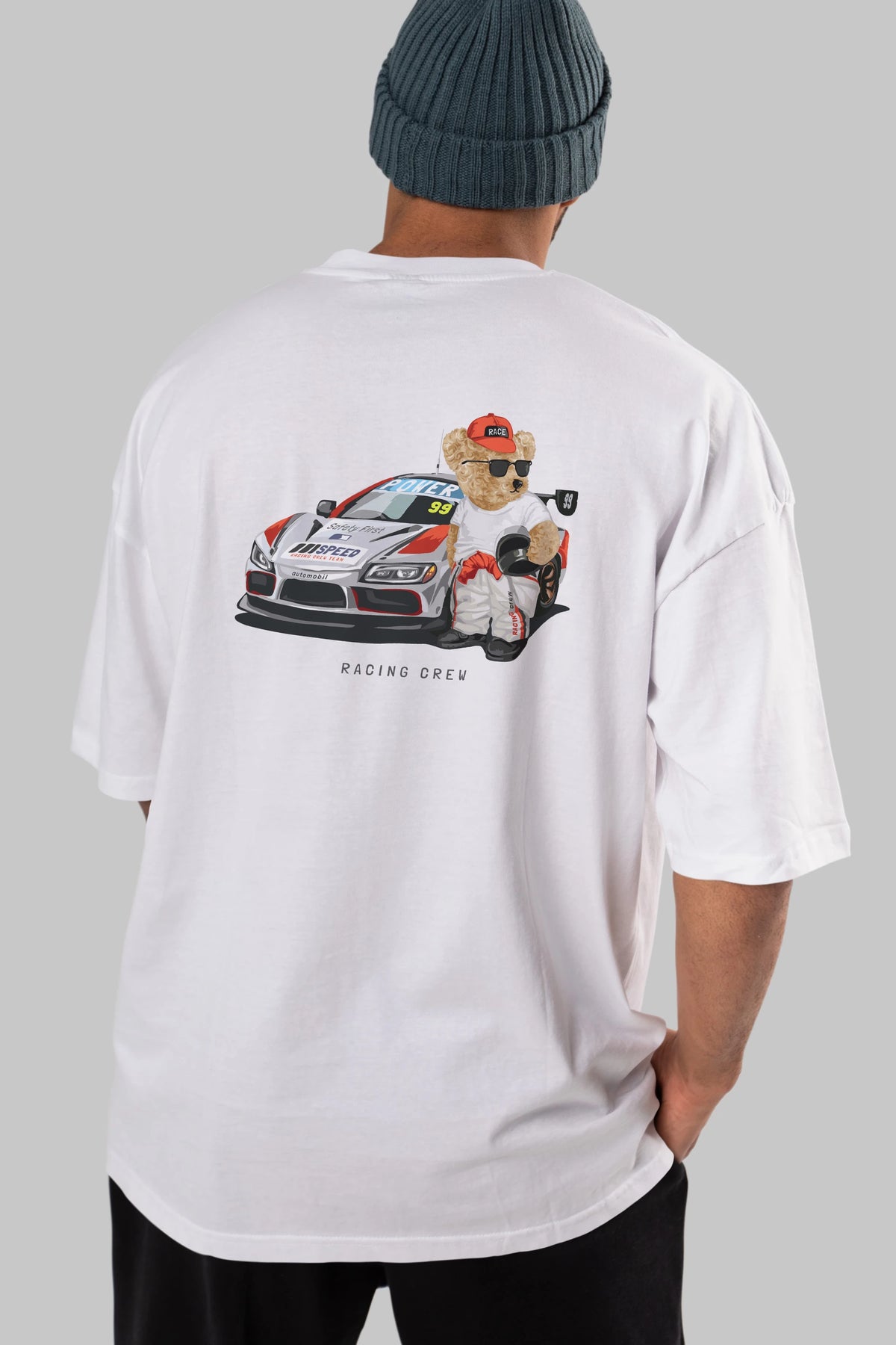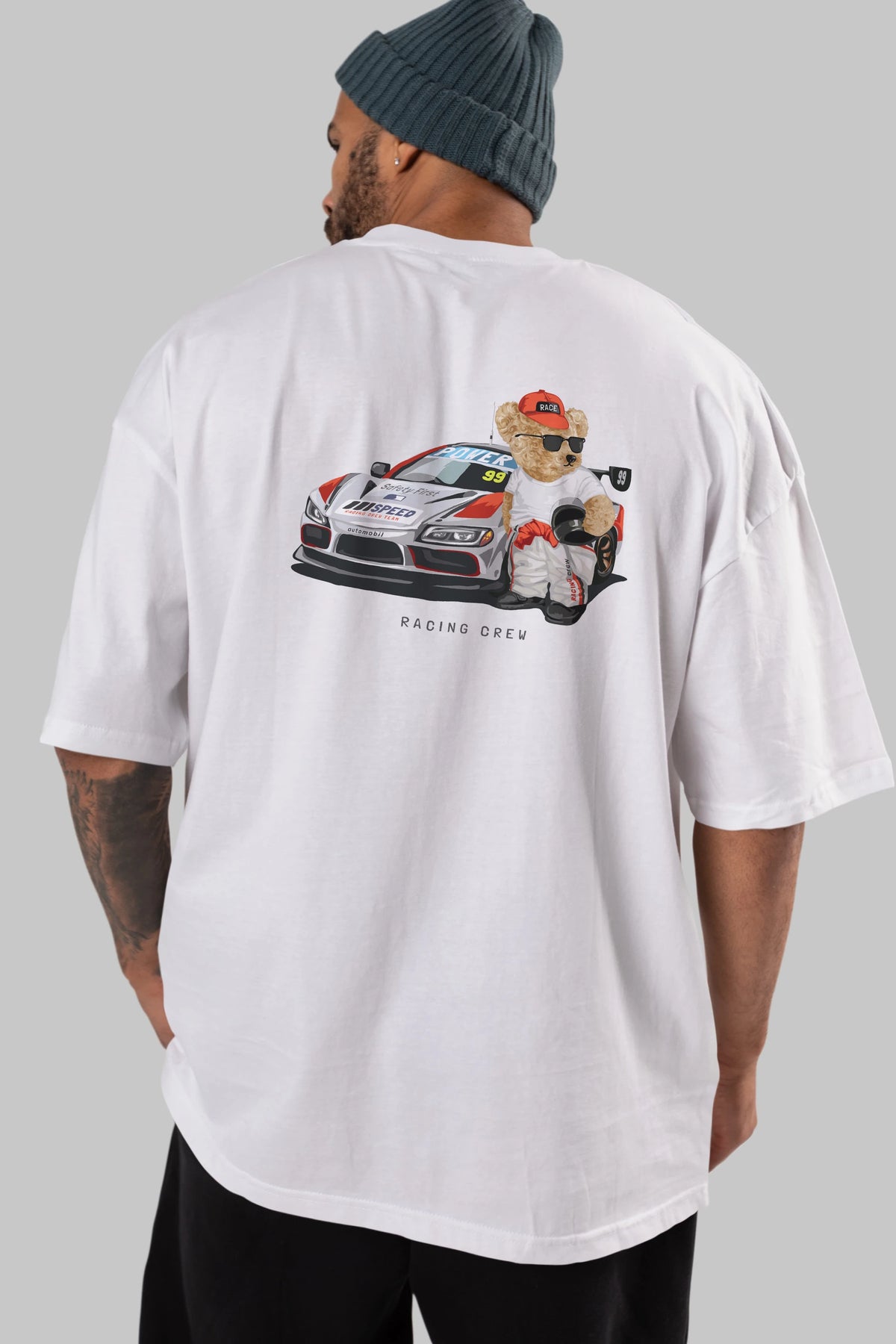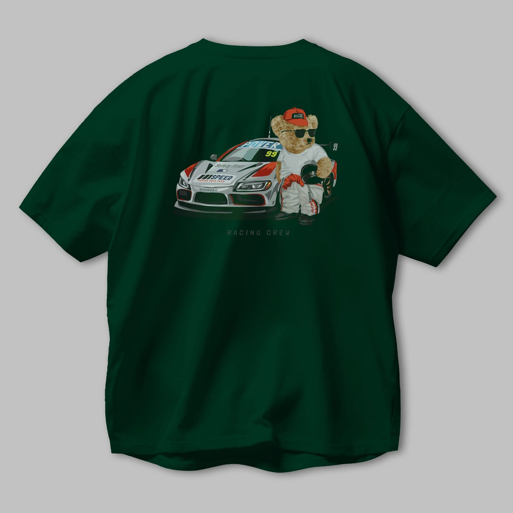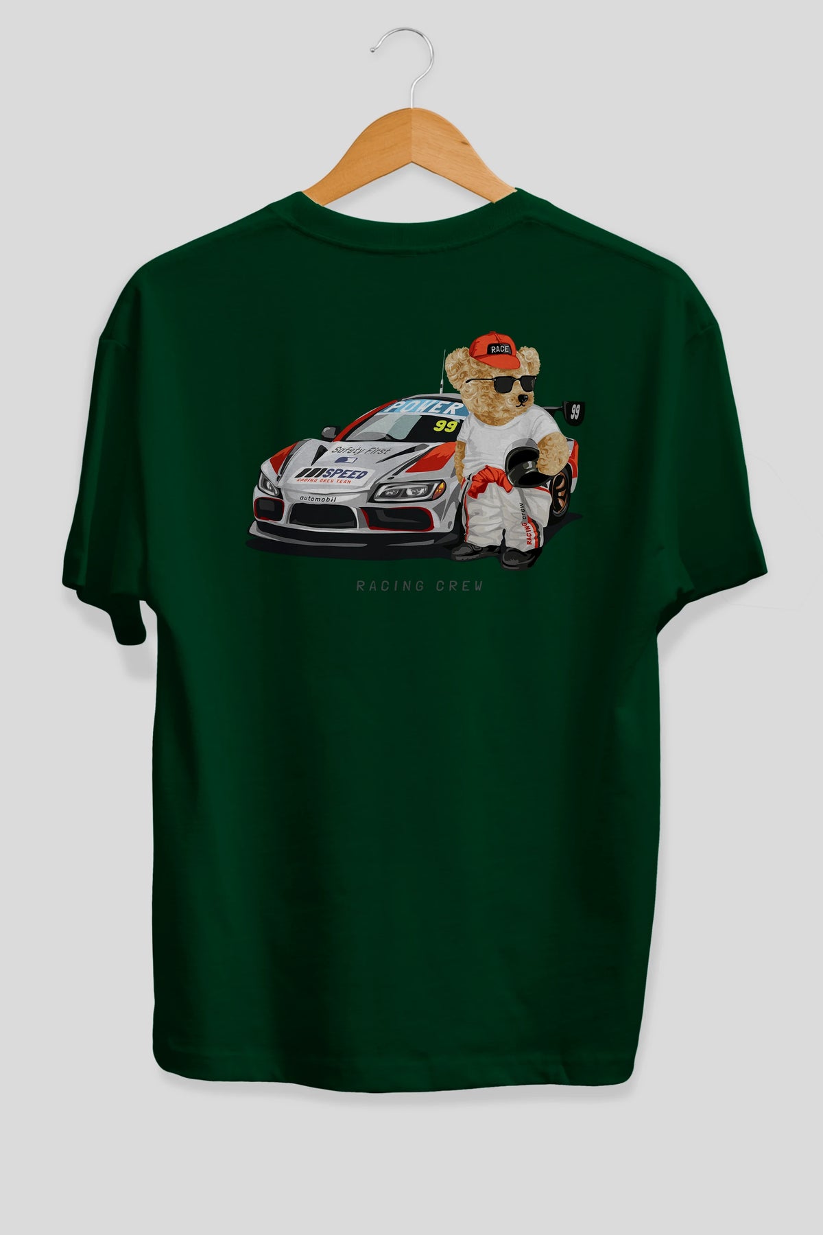 Teddy Bear Racing Crew Arka Baskılı Oversize t-shirt Erkek Kadın Unisex %100 Pamuk