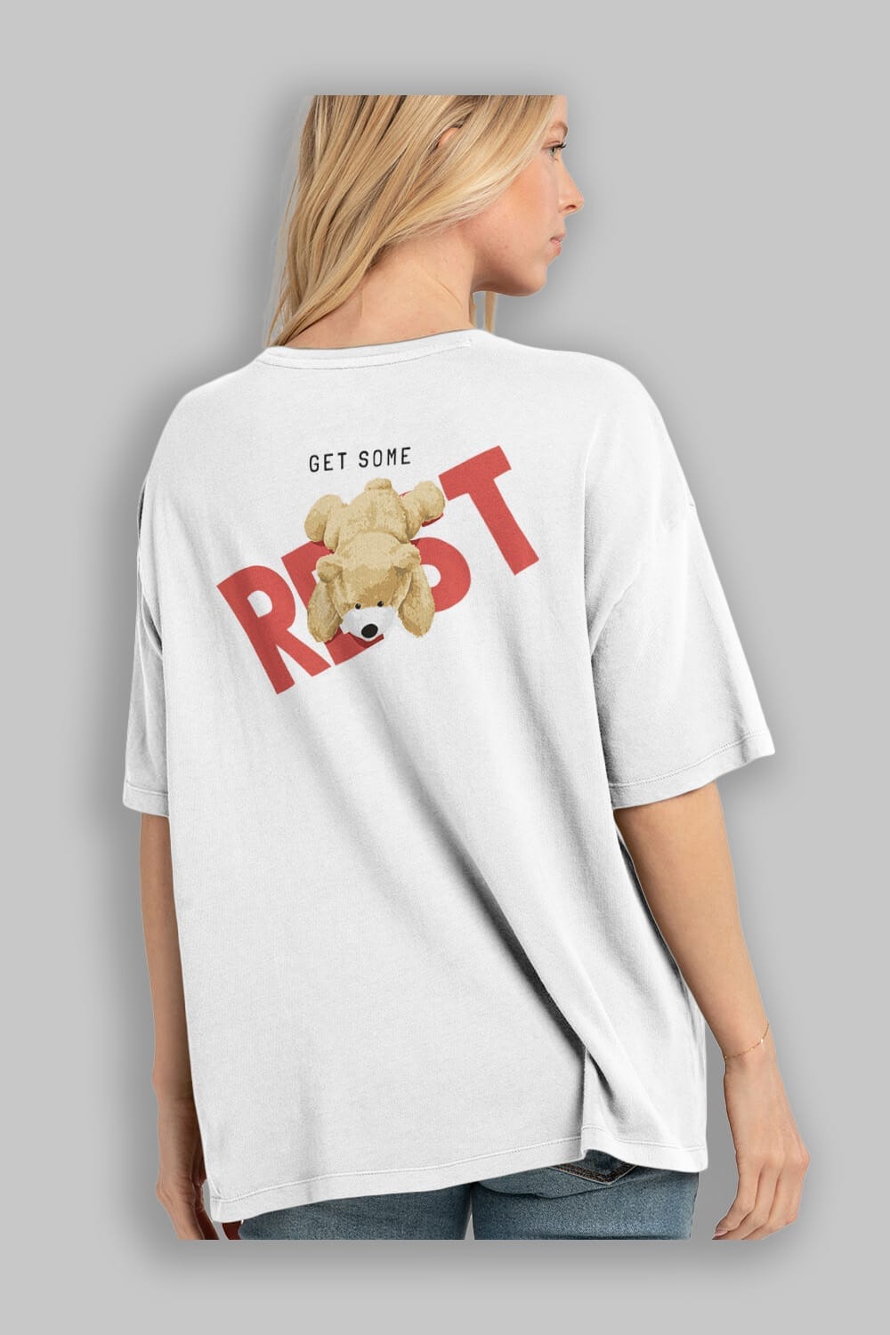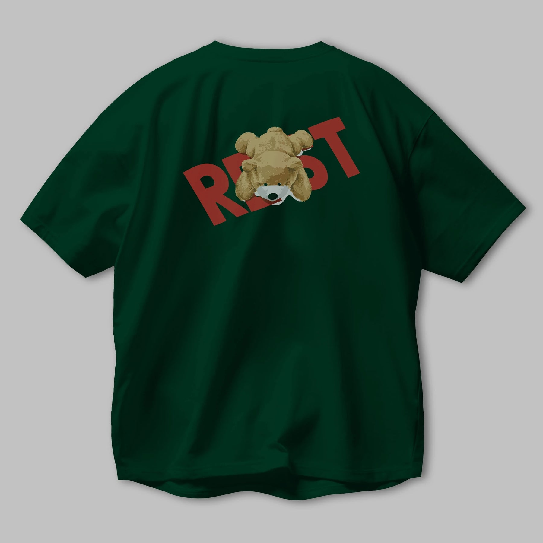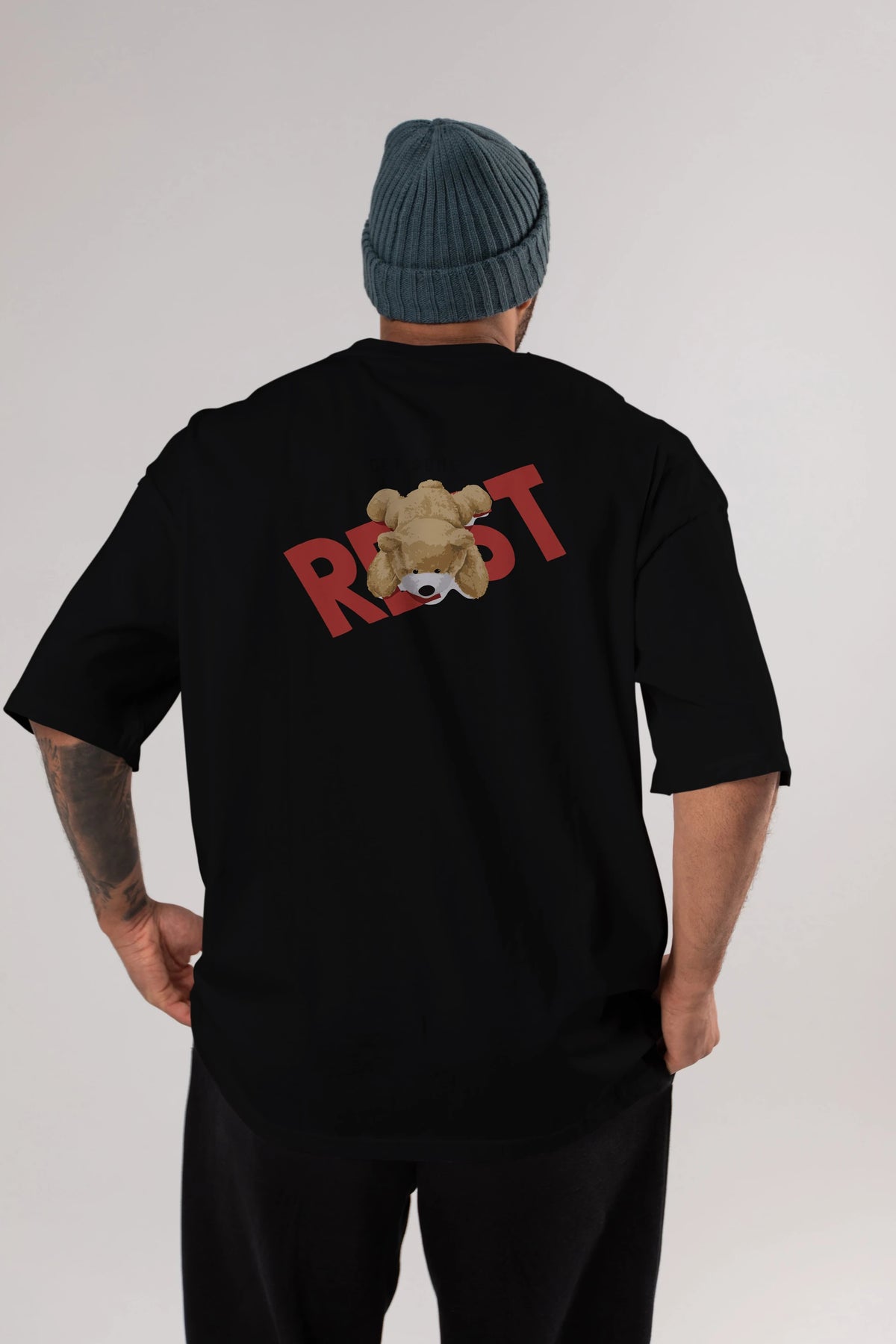 Teddy Bear Rest Arka Baskılı Oversize t-shirt Erkek Kadın Unisex %100 Pamuk