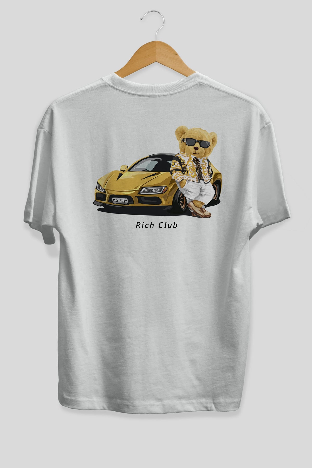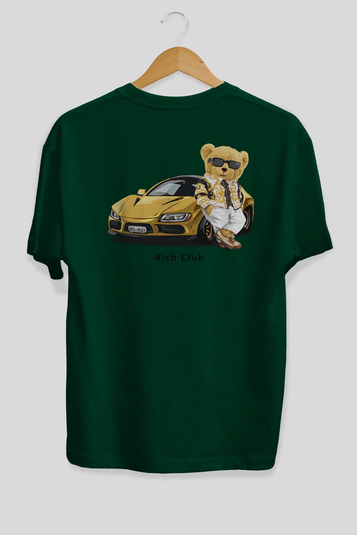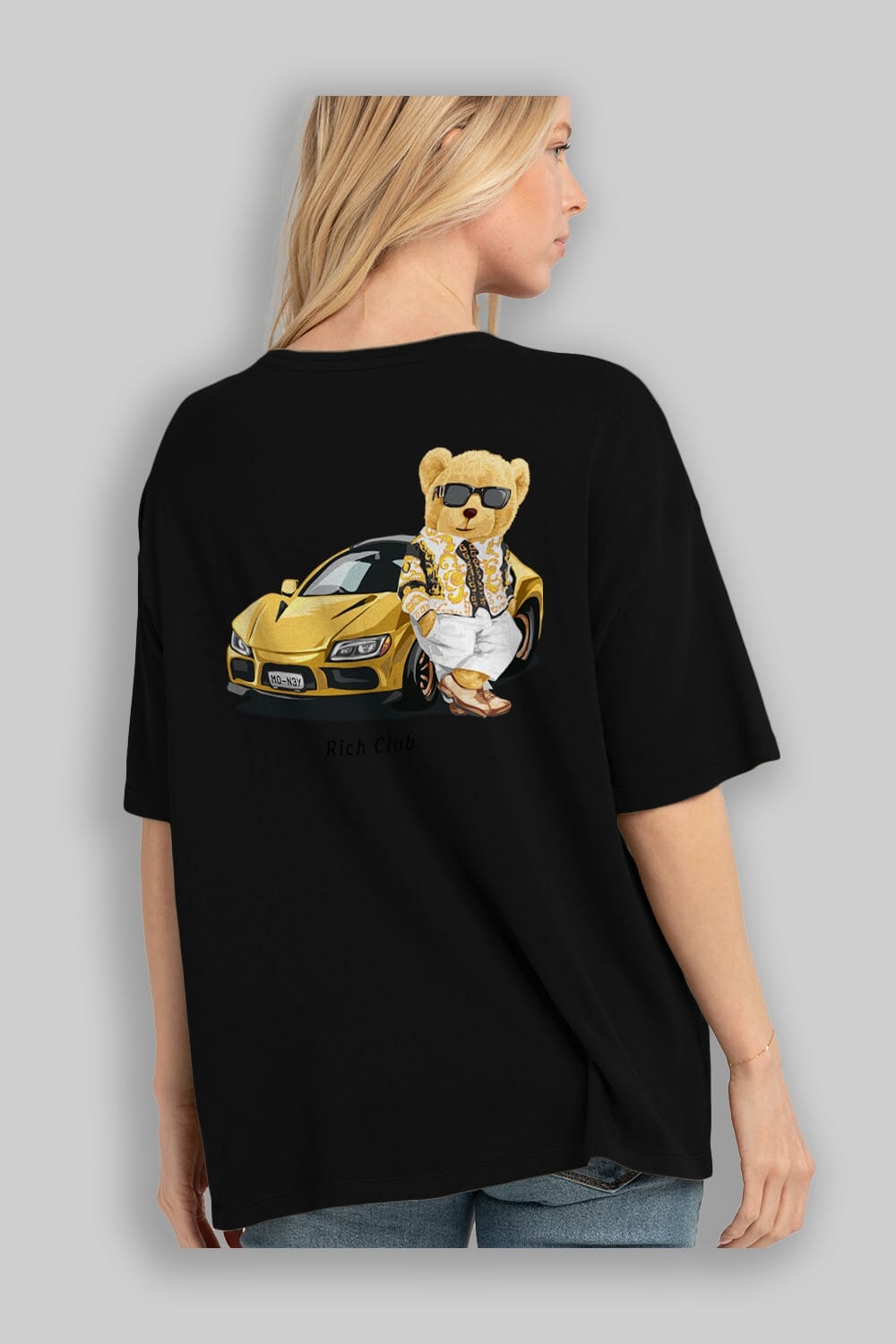 Teddy Bear Rich Club Arka Baskılı Oversize t-shirt Erkek Kadın Unisex %100 Pamuk