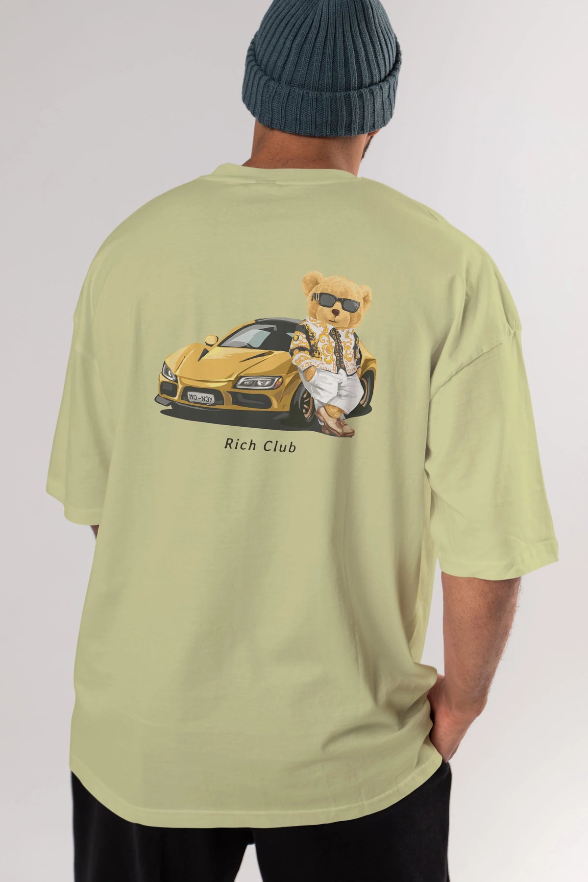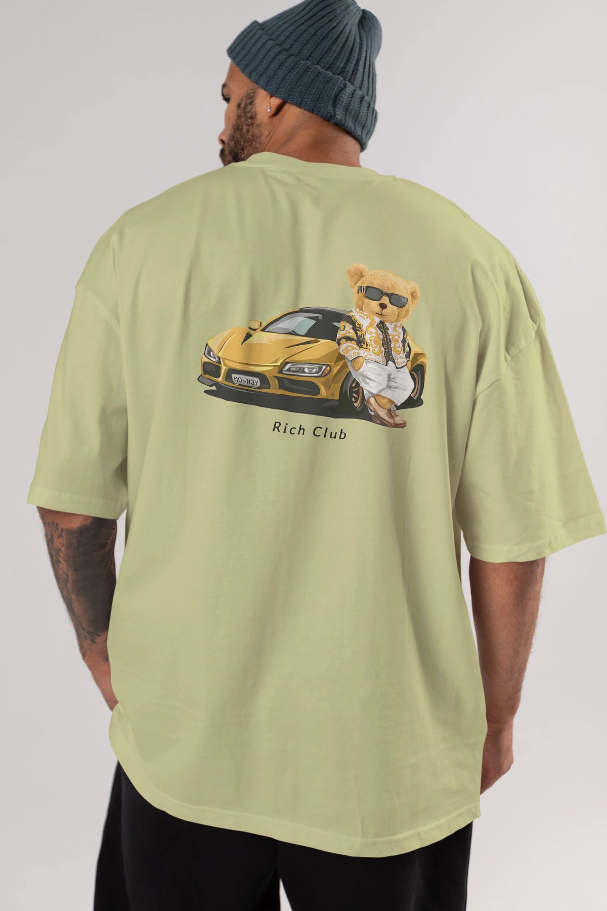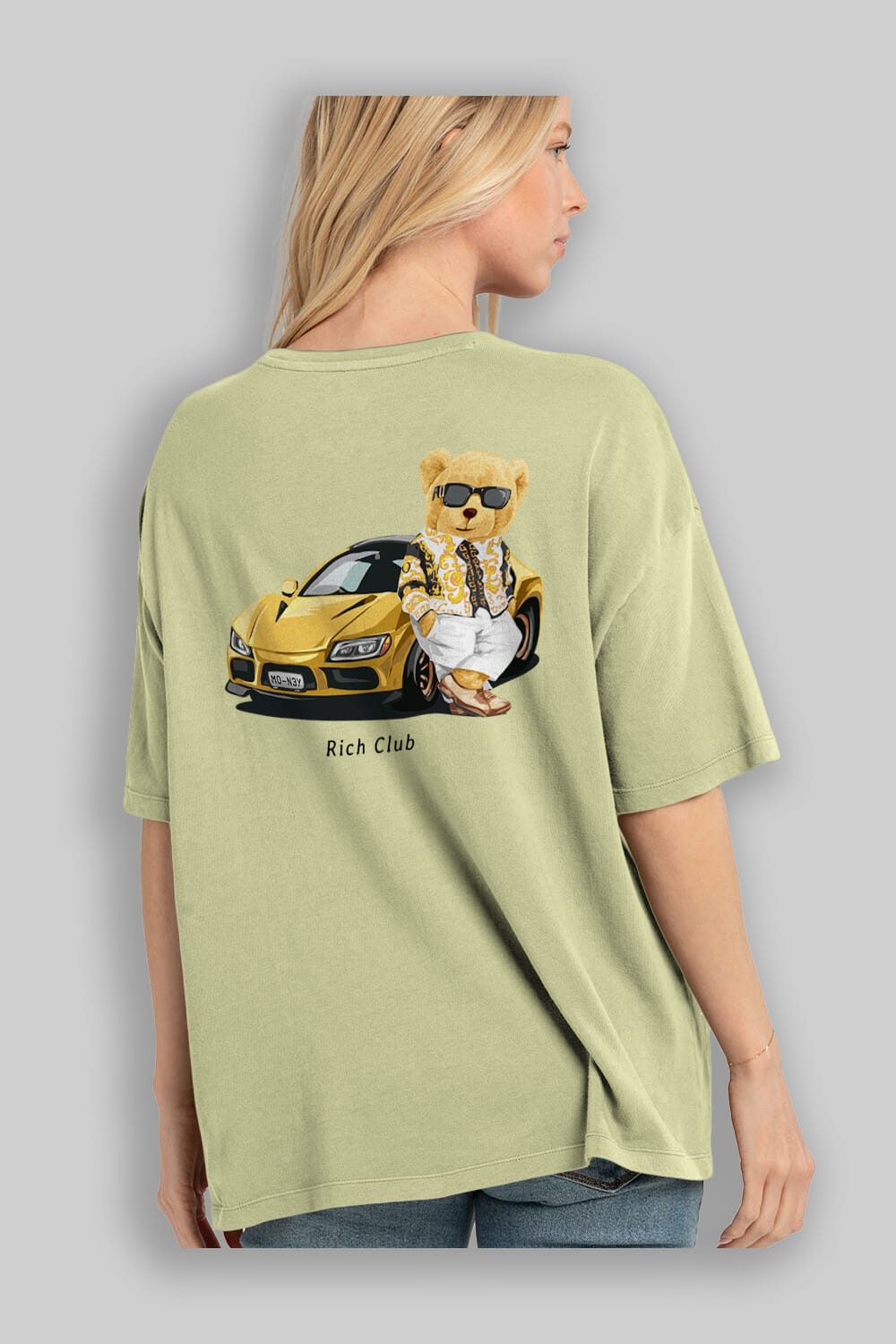 Teddy Bear Rich Club Arka Baskılı Oversize t-shirt Erkek Kadın Unisex %100 Pamuk
