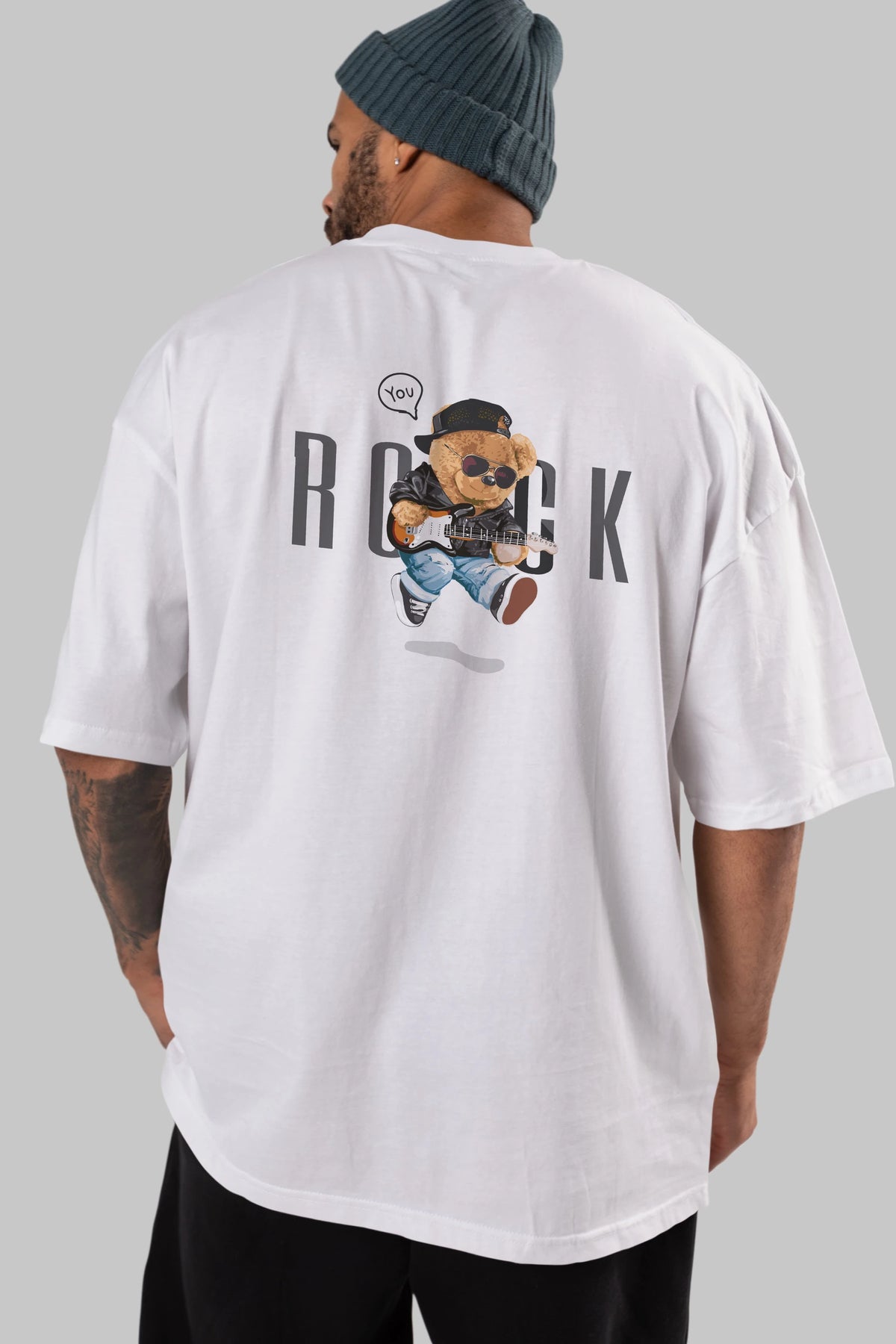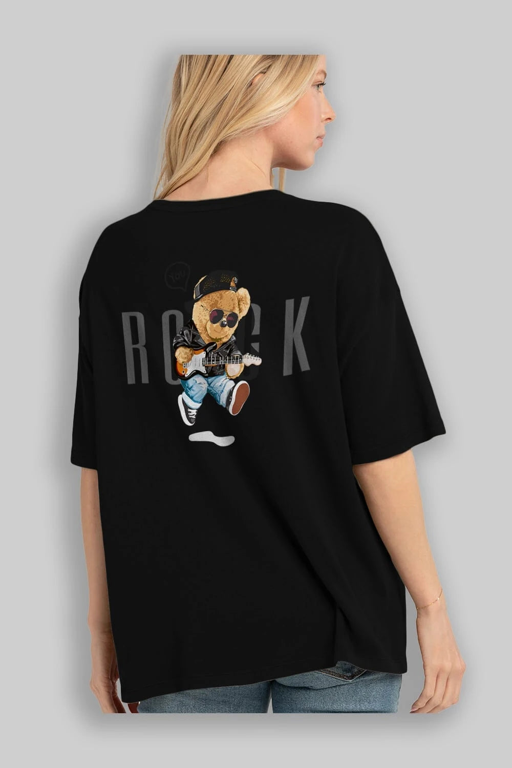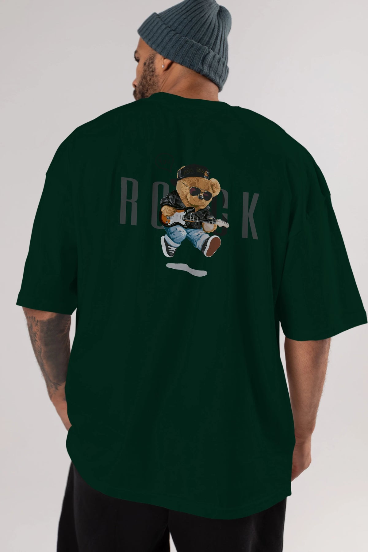 Teddy Bear Rock Arka Baskılı Oversize t-shirt Erkek Kadın Unisex %100 Pamuk