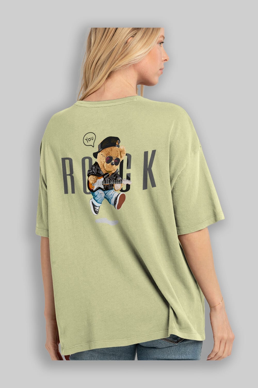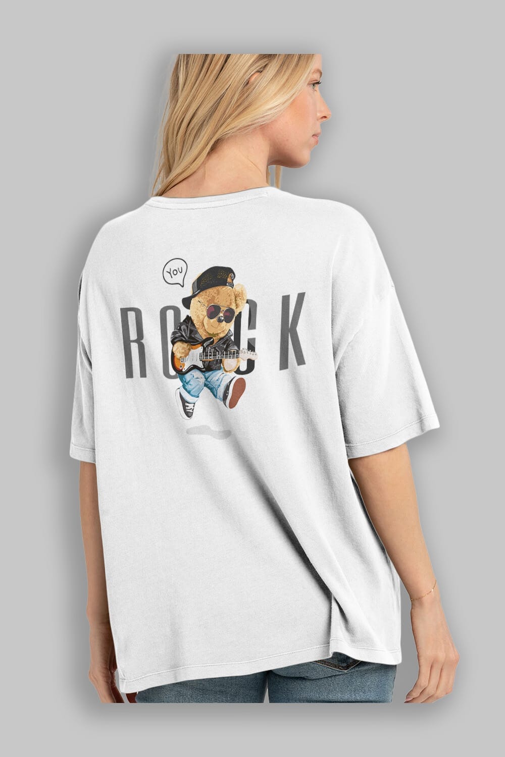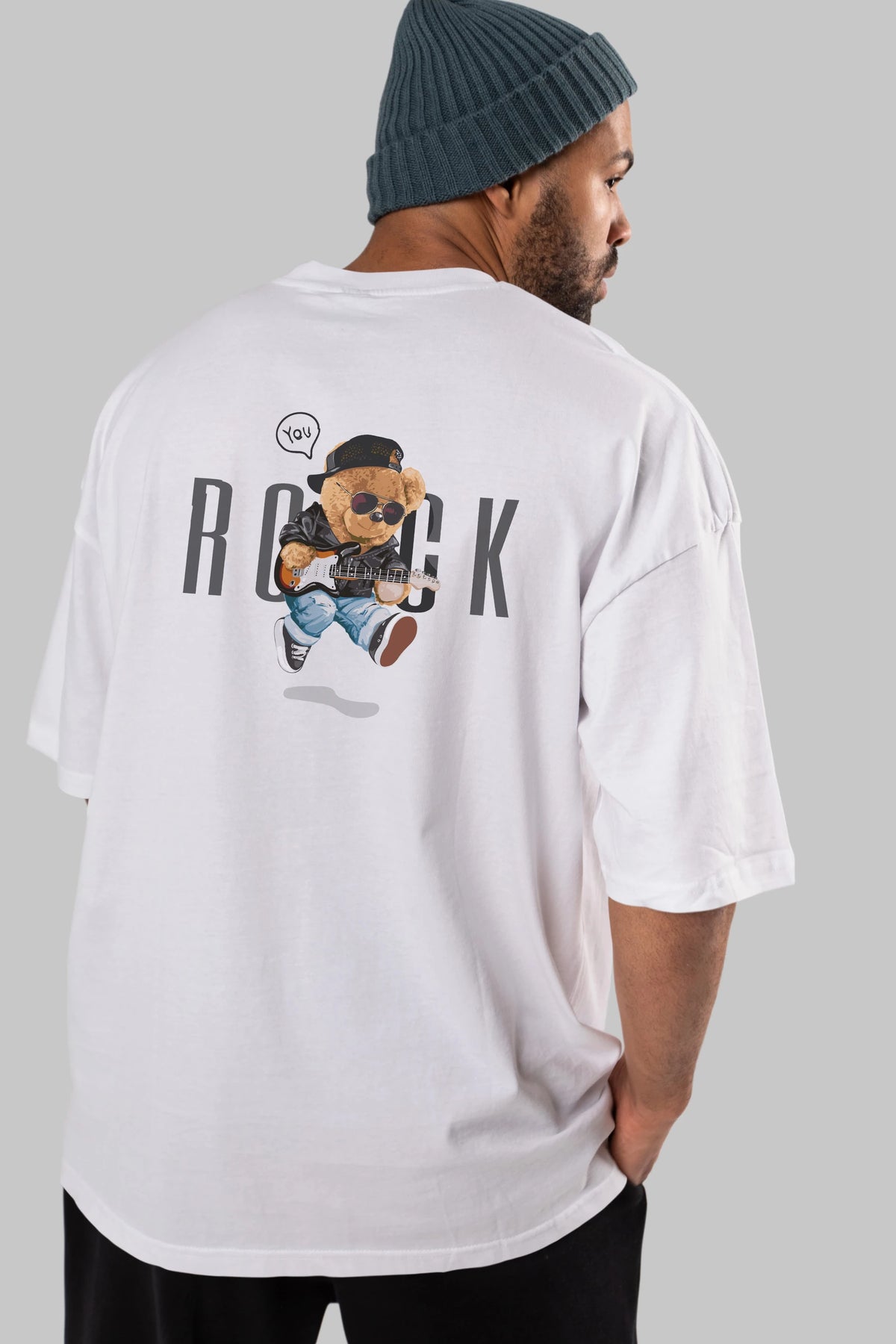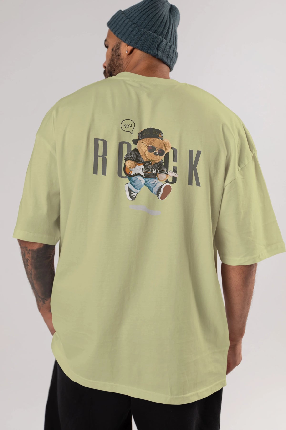 Teddy Bear Rock Arka Baskılı Oversize t-shirt Erkek Kadın Unisex %100 Pamuk