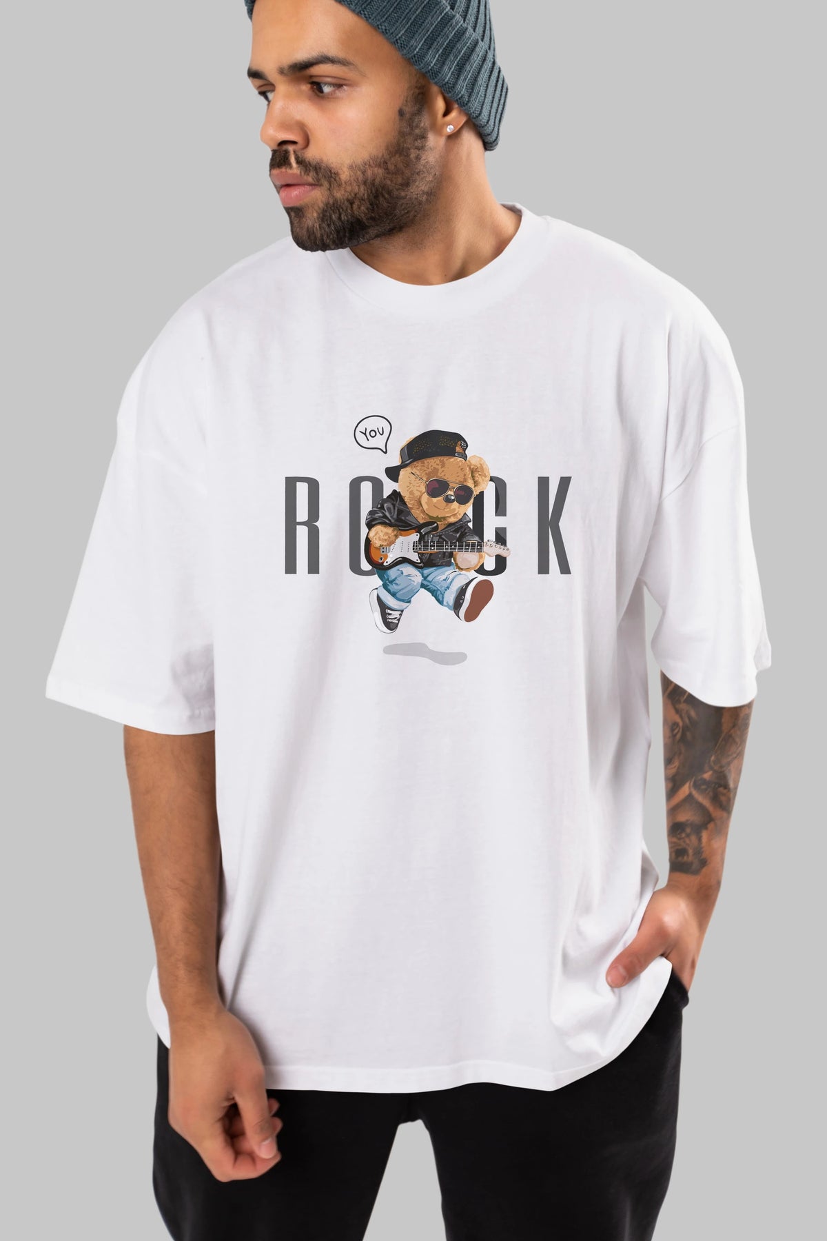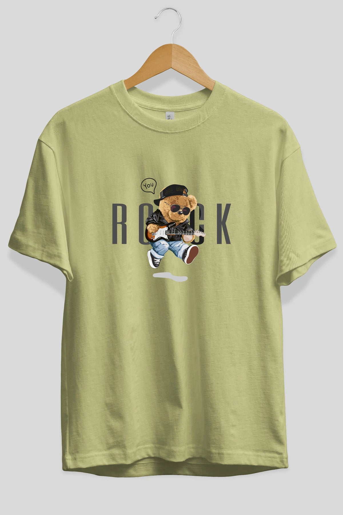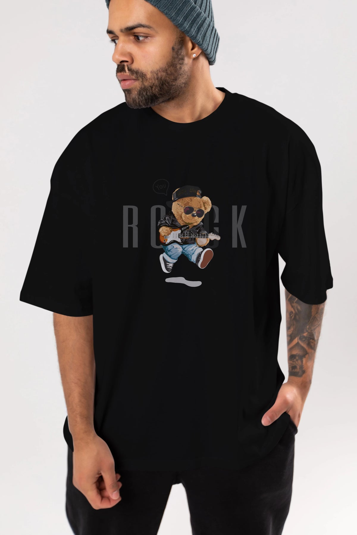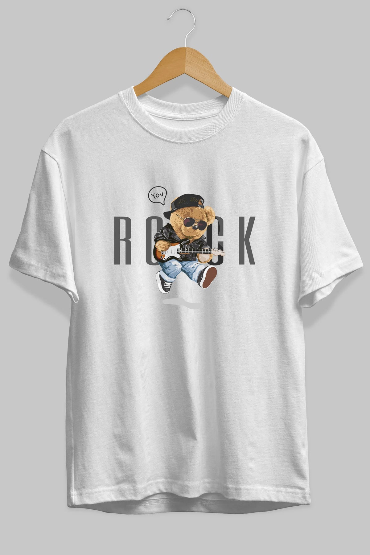 Teddy Bear Rock Ön Baskılı Oversize t-shirt Erkek Kadın Unisex %100 Pamuk