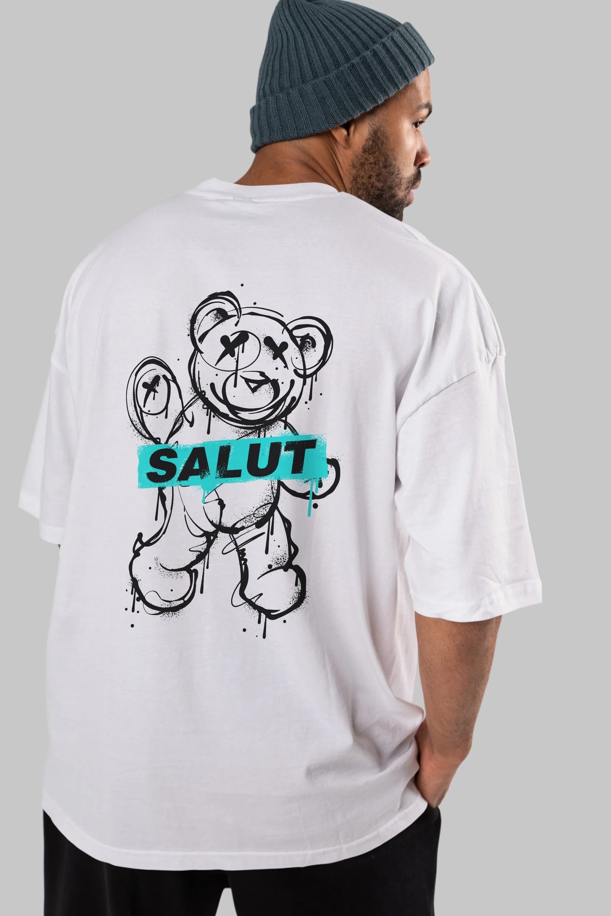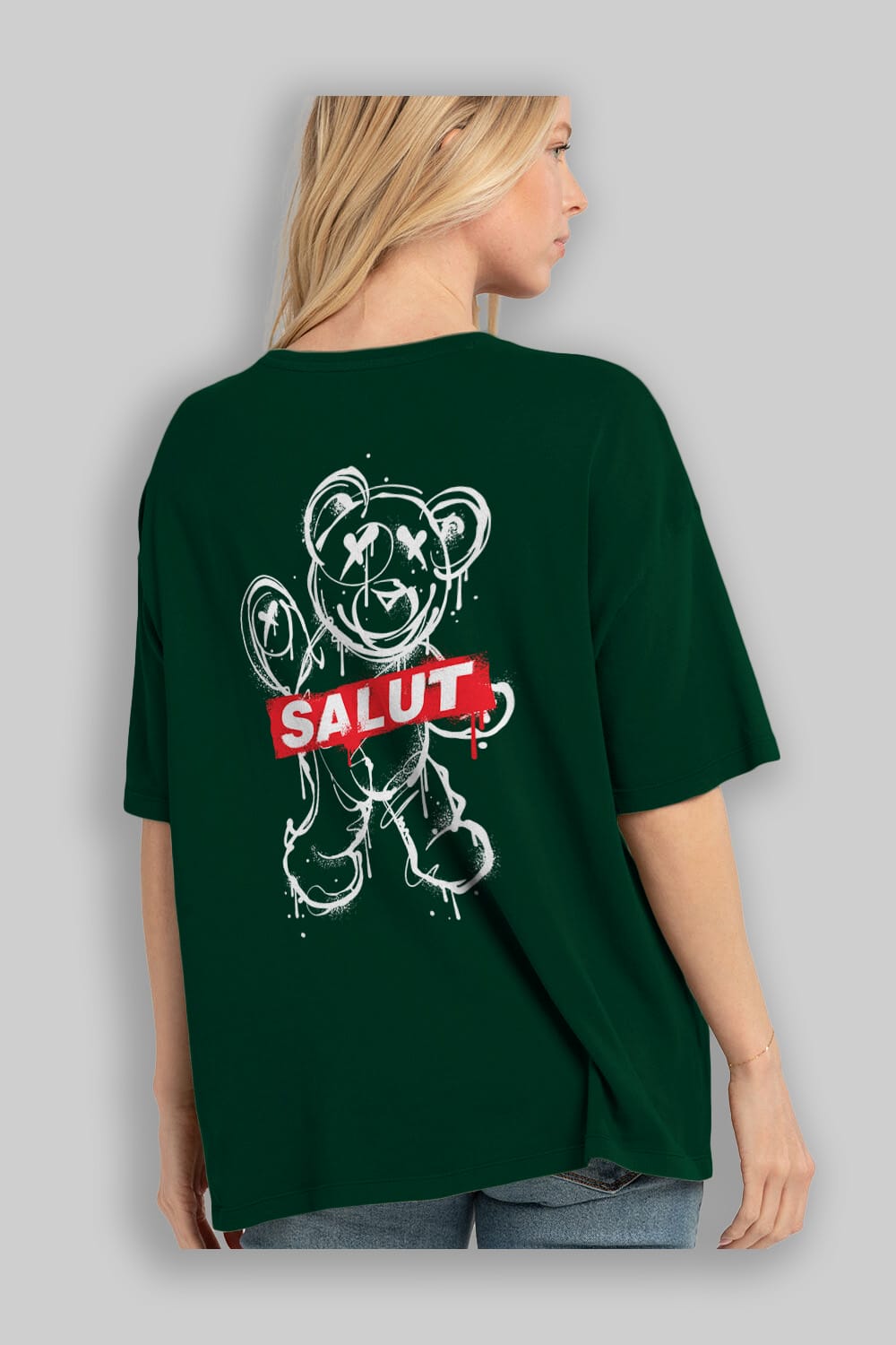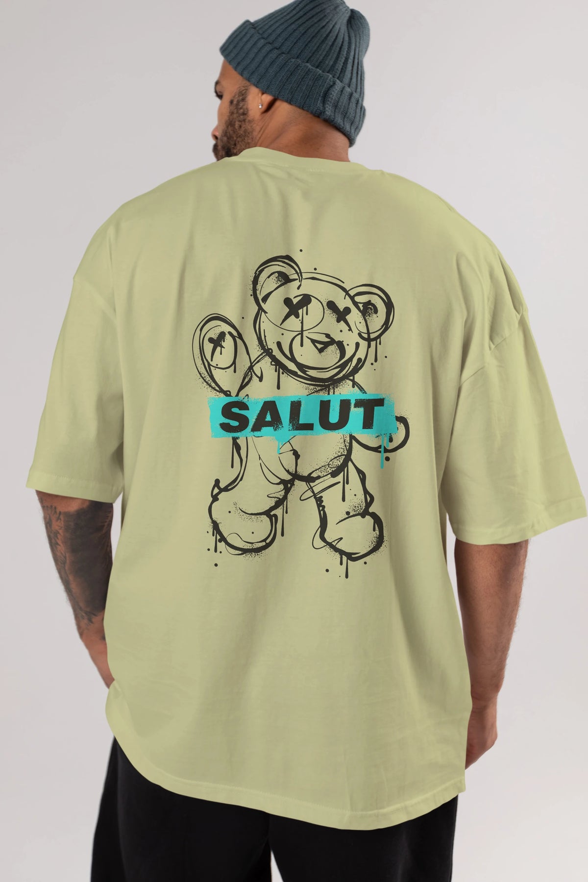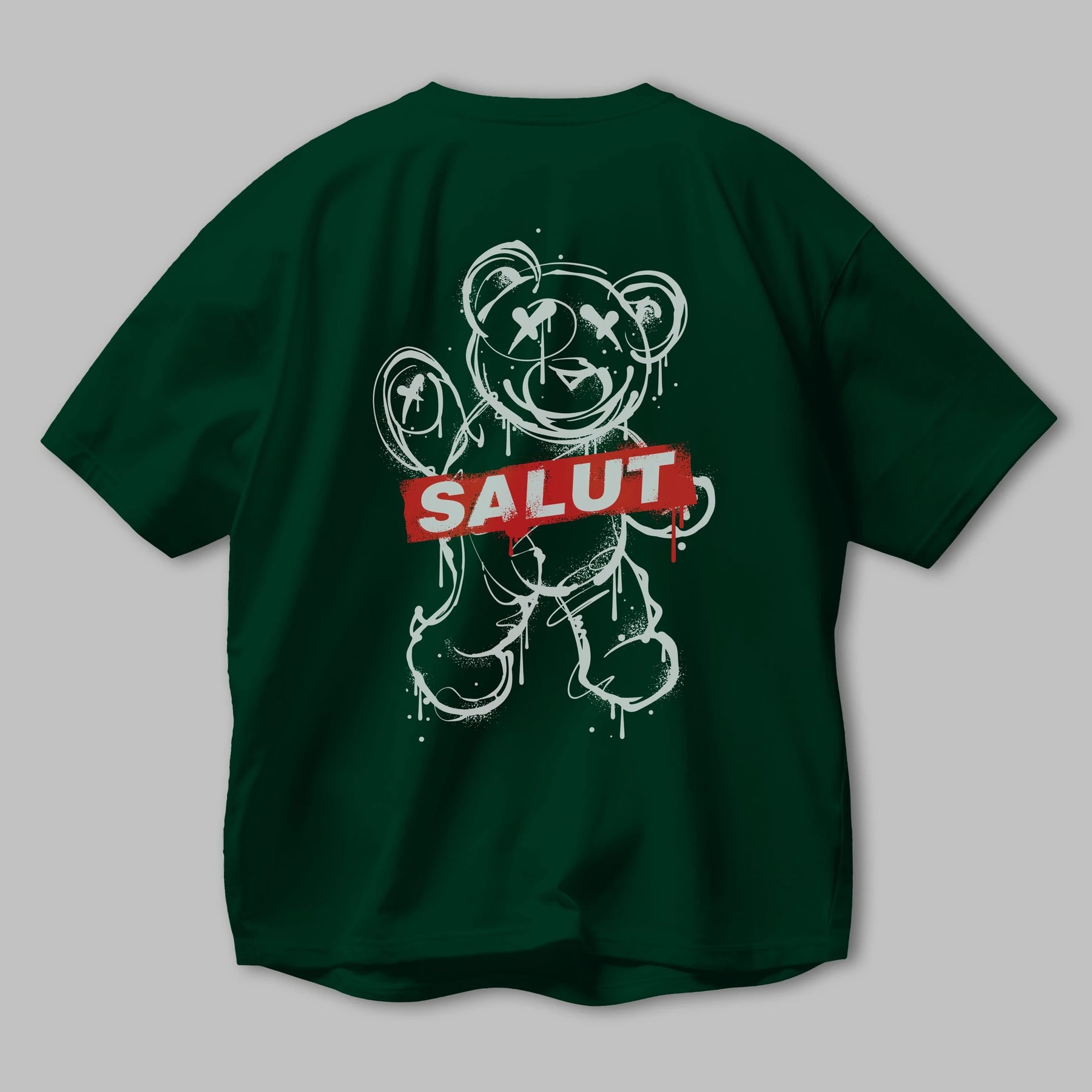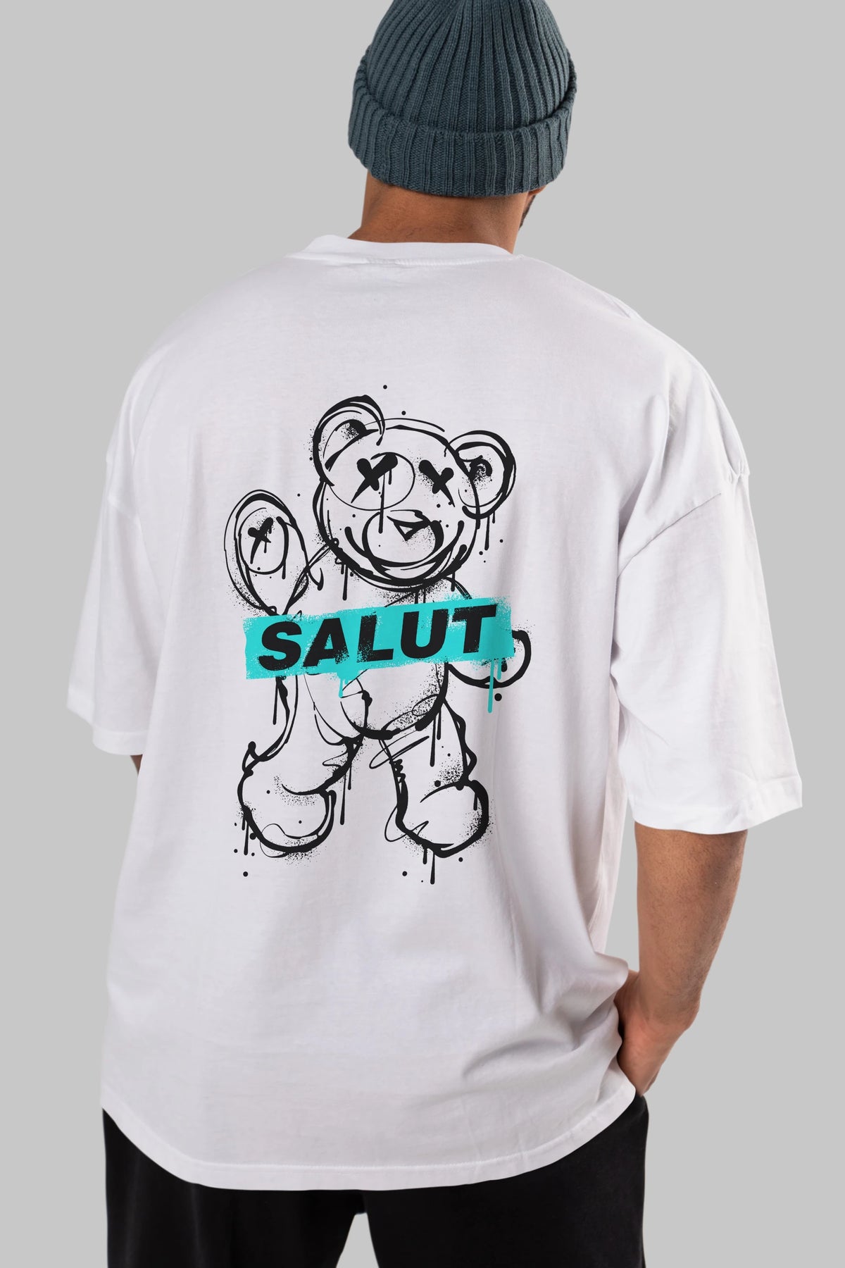 Teddy Bear Salut Arka Baskılı Oversize t-shirt Erkek Kadın Unisex