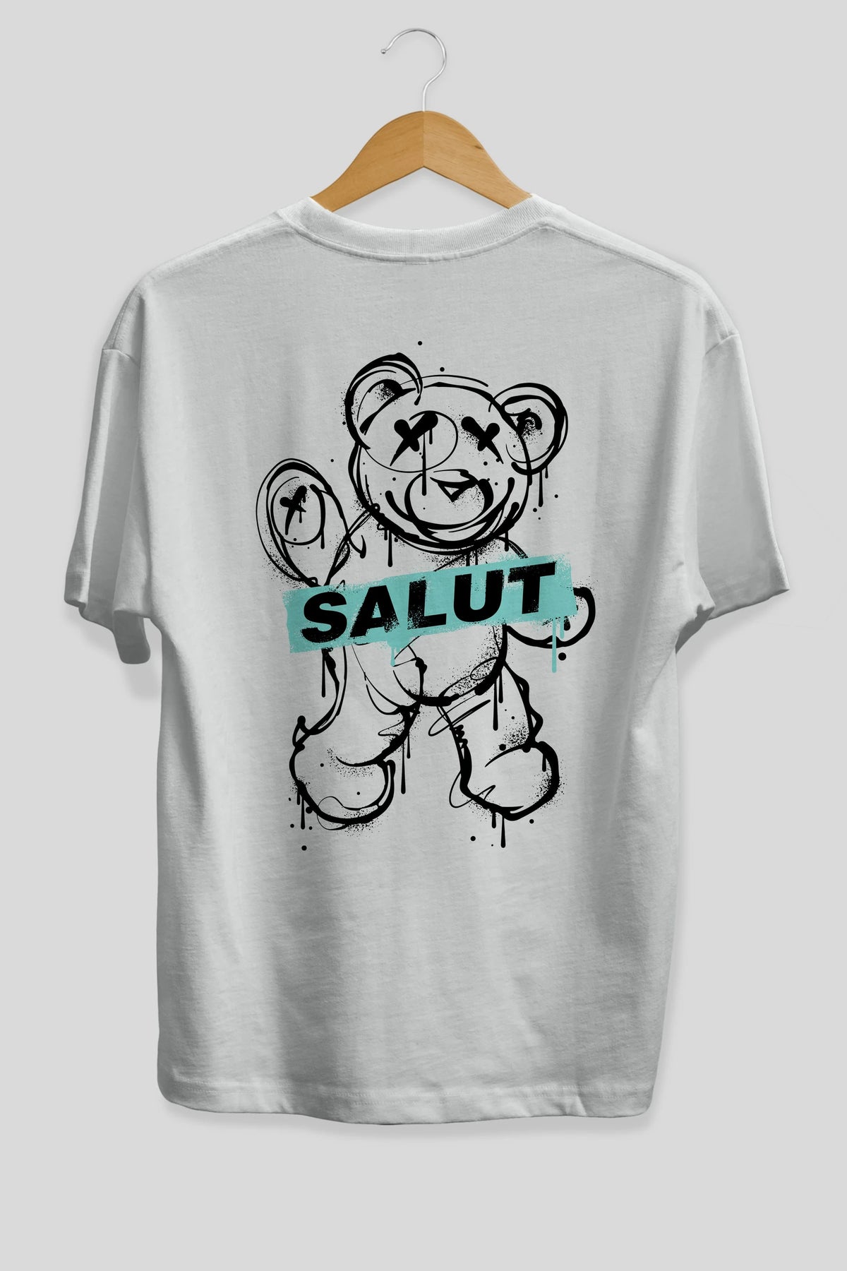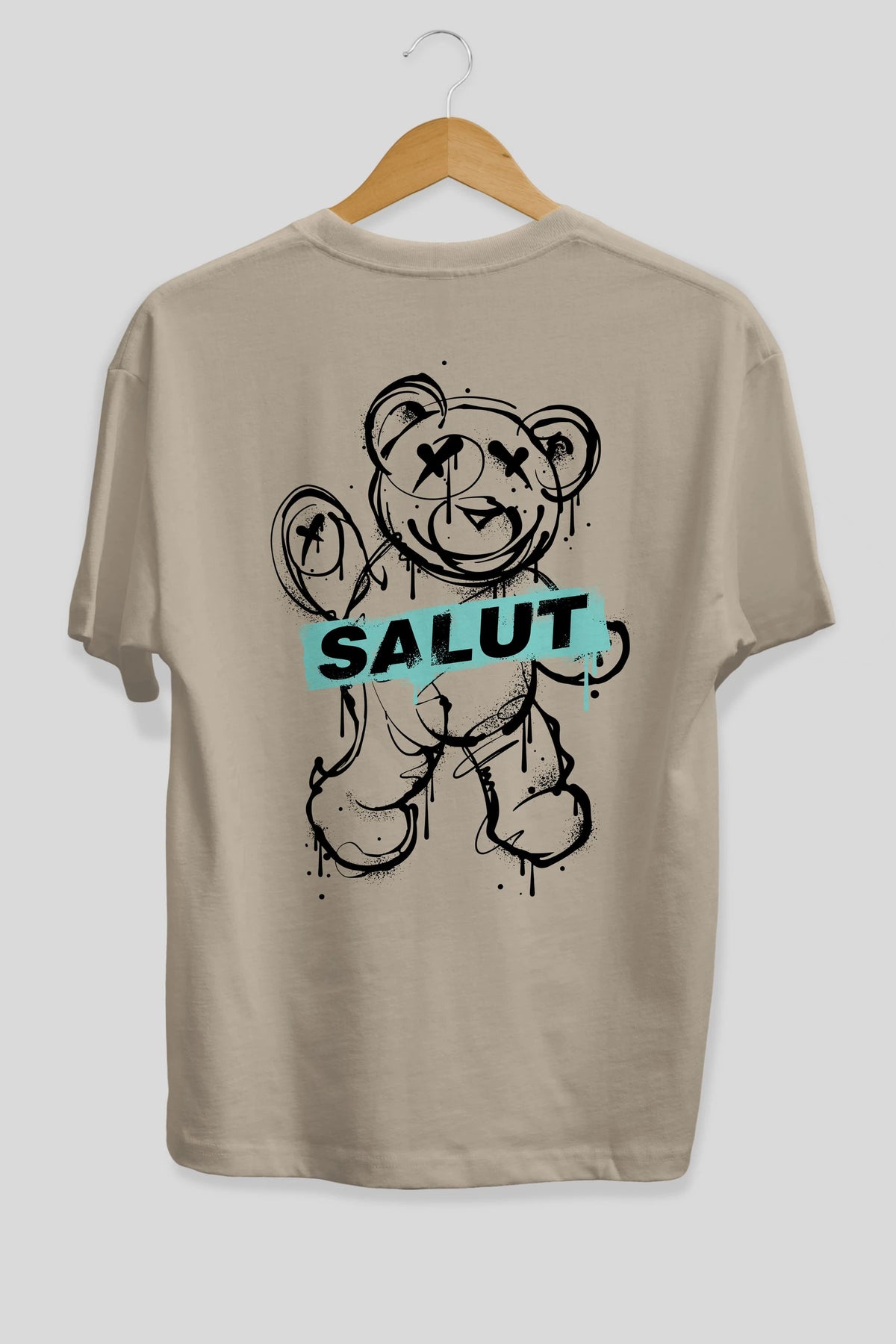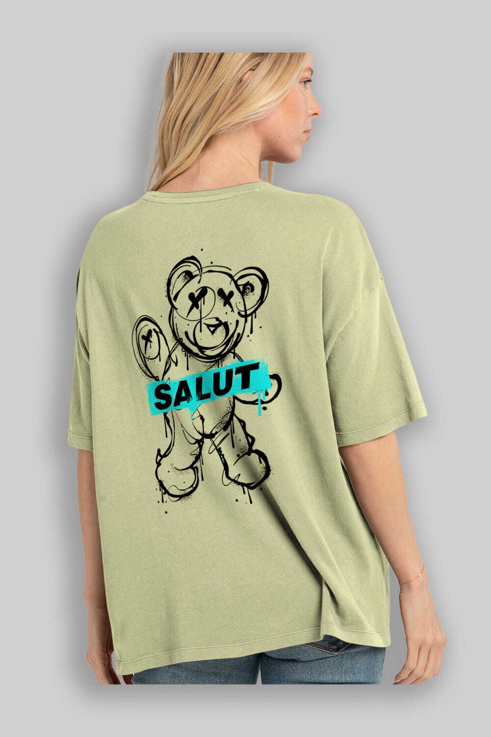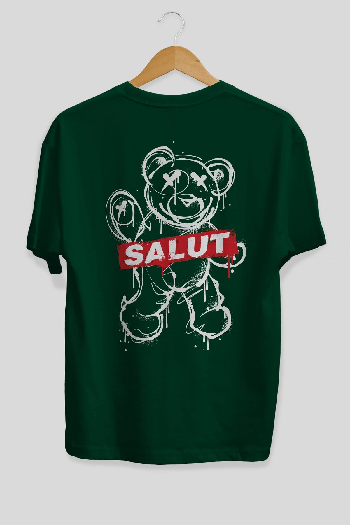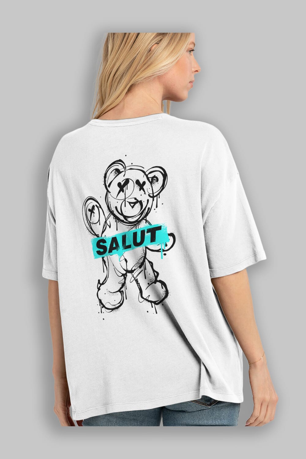 Teddy Bear Salut Arka Baskılı Oversize t-shirt Erkek Kadın Unisex