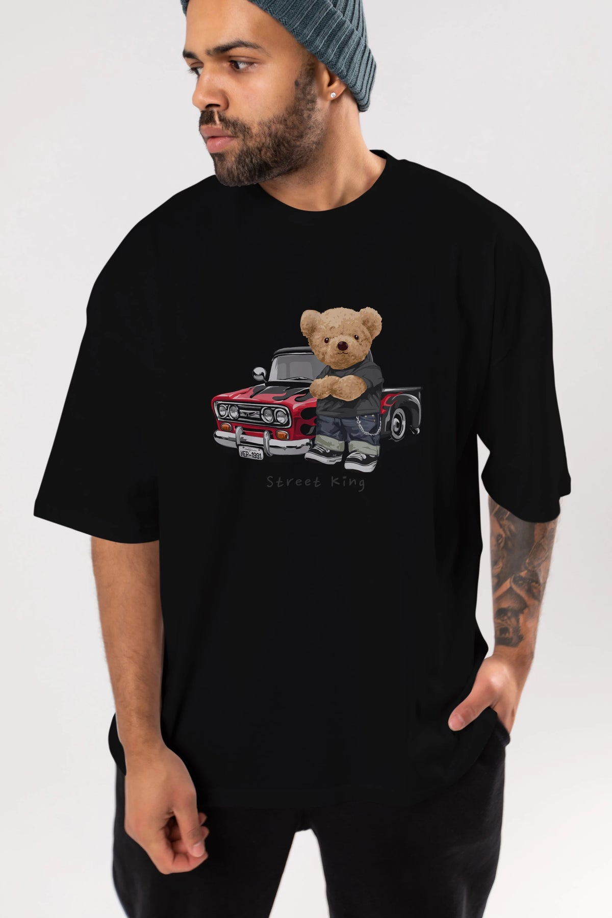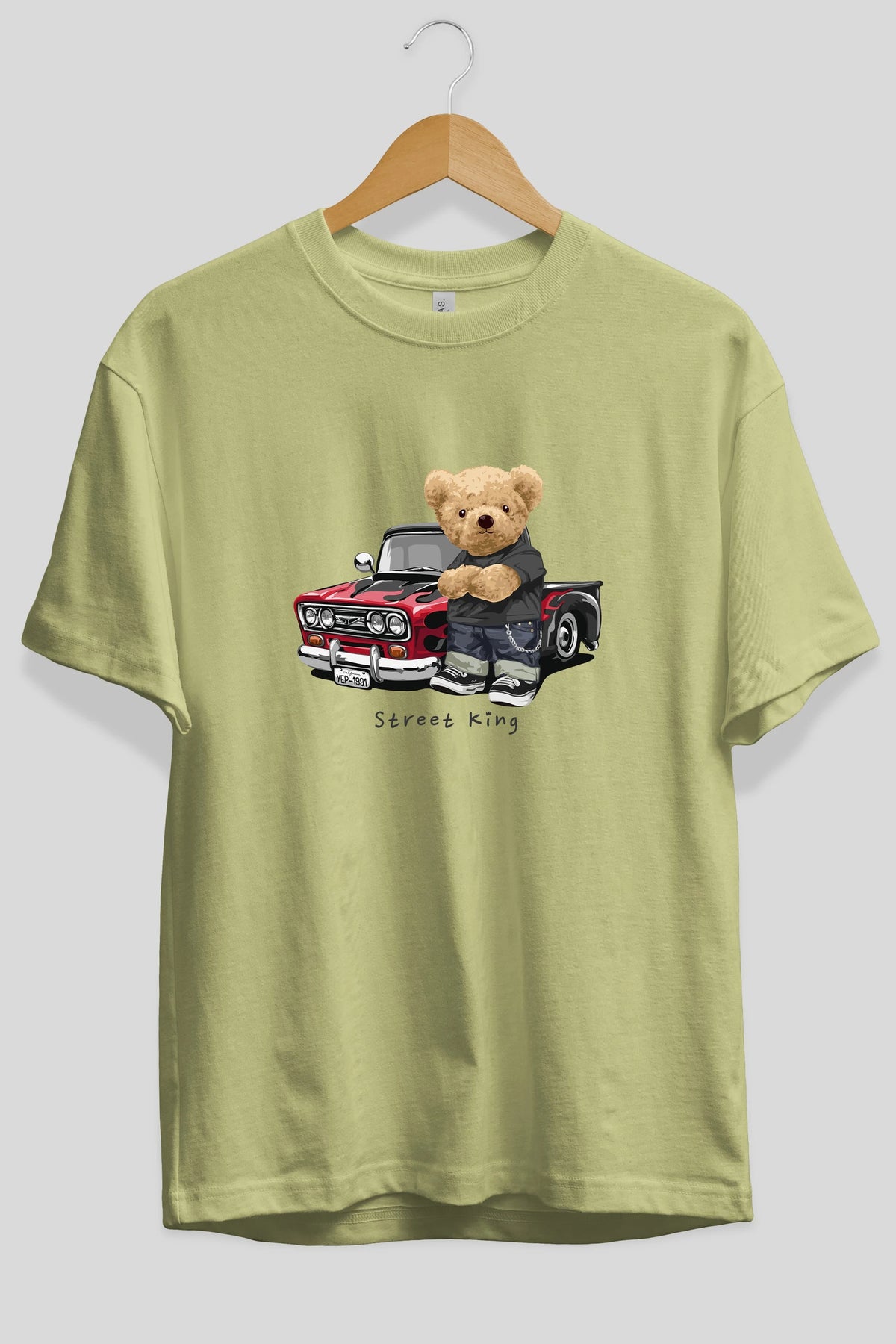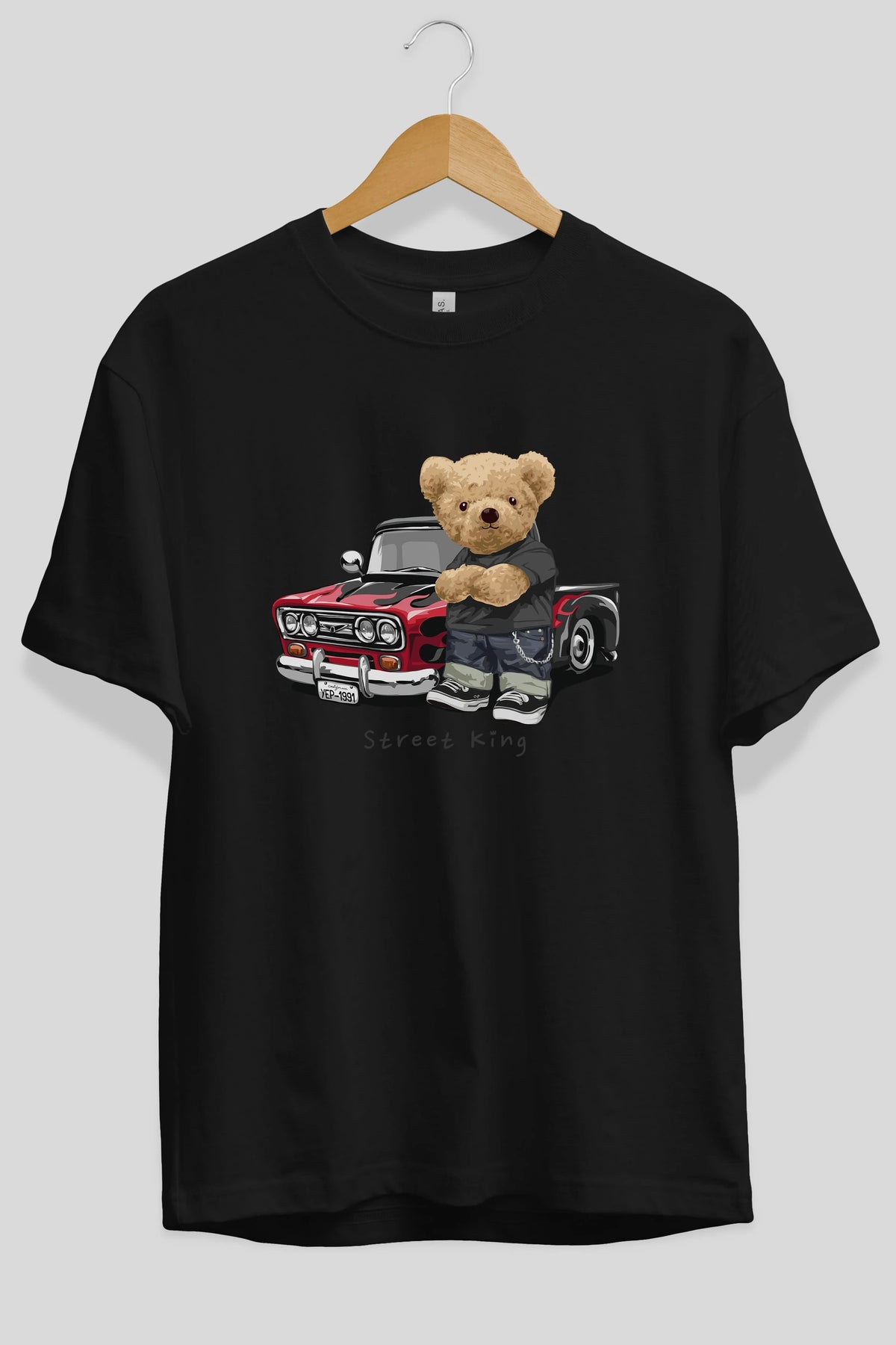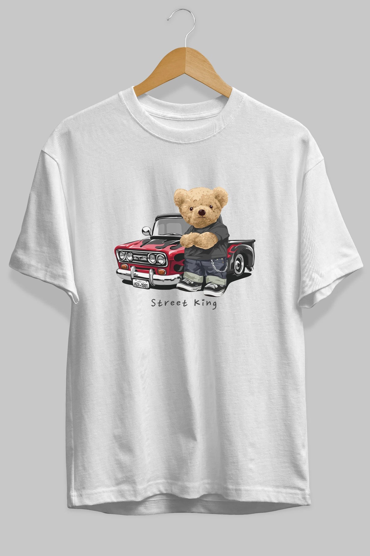 Teddy Bear Street King Ön Baskılı Oversize t-shirt Erkek Kadın Unisex %100 Pamuk