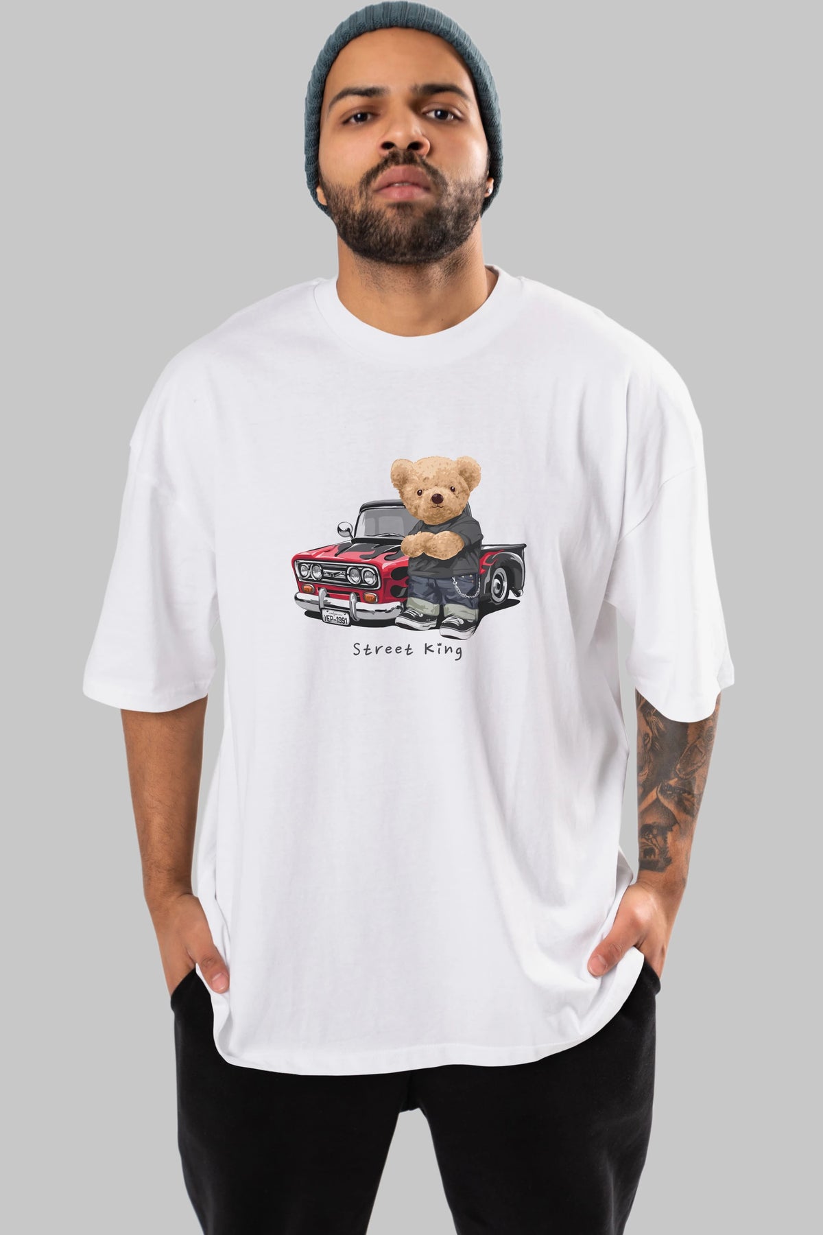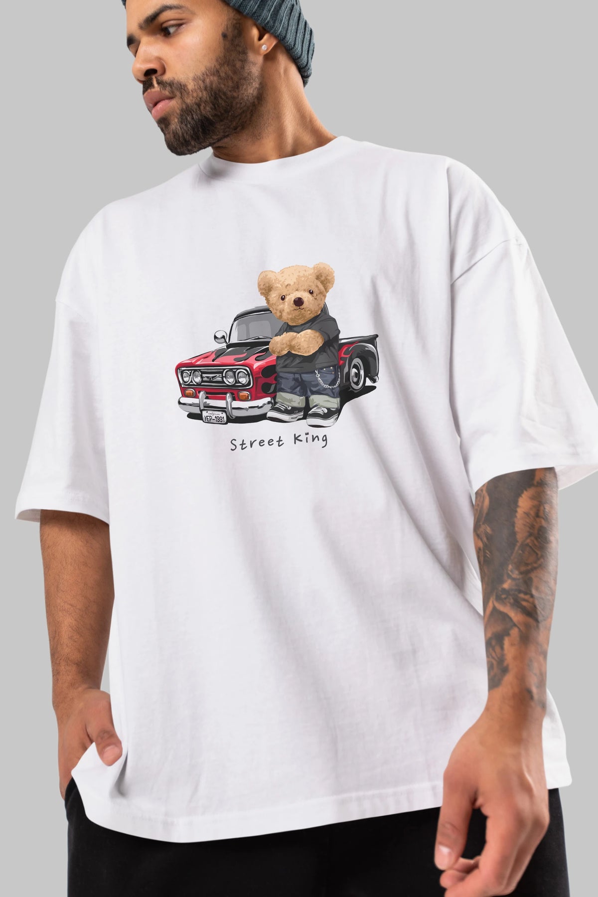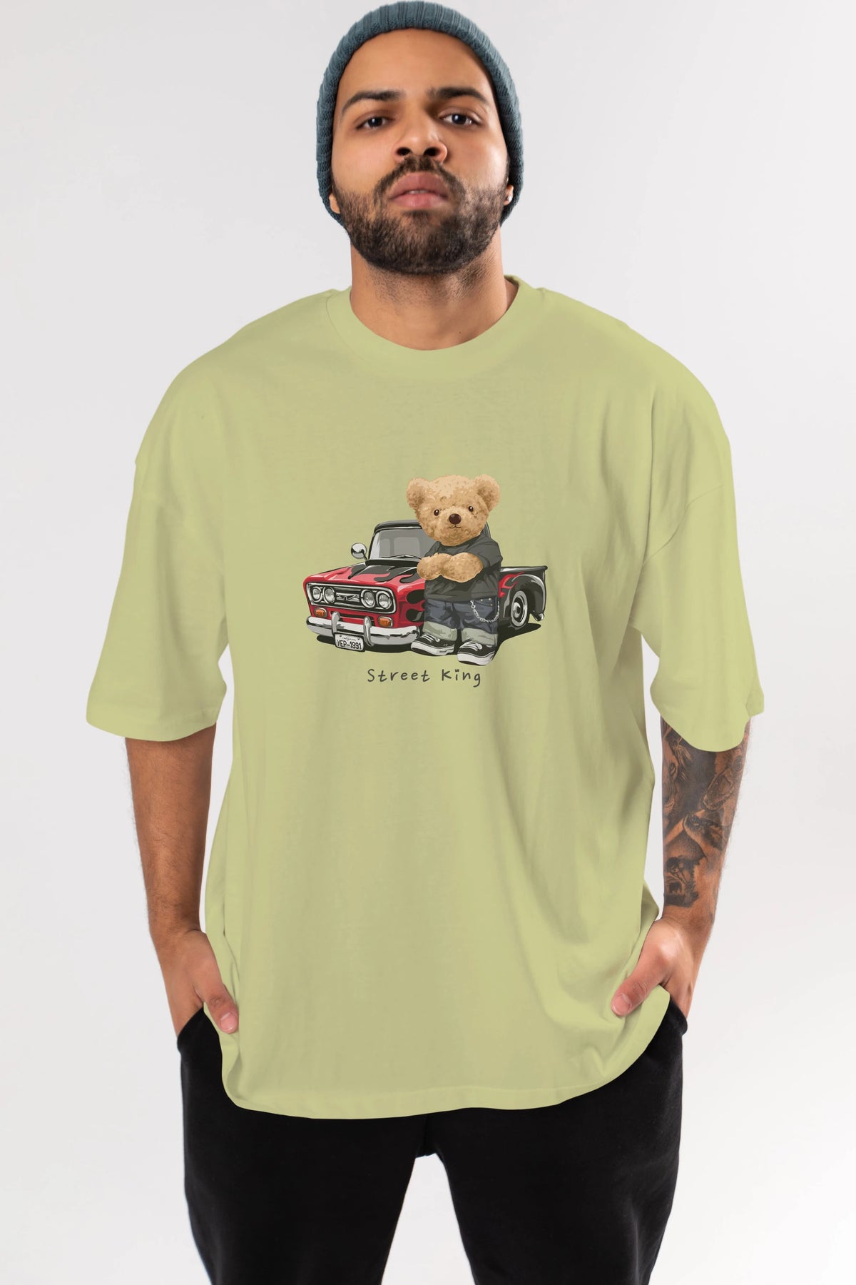 Teddy Bear Street King Ön Baskılı Oversize t-shirt Erkek Kadın Unisex %100 Pamuk